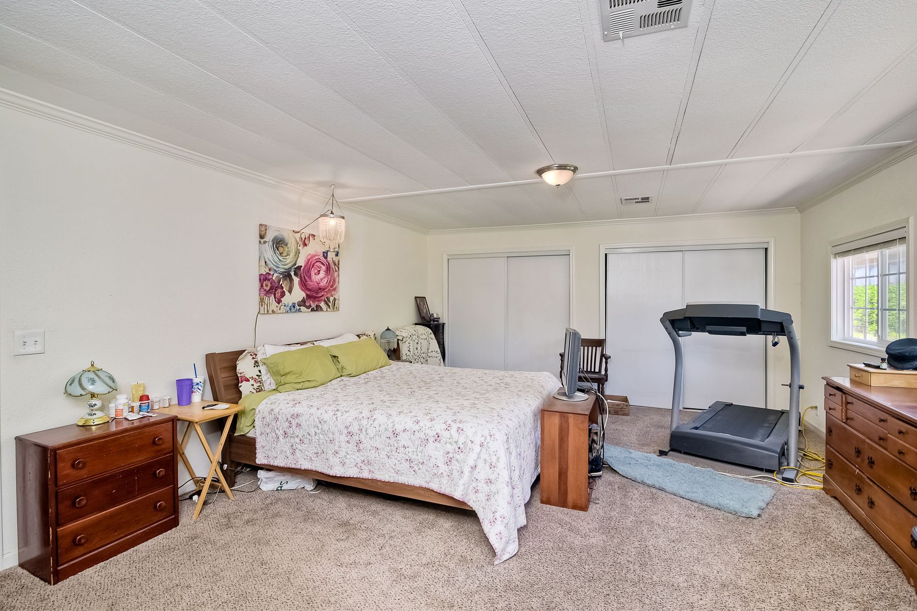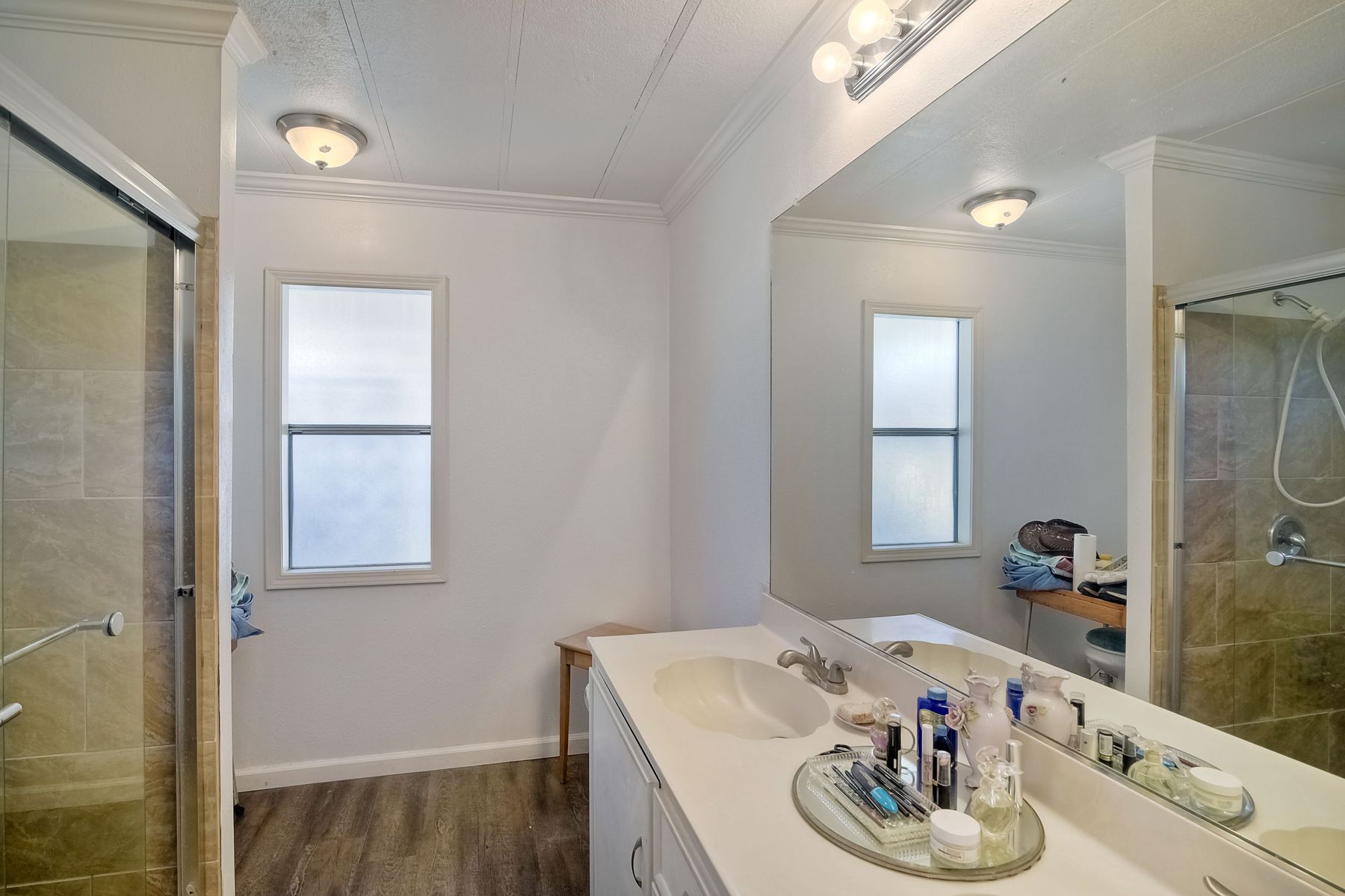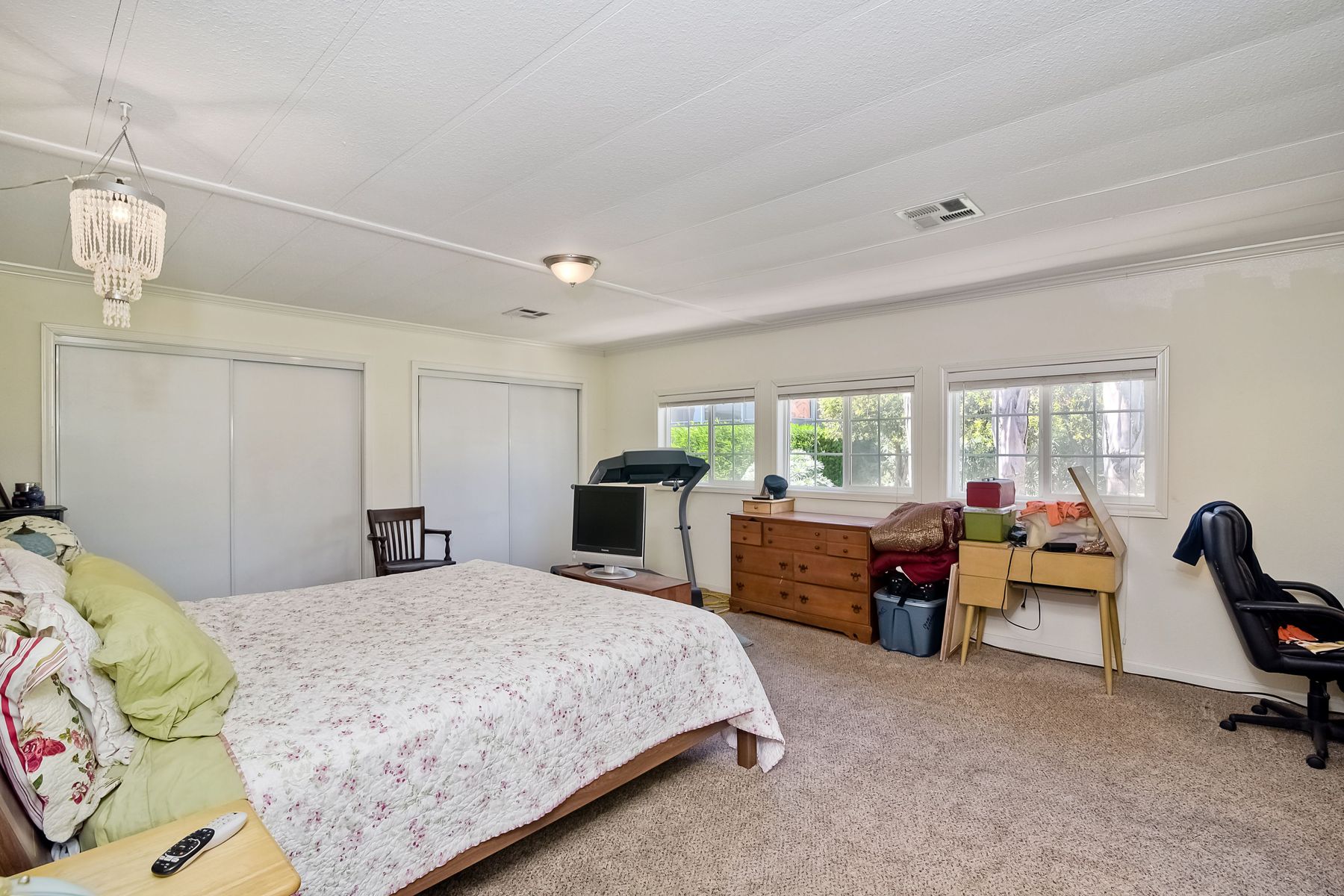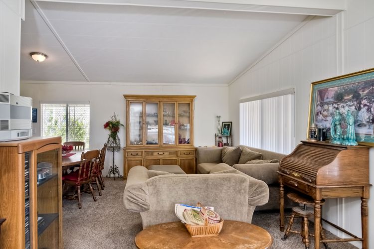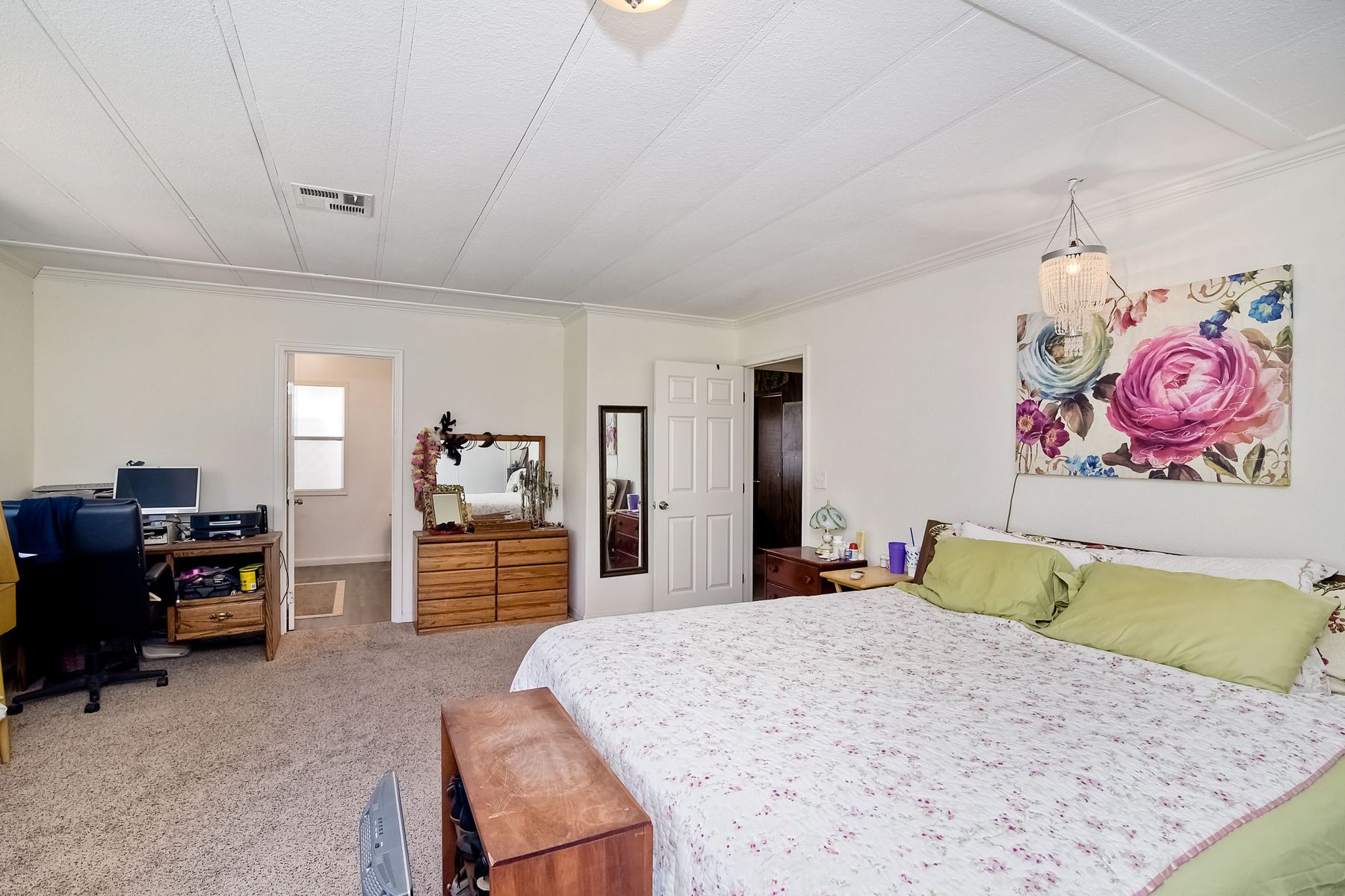 Spacious home, one of the larger homes in the estates. Large family room. Vaulted ceiling in living room and dining room. Built-in cabinets with counter space in dining room and family room. Kitchen bright and open with 4 burner stove and grill, double oven, and plenty of cabinets. Huge master bedroom with upgraded walk-in shower. Large laundry room with a lot of cabinets. Newer windows, carpet and laminate flooring. Enclosed patio and porch. Wood shed for storage. Covered carport with privacy lattice. Close to pool, spa, and clubhouse amenities. Near town and shopping. Beautifully maintained estates include pool, spa, sauna, billiard, dining room with daily activities.