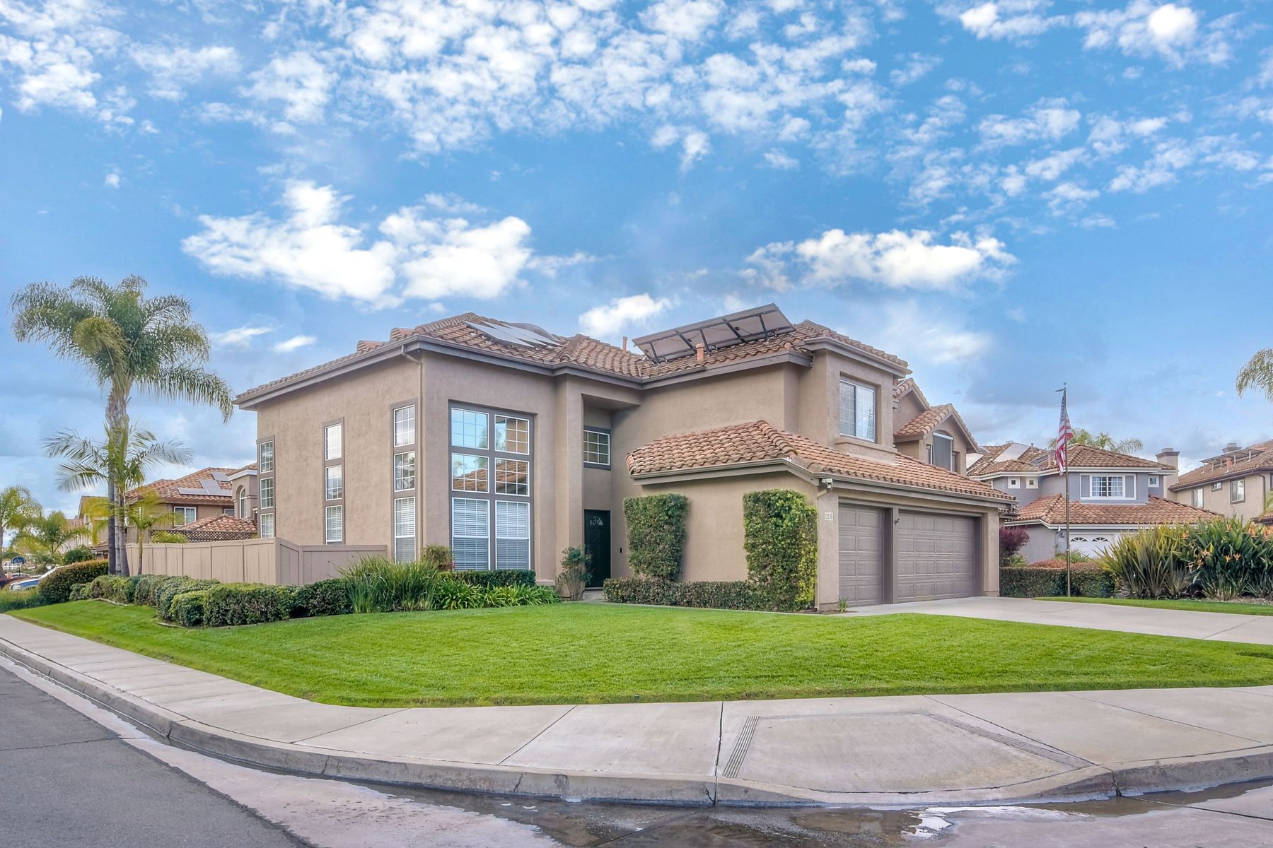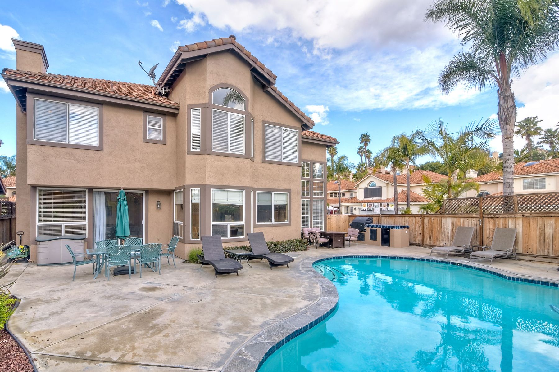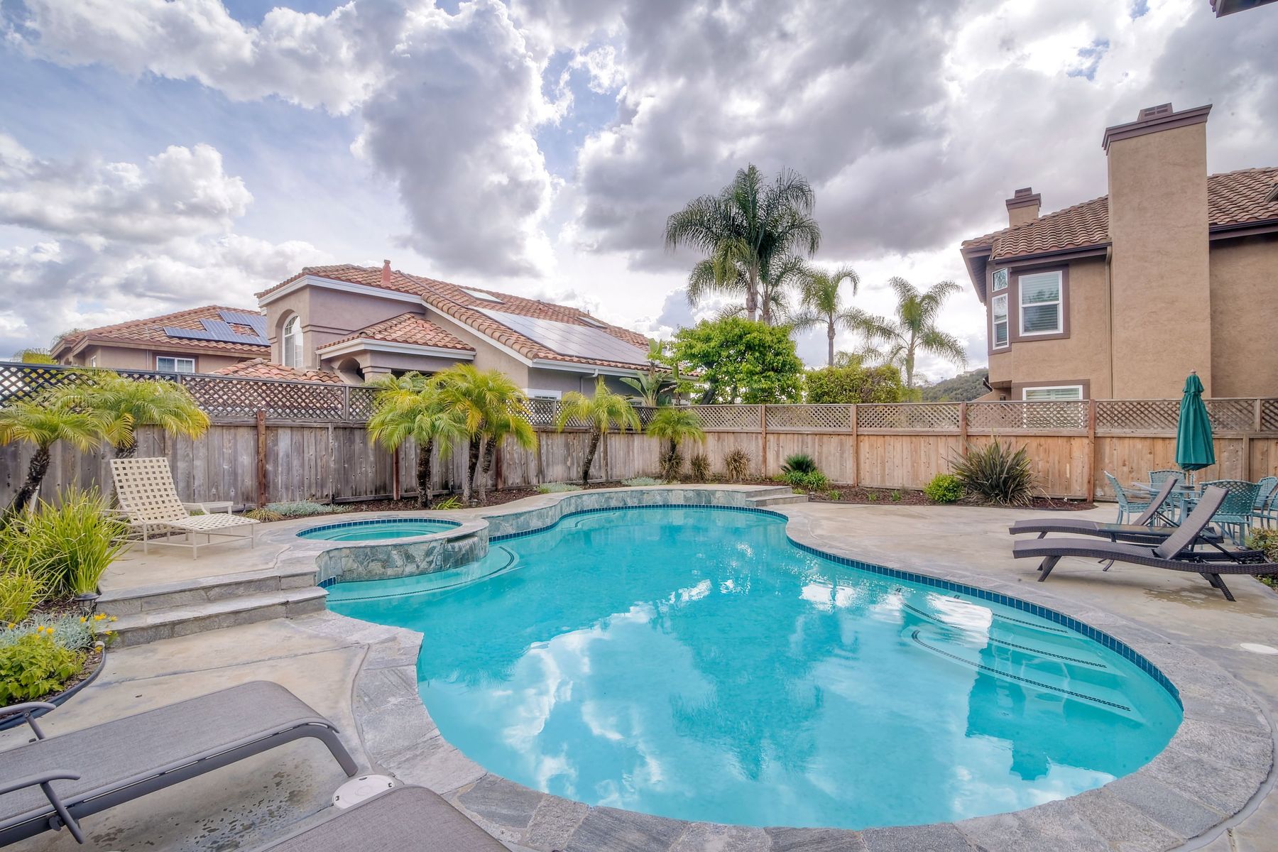 Beautiful corner lot home in sought after Park Village neighborhood. Updated home with remodeled kitchen and bathrooms. Kitchen has granite counter tops, stainless steel appliances, island, and plenty of rich dark wood cabinets. Full bedroom and bathroom downstairs. Penasquitos Preserve & huge park right around the corner. Walk to award winning Park Village Elementary School. Entertain, BBQ, and relax at your backyard pool oasis. Solar electric (owned) keeps bills super low. No HOA or Mello Roos. Electric bill was usually negative but owners have two electric cars so bill may run $50/month, possibly a little higher in summer months depending on AC use. 220V electric car charger in garage conveys. Portable fire pit on patio conveys.