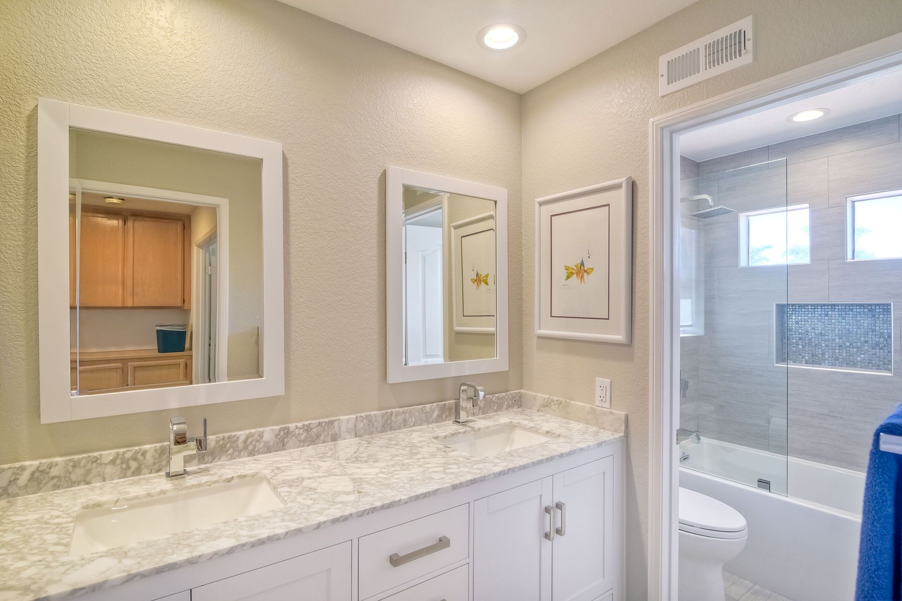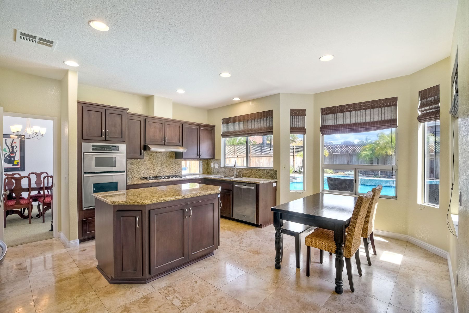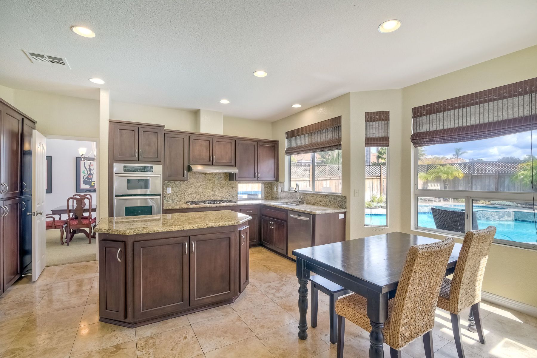 Beautiful corner lot home in sought after Park Village neighborhood. Updated home with remodeled kitchen and bathrooms. Kitchen has granite counter tops, stainless steel appliances, island, and plenty of rich dark wood cabinets. Full bedroom and bathroom downstairs. Penasquitos Preserve & huge park right around the corner. Walk to award winning Park Village Elementary School. Entertain, BBQ, and relax at your backyard pool oasis. Solar electric (owned) keeps bills super low. No HOA or Mello Roos. Electric bill was usually negative but owners have two electric cars so bill may run $50/month, possibly a little higher in summer months depending on AC use. 220V electric car charger in garage conveys. Portable fire pit on patio conveys.
