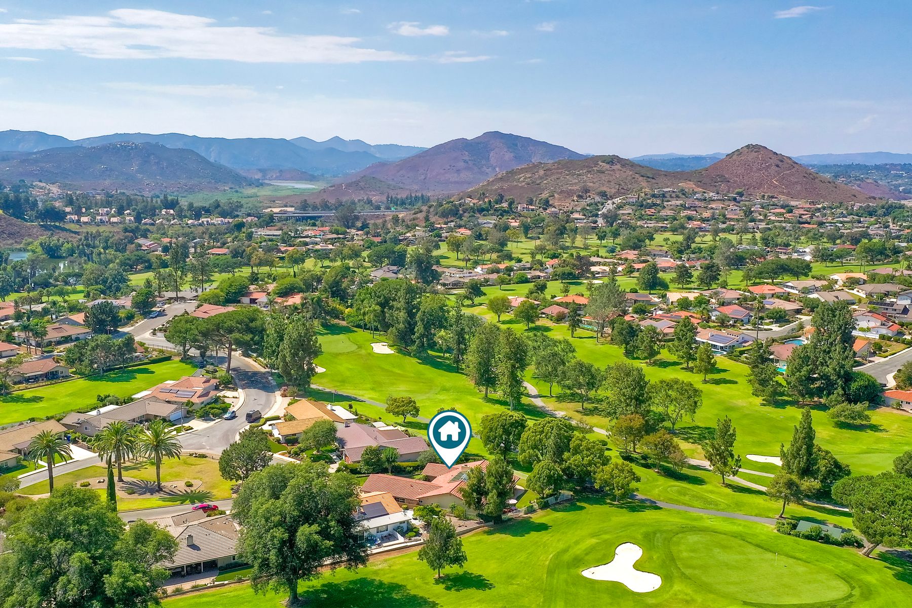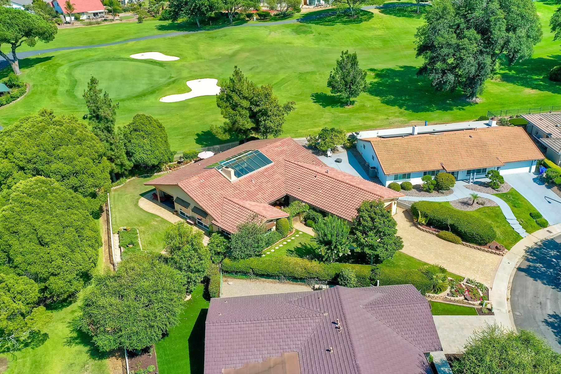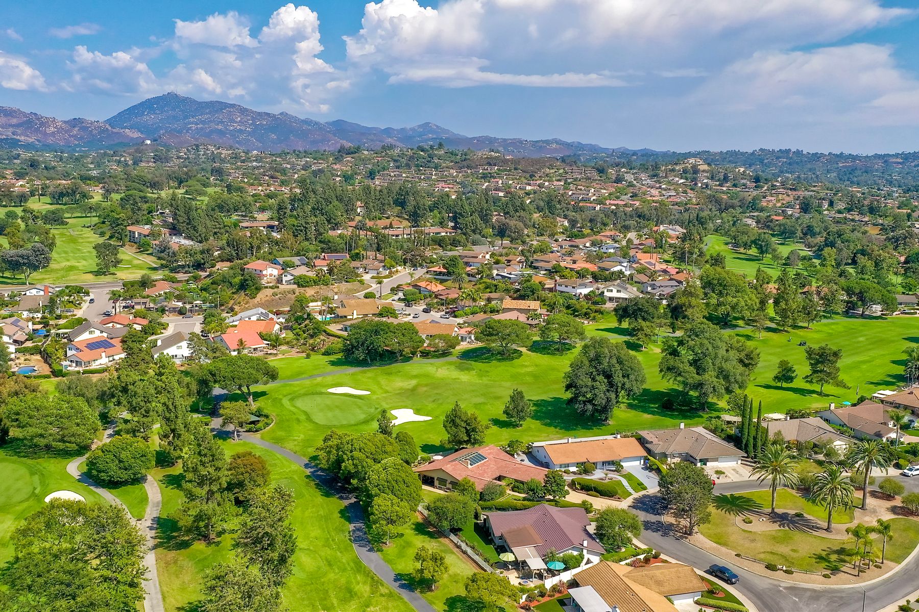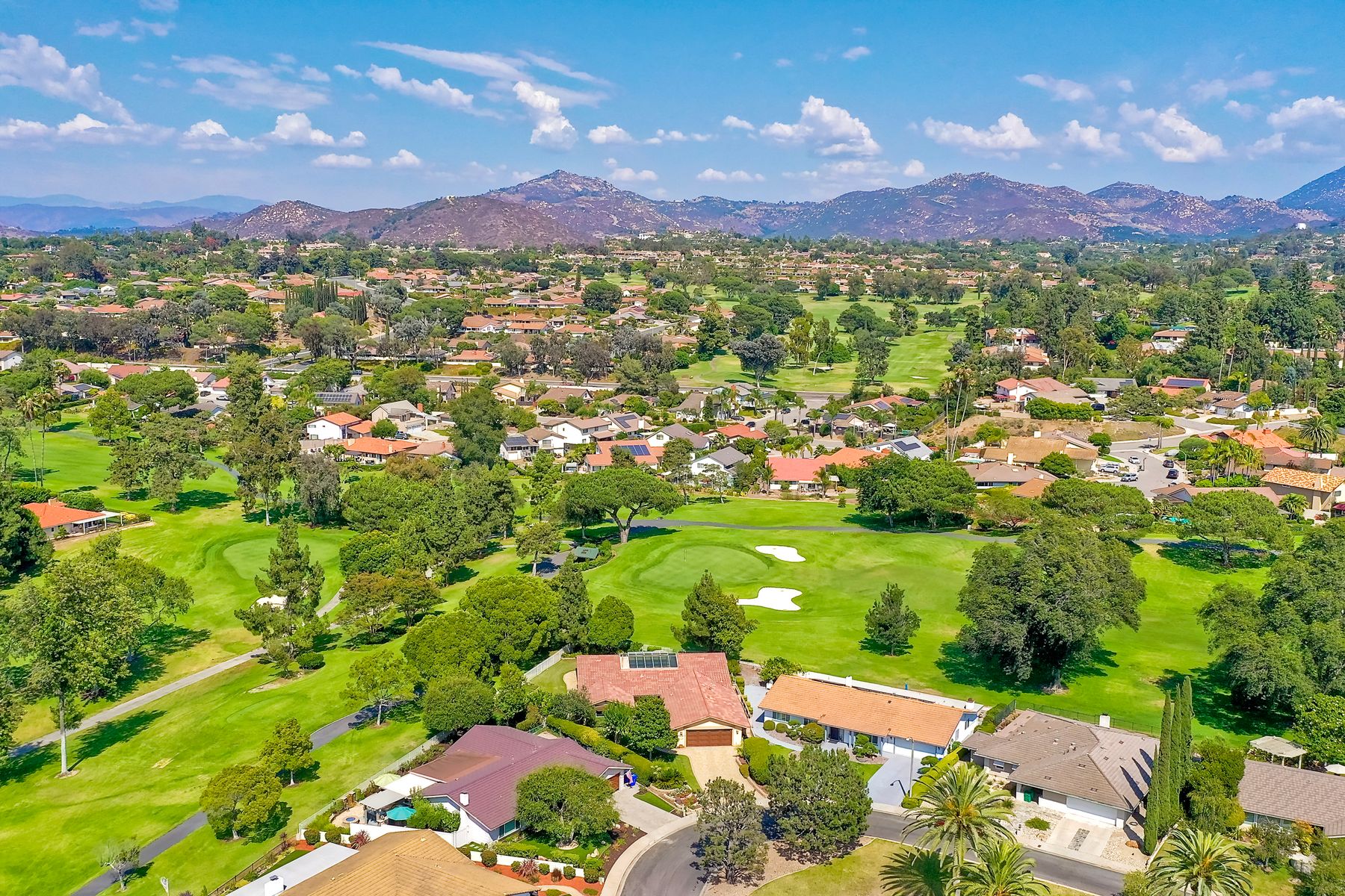 Step into luxury living with this extraordinary ranch-style home, perfectly nestled in the prestigious Don Bernardo Estates, one of the most sought-after neighborhoods in Greens East. With breathtaking 270-degree views, this home overlooks the serene 13th and 17th holes at the Country Club of Rancho Bernardo, offering a truly unparalleled living experience.This meticulously maintained home boasts $390,000 in high-end upgrades, reflecting the pride of ownership at every corner. As you walk through the front door, you are immediately greeted by sweeping golf course views and an open, flowing floorplan. The natural light floods in through a stunning 350-square-foot glass covered atrium, illuminating the home with warmth and elegance.The chef's kitchen features custom cabinetry, gleaming granite countertops, a large island with bar seating, and stainless steel appliances, including a five-burner gas cooktop. Retreat to the expansive master suite, which offers a sanctuary of relaxation with two spacious walk-in closets and a beautifully remodeled en-suite bathroom. The bathroom features travertine flooring, dual vanity sinks, a jetted soaking tub, a walk-in shower with a frameless door, and custom tile surround, creating a spa-like atmosphere in your own home. The pie-shaped 11,800 sq. ft. lot is designed for both beauty and function. The fully fenced backyard, with private gate access to the golf course, is an entertainer's paradise. Enjoy multiple sitting areas, a covered pergola, an above-ground spa, raised planter beds, an elegant fountain, and fruit trees—all set within a lush, professionally landscaped yard. The wrap-around patio, with custom pavers installed in 2022, provides the perfect space for outdoor gatherings or quiet reflection. Additional Features: **New Windows Throughout**New Roof (2019)**New HVAC System (2021)**New Pavers Patio and Driveway (2022) **New Water Heater (2021)**New Garage Door (2022)**Oversized two-car garage with space for a golf cart**Adventure awaits just beyond your doorstep, with Rancho Bernardo Inn, CCRB, and the Rancho Bernardo Winery nearby. And that's not all – membership to the esteemed RB Swim & Tennis Club is covered by HOA fees, offering a plethora of amenities including pools, playgrounds, a gym, Pickleball and more! The property is within the highly rated Poway Unified School District.This home is not just a place to live; it's a lifestyle. With its prime location, impeccable upgrades, and captivating views, this property offers an exceptional opportunity to own a piece of paradise in Rancho Bernardo.