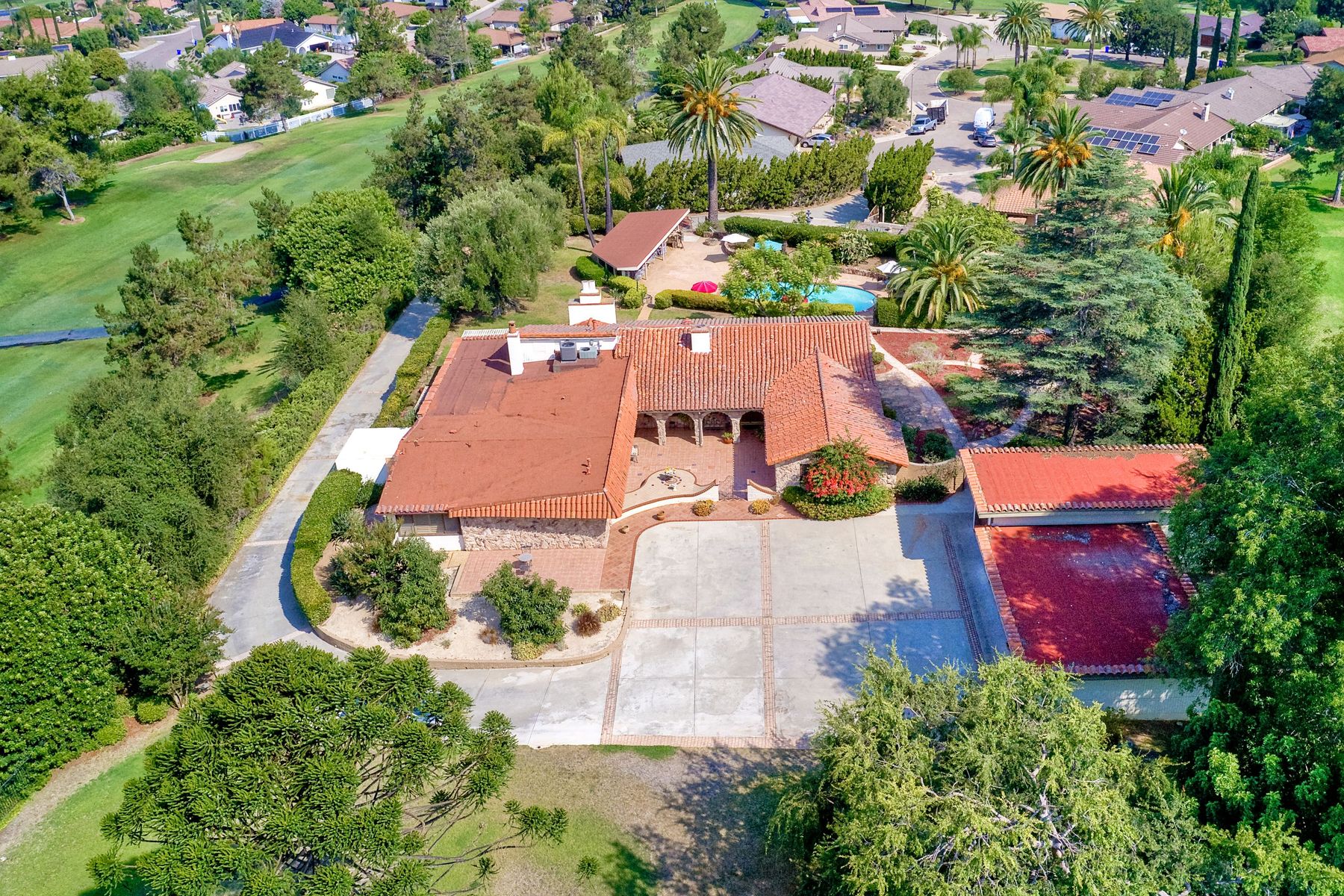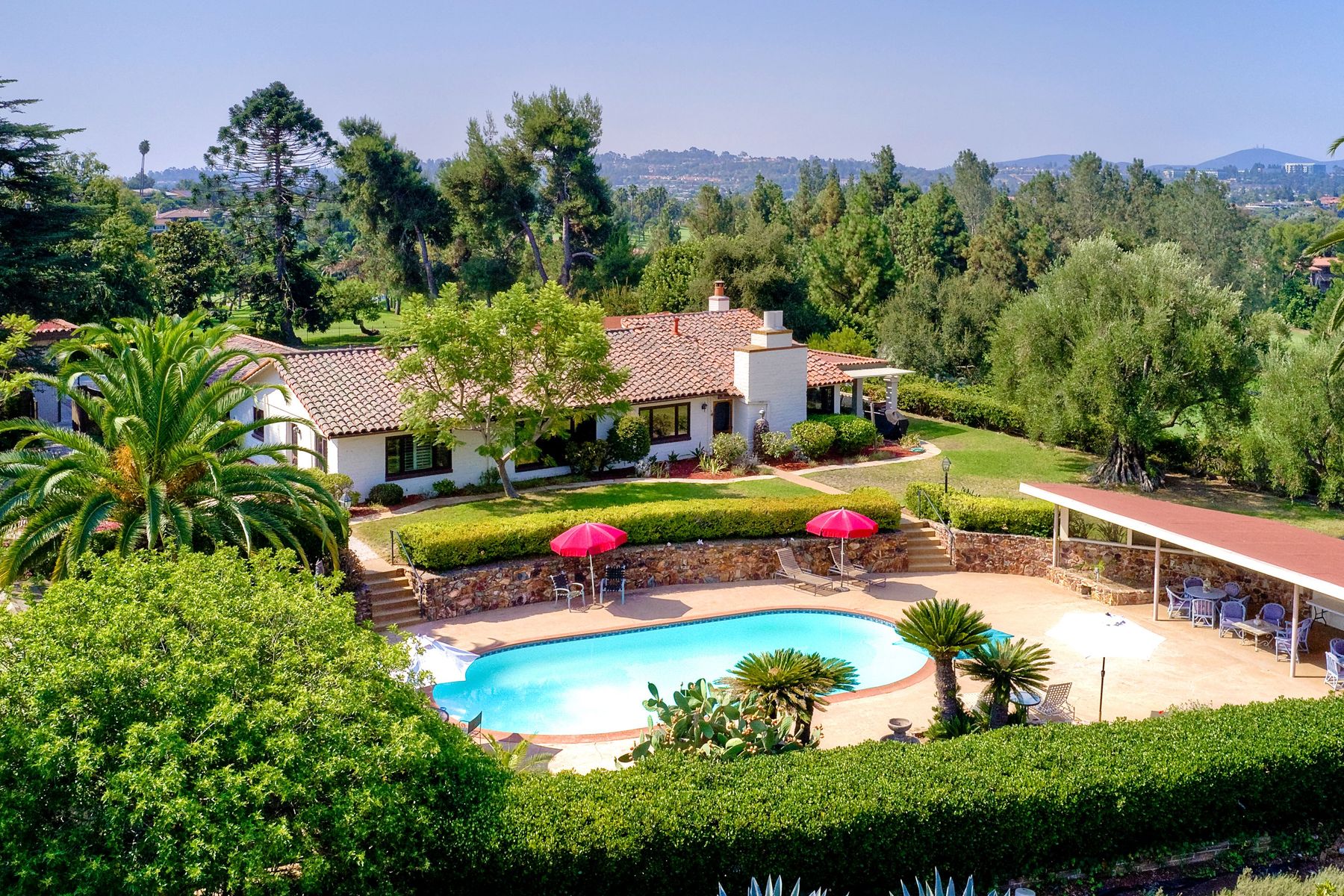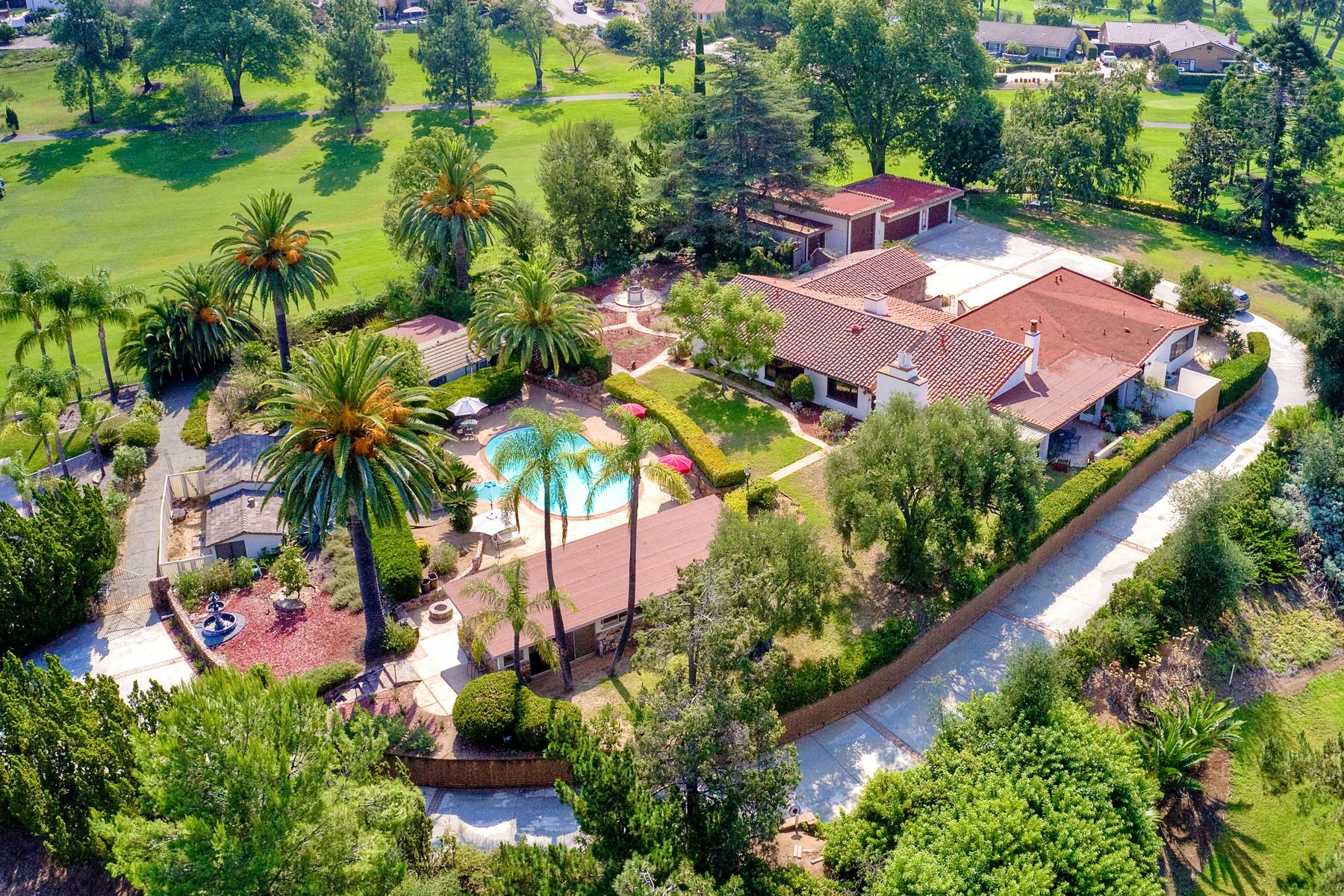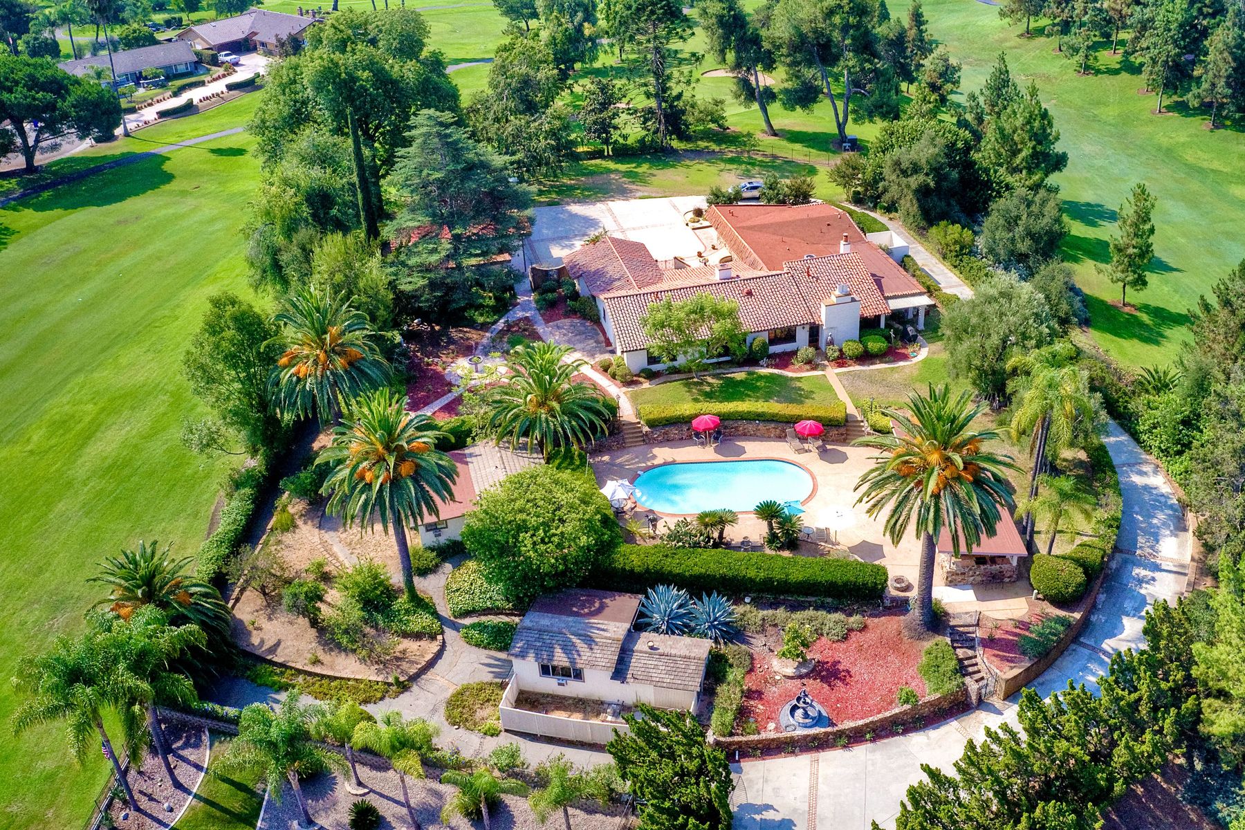 This historic home is truly one of a kind in North County San Diego! Located between the 13th & 18th fairways of the Golf Club of R.B. on 1.35 acre private estate . Imagine the opportunity of owning this premier located home. Boundless options to create the home of a lifetime. Private gated entry leads to open & spacious parklike grounds. Five car garage + golf / workshop garage w/ bath. Single story with 4,199 sq. ft. of living area. Open & spacious remodeled kitchen. Separate Casita & exercise studio. This is the original home of Rancho Bernardo, the entire community started right here in the living room where the owners and developers planned one of the first, in the nation, The Planned Community of Rancho Bernardo! So much history. This One Of A Kind Property, will satisfy your desire to own the #1 location in Rancho Bernardo! Absolute privacy and lush grounds & mature landscaping. The Country Club Of Rancho Bernardo 13th and 18th fairways border each side of this estate size property on 1.35 areas. Separate pool / guest house with 549 square feet, a 257 square foot exercise room and over 1,580 square feet of enclosed garage area which includes a 1/2 bath. Beautifully upgraded kitchen, $250,000 in upgrades, with pizza oven! The master suite is very large with a separate sitting room / office, beautiful bath suite with stand alone tub, separate shower & private patio with views!. Ranch House Road, an exclusive neighborhood, is referred to as Don Bernardo Estates. Annual HOA fee of approx. $200.00 for the maintenance of their local community park. Enjoy The Rancho Bernardo Swim & Tennis Club membership offering swimming pool & spa, lighted tennis courts , playgrounds for kids, ball fields and much more! (Furniture in the home photos is virtual staging). Note under Documents tab some history of the start of Rancho Bernardo.