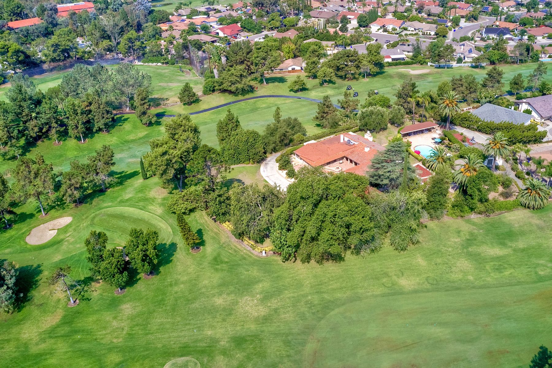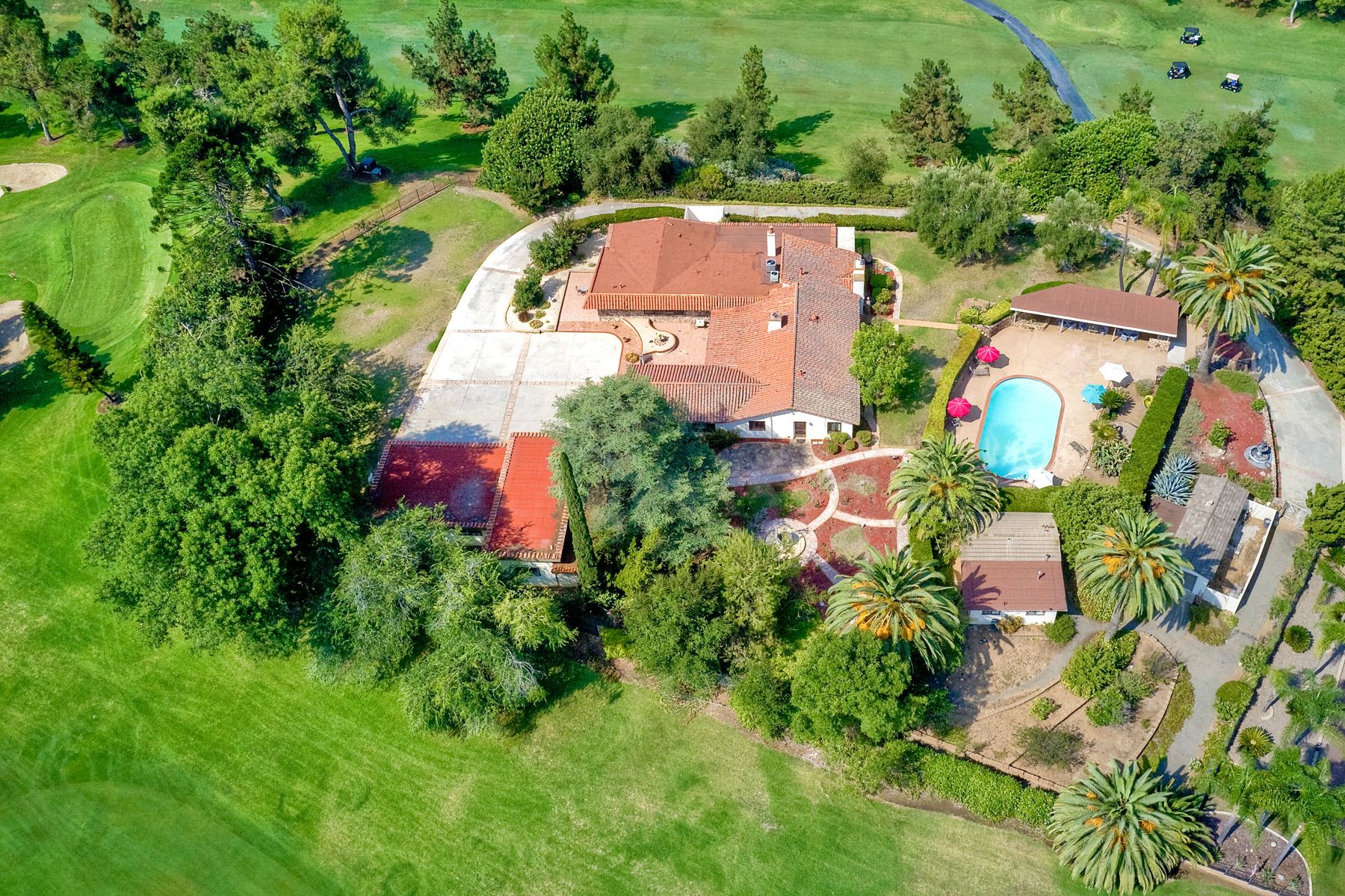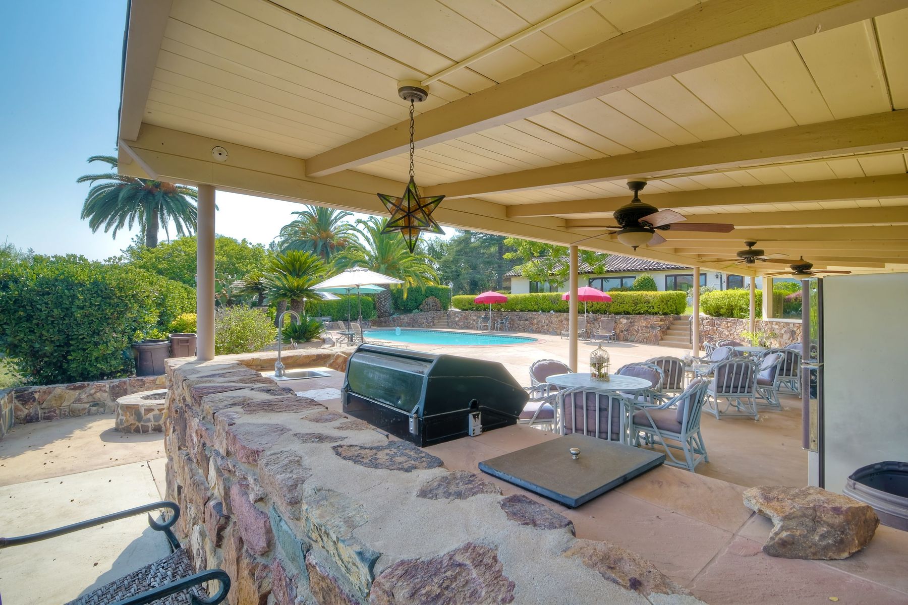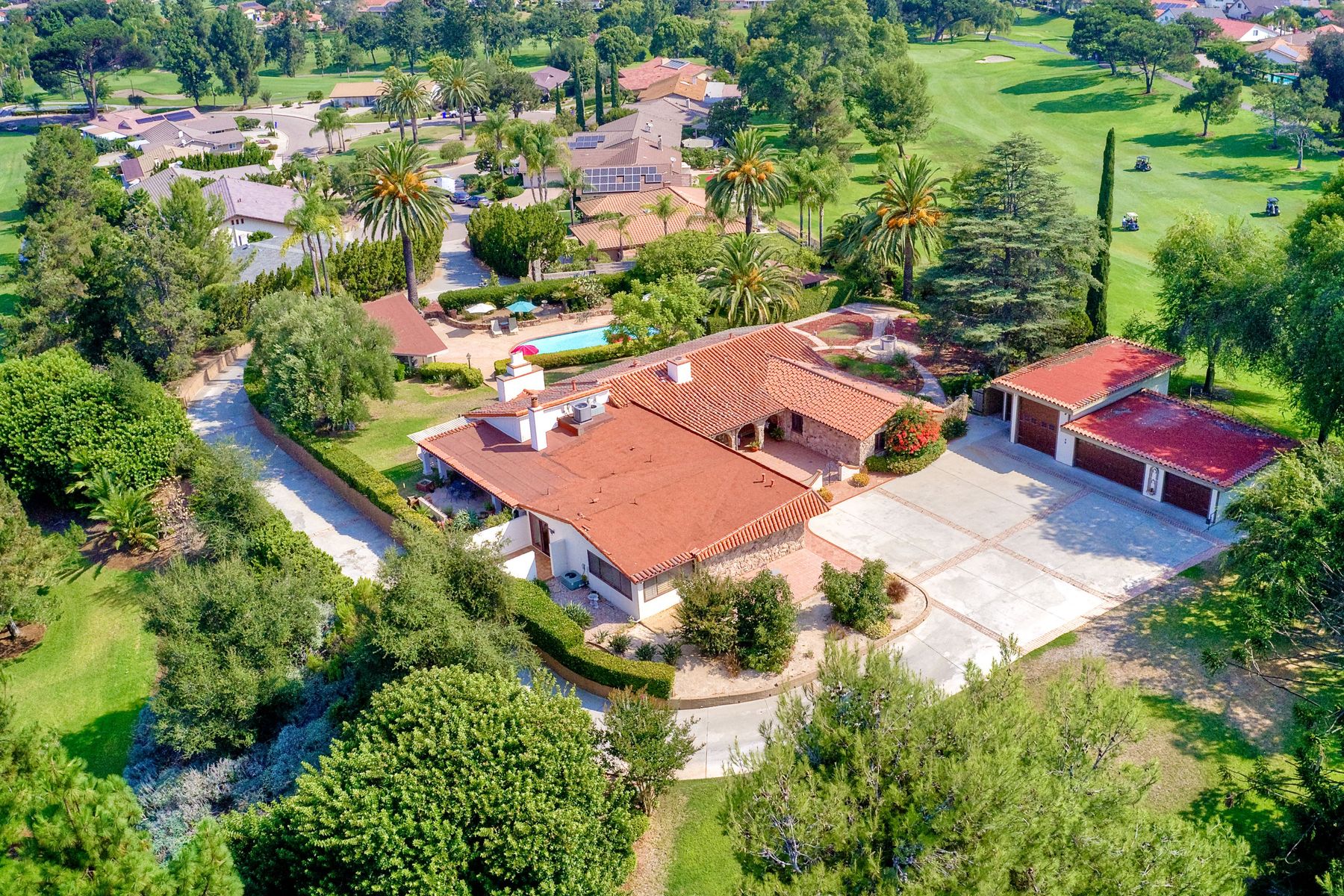 This historic home is truly one of a kind in North County San Diego! Located between the 13th & 18th fairways of the Golf Club of R.B. on 1.35 acre private estate . Imagine the opportunity of owning this premier located home. Boundless options to create the home of a lifetime. Private gated entry leads to open & spacious parklike grounds. Five car garage + golf / workshop garage w/ bath. Single story with 4,199 sq. ft. of living area. Open & spacious remodeled kitchen. Separate Casita & exercise studio. This is the original home of Rancho Bernardo, the entire community started right here in the living room where the owners and developers planned one of the first, in the nation, The Planned Community of Rancho Bernardo! So much history. This One Of A Kind Property, will satisfy your desire to own the #1 location in Rancho Bernardo! Absolute privacy and lush grounds & mature landscaping. The Country Club Of Rancho Bernardo 13th and 18th fairways border each side of this estate size property on 1.35 areas. Separate pool / guest house with 549 square feet, a 257 square foot exercise room and over 1,580 square feet of enclosed garage area which includes a 1/2 bath. Beautifully upgraded kitchen, $250,000 in upgrades, with pizza oven! The master suite is very large with a separate sitting room / office, beautiful bath suite with stand alone tub, separate shower & private patio with views!. Ranch House Road, an exclusive neighborhood, is referred to as Don Bernardo Estates. Annual HOA fee of approx. $200.00 for the maintenance of their local community park. Enjoy The Rancho Bernardo Swim & Tennis Club membership offering swimming pool & spa, lighted tennis courts , playgrounds for kids, ball fields and much more! (Furniture in the home photos is virtual staging). Note under Documents tab some history of the start of Rancho Bernardo.