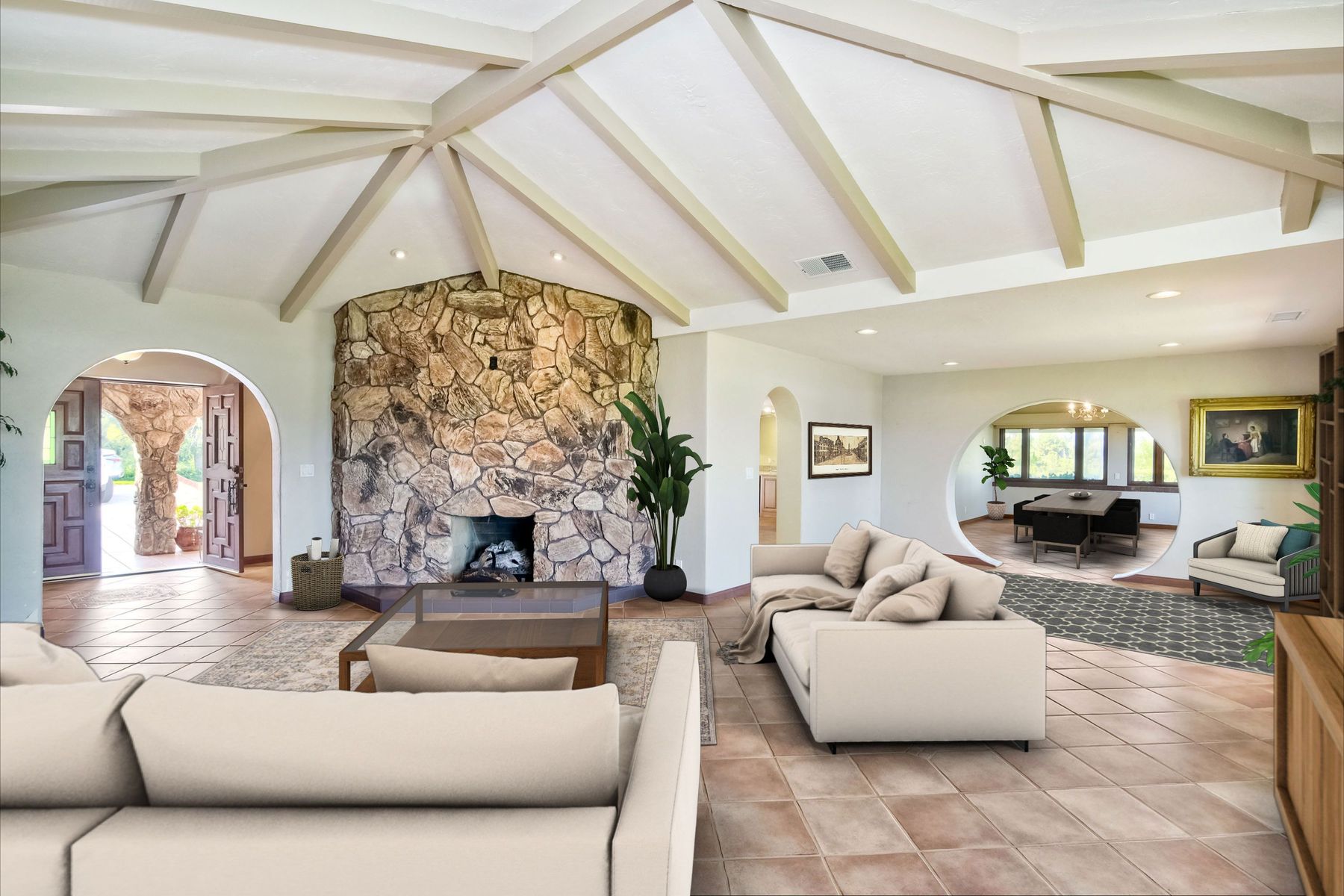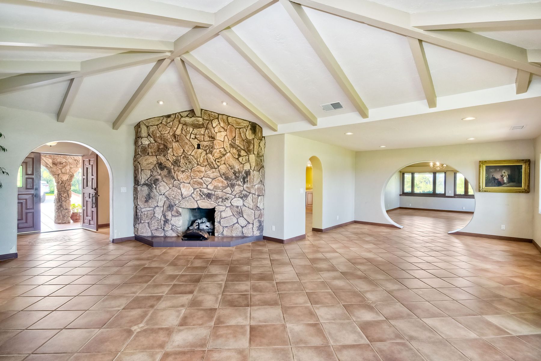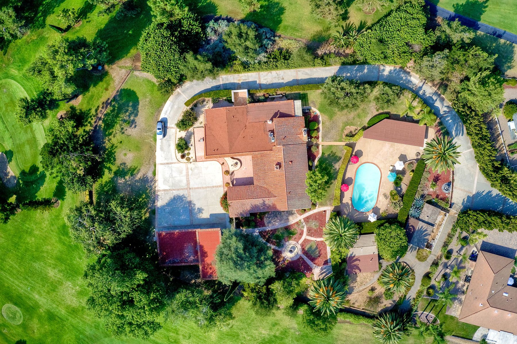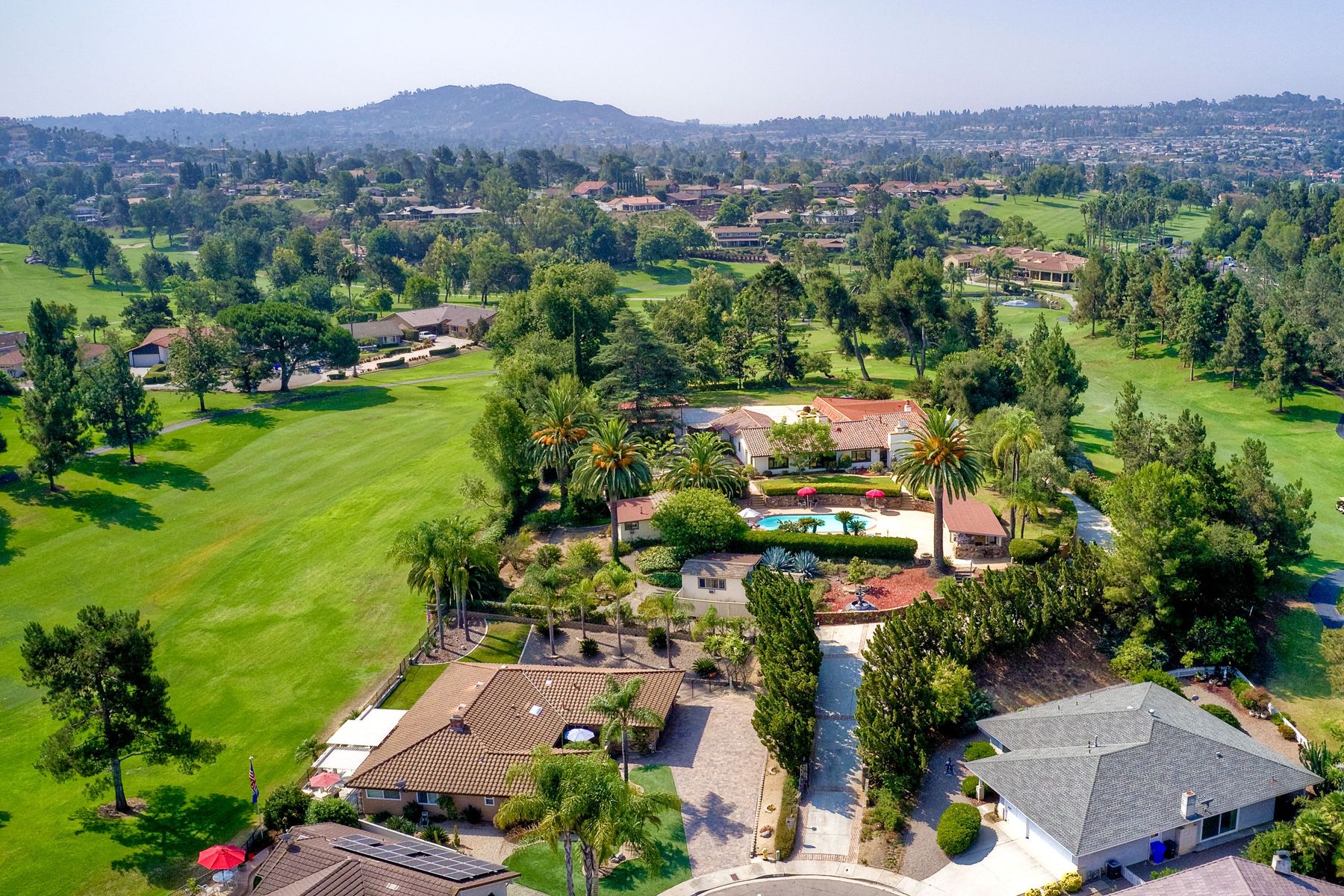 This historic home is truly one of a kind in North County San Diego! Located between the 13th & 18th fairways of the Golf Club of R.B. on 1.35 acre private estate . Imagine the opportunity of owning this premier located home. Boundless options to create the home of a lifetime. Private gated entry leads to open & spacious parklike grounds. Five car garage + golf / workshop garage w/ bath. Single story with 4,199 sq. ft. of living area. Open & spacious remodeled kitchen. Separate Casita & exercise studio. This is the original home of Rancho Bernardo, the entire community started right here in the living room where the owners and developers planned one of the first, in the nation, The Planned Community of Rancho Bernardo! So much history. This One Of A Kind Property, will satisfy your desire to own the #1 location in Rancho Bernardo! Absolute privacy and lush grounds & mature landscaping. The Country Club Of Rancho Bernardo 13th and 18th fairways border each side of this estate size property on 1.35 areas. Separate pool / guest house with 549 square feet, a 257 square foot exercise room and over 1,580 square feet of enclosed garage area which includes a 1/2 bath. Beautifully upgraded kitchen, $250,000 in upgrades, with pizza oven! The master suite is very large with a separate sitting room / office, beautiful bath suite with stand alone tub, separate shower & private patio with views!. Ranch House Road, an exclusive neighborhood, is referred to as Don Bernardo Estates. Annual HOA fee of approx. $200.00 for the maintenance of their local community park. Enjoy The Rancho Bernardo Swim & Tennis Club membership offering swimming pool & spa, lighted tennis courts , playgrounds for kids, ball fields and much more! (Furniture in the home photos is virtual staging). Note under Documents tab some history of the start of Rancho Bernardo.