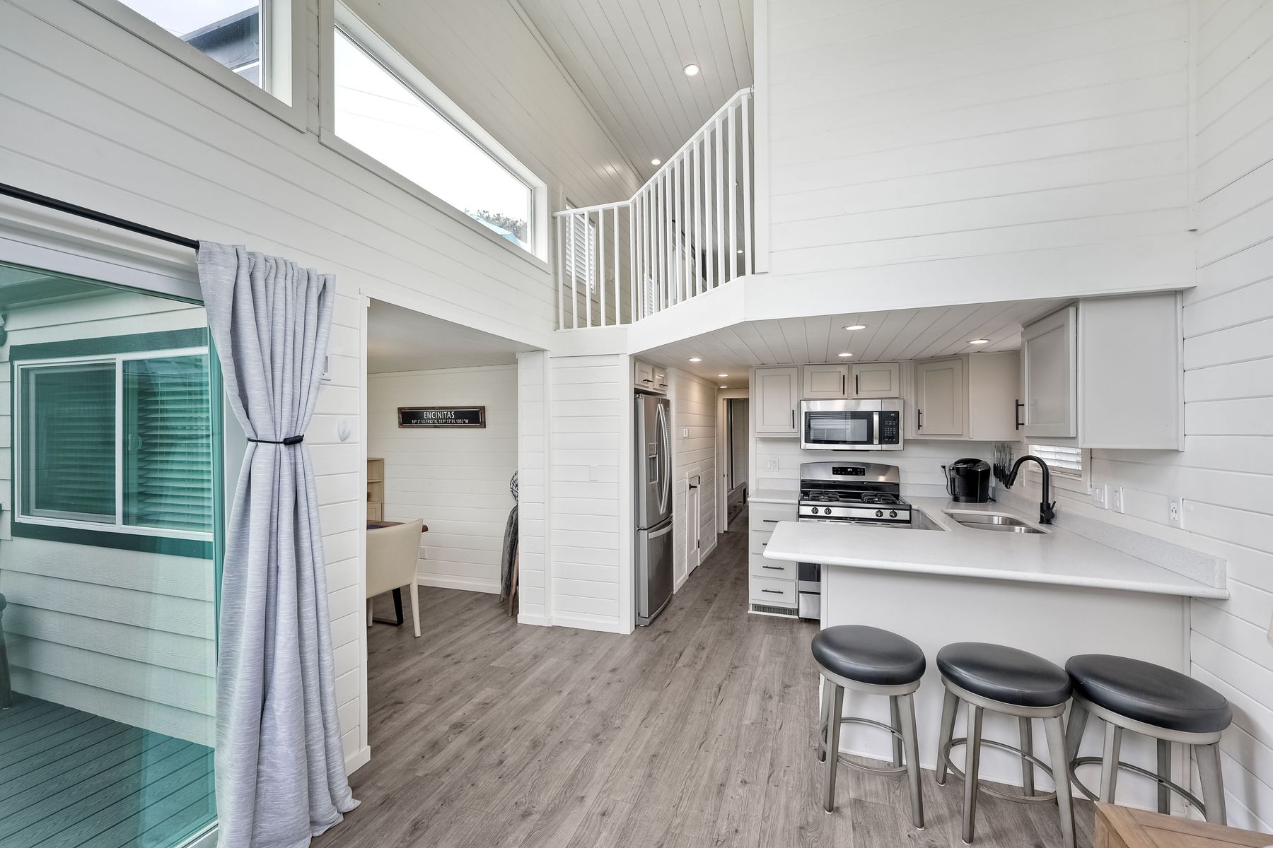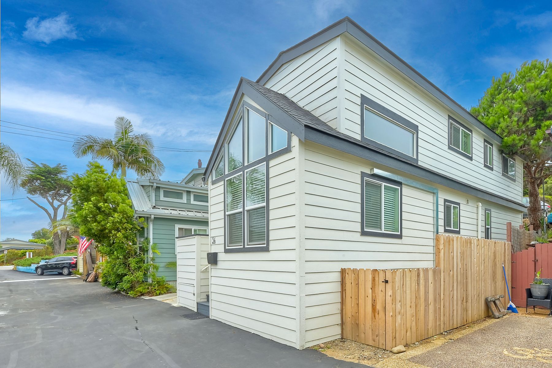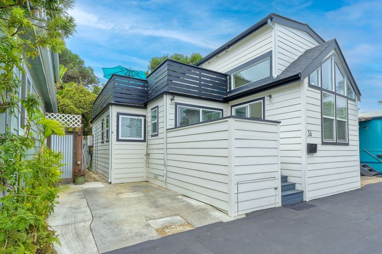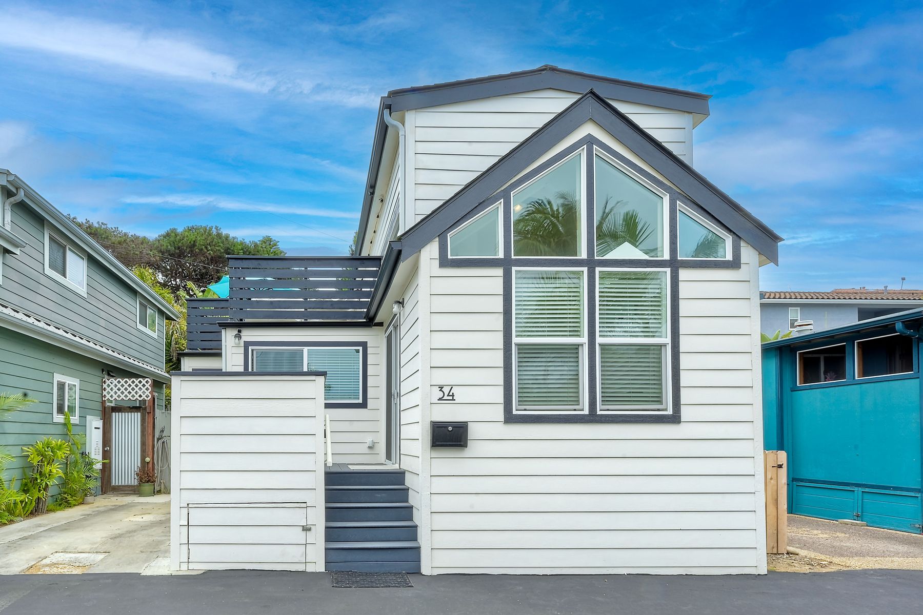 A particularly rare find! This newer beach cottage offers 3 beds and 3 bathrooms with a spacious upper deck for relaxing and entertaining! Literally steps to the sand, this home has everything you could want. From laundry to air conditioning to stainless appliances, I can't say enough about this light and bright space. Live in the best community in North County with walkability to restaurants, wineries, breweries, coffee shops, surf shops and most importantly the beach! No property tax or HOA fees. This home is perfect for a primary residence, vacation home or an investment property. Space rent $1,829/month.