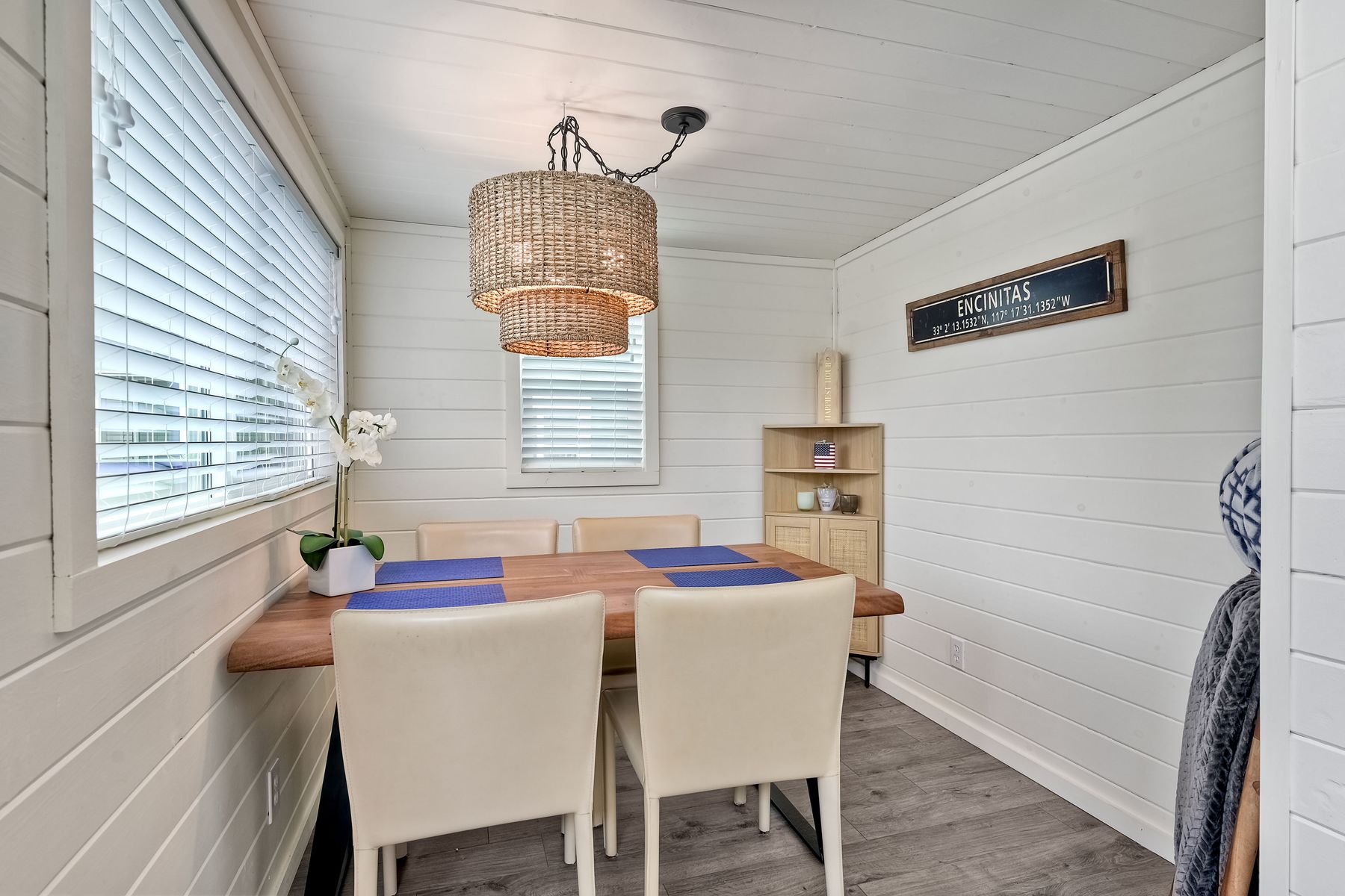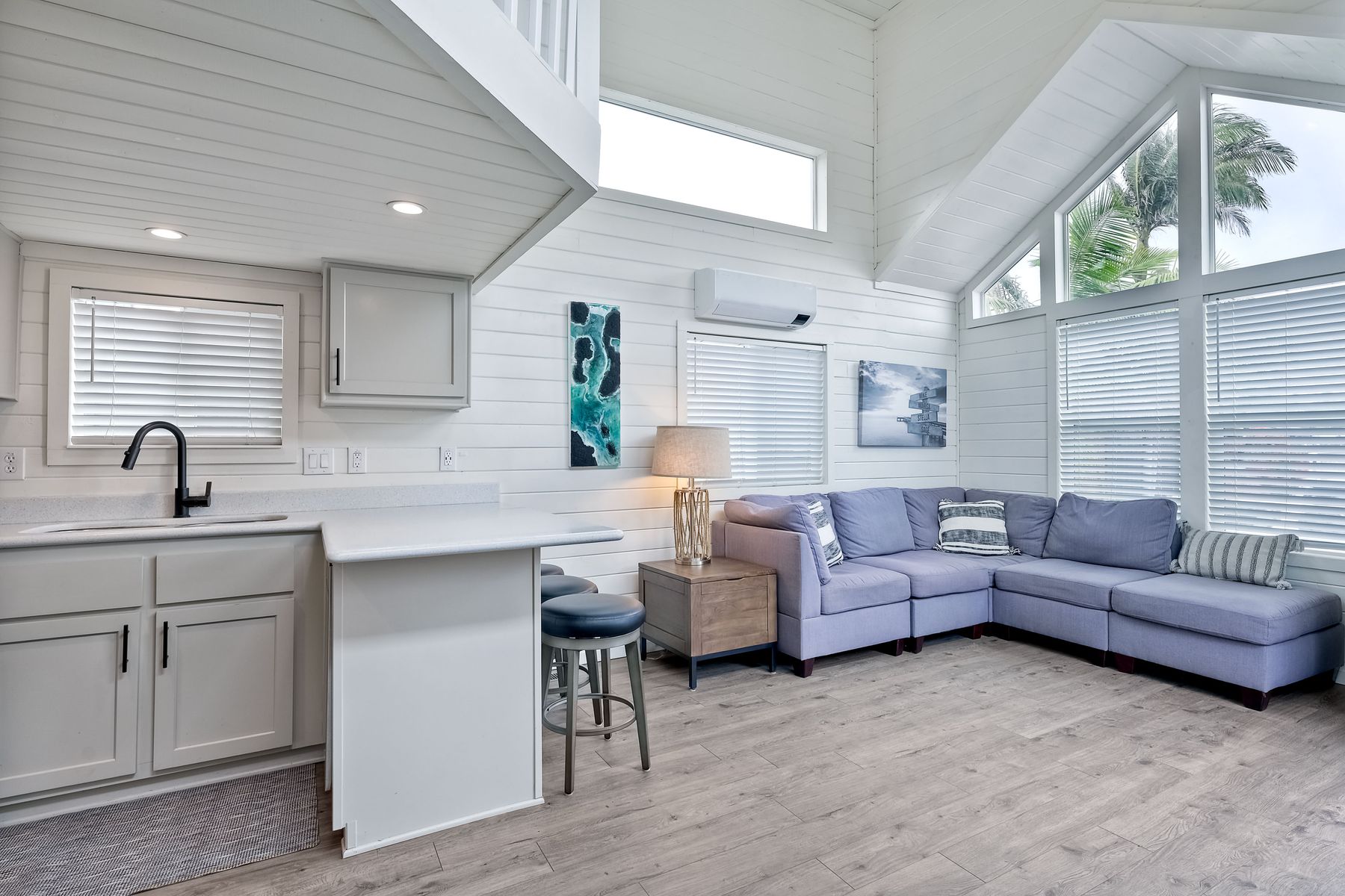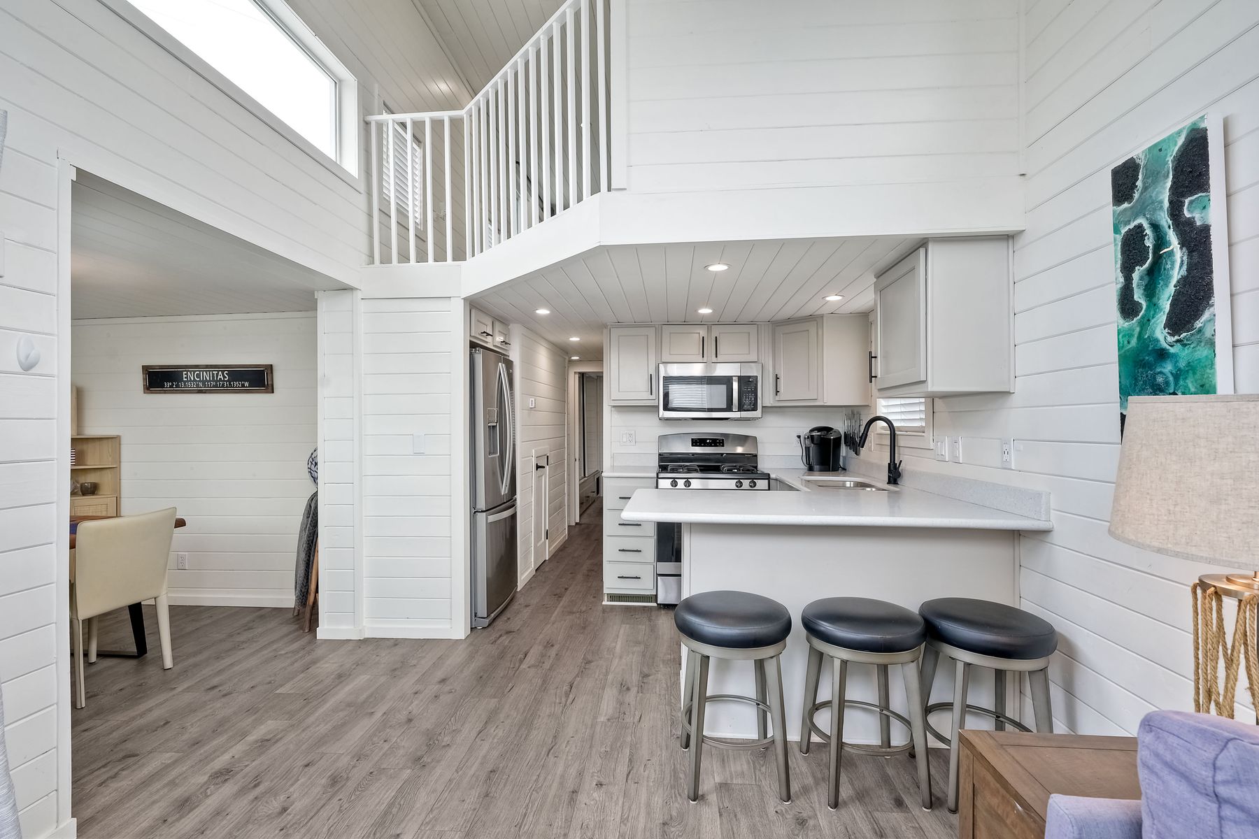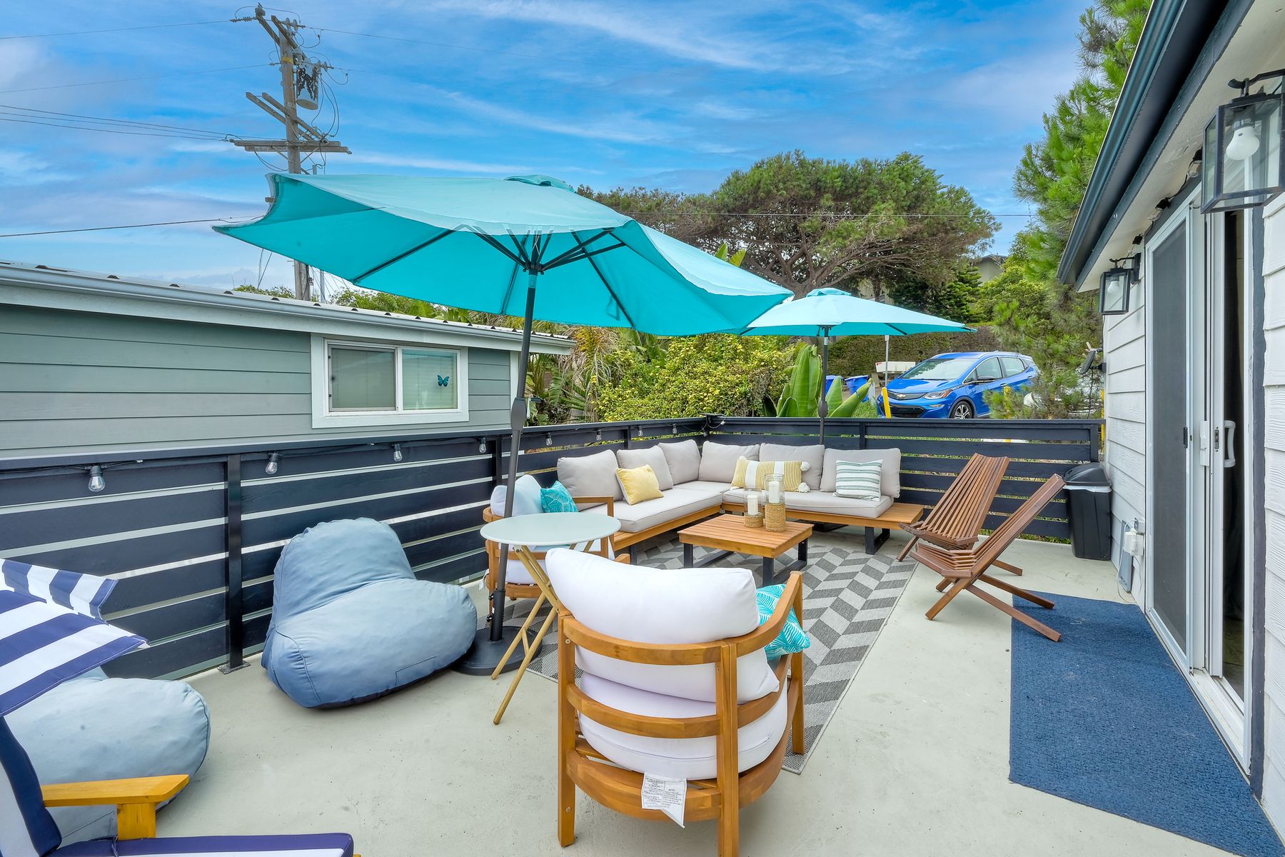 A particularly rare find! This newer beach cottage offers 3 beds and 3 bathrooms with a spacious upper deck for relaxing and entertaining! Literally steps to the sand, this home has everything you could want. From laundry to air conditioning to stainless appliances, I can't say enough about this light and bright space. Live in the best community in North County with walkability to restaurants, wineries, breweries, coffee shops, surf shops and most importantly the beach! No property tax or HOA fees. This home is perfect for a primary residence, vacation home or an investment property. Space rent $1,829/month.