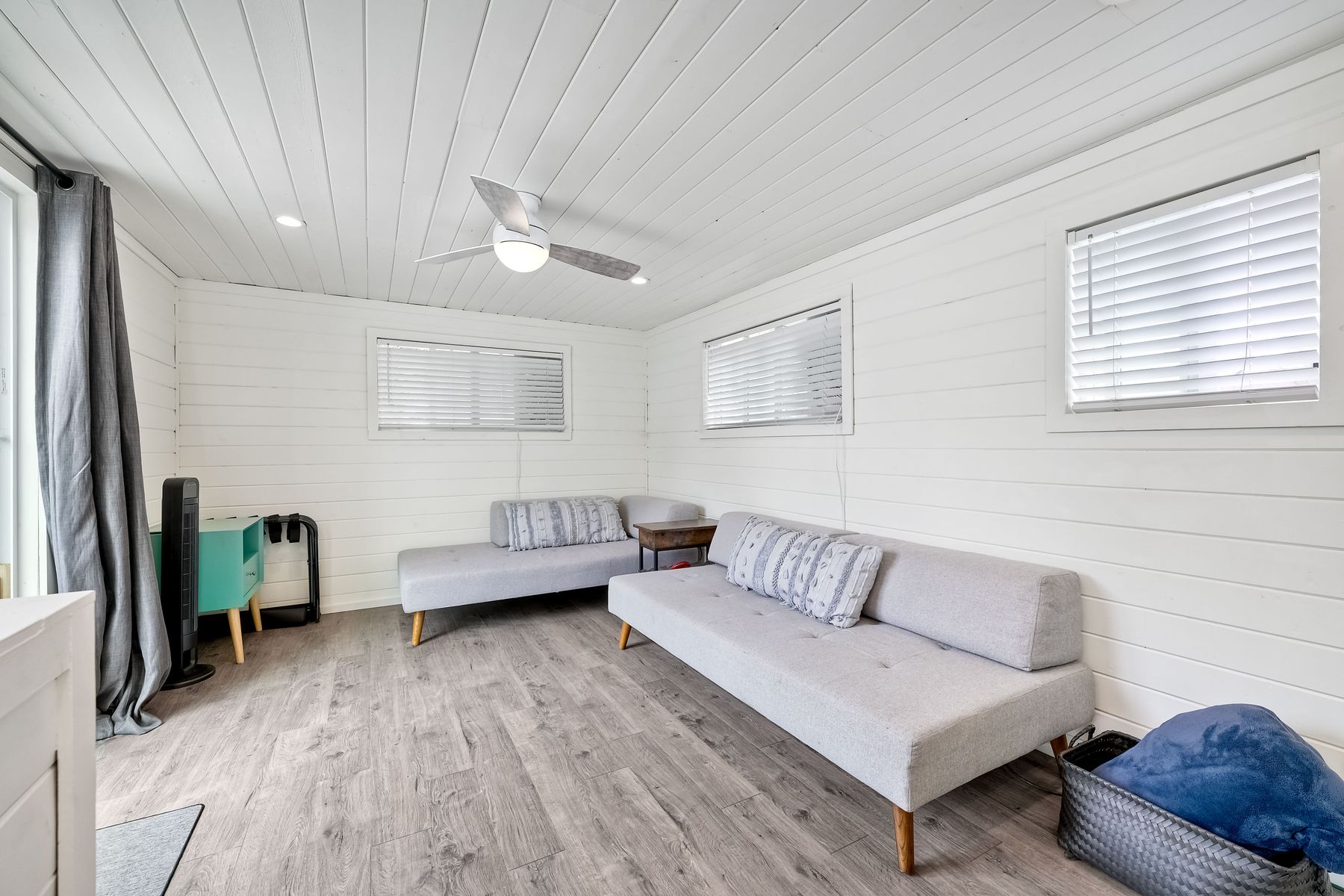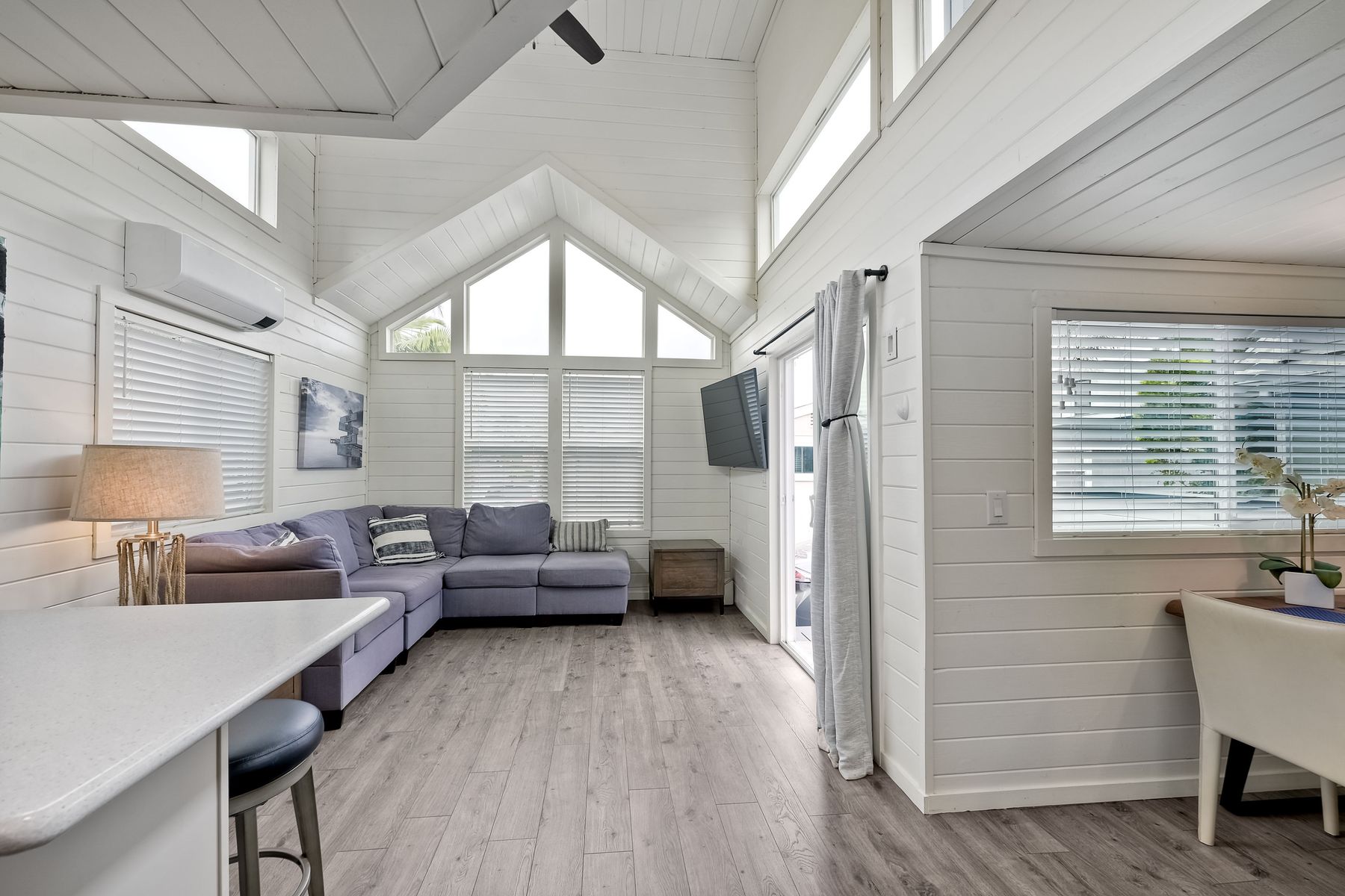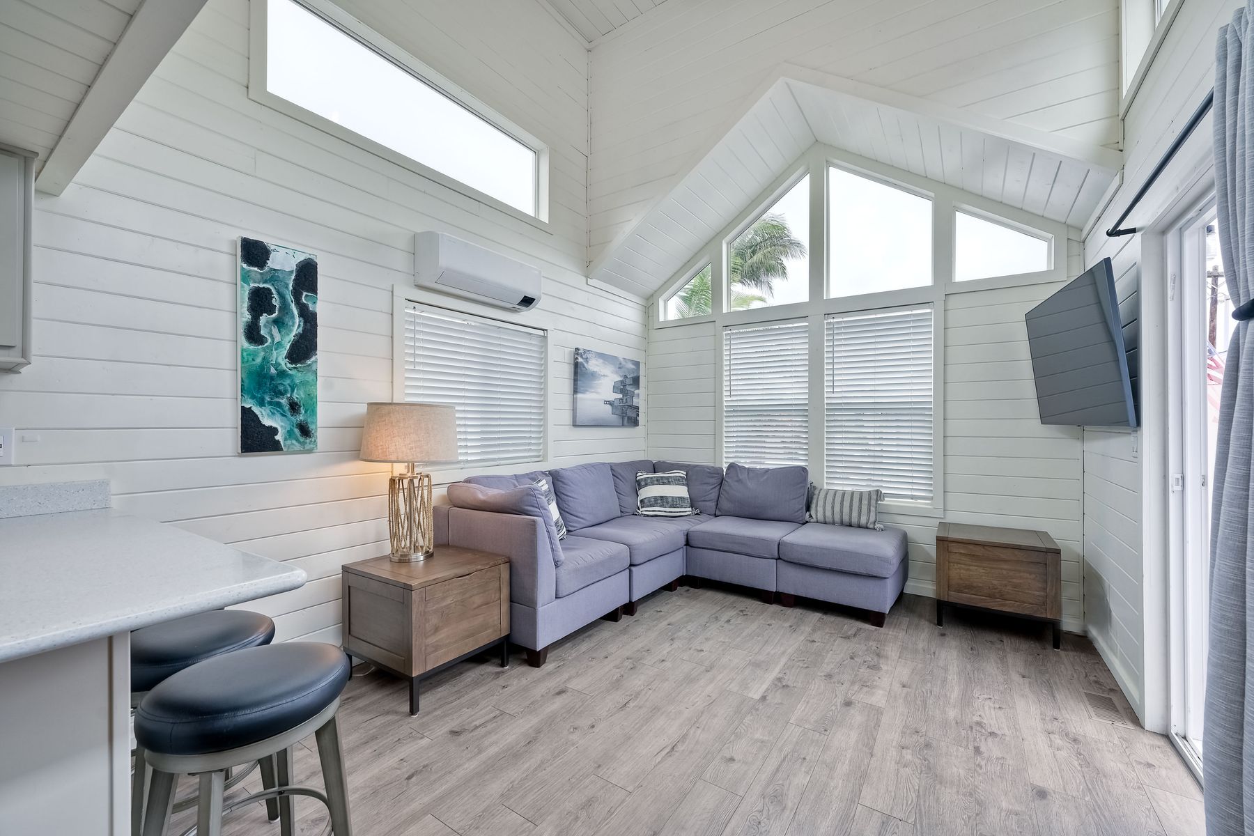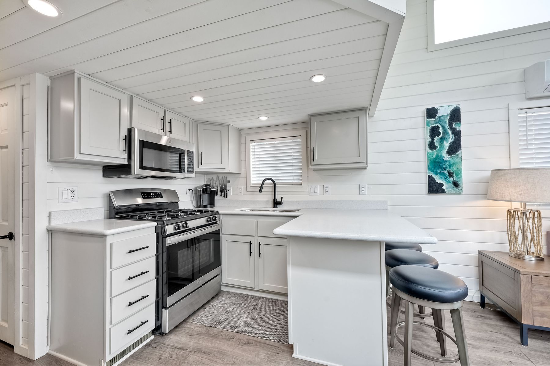 A particularly rare find! This newer beach cottage offers 3 beds and 3 bathrooms with a spacious upper deck for relaxing and entertaining! Literally steps to the sand, this home has everything you could want. From laundry to air conditioning to stainless appliances, I can't say enough about this light and bright space. Live in the best community in North County with walkability to restaurants, wineries, breweries, coffee shops, surf shops and most importantly the beach! No property tax or HOA fees. This home is perfect for a primary residence, vacation home or an investment property. Space rent $1,829/month.