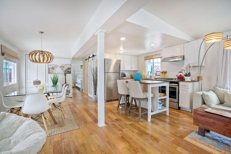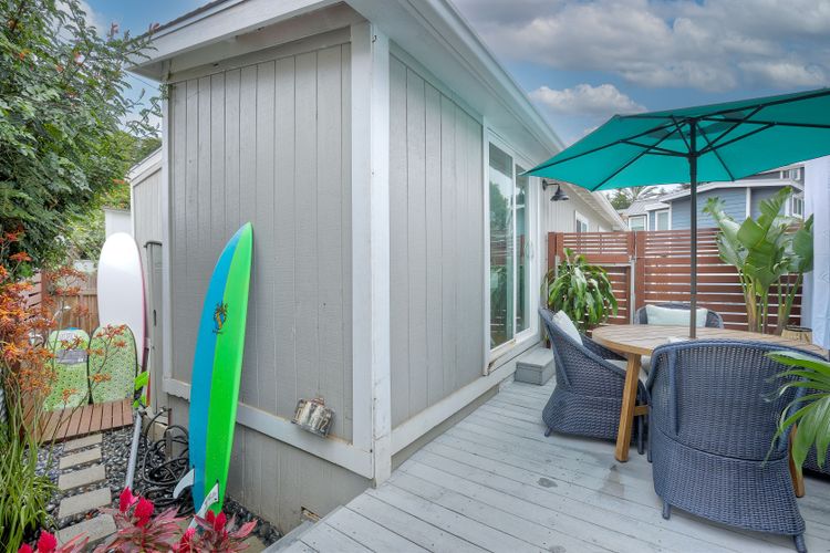 If you are looking for the perfect beach bungalow in the perfect beach town, look no further! Located in the idyllic Leucadia community, in the coveted park, Valley of Dreams, this light and bright remodeled home embodies everything modern beachy and is surrounded by multi-million dollar homes and just steps to the sand! From the dutch door, to the outdoor deck/patio and shower, to the light wood flooring, to the white kitchen with stainless appliances, this home is perfection! Offering one extra-large bedroom with office space this home can be easily converted to a two-bedroom, one spacious bathroom, large open-concept family room and kitchen and dining area are just perfect for entertaining. Walk to the beach, restaurants, shopping, breweries, wineries, coffee shops, surf shops and the Farmer's Market. No property tax or HOA fees. Space rent $1,829/month. This home is perfect for a primary residence, vacation home, or investment property.