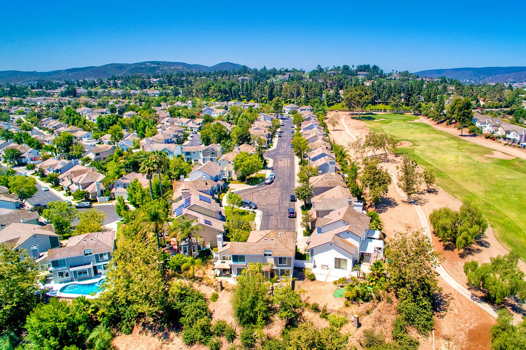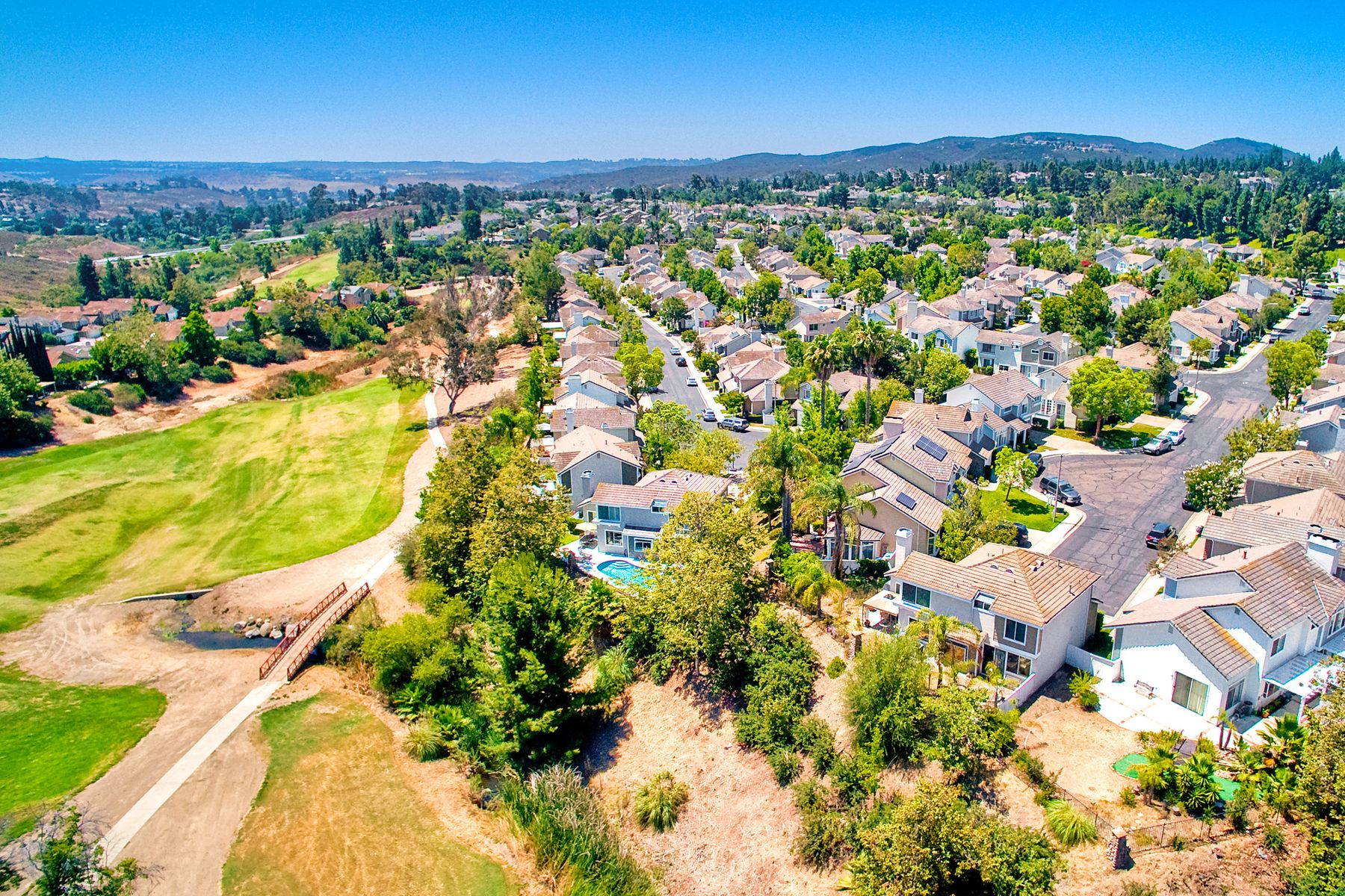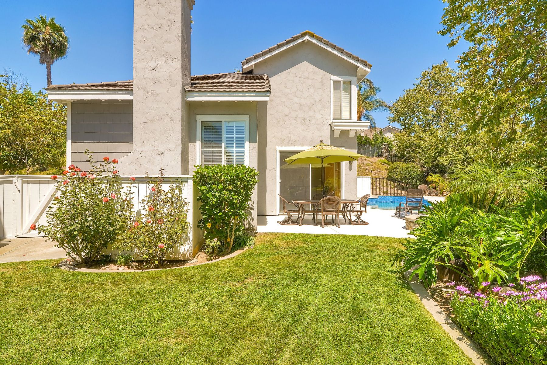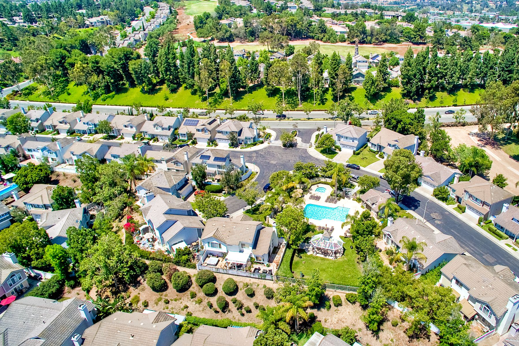 Absolutely the BEST location in the entire gated community of Heritage Hill! At the end of a cul-de-sac with a long driveway, double sized backyard, and golf course views! This lovely home is light, bright, and move-in ready, with fresh paint, new carpet and tile, plantation shutters, and crown moulding. The very private backyard is perfect for entertaining, featuring a sparkling pool and spa, firepit, large grassy area, and backing to the golf course. Award winning Poway schools and no Mello Roos! Beautiful curb appeal greets you as you drive up to this wonderful home in the Heritage Hill neighborhood of Carmel Mountain Ranch. The chef’s kitchen features white cabinetry, stainless steel appliances, a large island with butcher block top, and a garden window looking out at the pool, garden, and golf course beyond! The kitchen opens up to a family room with fantastic built-ins on one side, and a formal dining room, also with built-ins, on the other. The living room has volume ceilings, plenty of windows, and a cozy brick fireplace. The master suite is generously sized, with double door entry, vaulted ceilings, views of the golf course, two closets, and a luxurious, bright bath featuring a freshly glazed soaking tub and separate shower. One of the most unique features of this home is the lot. Situated at the end of a cul-de-sac, the backyard is approximately twice the size of the other homes and, unlike the other homes in the neighborhood, 12391 Cornwallis Square is set back off the street, at the end of a long driveway. The large backyard includes a gorgeous pool and spa, stone firepit, nice grassy area, and views of the golf course! And if one pool isn’t enough, the community of Heritage Hill also has a pool and spa for neighborhood gatherings!