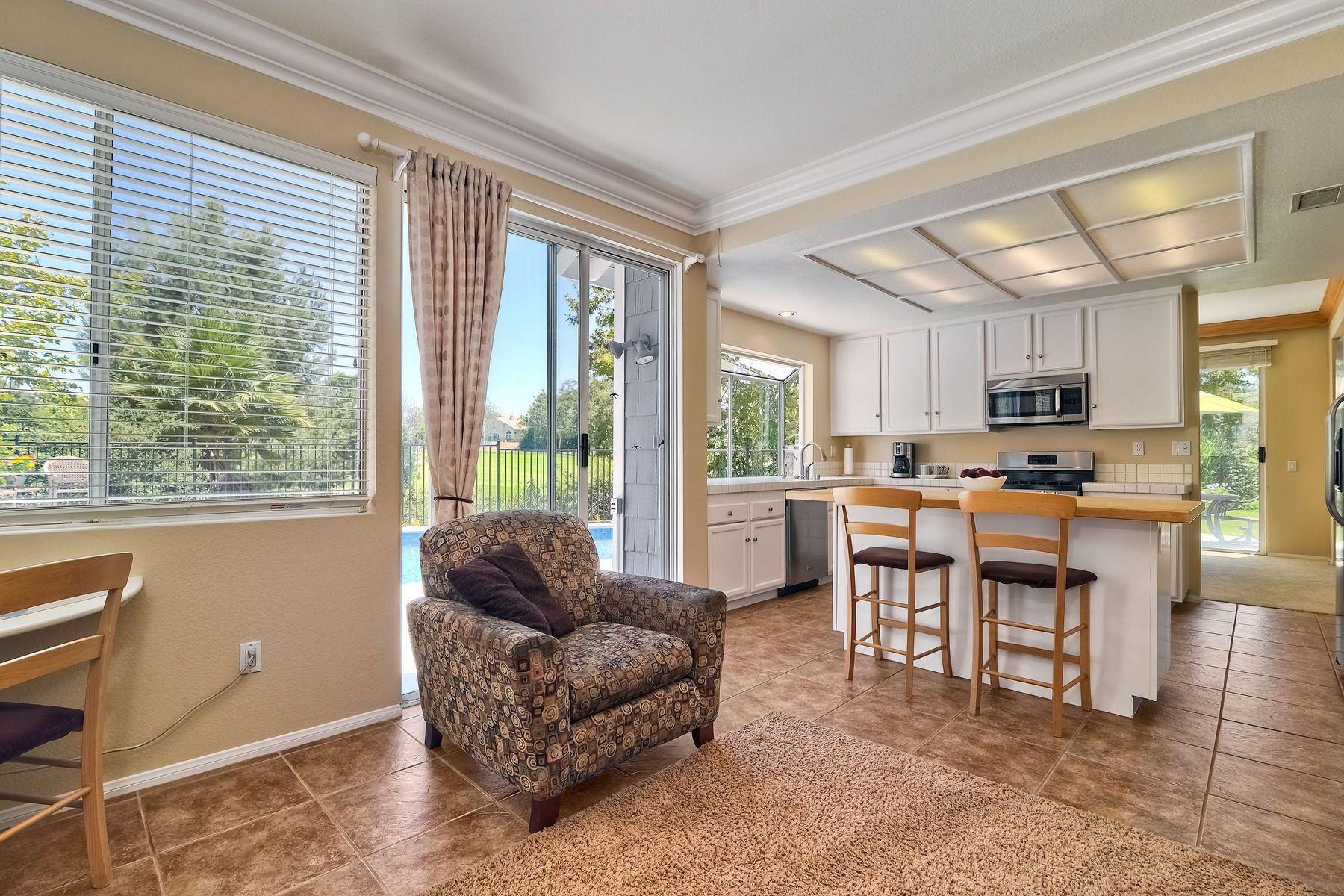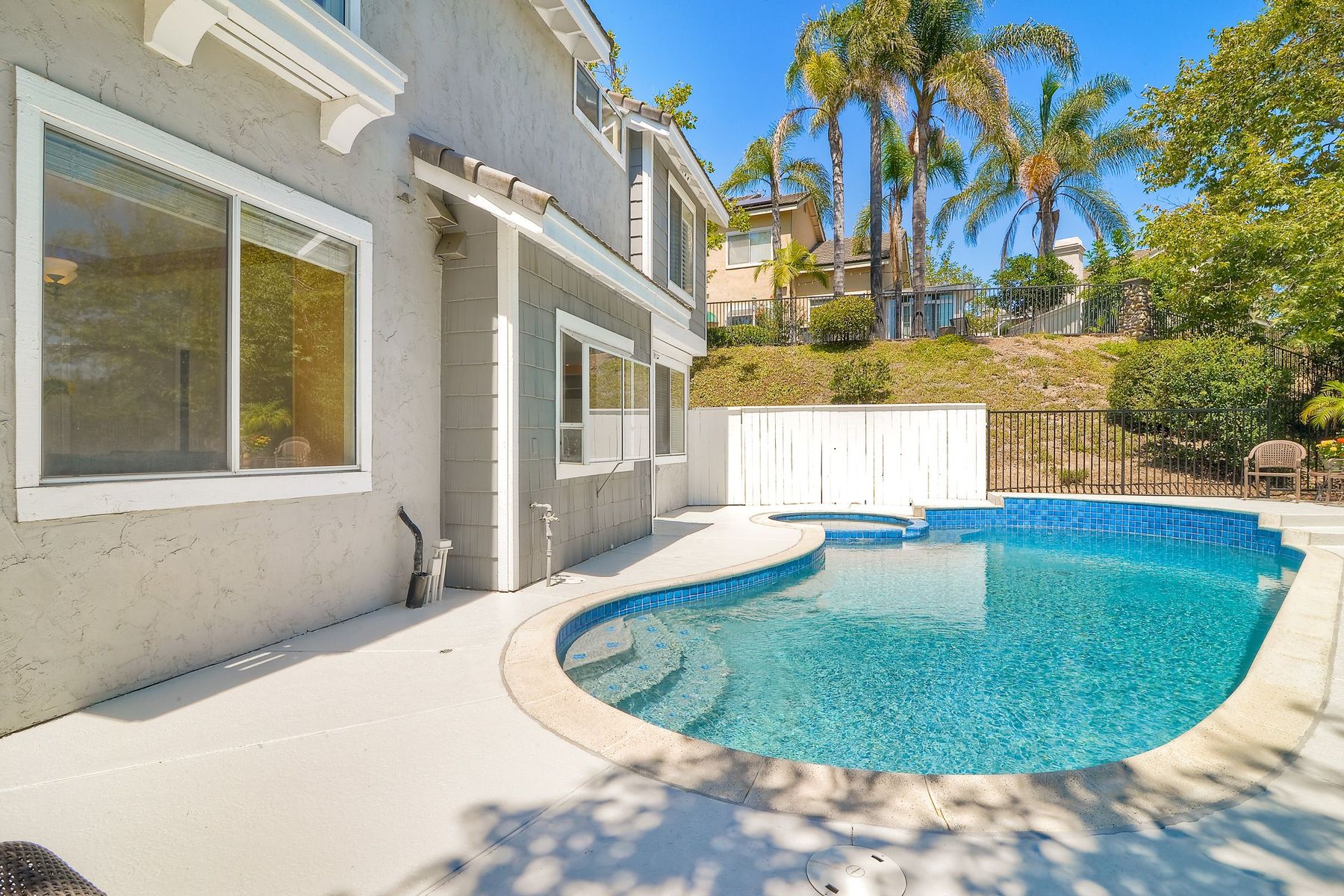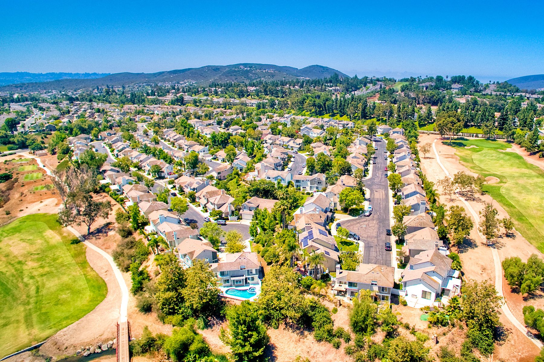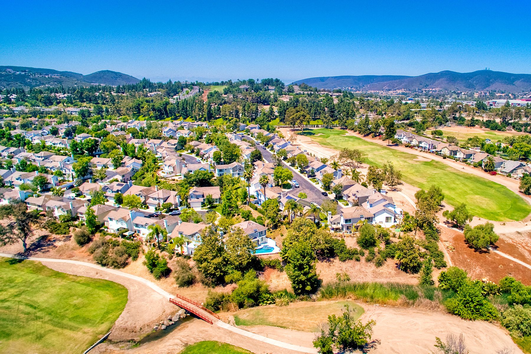 Absolutely the BEST location in the entire gated community of Heritage Hill! At the end of a cul-de-sac with a long driveway, double sized backyard, and golf course views! This lovely home is light, bright, and move-in ready, with fresh paint, new carpet and tile, plantation shutters, and crown moulding. The very private backyard is perfect for entertaining, featuring a sparkling pool and spa, firepit, large grassy area, and backing to the golf course. Award winning Poway schools and no Mello Roos! Beautiful curb appeal greets you as you drive up to this wonderful home in the Heritage Hill neighborhood of Carmel Mountain Ranch. The chef’s kitchen features white cabinetry, stainless steel appliances, a large island with butcher block top, and a garden window looking out at the pool, garden, and golf course beyond! The kitchen opens up to a family room with fantastic built-ins on one side, and a formal dining room, also with built-ins, on the other. The living room has volume ceilings, plenty of windows, and a cozy brick fireplace. The master suite is generously sized, with double door entry, vaulted ceilings, views of the golf course, two closets, and a luxurious, bright bath featuring a freshly glazed soaking tub and separate shower. One of the most unique features of this home is the lot. Situated at the end of a cul-de-sac, the backyard is approximately twice the size of the other homes and, unlike the other homes in the neighborhood, 12391 Cornwallis Square is set back off the street, at the end of a long driveway. The large backyard includes a gorgeous pool and spa, stone firepit, nice grassy area, and views of the golf course! And if one pool isn’t enough, the community of Heritage Hill also has a pool and spa for neighborhood gatherings!