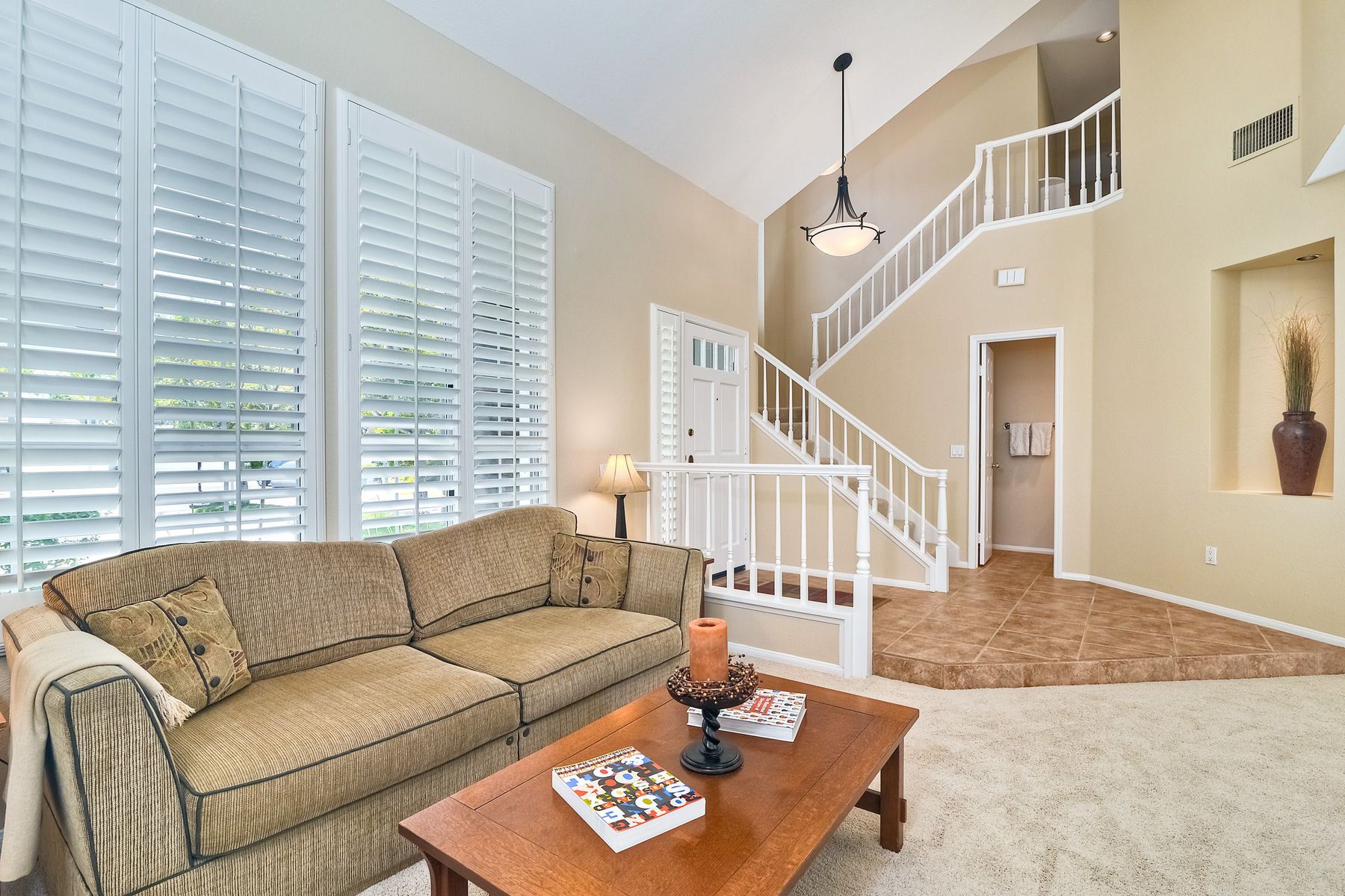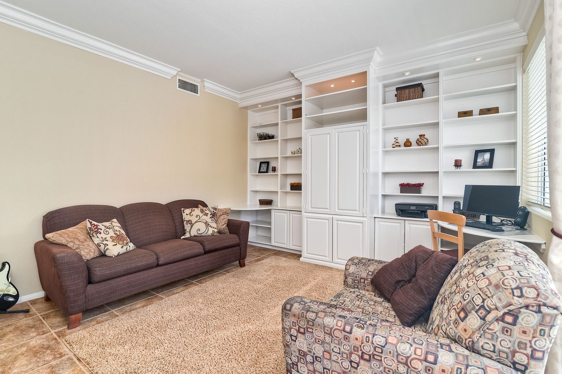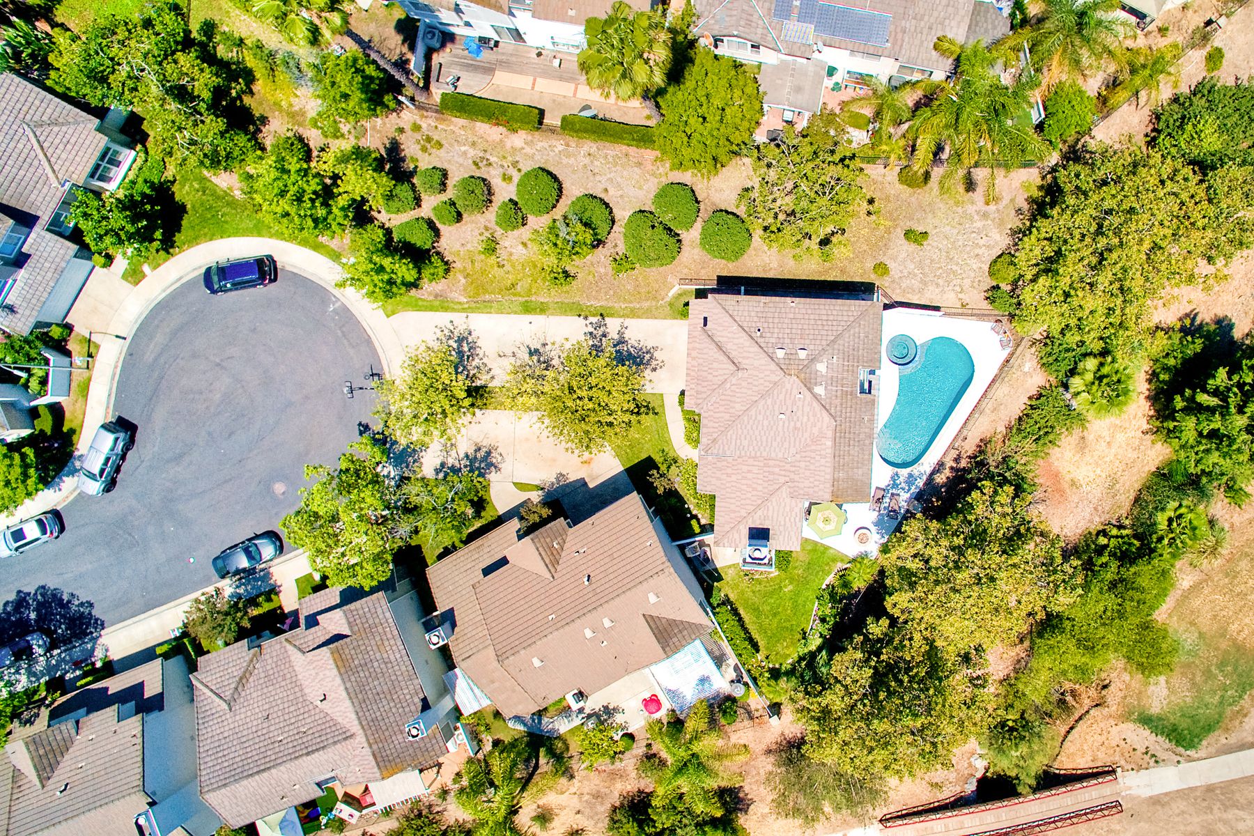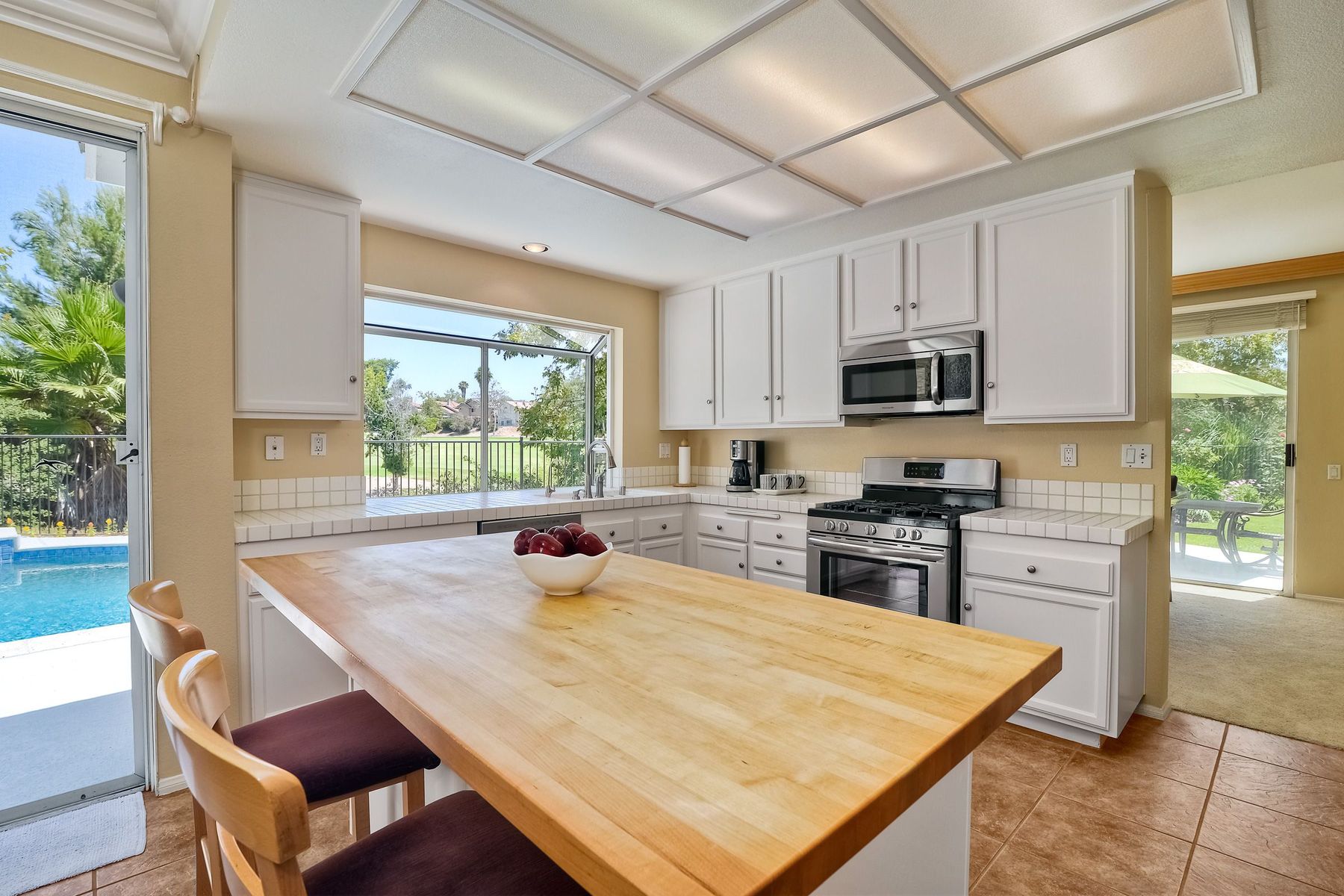 Absolutely the BEST location in the entire gated community of Heritage Hill! At the end of a cul-de-sac with a long driveway, double sized backyard, and golf course views! This lovely home is light, bright, and move-in ready, with fresh paint, new carpet and tile, plantation shutters, and crown moulding. The very private backyard is perfect for entertaining, featuring a sparkling pool and spa, firepit, large grassy area, and backing to the golf course. Award winning Poway schools and no Mello Roos! Beautiful curb appeal greets you as you drive up to this wonderful home in the Heritage Hill neighborhood of Carmel Mountain Ranch. The chef’s kitchen features white cabinetry, stainless steel appliances, a large island with butcher block top, and a garden window looking out at the pool, garden, and golf course beyond! The kitchen opens up to a family room with fantastic built-ins on one side, and a formal dining room, also with built-ins, on the other. The living room has volume ceilings, plenty of windows, and a cozy brick fireplace. The master suite is generously sized, with double door entry, vaulted ceilings, views of the golf course, two closets, and a luxurious, bright bath featuring a freshly glazed soaking tub and separate shower. One of the most unique features of this home is the lot. Situated at the end of a cul-de-sac, the backyard is approximately twice the size of the other homes and, unlike the other homes in the neighborhood, 12391 Cornwallis Square is set back off the street, at the end of a long driveway. The large backyard includes a gorgeous pool and spa, stone firepit, nice grassy area, and views of the golf course! And if one pool isn’t enough, the community of Heritage Hill also has a pool and spa for neighborhood gatherings!
