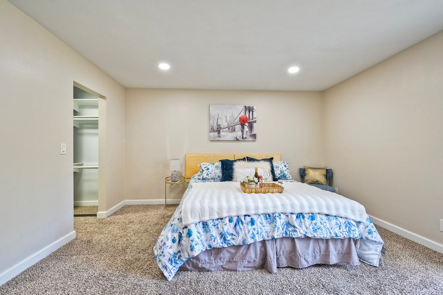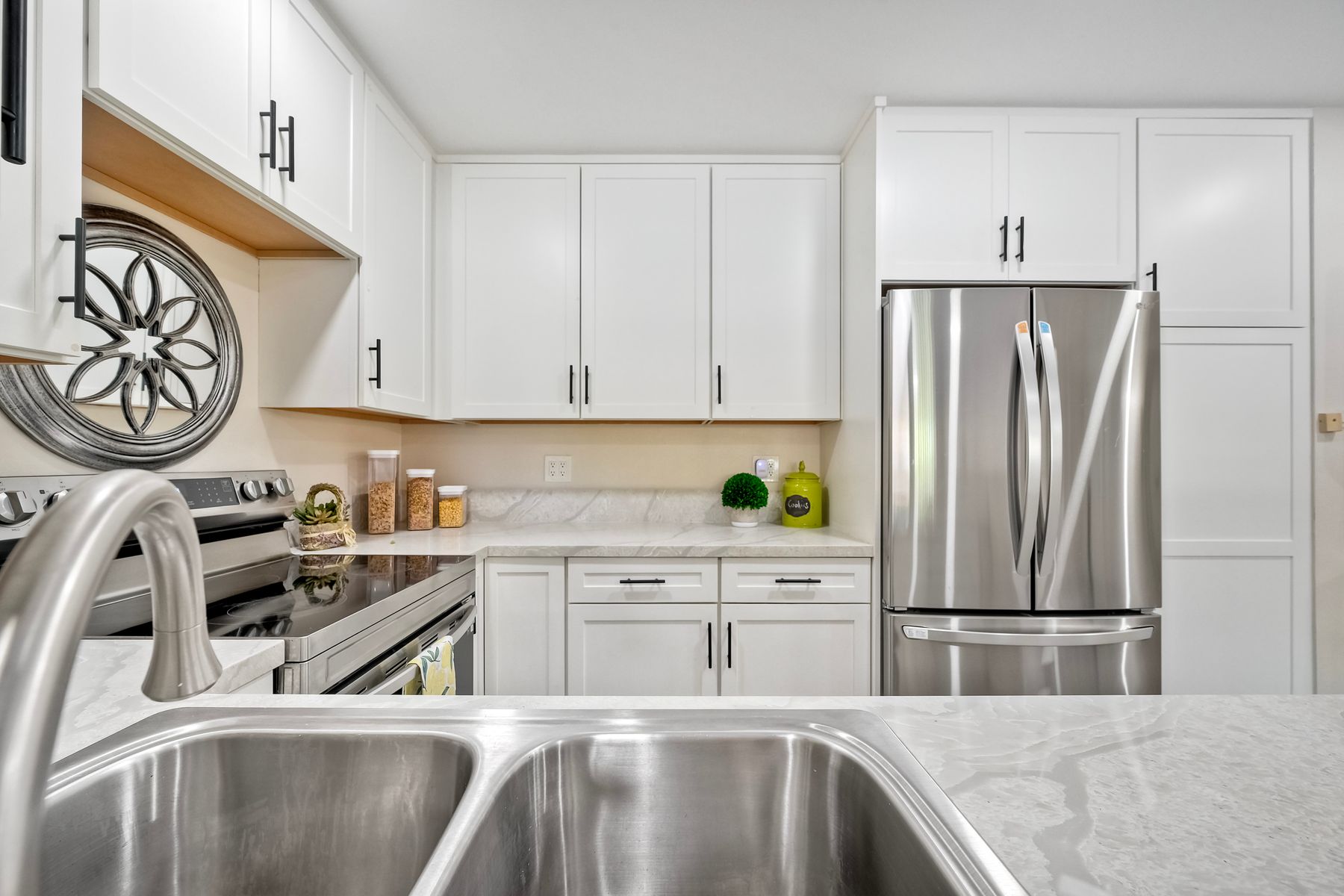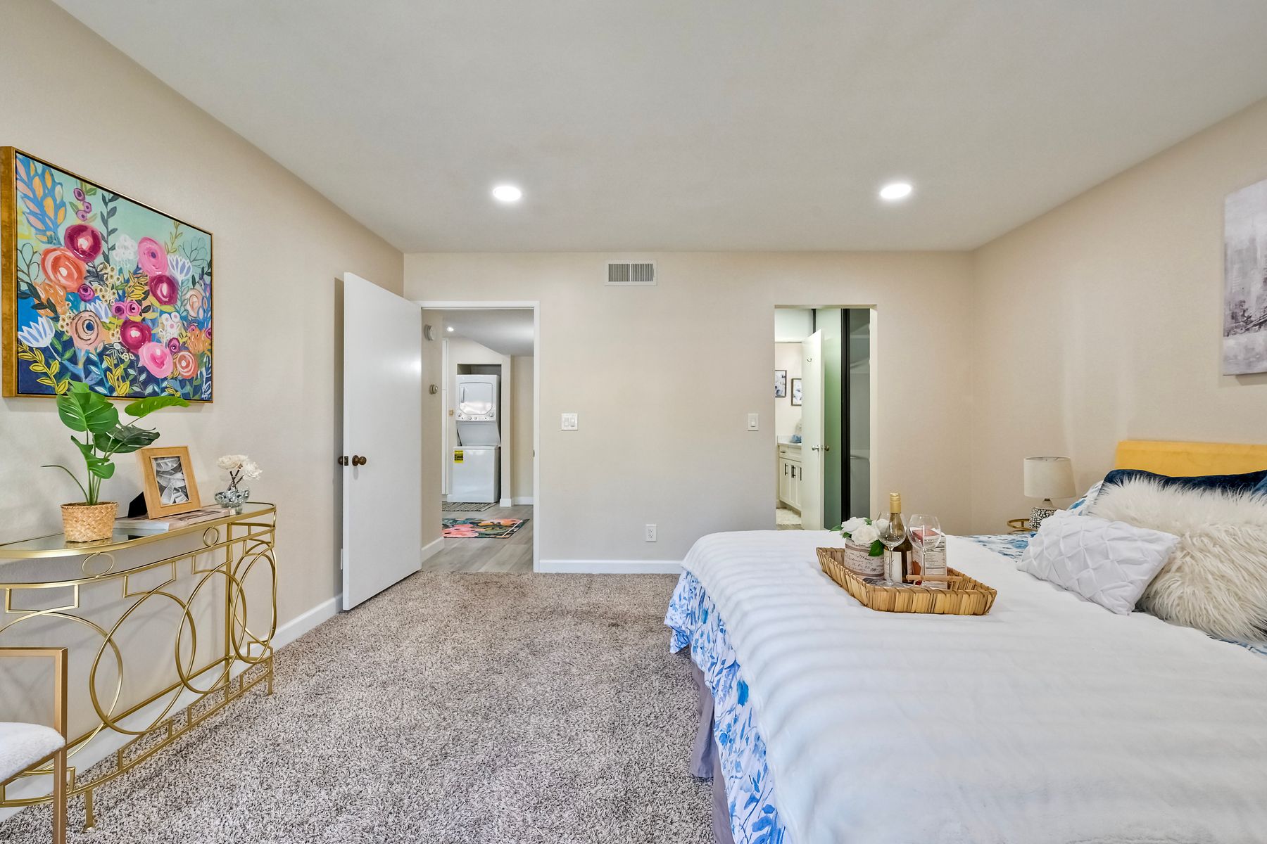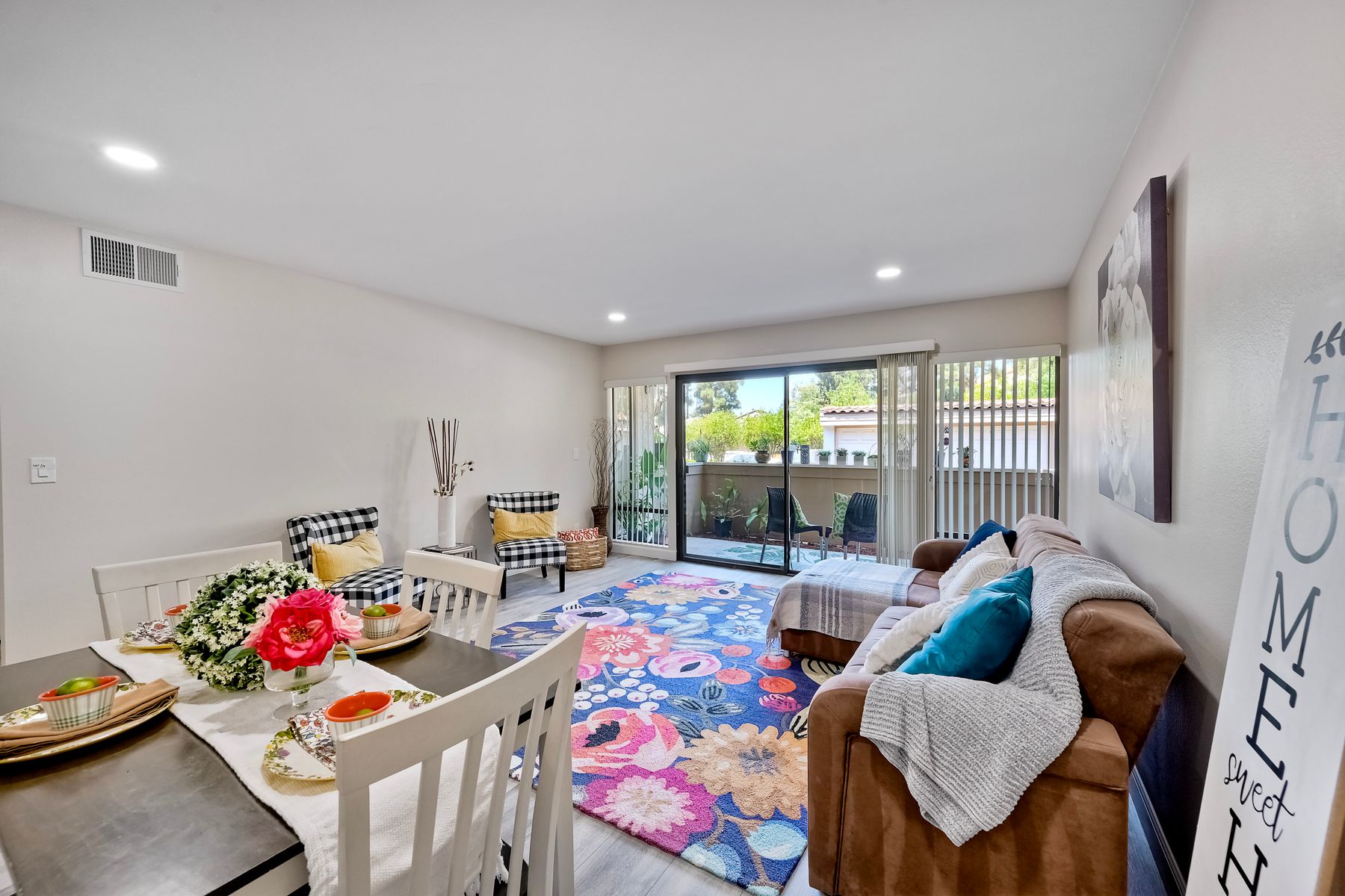 Welcome to the highly sought-after Oaks North 55+ community! This charming single-level home is located on the first floor of a gated building and is within walking distance of the Oaks North Golf Course and community center. Enjoy a wide range of amenities including pickleball, tennis, a heated pool, spa, sauna, gym, exercise classes, a library, woodshop, and ceramics room. The home has been tastefully remodeled with newer cabinetry, stainless steel appliances, quartz countertops, updated flooring, stackable indoor laundry, an upgraded bathroom, and fresh interior paint. The spacious living room opens to a private patio, perfect for gardening or barbecuing. The large primary suite features two generously sized closets with mirrored doors. This home also includes a one-car garage, perfect for your vehicle, golf cart, or additional storage. Conveniently located near the Rancho Bernardo Inn, Bernardo Winery, shopping centers, and just minutes from the I-15 freeway.