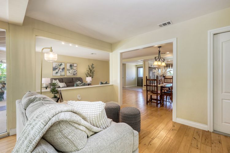 Welcome to this beautifully upgraded 2-bedroom, 2-bath home nestled in a peaceful cul-de-sac within the desirable 7 Oaks community. This home features an open floor plan with rich wood flooring, a remodeled kitchen, and abundant natural light throughout. Pride of ownership is evident in every detail. The meticulously maintained backyard offers a variety of fruit trees (lemon, grapefruit, pomegranate and apple cactus plant along with a tranquil setting perfect for relaxing or entertaining under the covered patio. Enjoy resort-style community amenities including clubhouse, pool, fitness center, and social activities. Conveniently located near shopping, dining, and freeway access — this is the perfect place to call home.