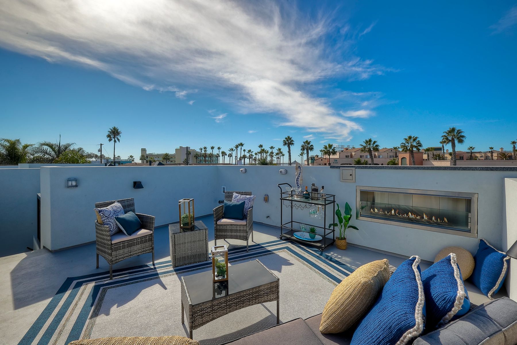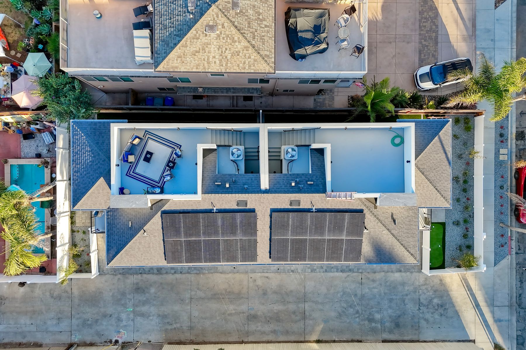 **Stunning New Beachside Retreat with Ocean Views**. Step into coastal luxury with this newly constructed home, just steps from the beach and offering breathtaking ocean views. Designed for effortless indoor-outdoor living, this exquisite property features high ceilings, an open-concept layout, and designer finishes throughout. The heart of the home is the chef’s kitchen, complete with high-end appliances, custom cabinetry, and a spacious island perfect for entertaining. Flow seamlessly into the living and dining areas, where oversized sliding doors open to the patio, creating the ideal space for al fresco dining or relaxing in the sea breeze. The primary suite is a true sanctuary, featuring a generous walk-in closet and a spa-like bathroom with dual vanities, and a walk-in shower. Additional amenities include a dedicated laundry space, ample closet space, a one-car garage, and off-street parking for added convenience. Enjoy the ultimate in coastal living from your private rooftop deck, complete with a cozy fireplace and panoramic views of the ocean. This home is also eco-friendly, equipped with a solar system and battery storage, ensuring energy efficiency for years to come. With its thoughtful layout, designer finishes, and unbeatable location, this beachside home is the perfect blend of style, comfort, and sustainability. Don't miss your chance to experience the best of coastal living! Just steps from the beach, this newly built home offers stunning ocean views and seamless indoor-outdoor living. High ceilings and designer finishes enhance the open layout, featuring a chef's kitchen with premium appliances. The primary suite includes a walk-in closet and spa-like bathroom. Additional highlights: rooftop deck with fireplace, solar system with battery storage, one-car garage plus off-street parking, and a private laundry room. Experience modern coastal luxury in this eco-friendly, thoughtfully designed retreat!