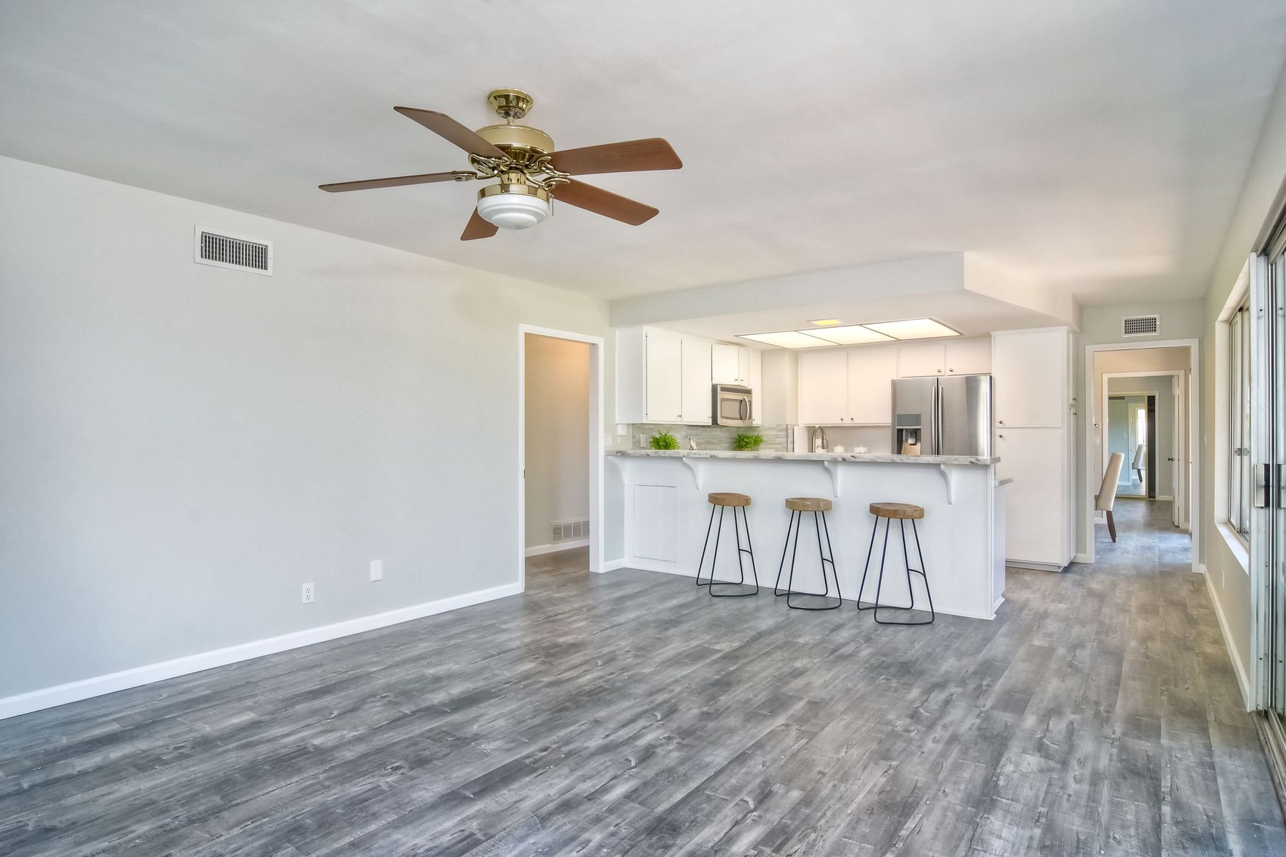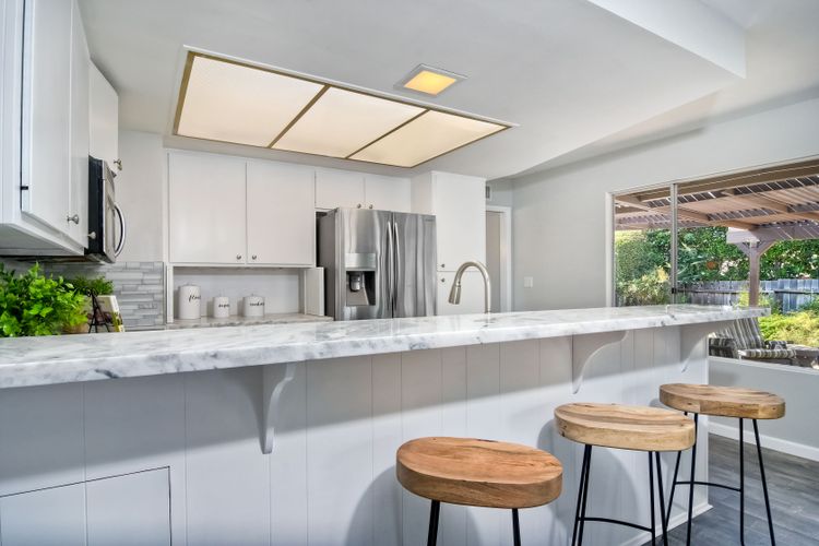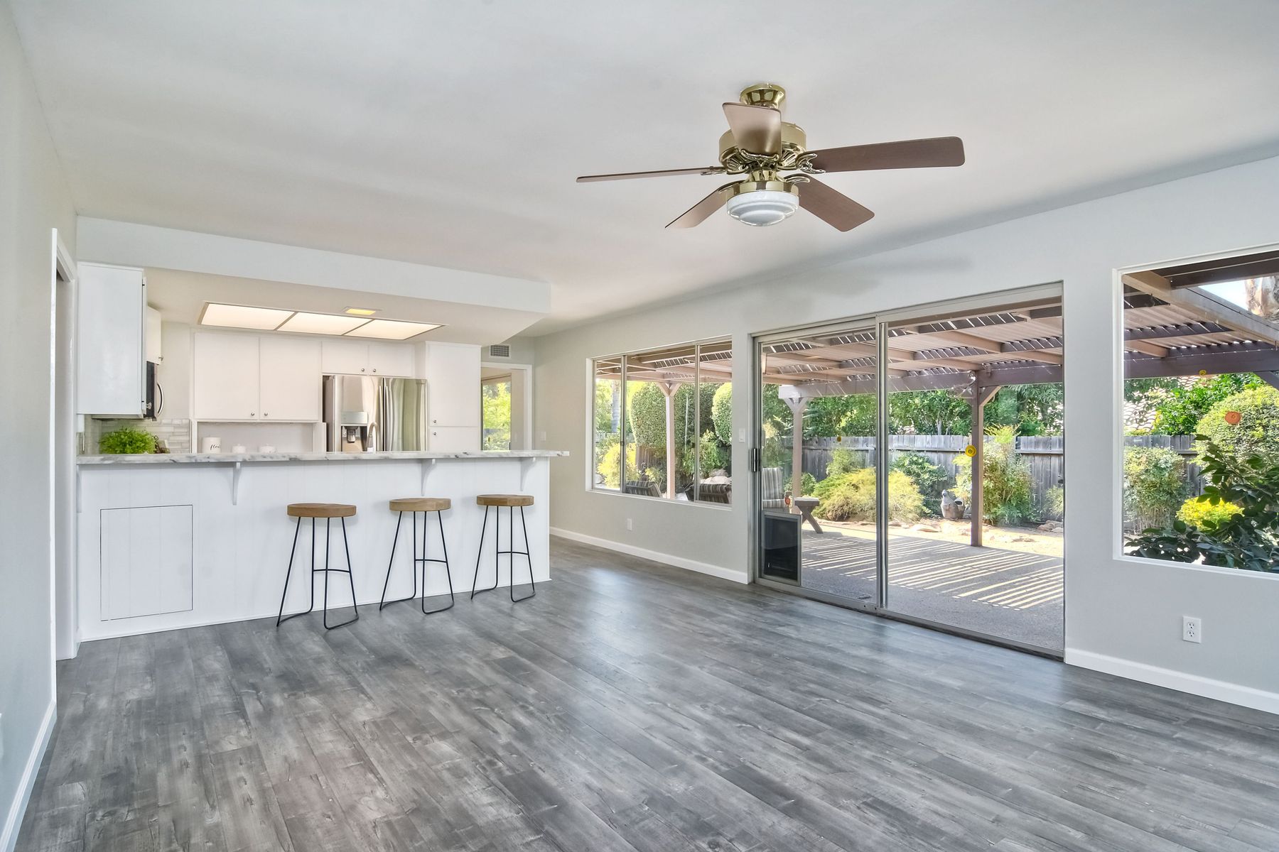 This beautiful home has just finished a major renovation. No more popcorn ceilings, fresh paint, new gorgeous laminate flooring, it's light and bright and perfect for entertaining. The white kitchen with new granite counters and stainless steel appliances opens to a large family room. Although officially 2 bedrooms, the office can easily accommodate a bed for an extra guest room. This quiet home sits conveniently off the main streets on a large interior, corner lot. Enjoy the Seven Oaks community!