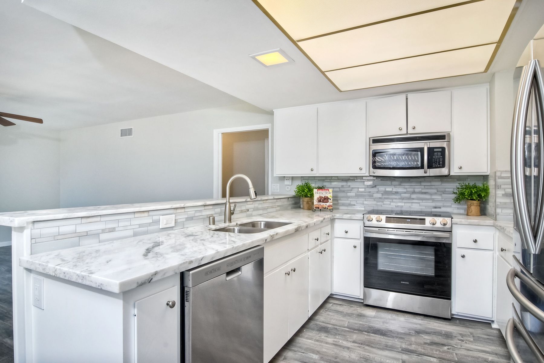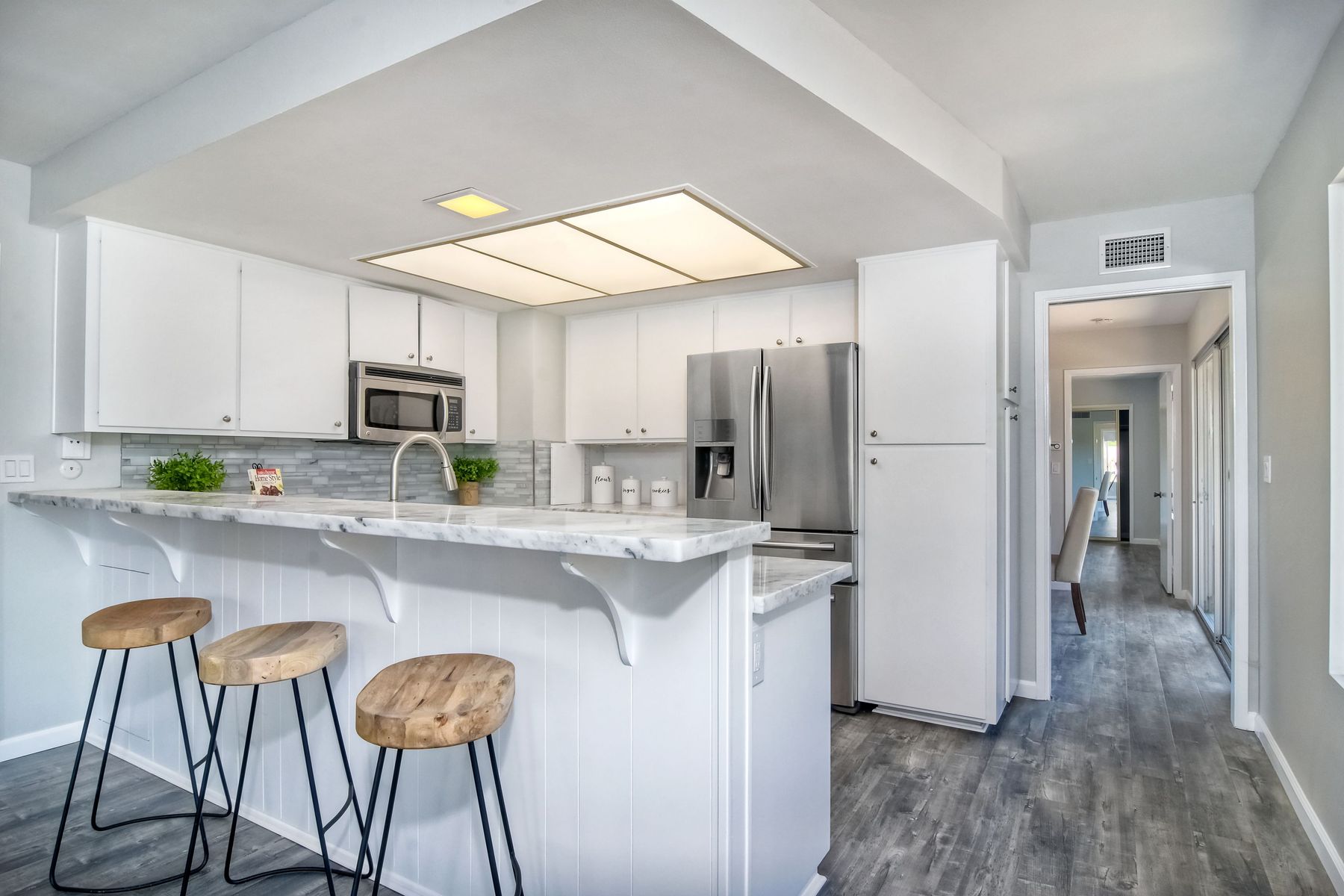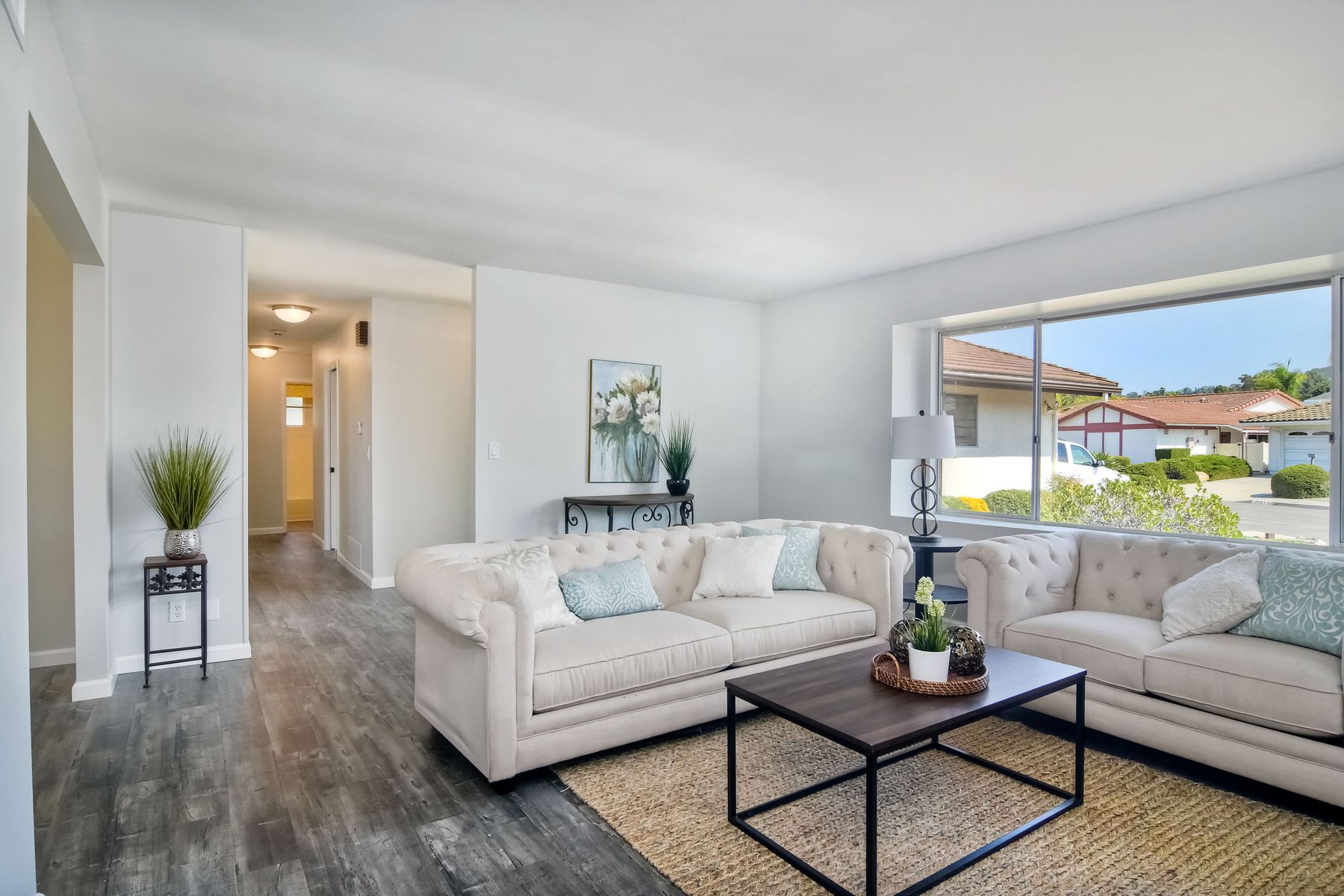 This beautiful home has just finished a major renovation. No more popcorn ceilings, fresh paint, new gorgeous laminate flooring, it's light and bright and perfect for entertaining. The white kitchen with new granite counters and stainless steel appliances opens to a large family room. Although officially 2 bedrooms, the office can easily accommodate a bed for an extra guest room. This quiet home sits conveniently off the main streets on a large interior, corner lot. Enjoy the Seven Oaks community!