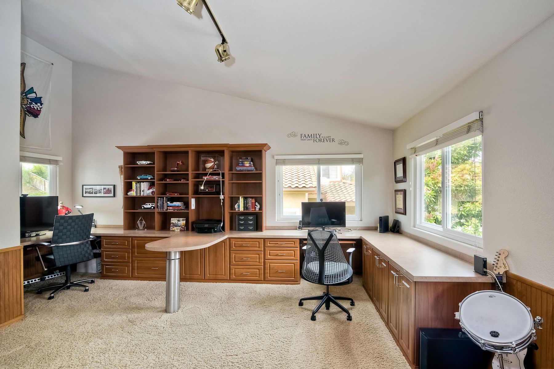 THIS IS THE HOME YOUR BUYER IS LOOKING FOR! A Remodeled Popular "Polo" model in Rancho Arbolitos. "Meticulous" inside and out. Features downstairs bedroom with sliding door to private patio and full bath, large upstairs bonus room, with built in desk system with lots of storage, vaulted ceilings, re-modeled custom kitchen, with granite counter top, stainless steel appliances including double ovens and built in refrigerator, bosch dishwasher, custom solid maple cabinets, walk in pantry. See supplement..... The kitchen also has , gas cooking recessed/updated lighting, and new window in kitchen. Closet organizer in master bedroom, All new updated master bath with a huge walking shower. Updated bathroom fixtures, custom window treatments, whole house fan. Fantastic huge private back yard with , pool and spa , plus a removable pool security fence. Three Car garage. Poway Unified Schools, No Mello Roos and No HOA fees. 12619 Stoutwood Amenities List: Tankless Water Heater, Solar for Electrical and Pool, Whole House Fan, Built In Electric Car Charging Unit, Built In Garage Cabinets & Hanging Racks, Full House Water Treatment System, Built In- Ground Pool Fence, Built In Surround sound system with Pool Deck Speakers, Built In Electrical outlet in Bathroom Vanity, Hunter Douglas Window Coverings, Storm Windows, Full Access to Attic with Pull Down Ladder, flooring and storage shelves, Closet World Built in Closet organizers, Closet World Built in Home Office, RING Doorbell, chime and Floodlight Smart Home Features, Pool Pump System with remote and wi/fi access, Cox Home Security including fire alarms and CO2 Monitors, motion sensors, door locks, Cox Homelife, including Heat/Cooling System, Smart Plug and Light bulbs, Panoramic wi/fi connection, *Brand New Garage Door opener with remote & wi/fi access