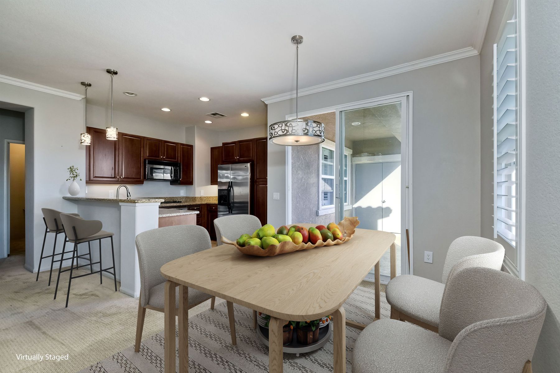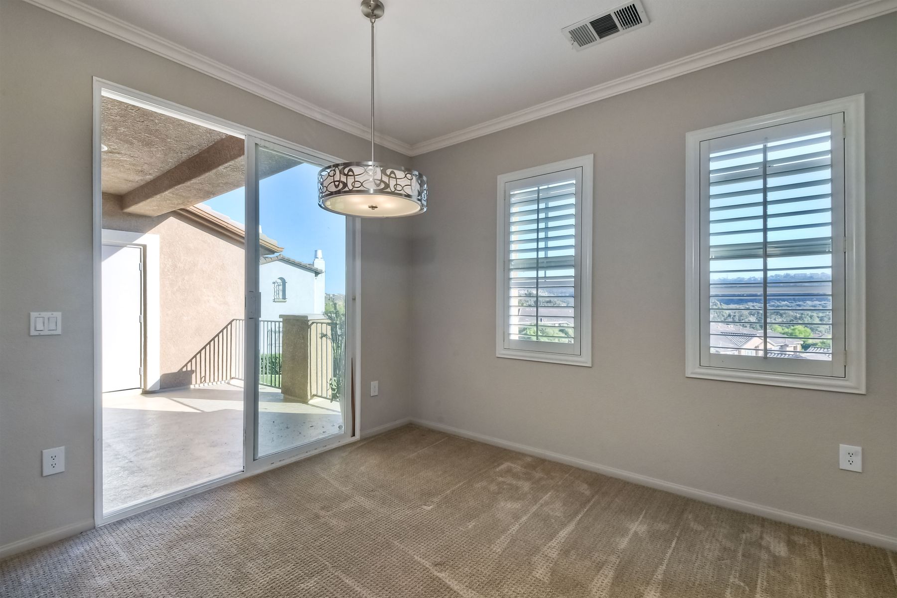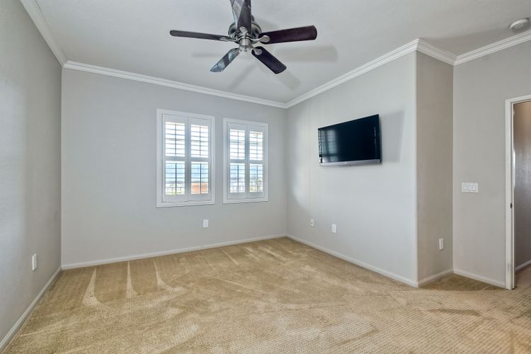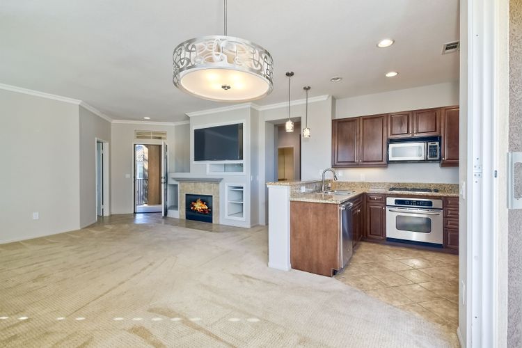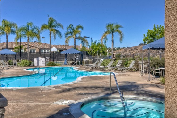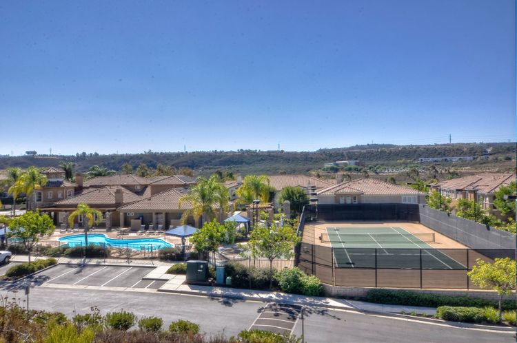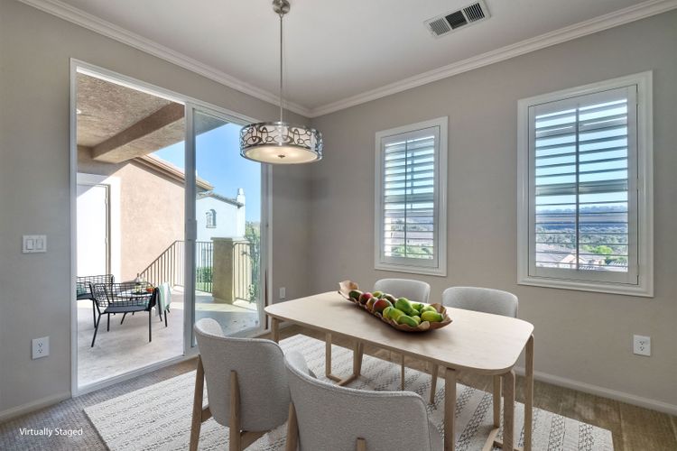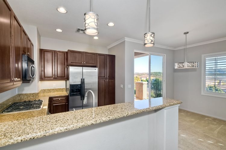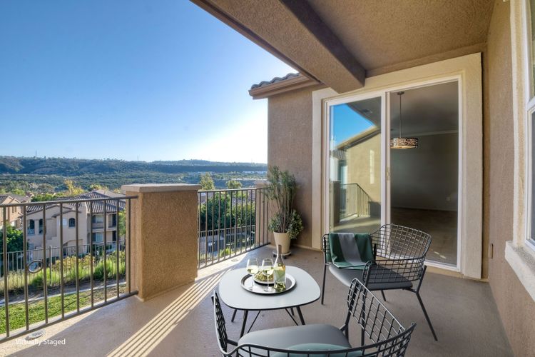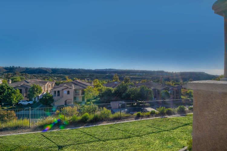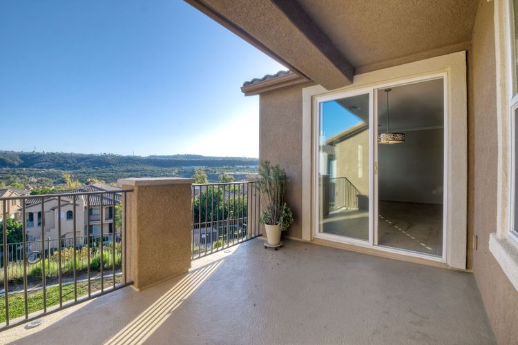 Panoramic Views welcome you to this meticulous 3 bedroom, 2 bath condominium in the prestigious Savannah Terrace community of Sabre Springs. This home offers the perfect blend of elegance and comfort with granite countertops and breakfast bar in the kitchen, contemporary paint, light fixtures, window shutters, & open floor plan. The large patio deck off the dining & living room is ideal for outdoor relaxation and entertainment with the ultimate privacy with no neighbors behind. Coveted floor plan with high ceilings, crown molding plus dual pane windows, ceiling fans, laundry room & central A/C & attached 2-car garage. Pool/Spa, tennis court, exercise room & racquetball court. Great breezes all year round. Low HOA dues. Top-rated Poway Unified School District. Experience the tranquility of suburban living in Sabre Springs with the combination of serenity and convenience! Residents enjoy easy access to the best of San Diego. Situated just minutes from major freeways, including I-15 and Highway 56, commuting to work or fun destinations. Don't miss seeing this one!