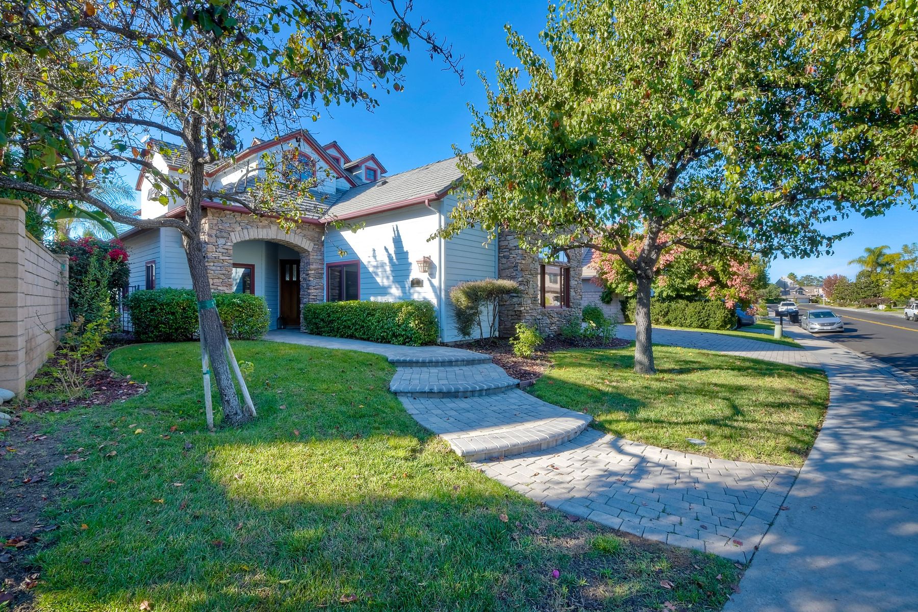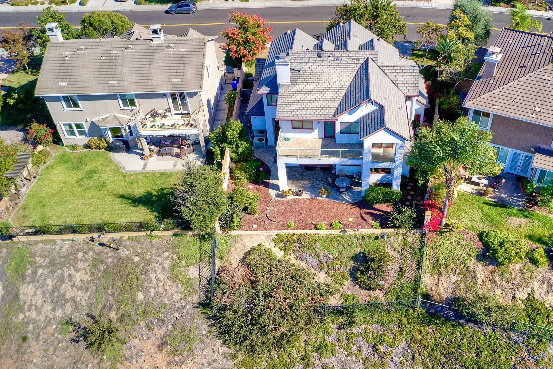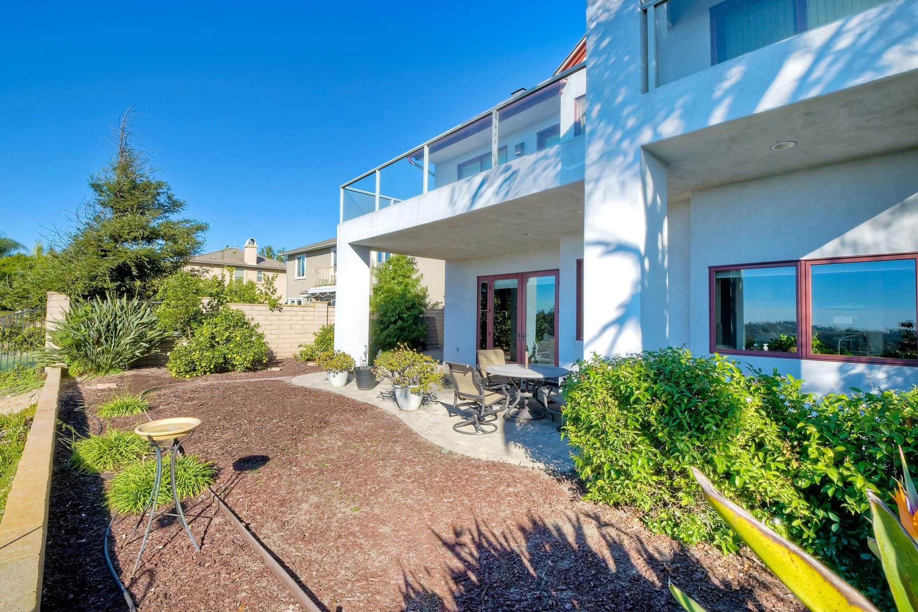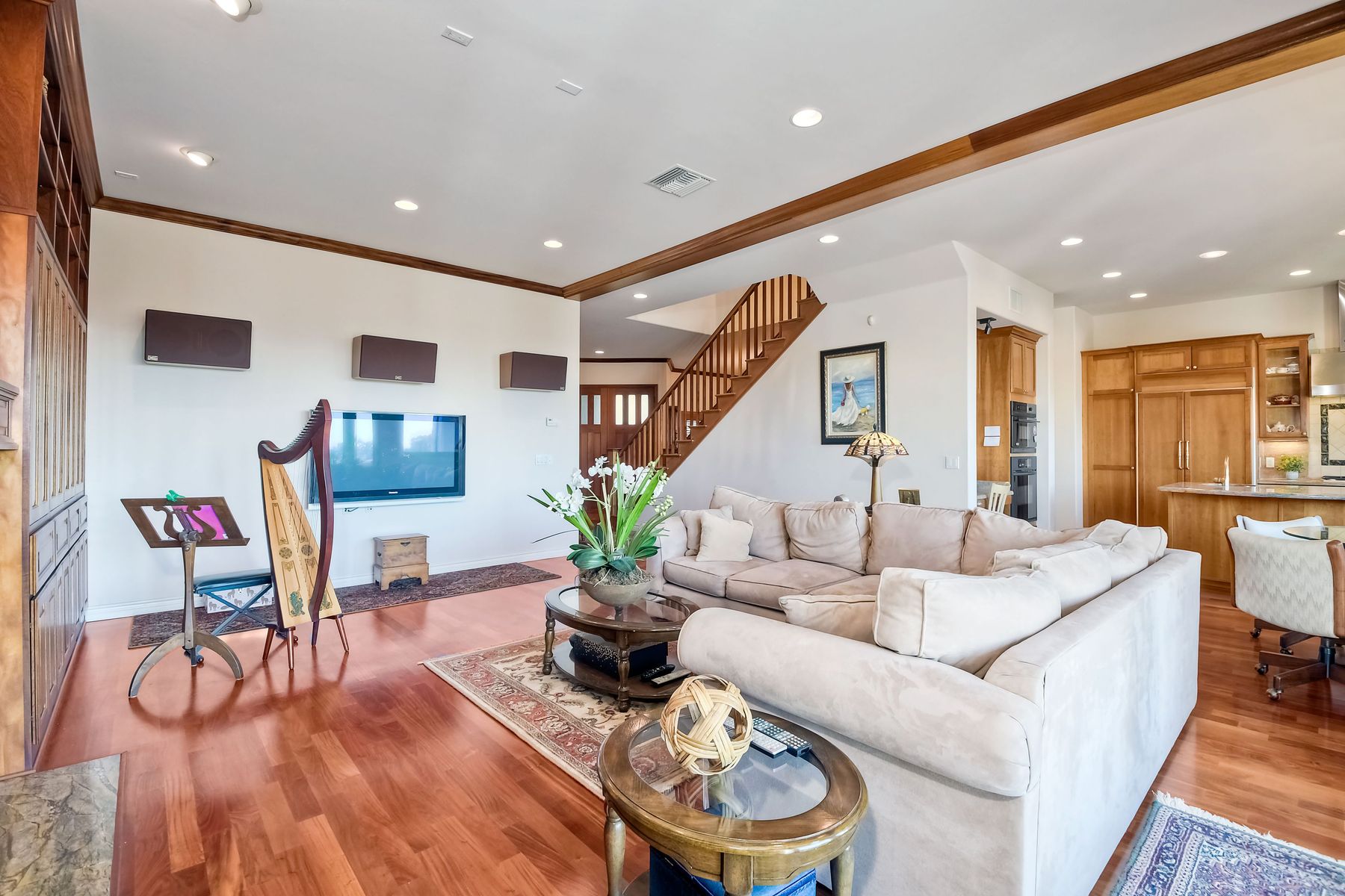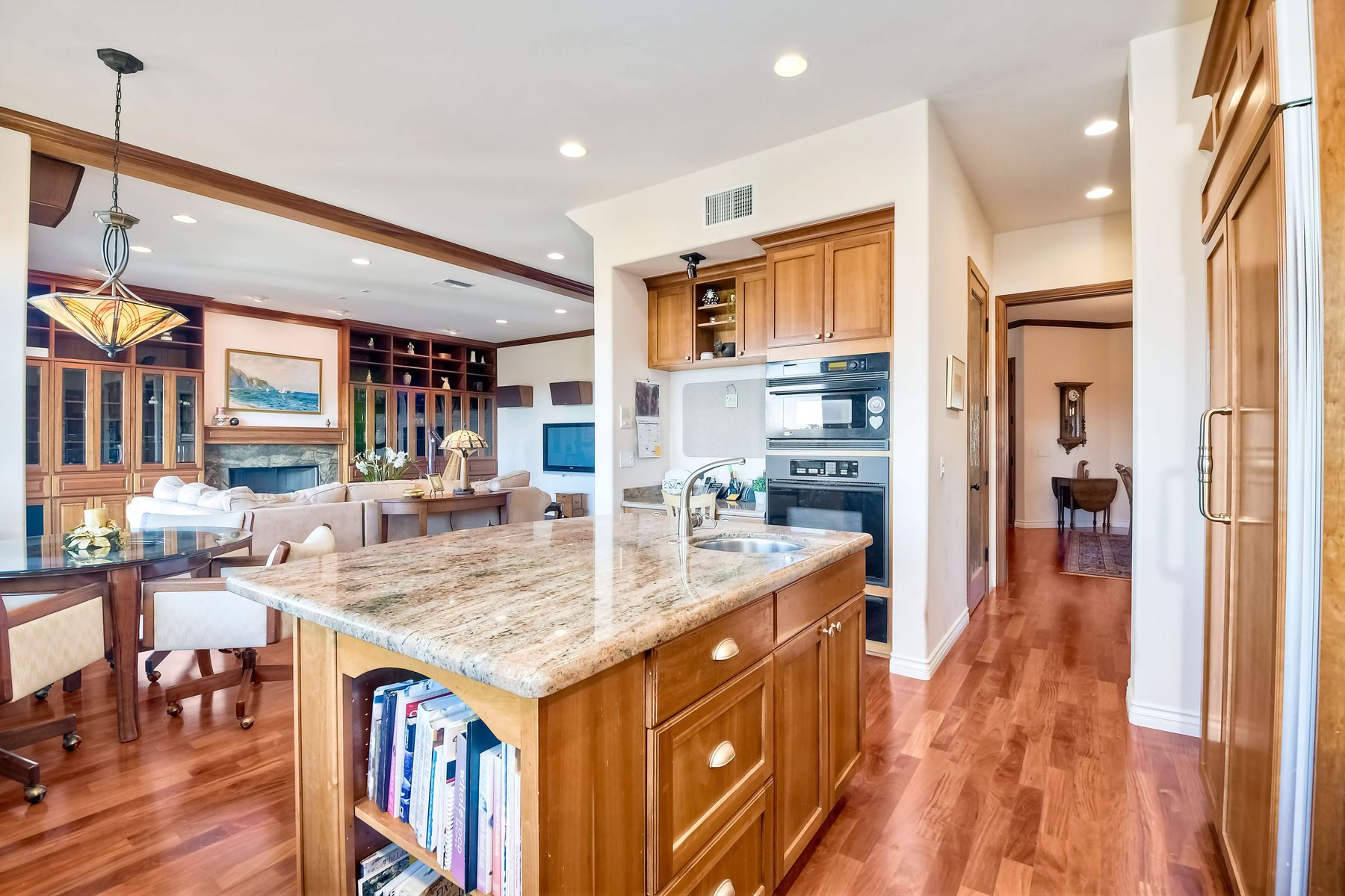 View! View! View! You are home in this custom beauty atop coveted & exclusive Scripps Ranch/South of Pomerado offering spectacular panoramic & coastal view! This custom home built in 2005 has been painstakingly planned & finished in every detail. The elegant, high-end Craftsman architecture offering clean lines & natural elements together with all of today’s modern conveniences is one of a kind – truly a masterpiece! 2 suites plus 2 optional rooms upstairs; 1 downstairs currently used as study, easily converted to additional bedrooms. Offering beautiful & charming curb appeal with exterior stone work, lush landscape & pavered entry & driveway you know you are in for something special. Community pool, tennis courts! Step in through striking double mahogany wood front doors to stunning foyer featuring custom inlayed entry medallion & Bolivian Santos mahogany floors throughout downstairs. The stately formal dining room on left offers entertaining on the grand or intimate scale with chandelier and plantation shutters. Be amazed by stunning family room featuring breathtaking elevated tree-line views through French doors, focal fireplace with marble surround, beautiful custom built-in entertainment center & bookcase with soft close, crown molding and wood cased windows & trim throughout. Gourmet kitchen features natural cherry cabinetry, slab granite countertop & backsplash with decorator tile back, appliances including Advantium/microwave, full oven & warming drawer, newer dishwasher, center island with veggie sink and extended counter; butler’s pantry/beverage center with wine refrigerator, walk-in pantry, built-in desk & media center as well as spacious eat-in area with forever view. Downstairs study is tucked away with luxurious solid mahogany double doors. Full bath includes Rainforest marble counter top, natural cherry cabinetry, shower/soaking tub and tile floors. Downstairs laundry room with built-in storage and utility sink. Grand craftsman staircase brings you to second floor in style! Spacious primary suite offers soaring cathedral ceiling with fan, sliding door to balcony with phenomenal view. Primary bath features double sinks, marble counter top, over-sized walk-in shower, tile floors and walk-in dream closet/dressing room with cathedral ceiling! 2 additional, large optional bedrooms upstairs currently used as offices. Full bath. Upstairs attic access. Beautiful backyard includes covered, pavered patio looking out to truly stunning view of lush green canyon and coastal views beyond – beautiful twinkling lights at night - Del Mar balloons by twilight! Sit back and enjoy the tranquil setting & nature that surrounds. Truly one of a kind! 3-car garage with storage. Some of the many extras include: solid wood interior doors, crown molding, wood trimmed windows throughout, Elevator shaft wired/ready; newer tankless water heaters, Martin garage doors, dual zone heating/AC units, extra roof tiles & exterior stone. Close to multiple parks, award winning schools, shopping and dining. Easy I-15 freeway access.