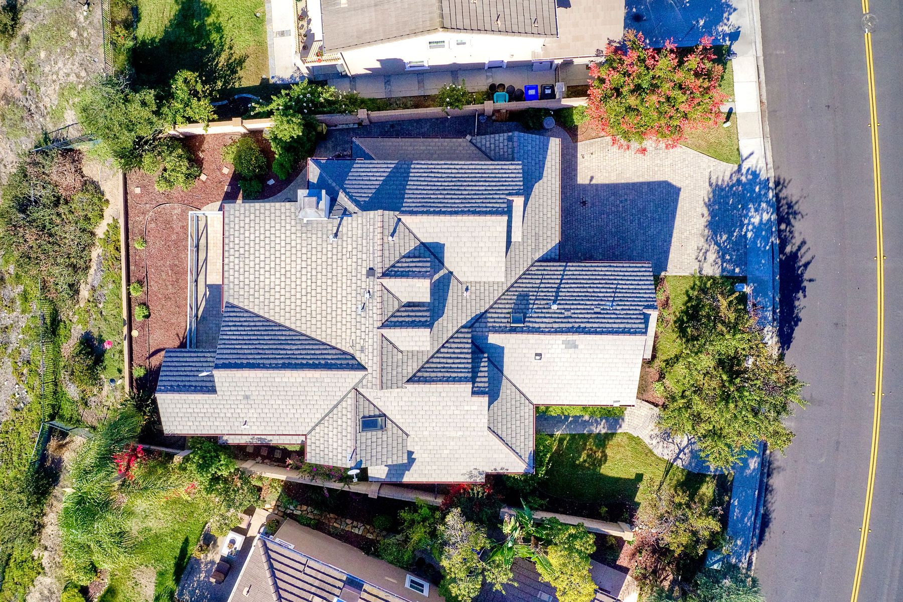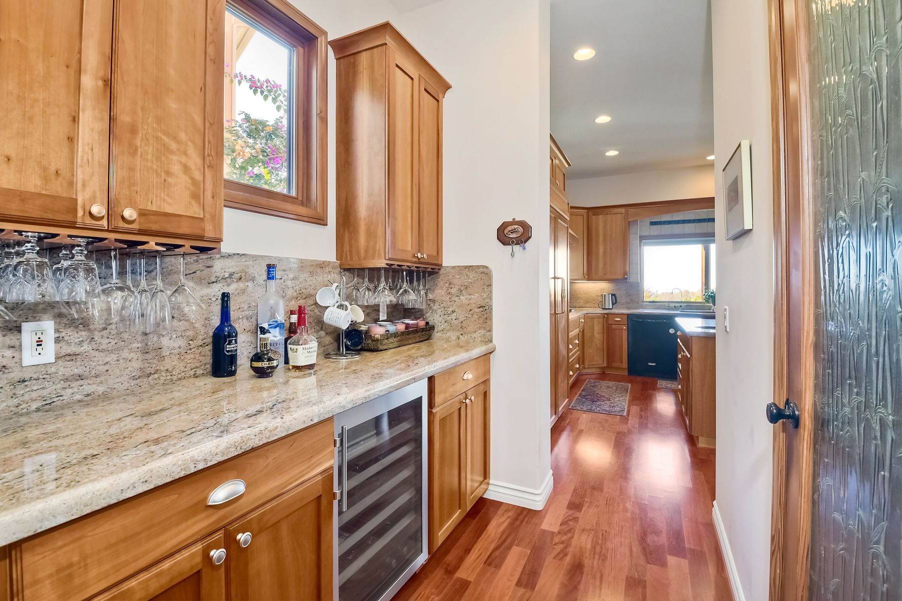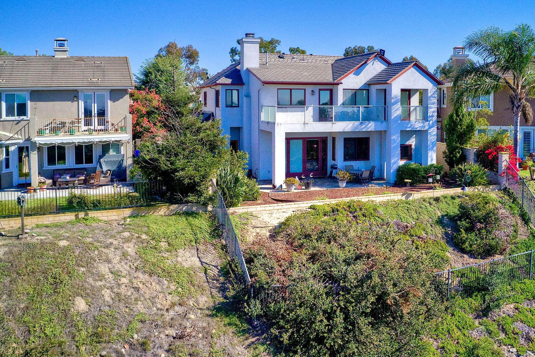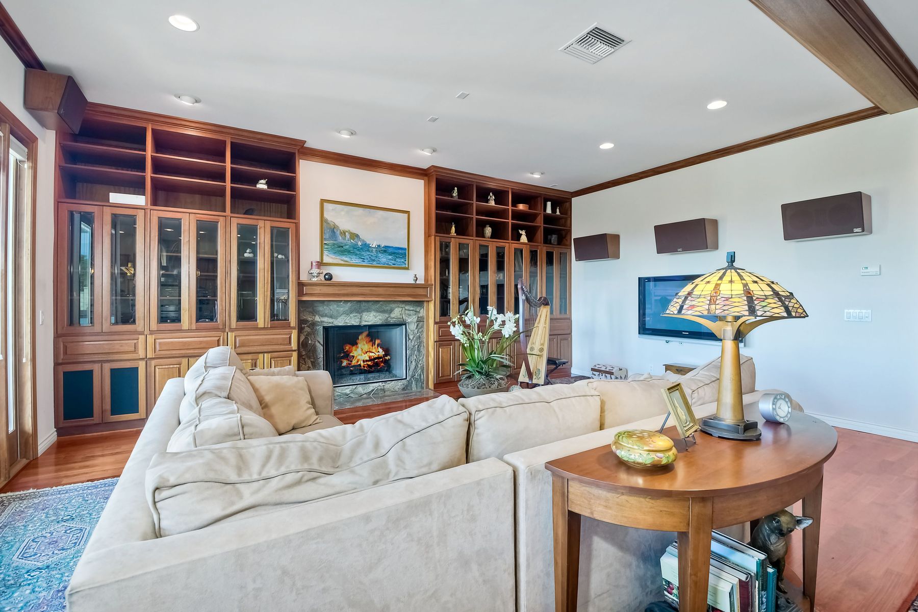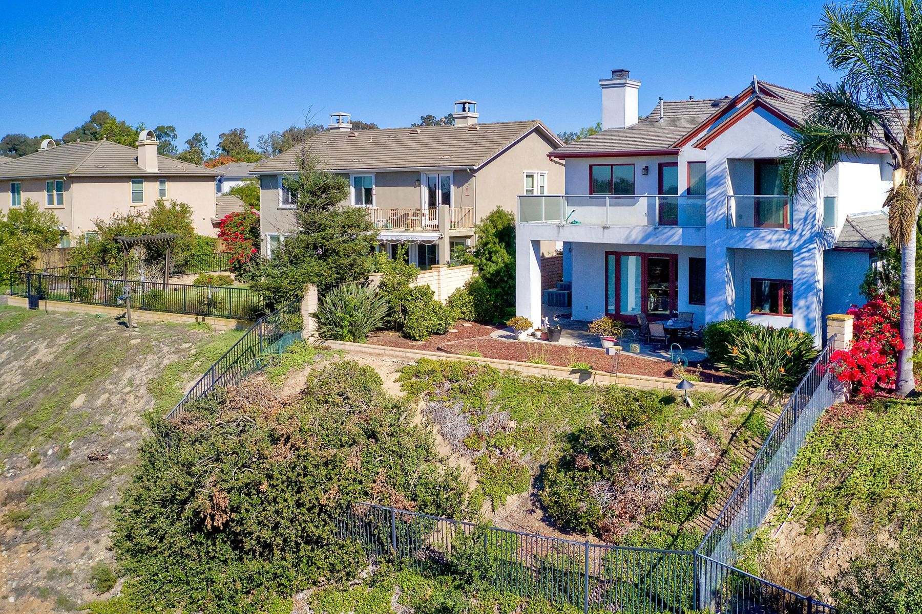 View! View! View! You are home in this custom beauty atop coveted & exclusive Scripps Ranch/South of Pomerado offering spectacular panoramic & coastal view! This custom home built in 2005 has been painstakingly planned & finished in every detail. The elegant, high-end Craftsman architecture offering clean lines & natural elements together with all of today’s modern conveniences is one of a kind – truly a masterpiece! 2 suites plus 2 optional rooms upstairs; 1 downstairs currently used as study, easily converted to additional bedrooms. Offering beautiful & charming curb appeal with exterior stone work, lush landscape & pavered entry & driveway you know you are in for something special. Community pool, tennis courts! Step in through striking double mahogany wood front doors to stunning foyer featuring custom inlayed entry medallion & Bolivian Santos mahogany floors throughout downstairs. The stately formal dining room on left offers entertaining on the grand or intimate scale with chandelier and plantation shutters. Be amazed by stunning family room featuring breathtaking elevated tree-line views through French doors, focal fireplace with marble surround, beautiful custom built-in entertainment center & bookcase with soft close, crown molding and wood cased windows & trim throughout. Gourmet kitchen features natural cherry cabinetry, slab granite countertop & backsplash with decorator tile back, appliances including Advantium/microwave, full oven & warming drawer, newer dishwasher, center island with veggie sink and extended counter; butler’s pantry/beverage center with wine refrigerator, walk-in pantry, built-in desk & media center as well as spacious eat-in area with forever view. Downstairs study is tucked away with luxurious solid mahogany double doors. Full bath includes Rainforest marble counter top, natural cherry cabinetry, shower/soaking tub and tile floors. Downstairs laundry room with built-in storage and utility sink. Grand craftsman staircase brings you to second floor in style! Spacious primary suite offers soaring cathedral ceiling with fan, sliding door to balcony with phenomenal view. Primary bath features double sinks, marble counter top, over-sized walk-in shower, tile floors and walk-in dream closet/dressing room with cathedral ceiling! 2 additional, large optional bedrooms upstairs currently used as offices. Full bath. Upstairs attic access. Beautiful backyard includes covered, pavered patio looking out to truly stunning view of lush green canyon and coastal views beyond – beautiful twinkling lights at night - Del Mar balloons by twilight! Sit back and enjoy the tranquil setting & nature that surrounds. Truly one of a kind! 3-car garage with storage. Some of the many extras include: solid wood interior doors, crown molding, wood trimmed windows throughout, Elevator shaft wired/ready; newer tankless water heaters, Martin garage doors, dual zone heating/AC units, extra roof tiles & exterior stone. Close to multiple parks, award winning schools, shopping and dining. Easy I-15 freeway access.