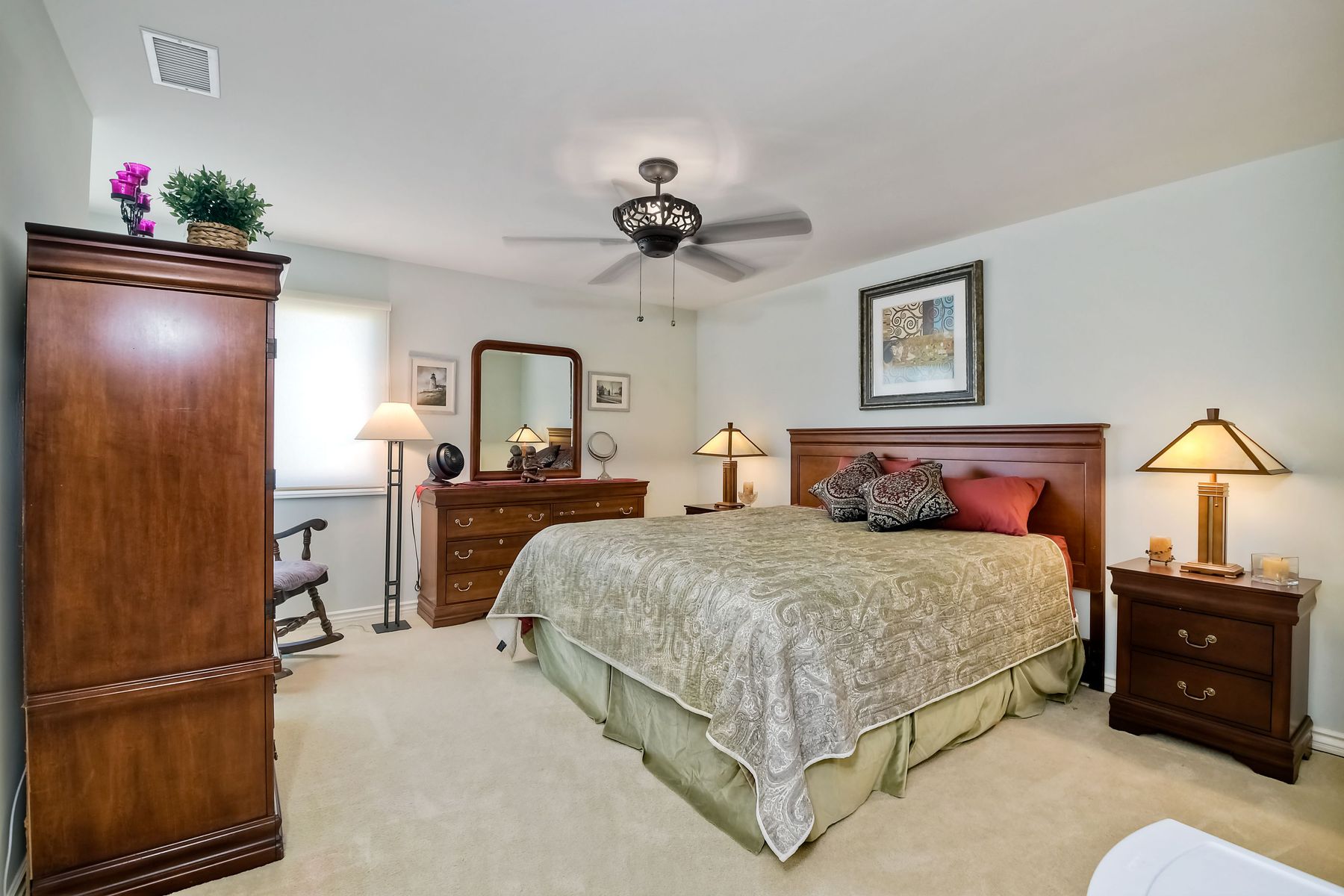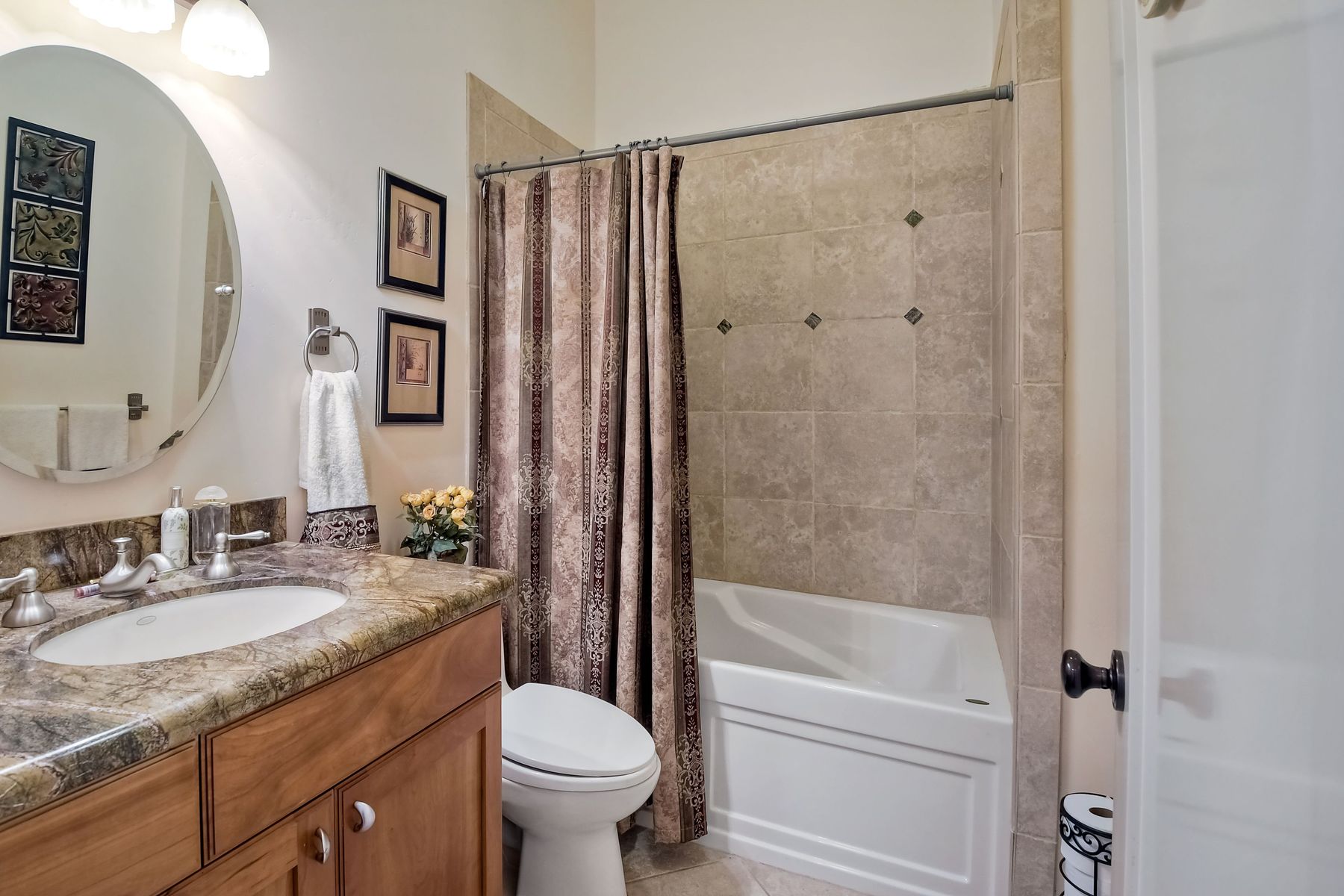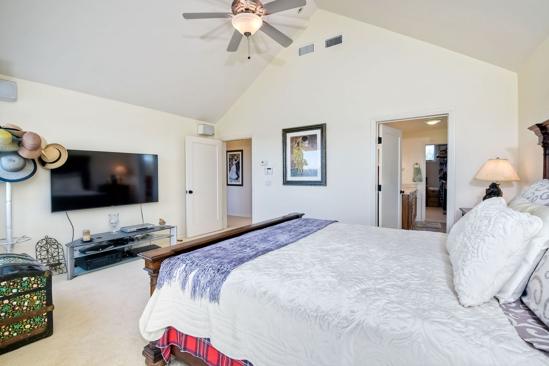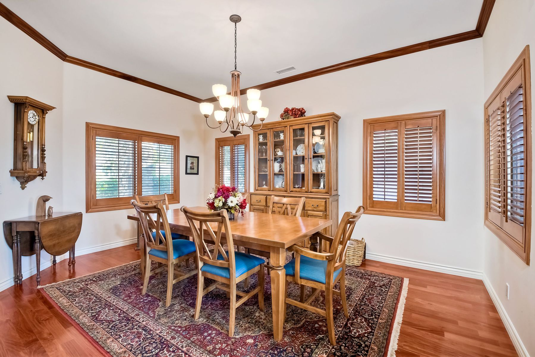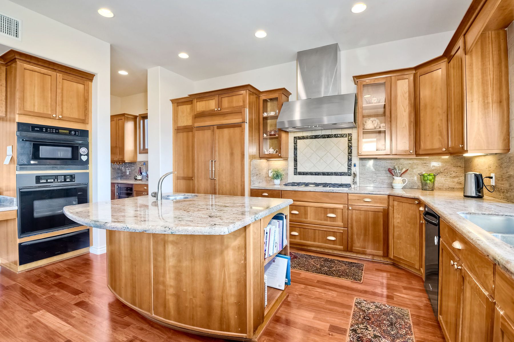 View! View! View! You are home in this custom beauty atop coveted & exclusive Scripps Ranch/South of Pomerado offering spectacular panoramic & coastal view! This custom home built in 2005 has been painstakingly planned & finished in every detail. The elegant, high-end Craftsman architecture offering clean lines & natural elements together with all of today’s modern conveniences is one of a kind – truly a masterpiece! 2 suites plus 2 optional rooms upstairs; 1 downstairs currently used as study, easily converted to additional bedrooms. Offering beautiful & charming curb appeal with exterior stone work, lush landscape & pavered entry & driveway you know you are in for something special. Community pool, tennis courts! Step in through striking double mahogany wood front doors to stunning foyer featuring custom inlayed entry medallion & Bolivian Santos mahogany floors throughout downstairs. The stately formal dining room on left offers entertaining on the grand or intimate scale with chandelier and plantation shutters. Be amazed by stunning family room featuring breathtaking elevated tree-line views through French doors, focal fireplace with marble surround, beautiful custom built-in entertainment center & bookcase with soft close, crown molding and wood cased windows & trim throughout. Gourmet kitchen features natural cherry cabinetry, slab granite countertop & backsplash with decorator tile back, appliances including Advantium/microwave, full oven & warming drawer, newer dishwasher, center island with veggie sink and extended counter; butler’s pantry/beverage center with wine refrigerator, walk-in pantry, built-in desk & media center as well as spacious eat-in area with forever view. Downstairs study is tucked away with luxurious solid mahogany double doors. Full bath includes Rainforest marble counter top, natural cherry cabinetry, shower/soaking tub and tile floors. Downstairs laundry room with built-in storage and utility sink. Grand craftsman staircase brings you to second floor in style! Spacious primary suite offers soaring cathedral ceiling with fan, sliding door to balcony with phenomenal view. Primary bath features double sinks, marble counter top, over-sized walk-in shower, tile floors and walk-in dream closet/dressing room with cathedral ceiling! 2 additional, large optional bedrooms upstairs currently used as offices. Full bath. Upstairs attic access. Beautiful backyard includes covered, pavered patio looking out to truly stunning view of lush green canyon and coastal views beyond – beautiful twinkling lights at night - Del Mar balloons by twilight! Sit back and enjoy the tranquil setting & nature that surrounds. Truly one of a kind! 3-car garage with storage. Some of the many extras include: solid wood interior doors, crown molding, wood trimmed windows throughout, Elevator shaft wired/ready; newer tankless water heaters, Martin garage doors, dual zone heating/AC units, extra roof tiles & exterior stone. Close to multiple parks, award winning schools, shopping and dining. Easy I-15 freeway access.