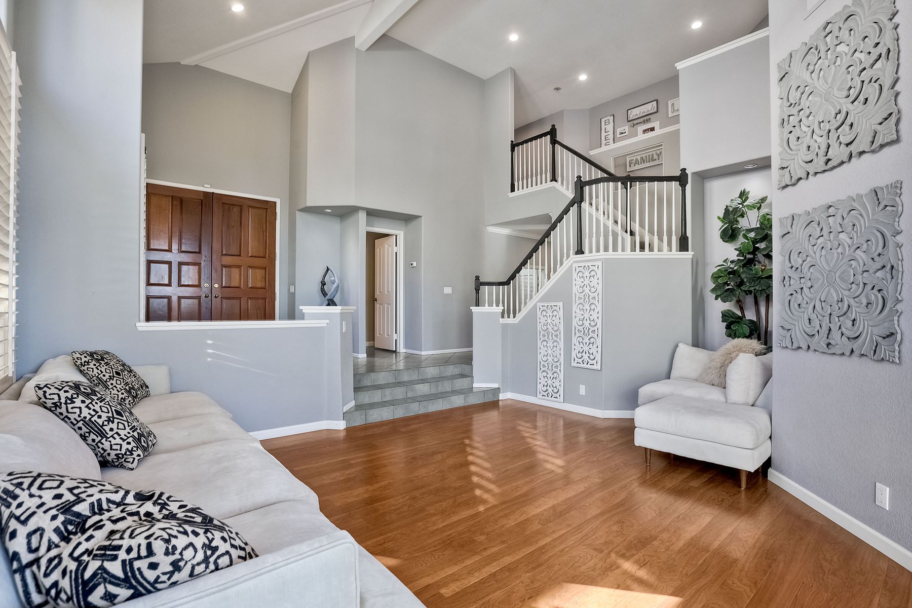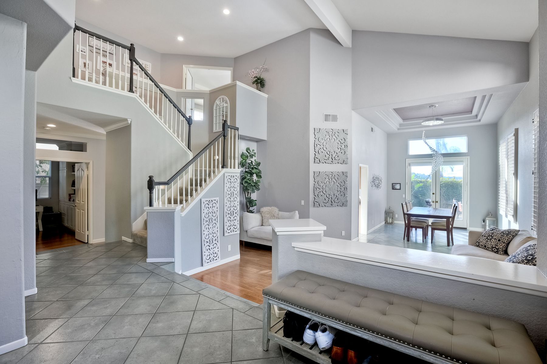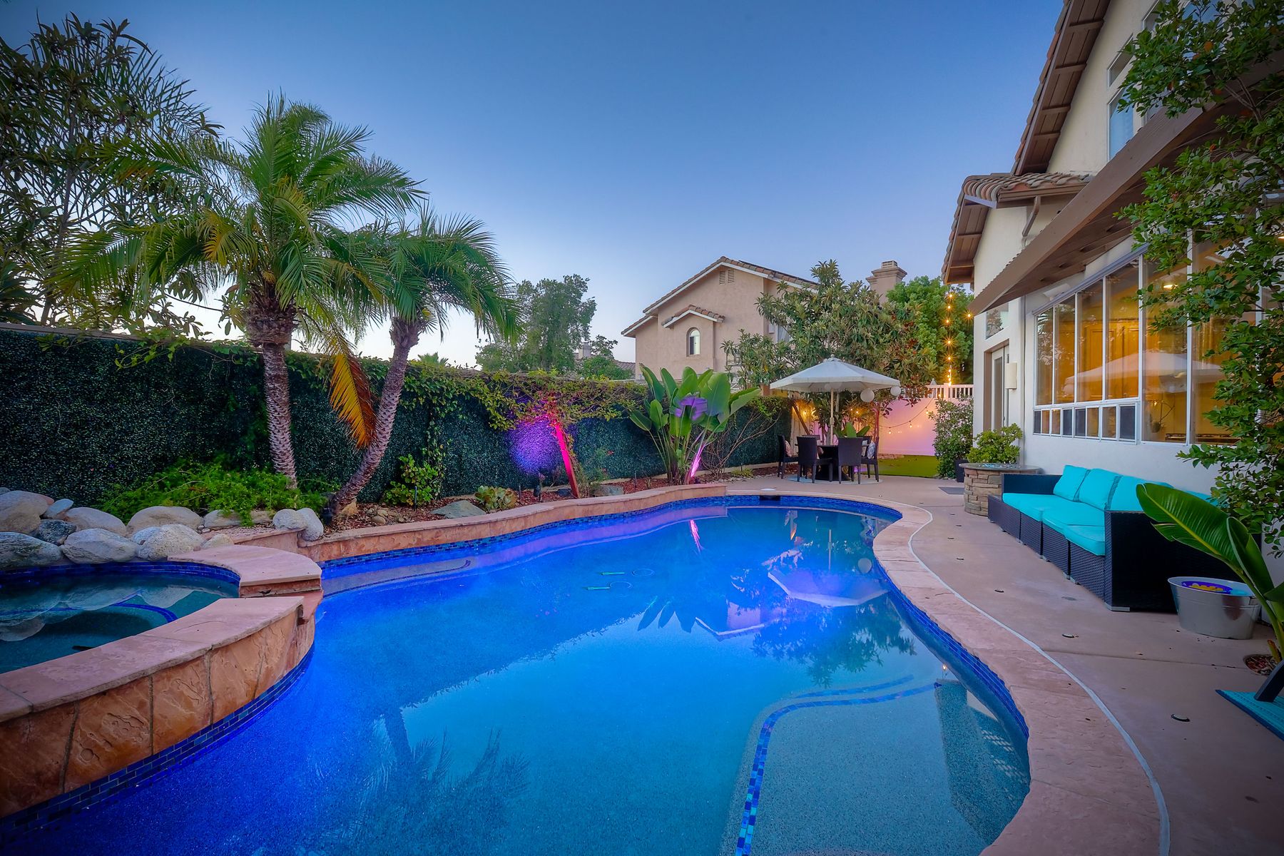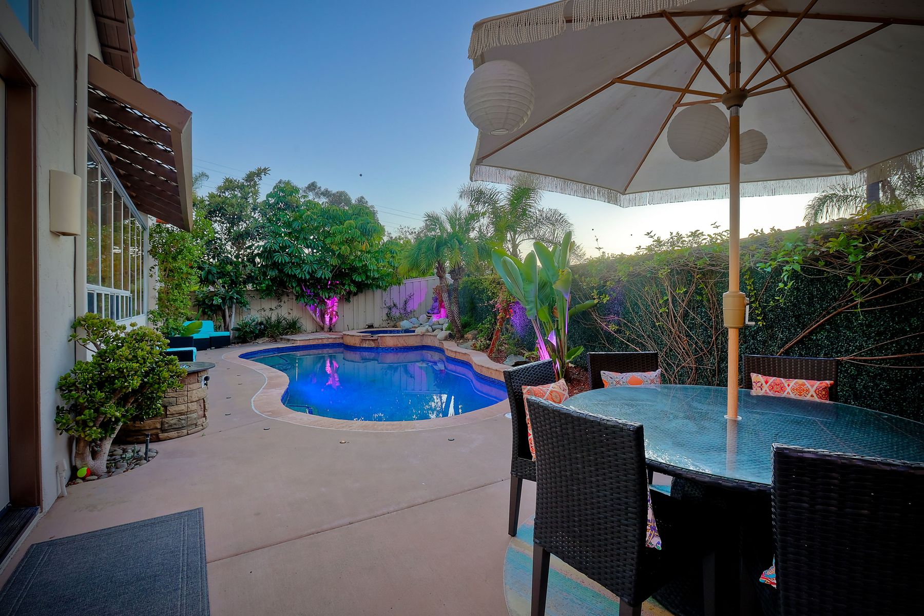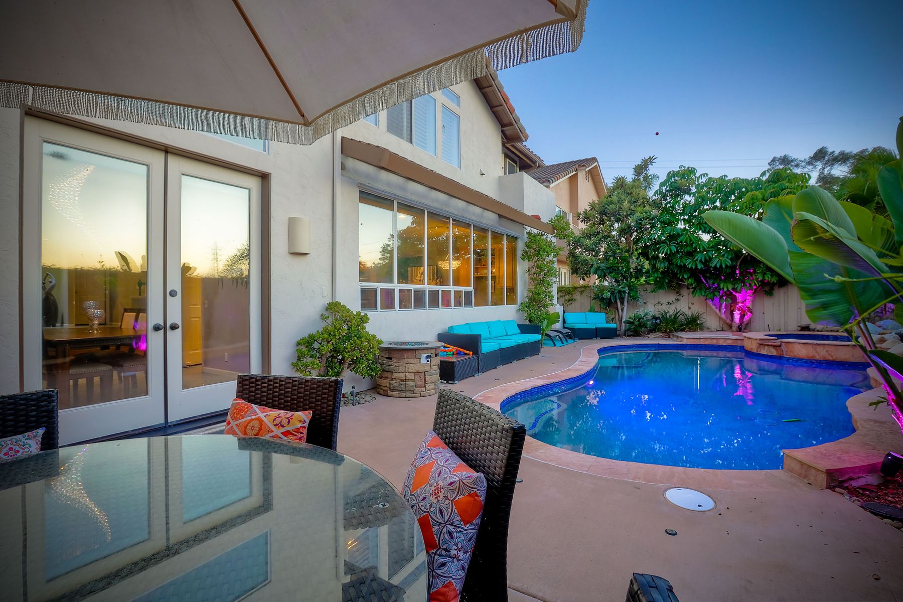 Incredible move-in ready and highly upgraded 4 bedroom (optional 5th bedroom) 3.5 bath Scripps Ranch home with owned 8.2KW solar system and a backyard paradise! Located in the highly desirable neighborhood of Scripps Legacy and on a double cul-de-sac, this homes sought-after layout features a downstairs bedroom and full bath with a private entrance, massive primary bedroom retreat with fireplace & balcony, and Children's wing thru double doors with 2 bedrooms and full bath. In addition, an amazing backyard with newly resurfaced pool, BBQ area, and huge side yard! Other features include: vaulted ceilings, designer paint, upgraded kitchen w/ granite counter/double oven, upgraded primary bath, newly painted exterior, new garage floor glass epoxy, new lighting fixtures throughout, new HVAC units, new solar pool heater, new artificial grass in both front and backyards, new low voltage landscape lighting, private balconies, and stunning sunrises and sunsets. In addition, an amazing backyard with newly resurfaced pool, BBQ area, and huge side yard! Other features include: vaulted ceilings, designer paint, upgraded kitchen w/ granite counter/double oven, upgraded primary bath, newly painted exterior, new garage floor glass epoxy, new lighting fixtures throughout, new HVAC units, new solar pool heater, new artificial grass in both front and backyards, new low voltage landscape lighting, new toilets, private balconies, and stunning sunrises and sunsets. Located close to restaurants, shopping, and highly rated schools!
