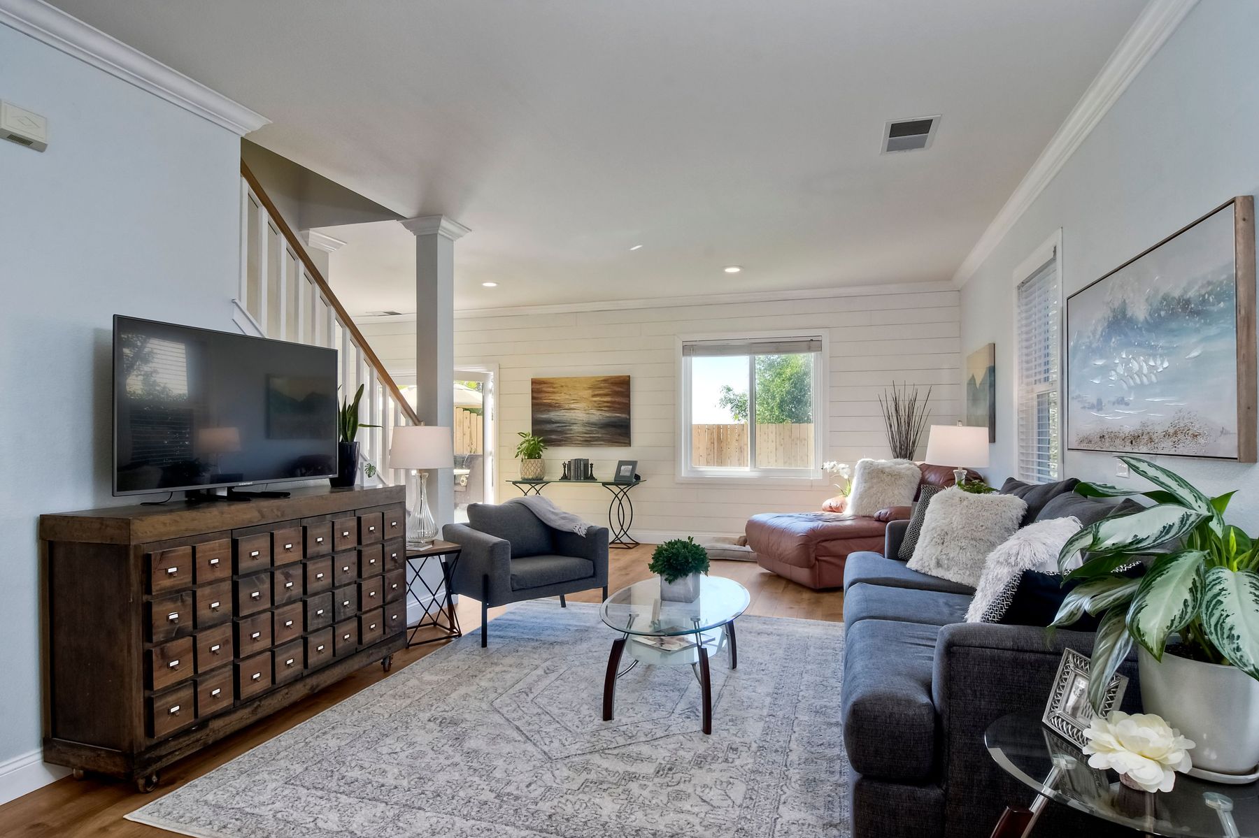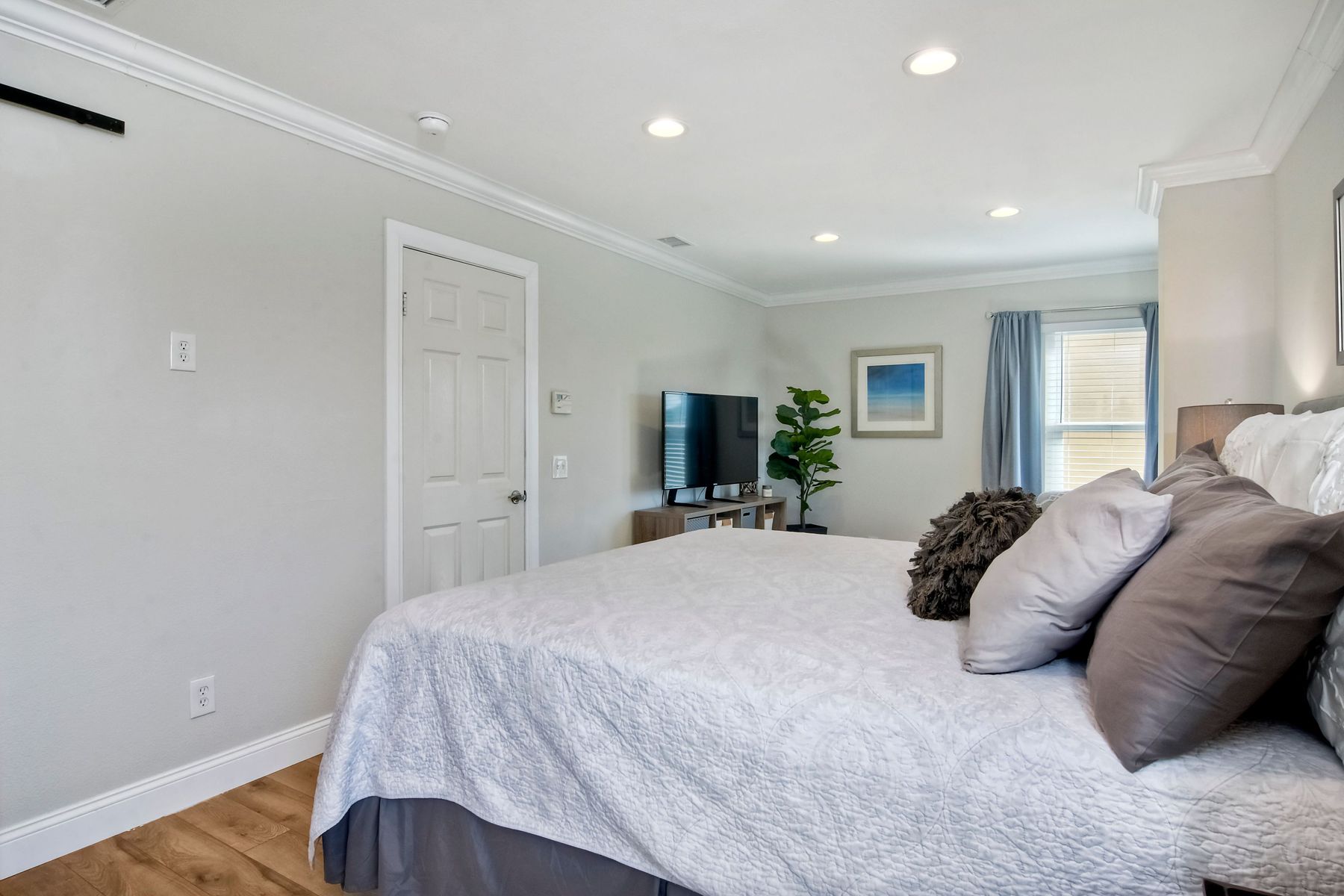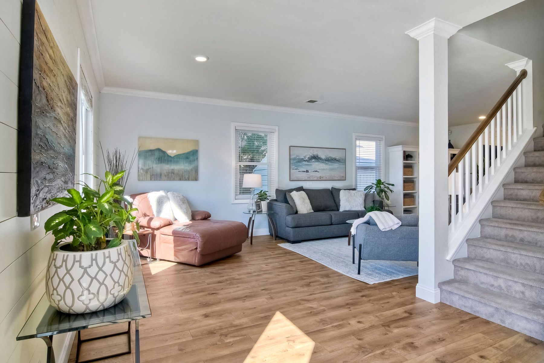 Gorgeous 3 bedroom/3 bath solar home with distant ocean and panoramic views. Beautiful custom details throughout with a large/pool size yard, perfect for entertaining and kids to play. Many of the upgrades include laminate wide plank wood flooring, new windows, crown molding, recessed lighting and beautiful designer colors throughout the home. The spacious bright kitchen opens to the dining area with new French doors to the back yard. All baths are tastefully upgraded. The Master Bedroom offers lots of natural light, a master retreat and an en-suite bath with a custom barn door entrance. The Master Bath features a large custom walk-in shower, rectangular floor tiles, tall glass shower panels and linen shelving. A 3-car driveway allows for plenty of parking. Save energy with your (owned) solar panel system. Santa Fe Hills is a unique neighborhood of approx. 1800 homes in N. San Marcos. Top rated schools, 9 community parks and mountain trails, multiple sports fields, pool, convenient to SD Beach towns, famous beaches, restaurants and shopping and nearby major freeways. Visit the community website at www.SantaFeHillsSanMarcos.com