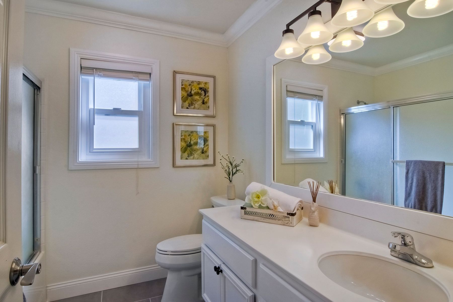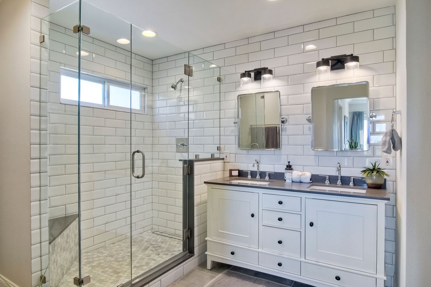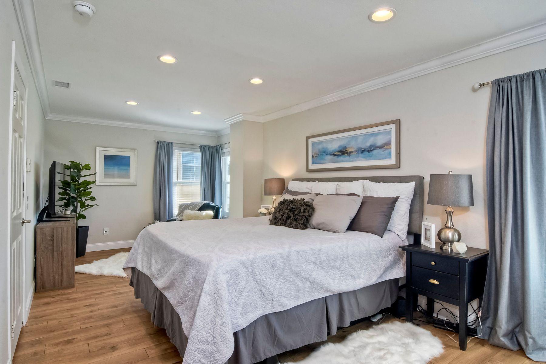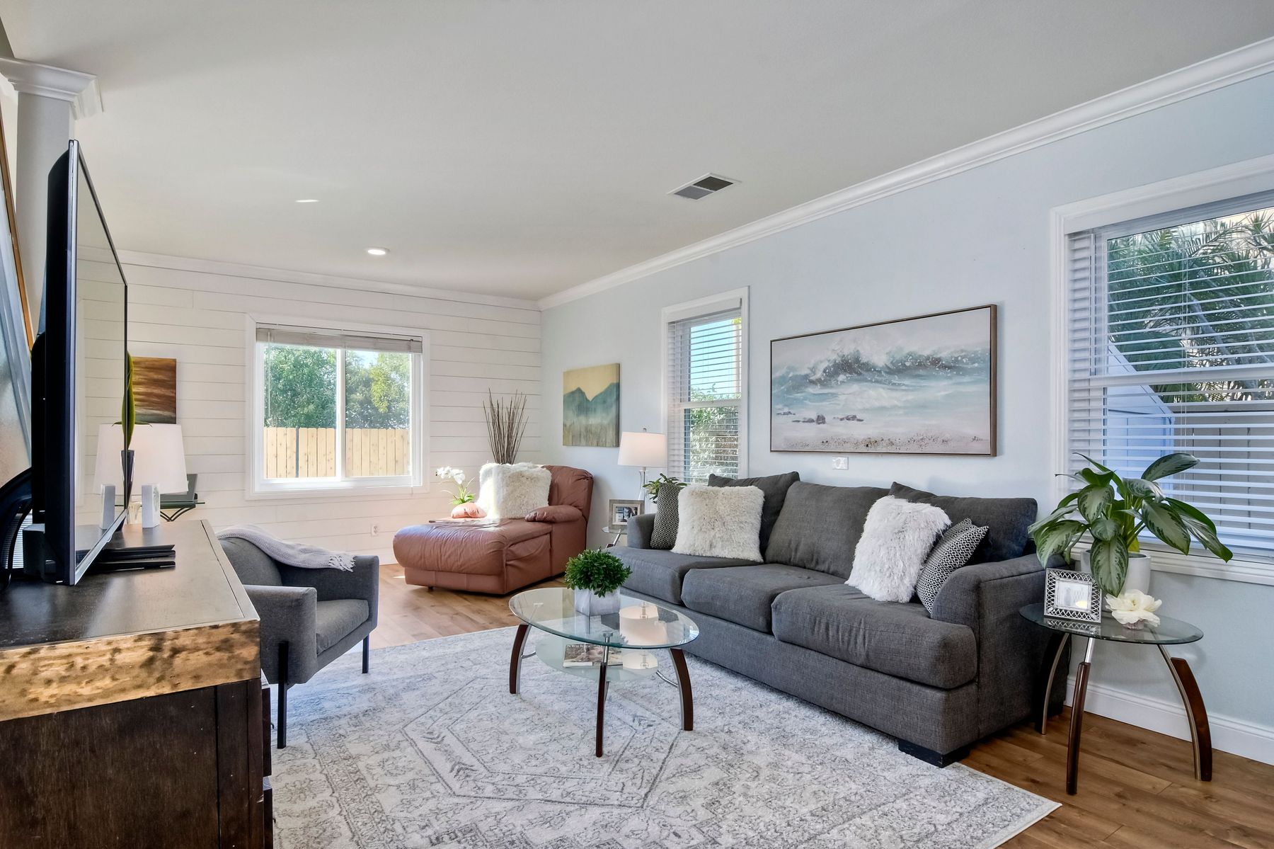 Gorgeous 3 bedroom/3 bath solar home with distant ocean and panoramic views. Beautiful custom details throughout with a large/pool size yard, perfect for entertaining and kids to play. Many of the upgrades include laminate wide plank wood flooring, new windows, crown molding, recessed lighting and beautiful designer colors throughout the home. The spacious bright kitchen opens to the dining area with new French doors to the back yard. All baths are tastefully upgraded. The Master Bedroom offers lots of natural light, a master retreat and an en-suite bath with a custom barn door entrance. The Master Bath features a large custom walk-in shower, rectangular floor tiles, tall glass shower panels and linen shelving. A 3-car driveway allows for plenty of parking. Save energy with your (owned) solar panel system. Santa Fe Hills is a unique neighborhood of approx. 1800 homes in N. San Marcos. Top rated schools, 9 community parks and mountain trails, multiple sports fields, pool, convenient to SD Beach towns, famous beaches, restaurants and shopping and nearby major freeways. Visit the community website at www.SantaFeHillsSanMarcos.com