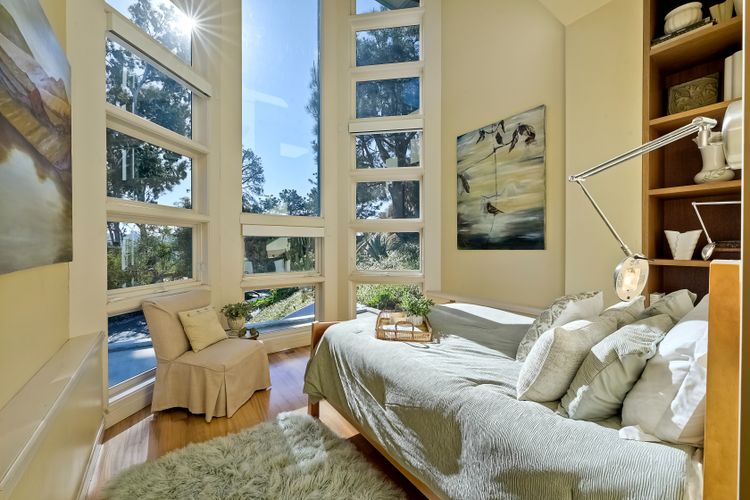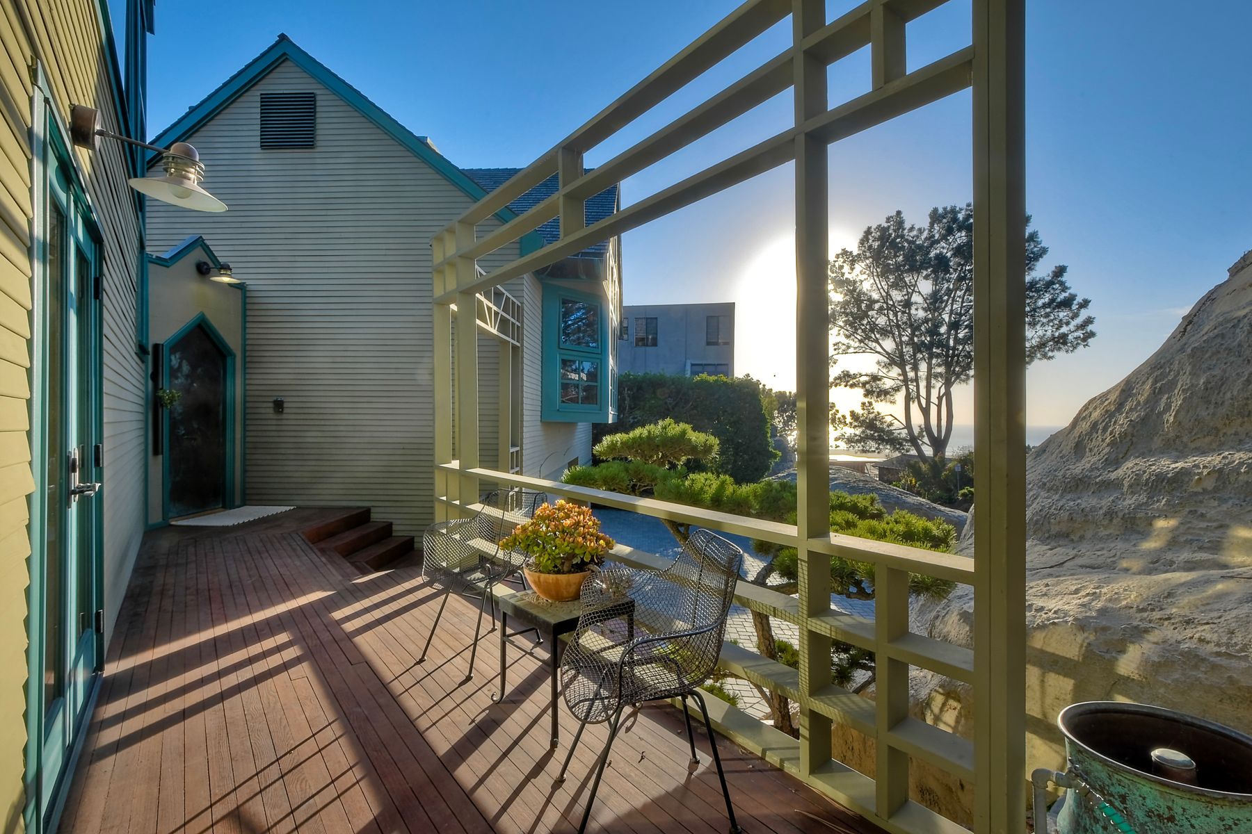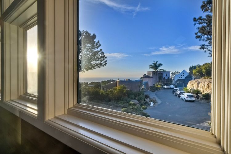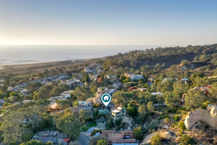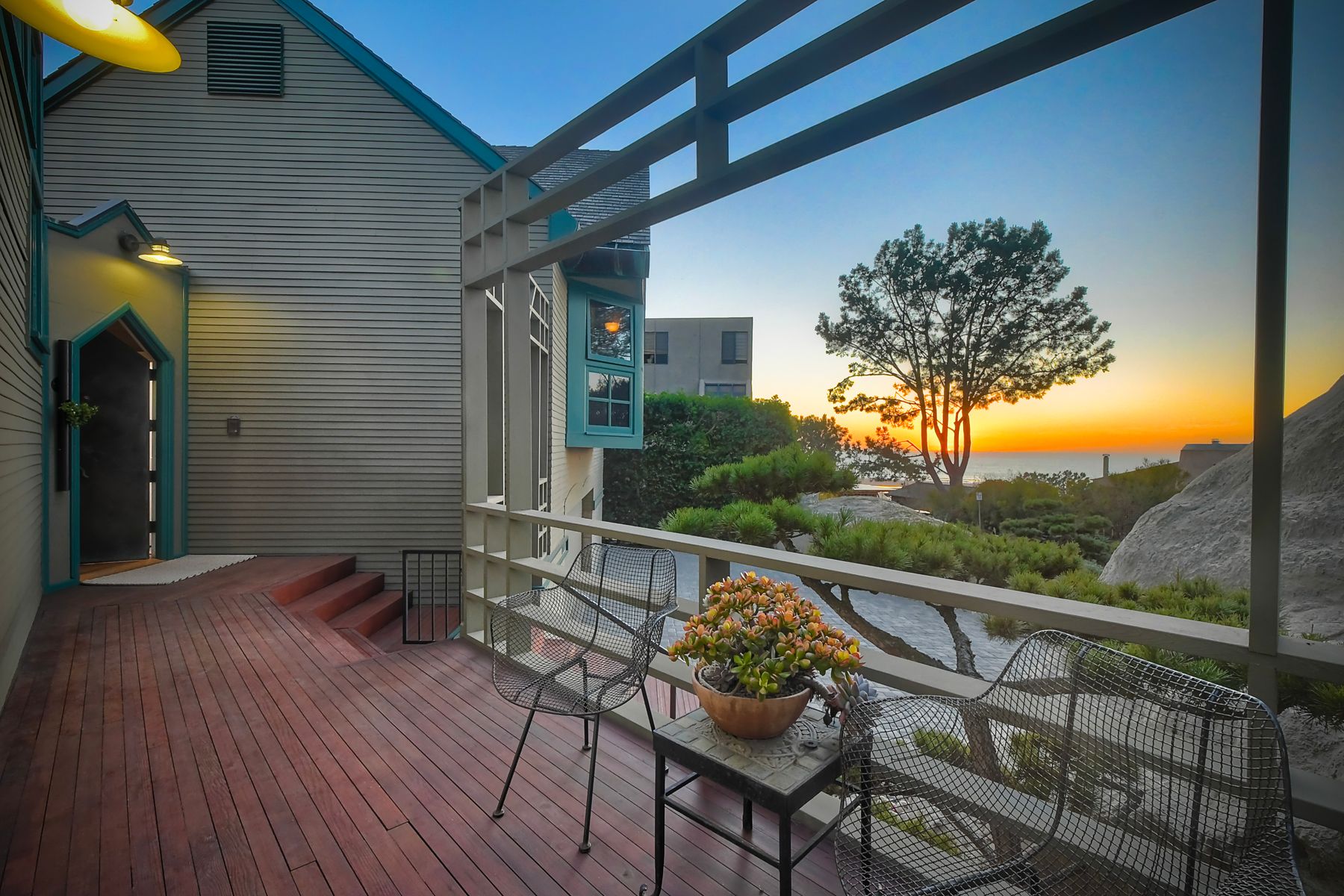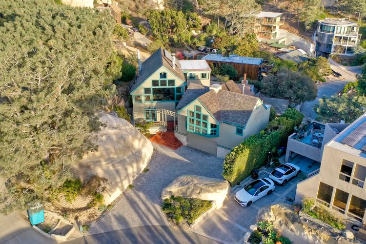 Every corner of this home tells a story, from the handcrafted center grain redwood ceilings and exquisite stone accents to the seamless indoor-outdoor flow that makes the expansive covered deck an extension of your living space. Here, you’ll experience sweeping ocean views that rival the beauty of any postcard, framed by the charm and sophistication that define this John Nalevanko architectural masterpiece. Perched gracefully amidst the sandstone cliffs of Del Mar Terrace, this one-of-a-kind residence invites you to step into a world where luxury meets artistry. The main home is a testament to impeccable design, with its hand-crafted wood ceilings and a remodeled kitchen that blends modern elegance with warmth and functionality. The detached guest house, a brilliant design by the world-renowned architect Wallace Cunningham, adds an unparalleled element of artistry to the property. This versatile sanctuary, with its spacious loft that currently functions as an art studio, gym, office, and bedroom, offers endless possibilities. The kitchenette and private garage with a dedicated driveway make it a haven of privacy and practicality—ideal for guests, work, or creative inspiration. This beautiful home is located just moments from Torrey Pines State Natural Reserve and the world renowned Torrey Pines Golf Course, pristine beaches, and upscale shopping. Additionally, the neighborhood benefits from its proximity to La Jolla and easy freeway access, providing a seamless connection to greater San Diego. Del Mar Terrace also offers easy access to Scripps Green Hospital, Scripps Memorial Hospital La Jolla, and the UCSD Medical Center, ensuring top-tier healthcare is just minutes away. The neighborhood is also near the prestigious University of California, San Diego (UCSD), making it an excellent location for those working or studying at the university. Whether you’re hosting an intimate gathering on the deck or soaking in the tranquil beauty of the Del Mar cliffs, this property offers a perfect balance of serenity and sophistication. This is more than a house—it’s where coastal dreams come to life.