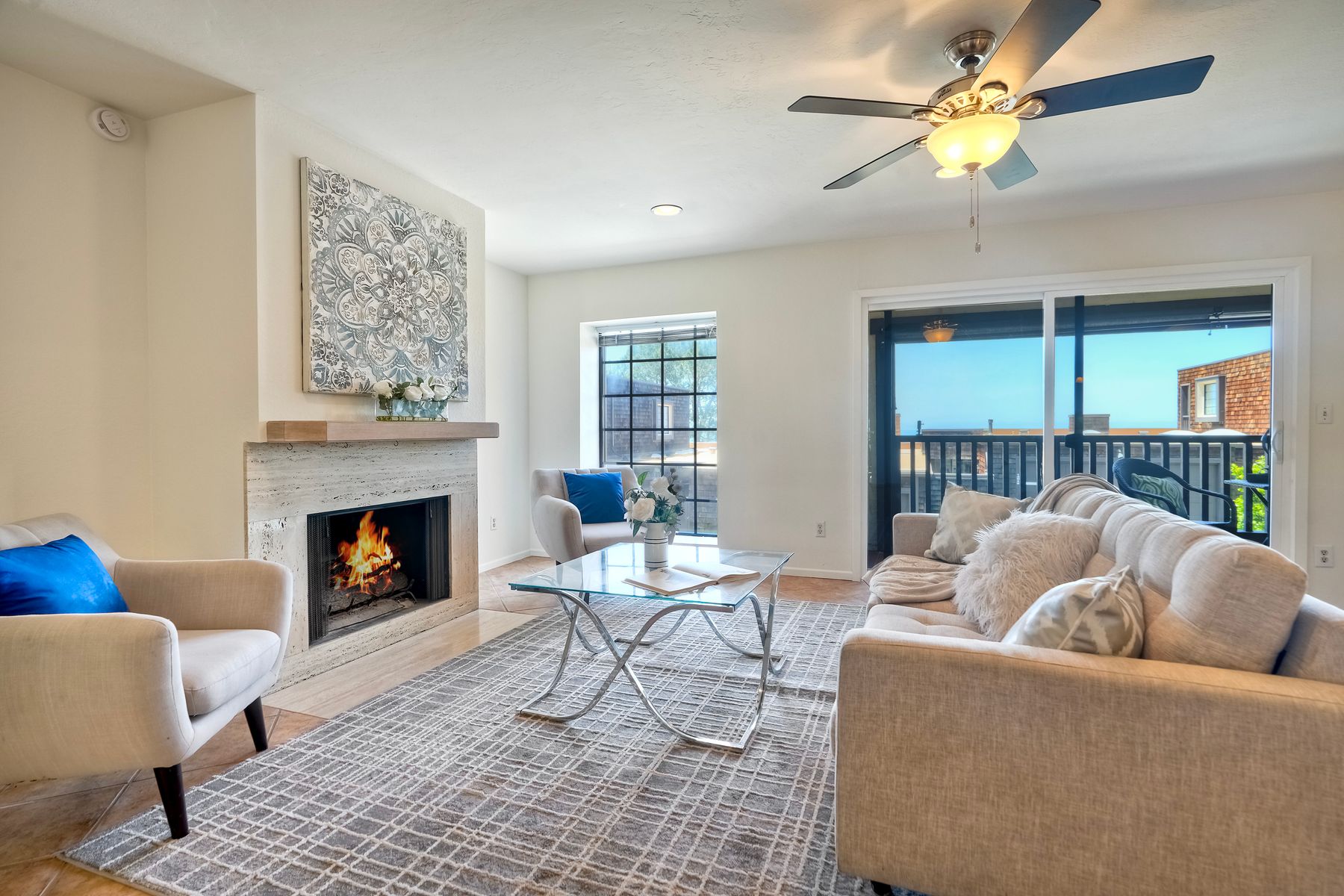Coastal Luxury Awaits in Sea Point! Step into resort-style living in the highly sought-after Sea Point community, just moments from Torrey Pines State Beach. This spacious townhome spans 1,841 sq. ft. and features 3 bedrooms, 2 full baths, and an office. As you approach, you're welcomed by an expansive private patio—perfect for entertaining or unwinding in the coastal breeze. Inside, you'll find two main-level bedrooms and a full bath, offering both convenience and flexibility. Just a few steps up lead to the open-concept living, dining, and kitchen areas. Enjoy breathtaking ocean views from the living room, dining area, and chef’s kitchen, complete with sleek cabinetry. Enjoy the southwest-facing balcony to sip your morning coffee or toast to stunning sunsets. The entire top floor is a dreamy primary suite, boasting unparalleled white-water views, a cozy fireplace, and three closets. No need to worry about parking—you’ll have an attached two-car garage with ample storage. Don’t miss this rare opportunity to live a slice of paradise..