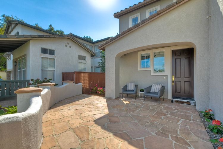 Welcome to your dream home! Gorgeous 4-bedroom, 2.5-bath gem spans 2,329sqft of thoughtfully designed living space. Nestled in a prime location with easy access to freeways and top-rated schools, this home has it all: new interior and exterior paint, new carpet, beautiful hardwood floors on 1st fl & stairs along with solar. Outside you'll enjoy stunning, unobstructed VIEWS from your sun-soaked backyard. The south-facing backyard ensures beautiful light all day, creating the perfect backdrop for relaxing or entertaining. Wonderful opportunity to own a view home in the highly sought after Torrey Highlands. NORTH FACING front door home has spacious kitchen with eat-in area that opens to the family room, separate living and dining room and beautiful hardwood floors on the first floor. Upstairs has four bedrooms, 2 baths (one hall and then primary) and laundry room. Primary bedroom has balcony with mountain views. Located close to shops, Poway Unified schools and easy access to freeways and beaches! Must see!
