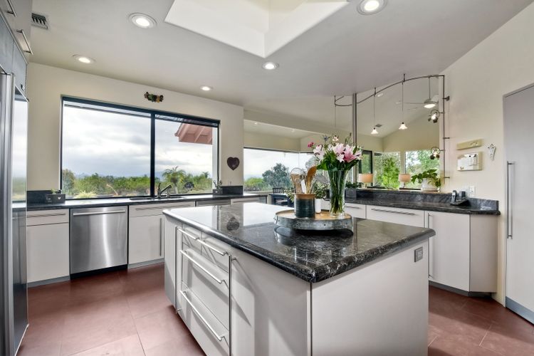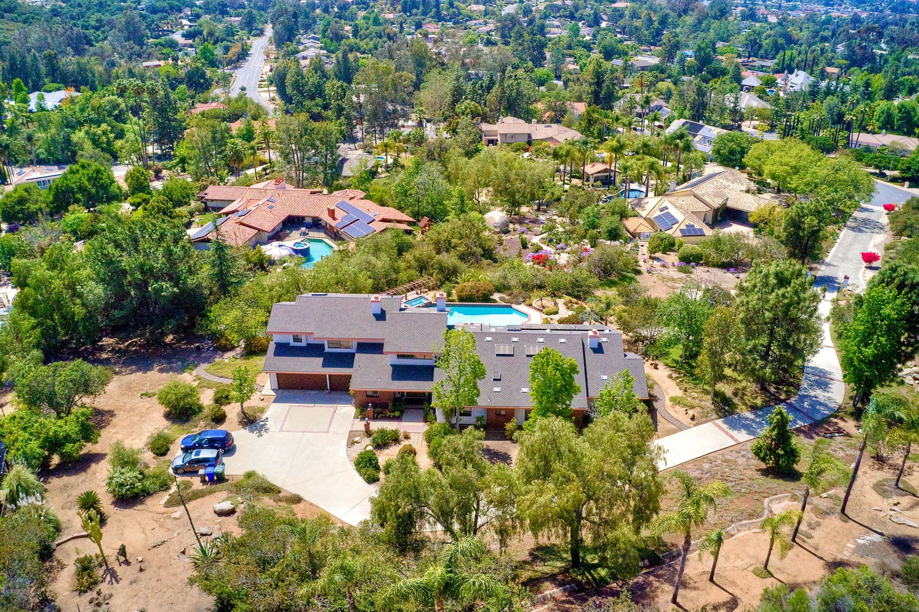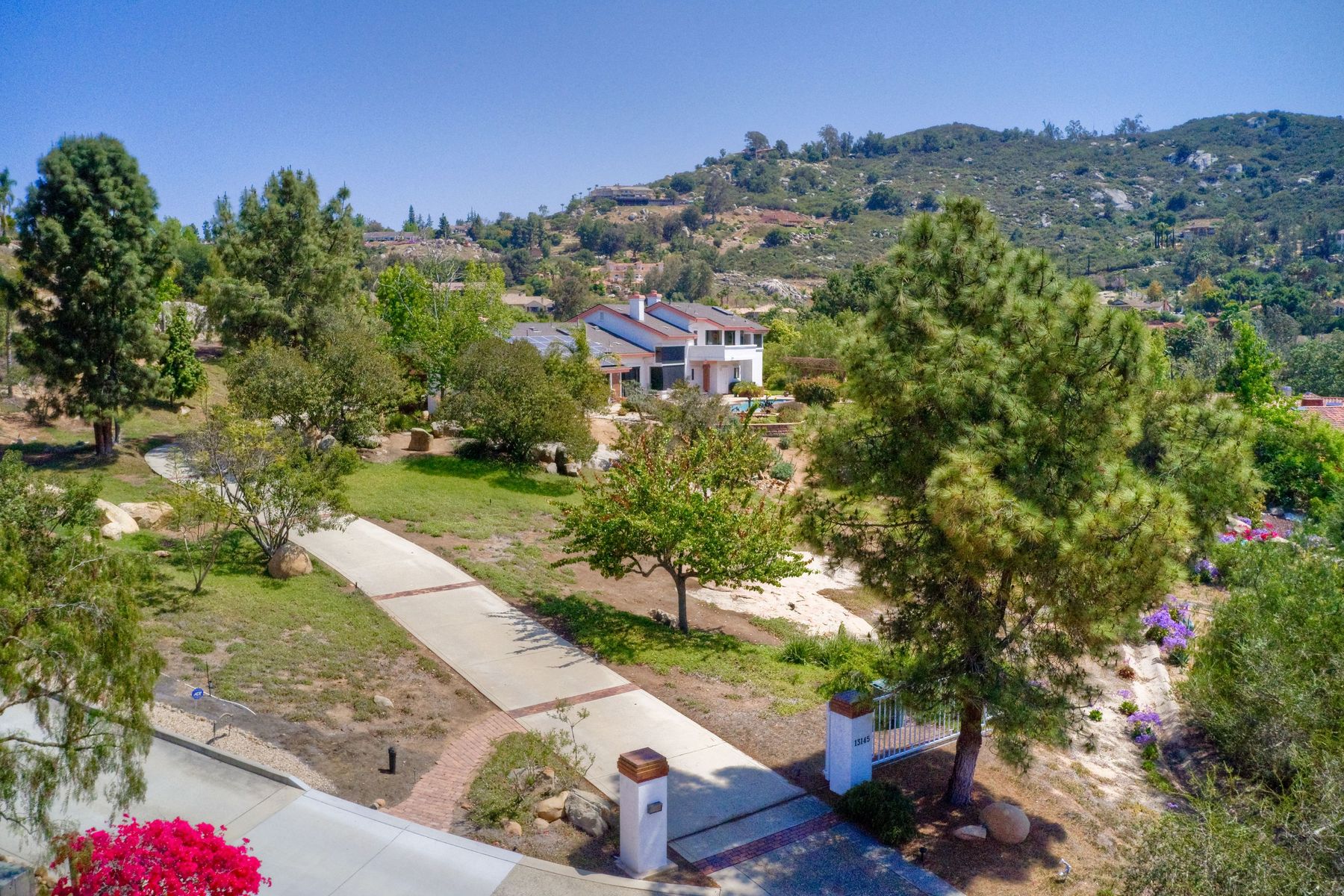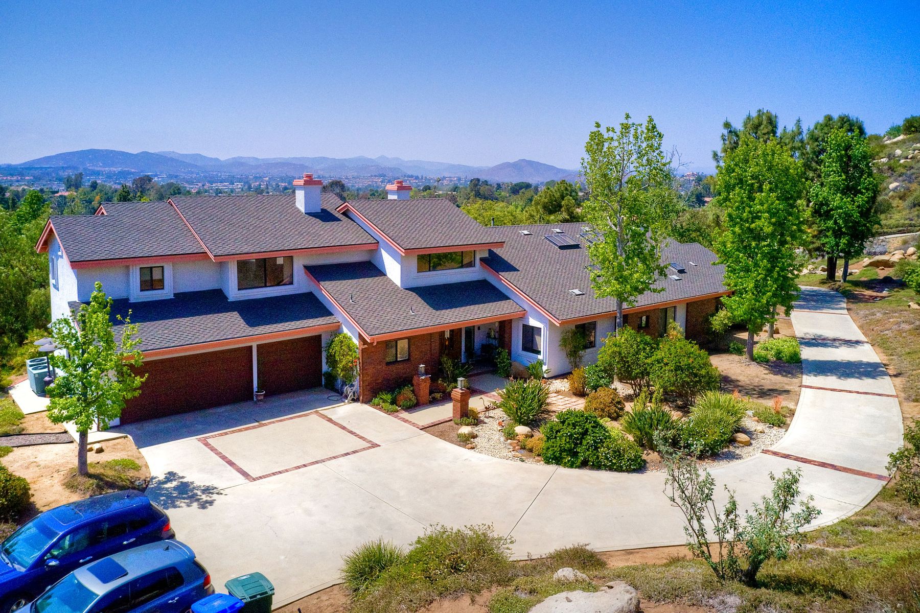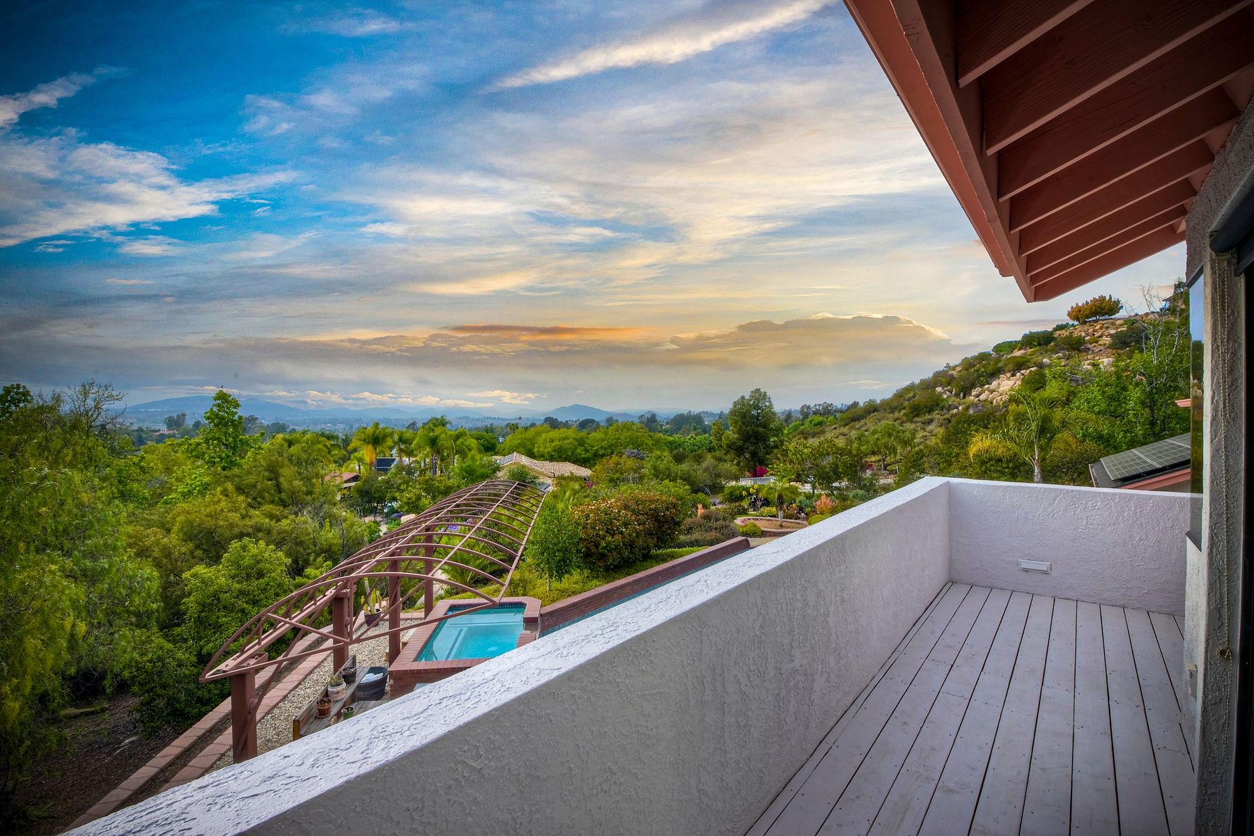 Welcome to an Exceptional Poway Home on a quiet cul-de-sac in the sought after community of Green Valley Knolls. The long driveway through inviting landscape takes you to this light, open 4 bedroom, 4 bath home on 1.48 acres. Moving through the double door entry you enter the stunning living room with two story ceilings, travertine tile floors, gas fireplace and massive windows that bring the light and amazing views in. The dining room is open to the living room and shares the fireplace, has amazing built-ins, tall french doors to the backyard patio and flows into the incredible kitchen. The kitchen is a chef's delight with stainless steel appliances . . . See Supplement The kitchen is a chef's delight with stainless steel appliances including double ovens, double dishwashers, Subzero fridge and a Viking gas stove with four burners, pancake grill plus steak grill. The European cabinets are light and the perfect contrast to the dark granite countertops. Tons of counter space including a large island with endless storage and a separate breakfast bar with seating for 2-3. A large skylight, rich tile flooring and an expansive window over the sink combines to provide the perfect workspace for entertaining or everyday living. The family room is open to the kitchen and is the heart of the home. A stacked stone feature wall includes a cozy fireplace, entertainment area and built ins. A wall of windows invite you in to enjoy the warm carpet, cooling fan and casual dining area. The first floor also includes two generous bedrooms joined by a Jack and Jill bath with beautiful tile work and a large glass tile shower. The optional 4th bedroom is being used as an office and has a walk in closet, tile flooring and built in double desks. A full hall bathroom also opens to the office/bedroom. This functional main floor includes a large laundry room with a sink, lots of shelving and counter space for folding, etc. Up the dramatic stairway you arrive at the master suite which dominates the entire second floor. This inviting oasis begins with the master bedrooms vaulted ceilings, gas fireplace, lovely built ins and wonderful sitting area next to a sliding glass door to the private balcony. The spa like master bath offers a large skylight, double vanity, deep soaking tub surrounded by windows, spacious walk in shower with glass tiles and walk in closet able to accommodate any wardrobe. The backyard is an entertainers dream offering the perfect space for indoor/outdoor living. The sparkling pool and raised jacuzzi are surrounded by a large patio with brick accents offering multiple areas for dining or conversation areas. There's a full bath off the patio. The new built in gas barbeque and low maintenance landscaping frame the yard but the star of this incredible space is the VIEW! The panoramic mountain views are amazing! Must be seen to really appreciate. Home also includes paid solar panels, central vac and 3 car garage with a workbench, sink, tons of cabinets, shelving and a separate walk in storage area. Located in the award winning Poway Unified School District. Close to Lake Poway, Blue Sky Ecological Reserve, Old Poway Park, Poway Center for the Performing Arts, golfing, wineries, restaurants, shopping and easy freeway access. No HOAs or Mello Roos.