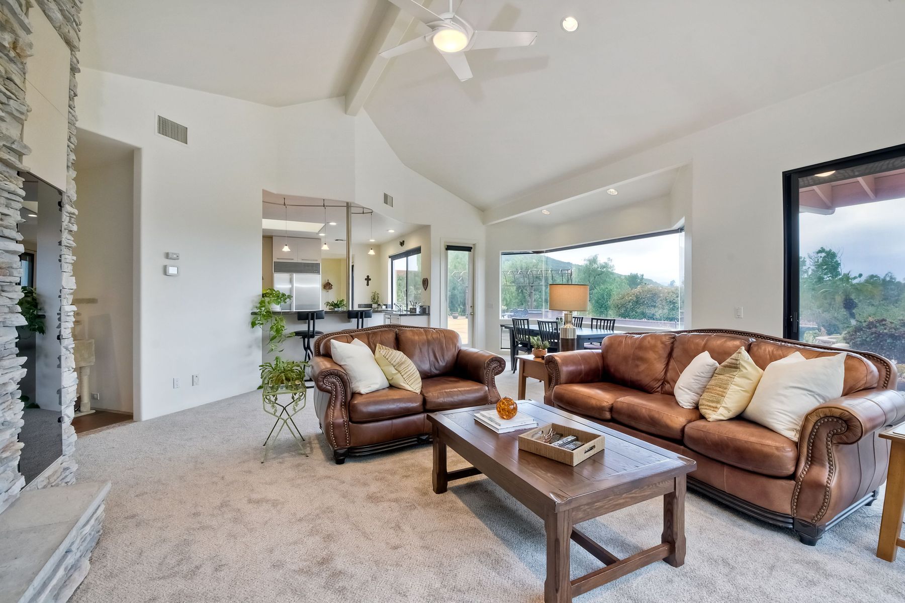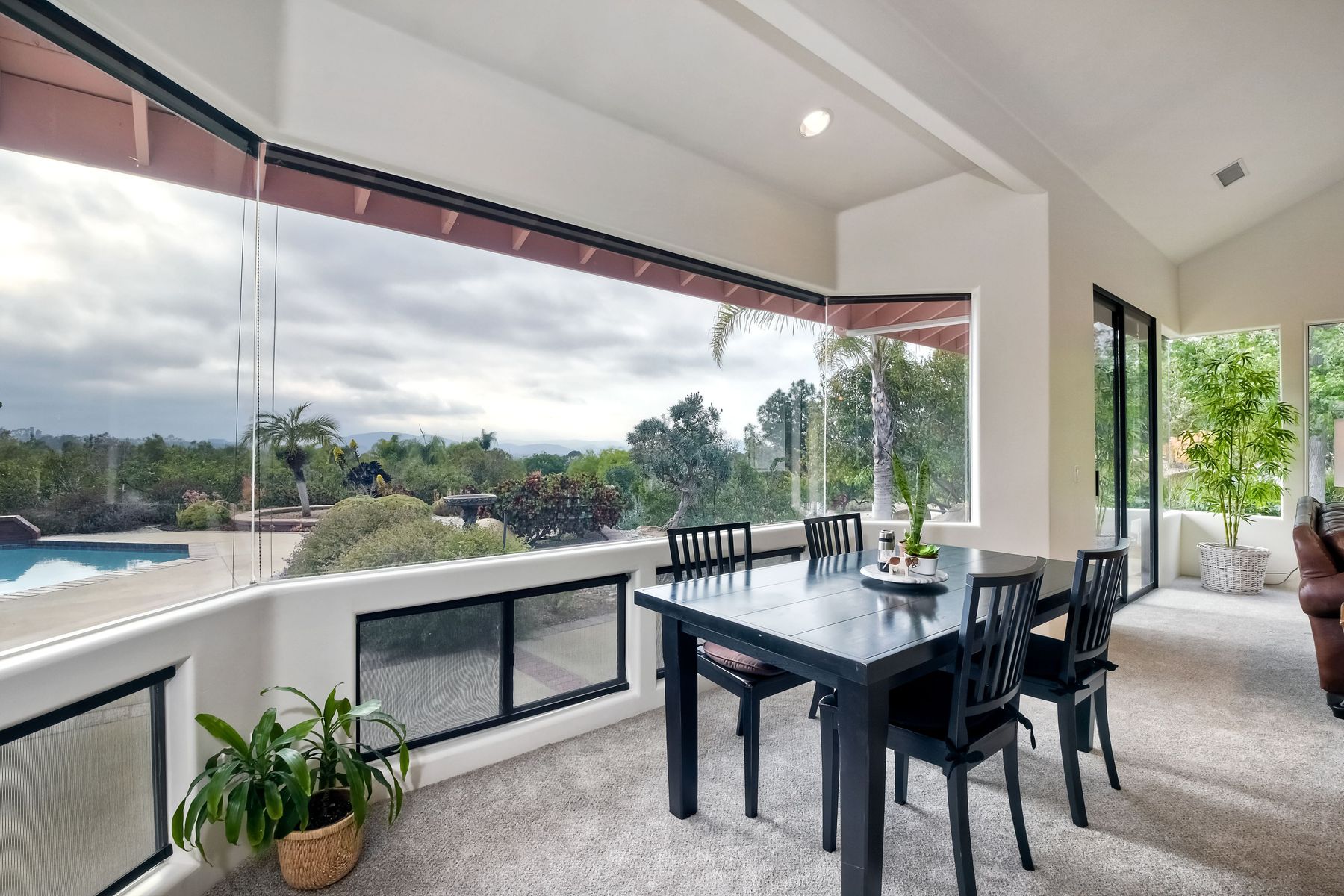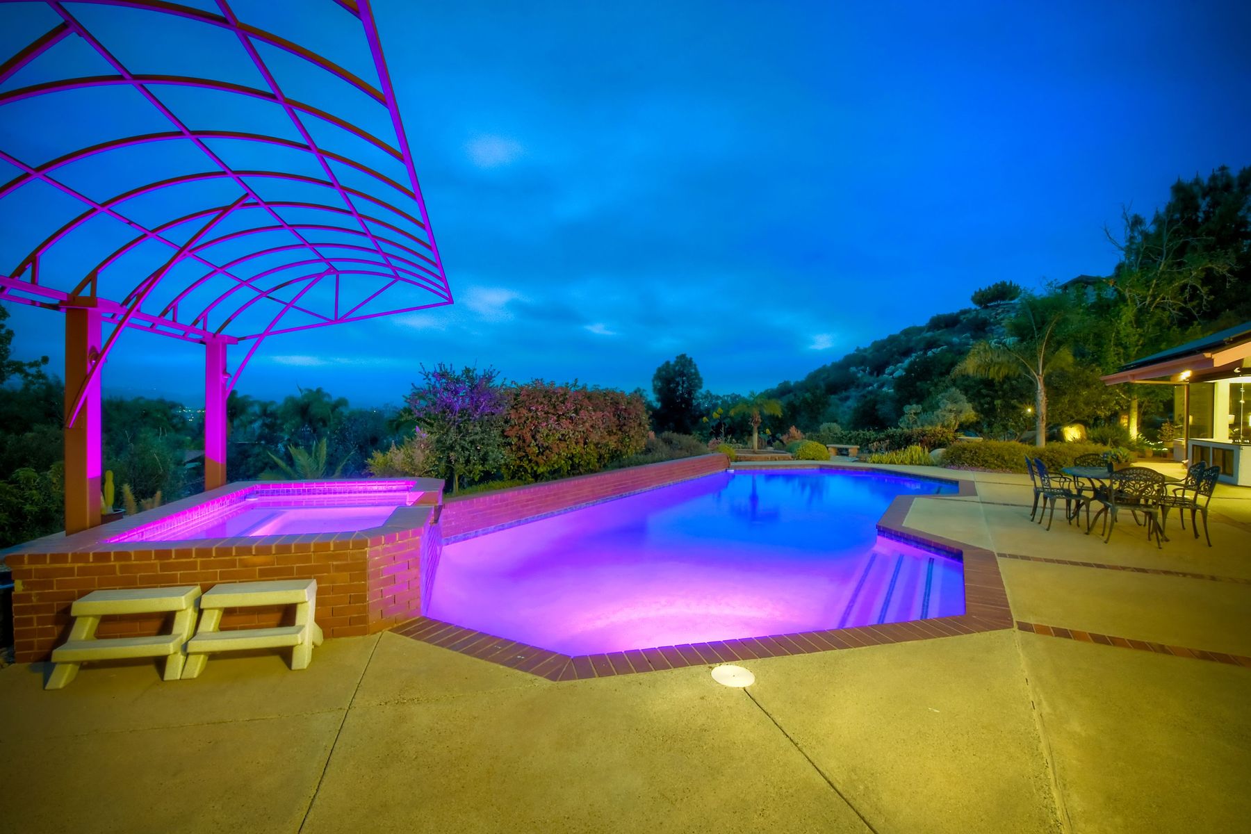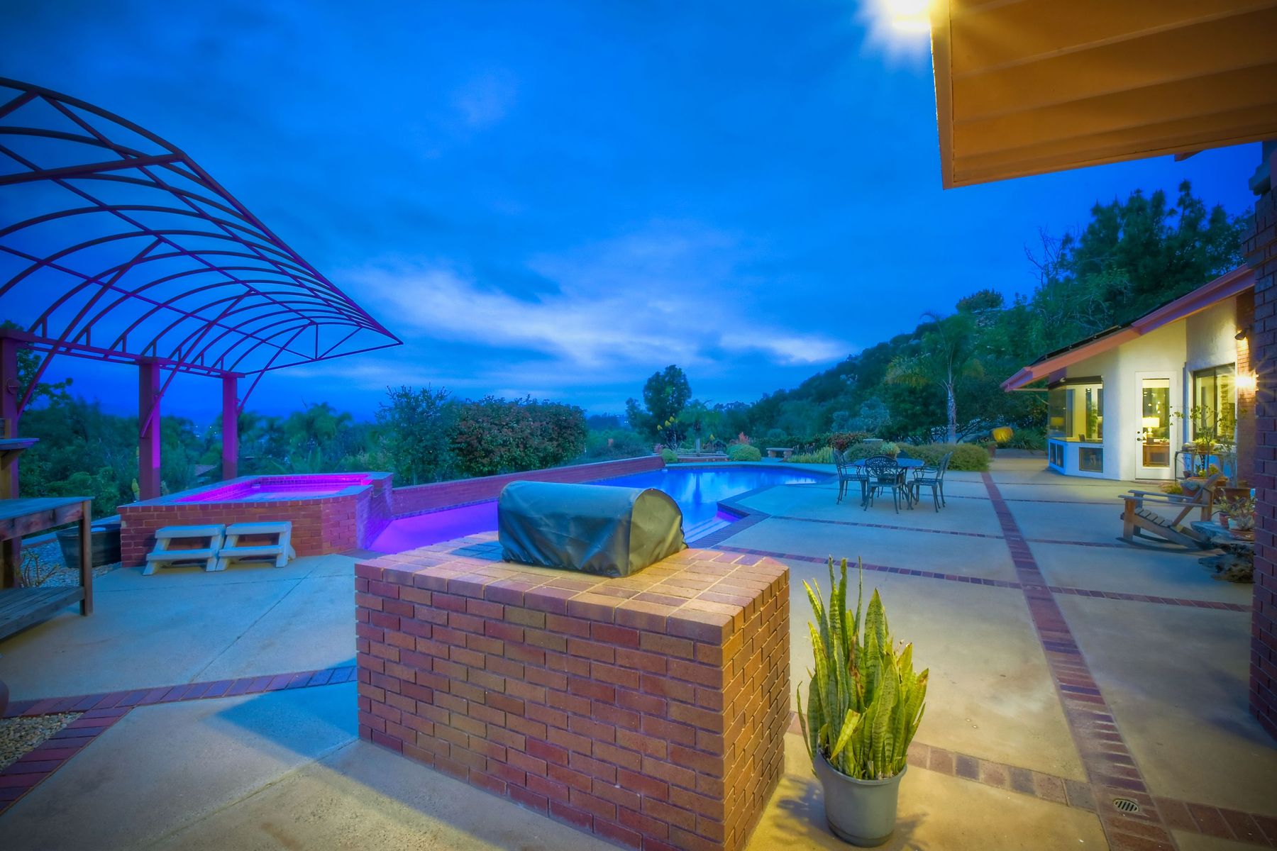 Welcome to an Exceptional Poway Home on a quiet cul-de-sac in the sought after community of Green Valley Knolls. The long driveway through inviting landscape takes you to this light, open 4 bedroom, 4 bath home on 1.48 acres. Moving through the double door entry you enter the stunning living room with two story ceilings, travertine tile floors, gas fireplace and massive windows that bring the light and amazing views in. The dining room is open to the living room and shares the fireplace, has amazing built-ins, tall french doors to the backyard patio and flows into the incredible kitchen. The kitchen is a chef's delight with stainless steel appliances . . . See Supplement The kitchen is a chef's delight with stainless steel appliances including double ovens, double dishwashers, Subzero fridge and a Viking gas stove with four burners, pancake grill plus steak grill. The European cabinets are light and the perfect contrast to the dark granite countertops. Tons of counter space including a large island with endless storage and a separate breakfast bar with seating for 2-3. A large skylight, rich tile flooring and an expansive window over the sink combines to provide the perfect workspace for entertaining or everyday living. The family room is open to the kitchen and is the heart of the home. A stacked stone feature wall includes a cozy fireplace, entertainment area and built ins. A wall of windows invite you in to enjoy the warm carpet, cooling fan and casual dining area. The first floor also includes two generous bedrooms joined by a Jack and Jill bath with beautiful tile work and a large glass tile shower. The optional 4th bedroom is being used as an office and has a walk in closet, tile flooring and built in double desks. A full hall bathroom also opens to the office/bedroom. This functional main floor includes a large laundry room with a sink, lots of shelving and counter space for folding, etc. Up the dramatic stairway you arrive at the master suite which dominates the entire second floor. This inviting oasis begins with the master bedrooms vaulted ceilings, gas fireplace, lovely built ins and wonderful sitting area next to a sliding glass door to the private balcony. The spa like master bath offers a large skylight, double vanity, deep soaking tub surrounded by windows, spacious walk in shower with glass tiles and walk in closet able to accommodate any wardrobe. The backyard is an entertainers dream offering the perfect space for indoor/outdoor living. The sparkling pool and raised jacuzzi are surrounded by a large patio with brick accents offering multiple areas for dining or conversation areas. There's a full bath off the patio. The new built in gas barbeque and low maintenance landscaping frame the yard but the star of this incredible space is the VIEW! The panoramic mountain views are amazing! Must be seen to really appreciate. Home also includes paid solar panels, central vac and 3 car garage with a workbench, sink, tons of cabinets, shelving and a separate walk in storage area. Located in the award winning Poway Unified School District. Close to Lake Poway, Blue Sky Ecological Reserve, Old Poway Park, Poway Center for the Performing Arts, golfing, wineries, restaurants, shopping and easy freeway access. No HOAs or Mello Roos.