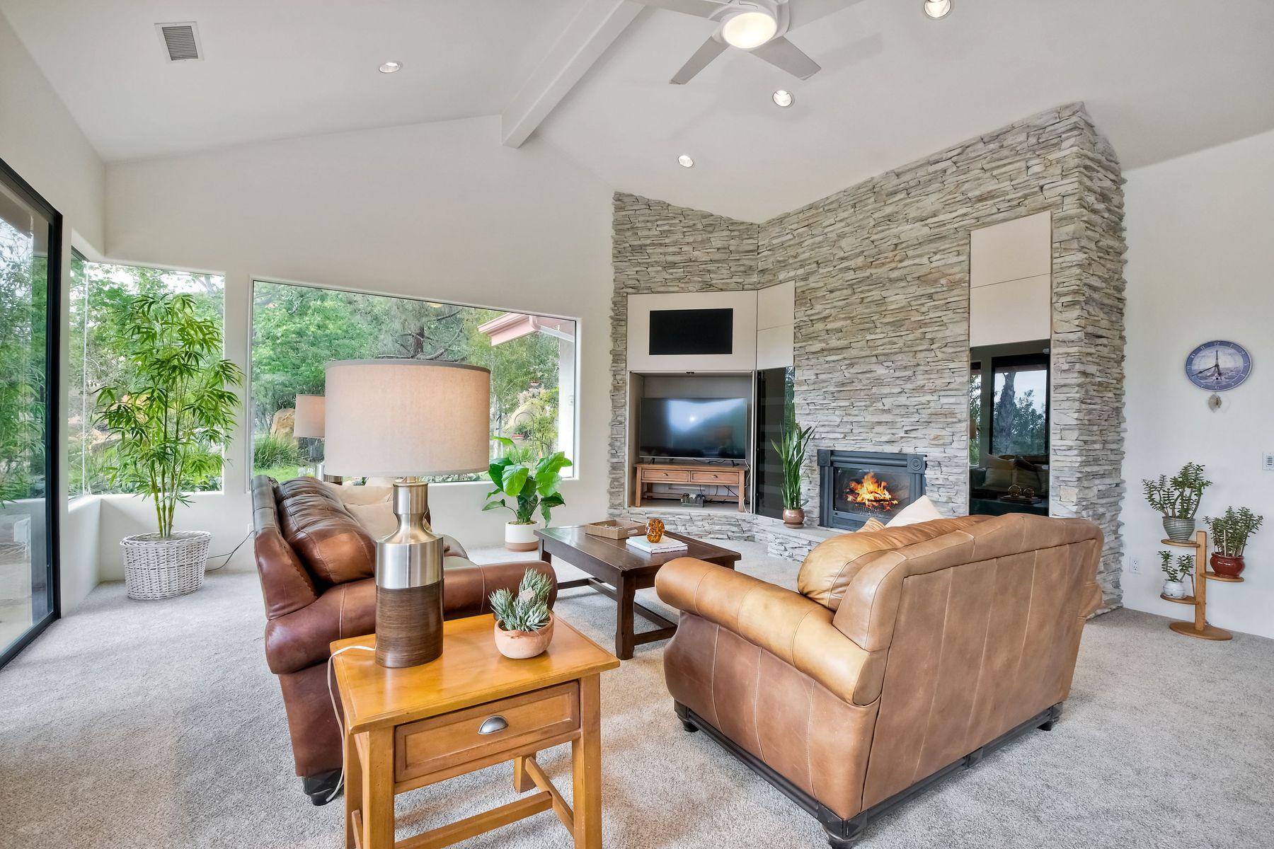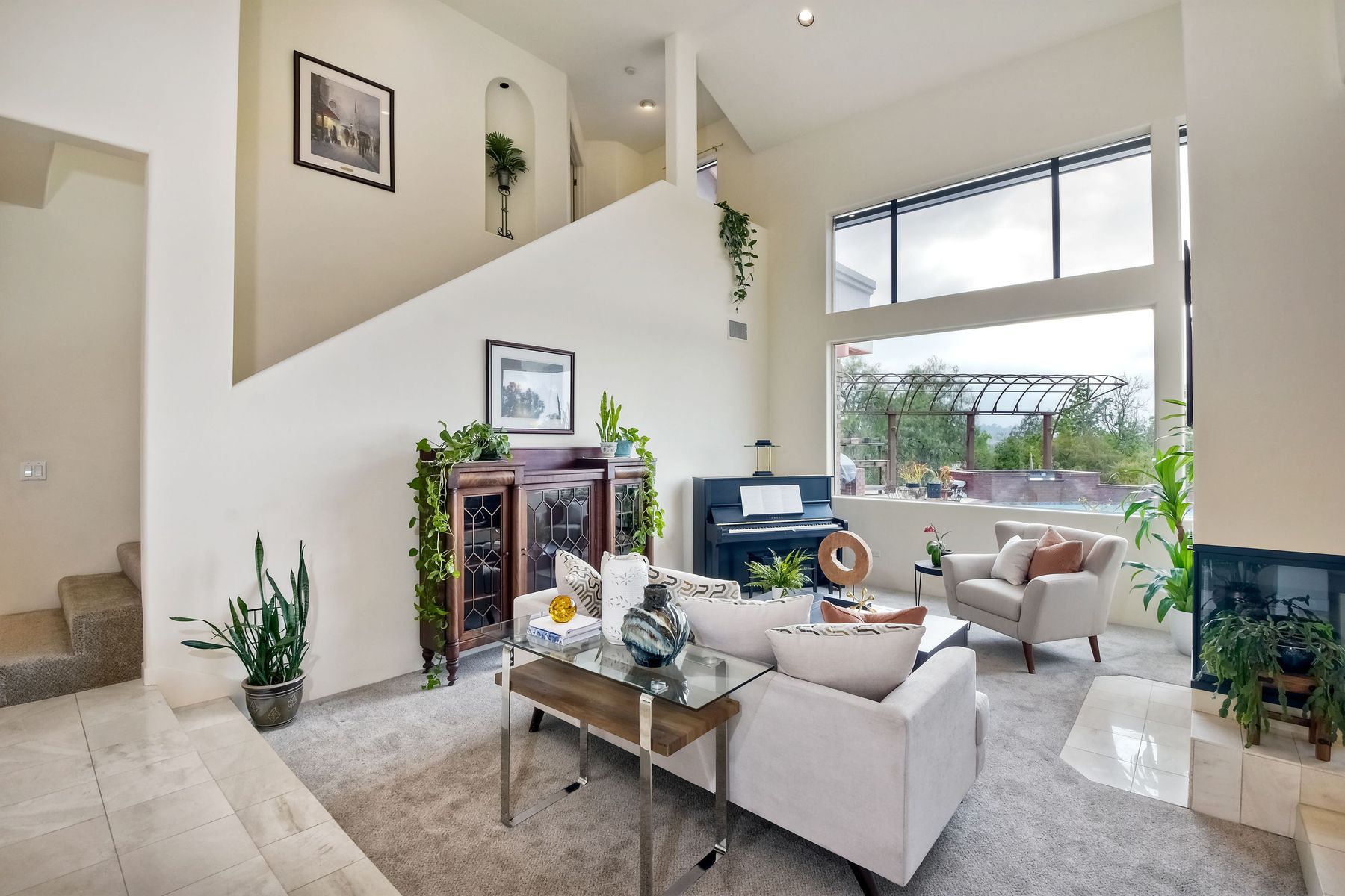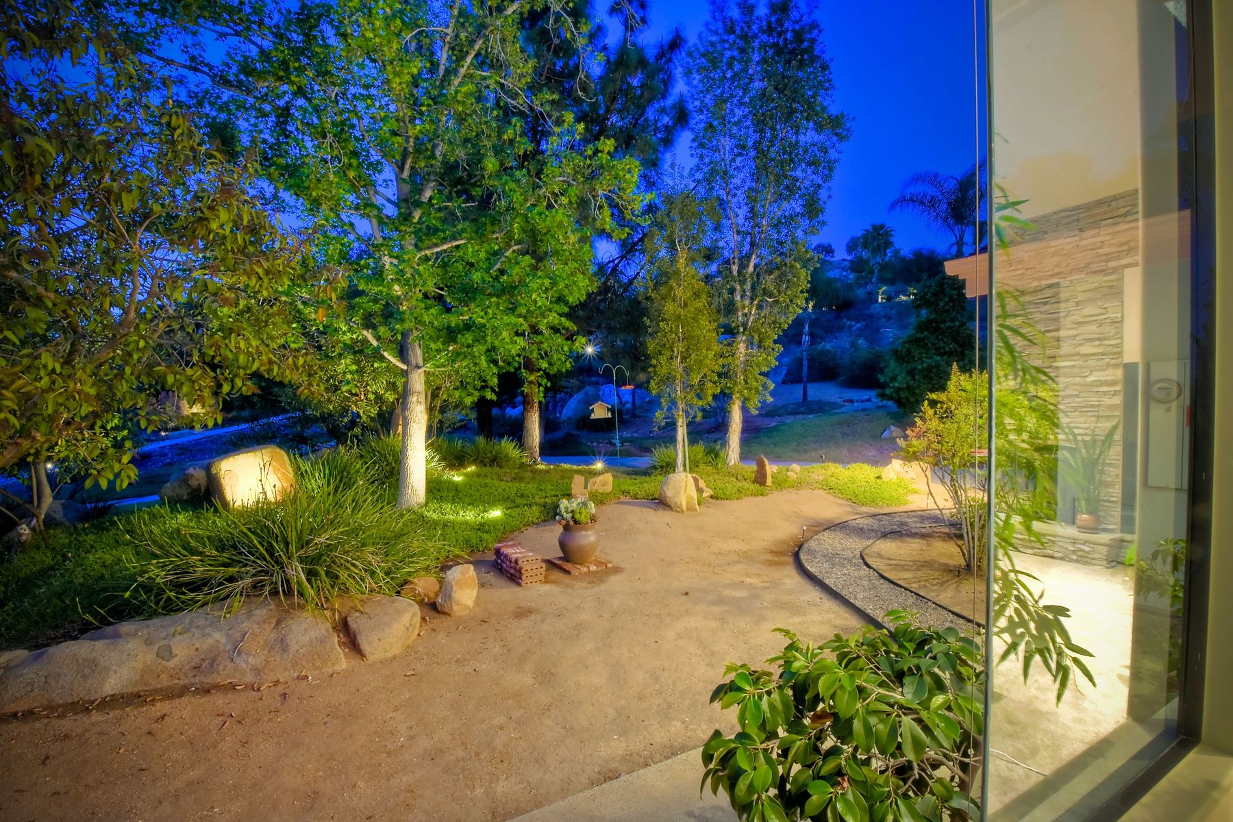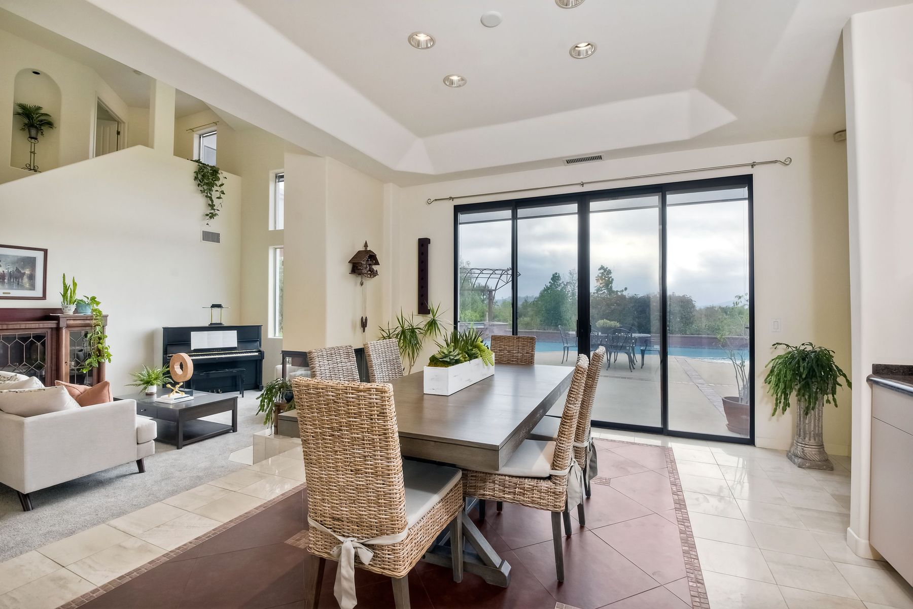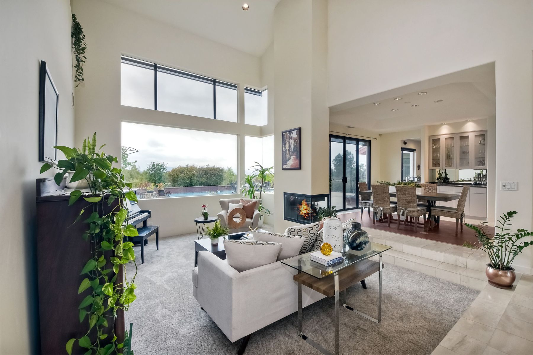 Welcome to an Exceptional Poway Home on a quiet cul-de-sac in the sought after community of Green Valley Knolls. The long driveway through inviting landscape takes you to this light, open 4 bedroom, 4 bath home on 1.48 acres. Moving through the double door entry you enter the stunning living room with two story ceilings, travertine tile floors, gas fireplace and massive windows that bring the light and amazing views in. The dining room is open to the living room and shares the fireplace, has amazing built-ins, tall french doors to the backyard patio and flows into the incredible kitchen. The kitchen is a chef's delight with stainless steel appliances . . . See Supplement The kitchen is a chef's delight with stainless steel appliances including double ovens, double dishwashers, Subzero fridge and a Viking gas stove with four burners, pancake grill plus steak grill. The European cabinets are light and the perfect contrast to the dark granite countertops. Tons of counter space including a large island with endless storage and a separate breakfast bar with seating for 2-3. A large skylight, rich tile flooring and an expansive window over the sink combines to provide the perfect workspace for entertaining or everyday living. The family room is open to the kitchen and is the heart of the home. A stacked stone feature wall includes a cozy fireplace, entertainment area and built ins. A wall of windows invite you in to enjoy the warm carpet, cooling fan and casual dining area. The first floor also includes two generous bedrooms joined by a Jack and Jill bath with beautiful tile work and a large glass tile shower. The optional 4th bedroom is being used as an office and has a walk in closet, tile flooring and built in double desks. A full hall bathroom also opens to the office/bedroom. This functional main floor includes a large laundry room with a sink, lots of shelving and counter space for folding, etc. Up the dramatic stairway you arrive at the master suite which dominates the entire second floor. This inviting oasis begins with the master bedrooms vaulted ceilings, gas fireplace, lovely built ins and wonderful sitting area next to a sliding glass door to the private balcony. The spa like master bath offers a large skylight, double vanity, deep soaking tub surrounded by windows, spacious walk in shower with glass tiles and walk in closet able to accommodate any wardrobe. The backyard is an entertainers dream offering the perfect space for indoor/outdoor living. The sparkling pool and raised jacuzzi are surrounded by a large patio with brick accents offering multiple areas for dining or conversation areas. There's a full bath off the patio. The new built in gas barbeque and low maintenance landscaping frame the yard but the star of this incredible space is the VIEW! The panoramic mountain views are amazing! Must be seen to really appreciate. Home also includes paid solar panels, central vac and 3 car garage with a workbench, sink, tons of cabinets, shelving and a separate walk in storage area. Located in the award winning Poway Unified School District. Close to Lake Poway, Blue Sky Ecological Reserve, Old Poway Park, Poway Center for the Performing Arts, golfing, wineries, restaurants, shopping and easy freeway access. No HOAs or Mello Roos.