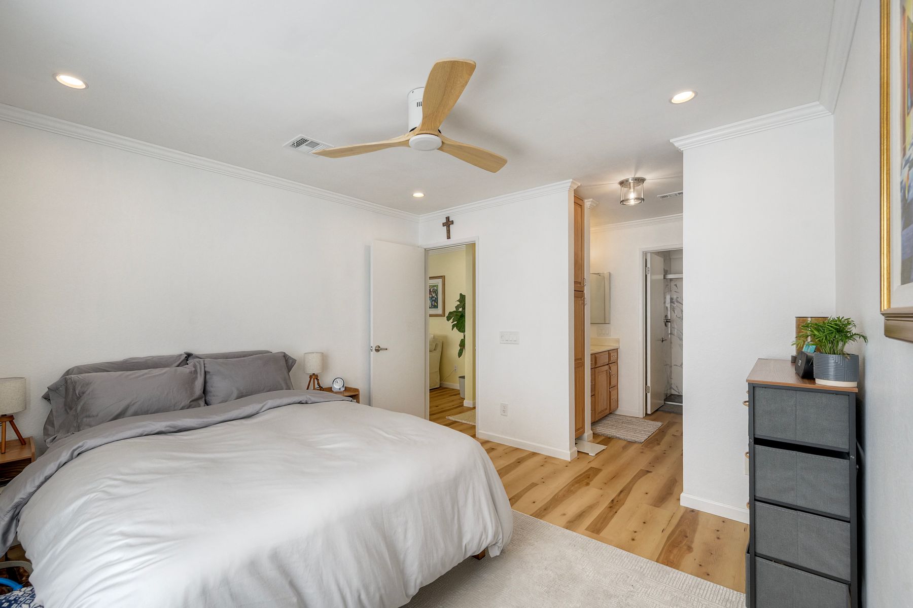 $60k in upgrades. Beautifully upgraded 2-bedroom, 2-bath upstairs end unit offering 889 sq ft of stylish, move-in-ready living in a quiet, peaceful setting within the highly desirable Poway Unified School District. The private covered balcony with storage provides the perfect space to relax and unwind. Both bedrooms have attached bathrooms. The home features brand-new flooring, recessed lighting, ceiling fans, elegant crown molding, and UP/DOWN blinds, creating a bright and comfortable living environment. The living room is anchored by a striking stacked-stone fireplace, adding warmth and character. The updated kitchen showcases New quartz countertops, New Kitchen cabinets and brand-new stainless-steel appliances, including a gas cooktop/oven, microwave, dishwasher, and refrigerator. A full-size stacked washer and dryer adds everyday convenience. Both bathrooms have been completely remodeled, featuring new shower doors, updated plumbing, modern fixtures, custom shower backsplash, rainfall showerheads, and new toilets, offering a spa-like experience. Additional upgrades include a water heater replaced in 2020 and an AC system recently tuned up. Enjoy privacy, quality upgrades throughout, and a prime San Diego location close to shopping, dining, parks, and easy freeway access. This exceptional home is ideal for first-time buyers, downsizers, or investors seeking comfort, style, and long-term value.
