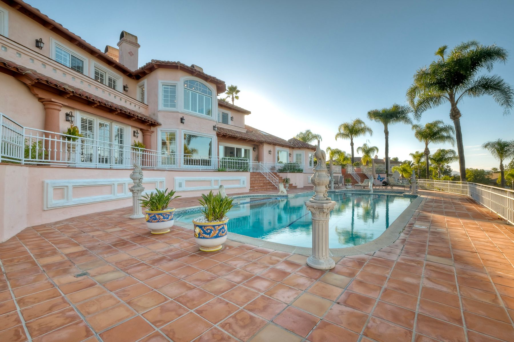 Expansive Estate in the prestigious Lomas Verdes Estates on an elevated lot, providing panoramic views of the mountains and valley. Each bedroom has an ensuite bath with the primary bedroom conveniently located on entry level. An attached ADU w/ living room, full kitchen and a bed/bath is located on the 2nd level w/ an elevator for accessibility. Gorgeous patios, pool and mature landscaping make this an entertainers delight. Located in the award winning Poway Unified School District and close to local favorite Bernardo Winery. This estate is a must see! Additional features of the home include a gated entry, sauna in the primary bathroom, multiple walk in closets with built ins, built in cabinetry in the garage, dutch doors in the breakfast nook, stainless sub zero refrigerator, Wolf 6 burner gas range with griddle and double ovens, large stainless range hood, granite countertops, pull out shelving in the kitchen cabinets, outdoor built in BBQ, water softener, epoxy coating on garage floor, central vacuum, marble flooring in living and dining room, outdoor shuffleboard and more!