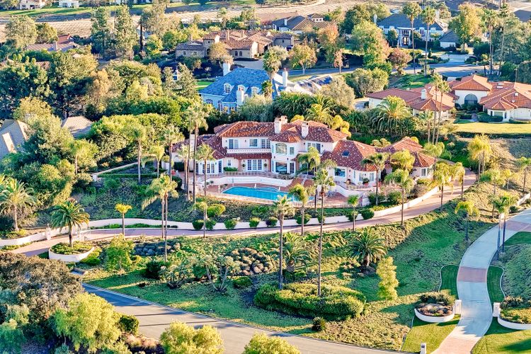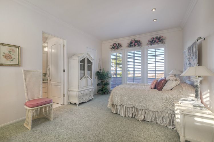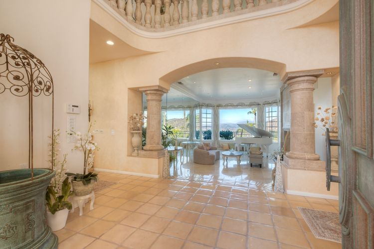 Expansive Estate in the prestigious Lomas Verdes Estates on an elevated lot, providing panoramic views of the mountains and valley. Each bedroom has an ensuite bath with the primary bedroom conveniently located on entry level. An attached ADU w/ living room, full kitchen and a bed/bath is located on the 2nd level w/ an elevator for accessibility. Gorgeous patios, pool and mature landscaping make this an entertainers delight. Located in the award winning Poway Unified School District and close to local favorite Bernardo Winery. This estate is a must see! Additional features of the home include a gated entry, sauna in the primary bathroom, multiple walk in closets with built ins, built in cabinetry in the garage, dutch doors in the breakfast nook, stainless sub zero refrigerator, Wolf 6 burner gas range with griddle and double ovens, large stainless range hood, granite countertops, pull out shelving in the kitchen cabinets, outdoor built in BBQ, water softener, epoxy coating on garage floor, central vacuum, marble flooring in living and dining room, outdoor shuffleboard and more!