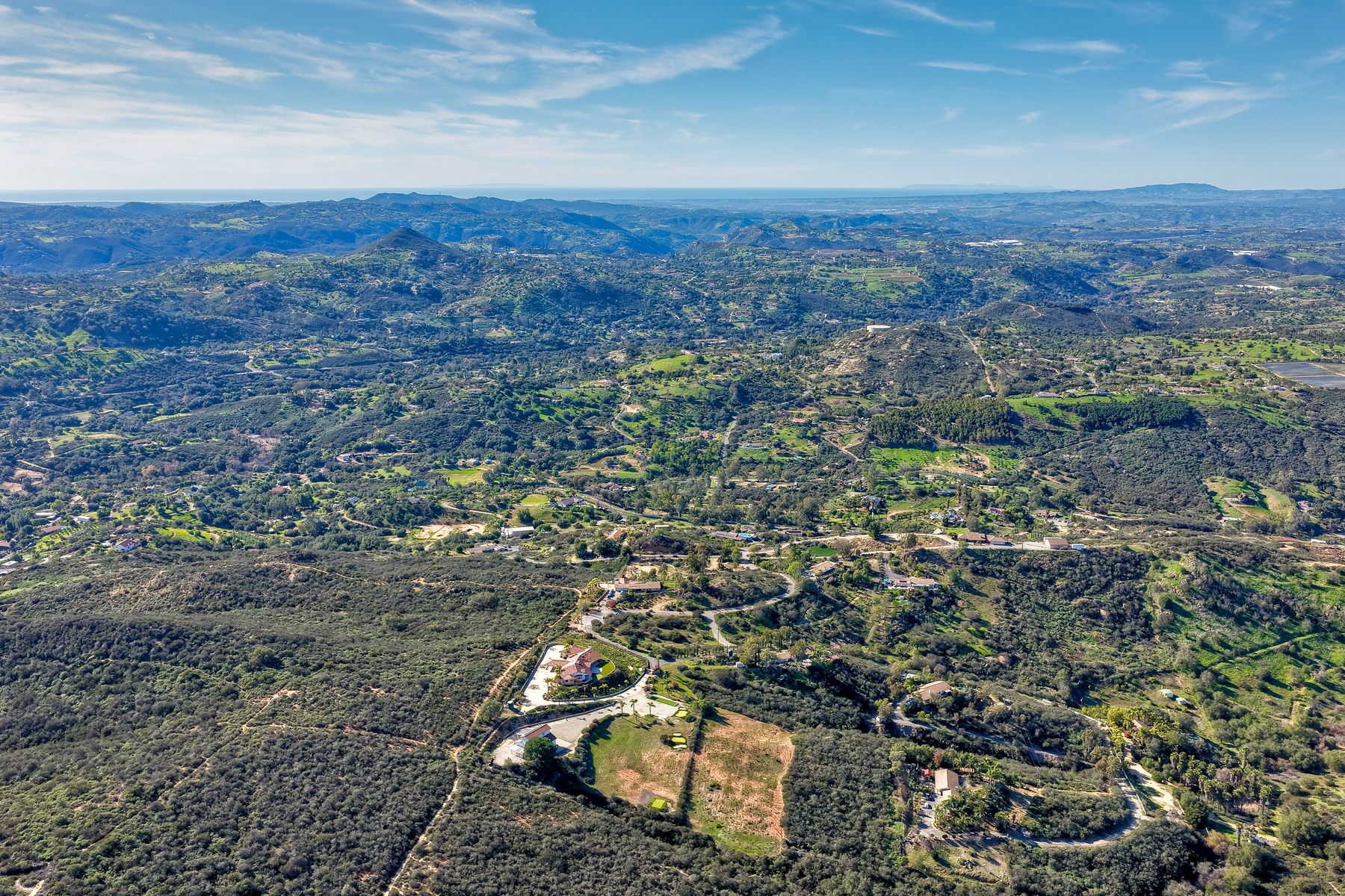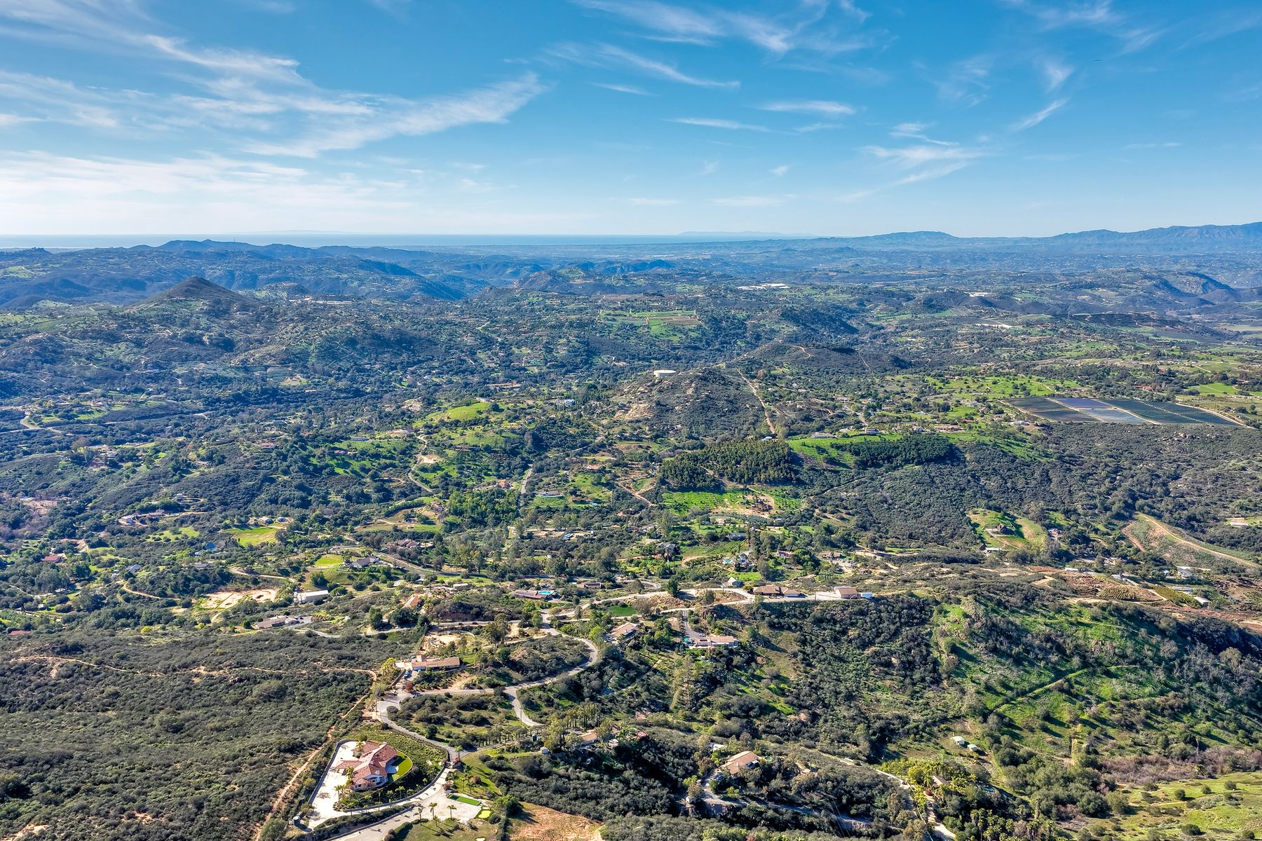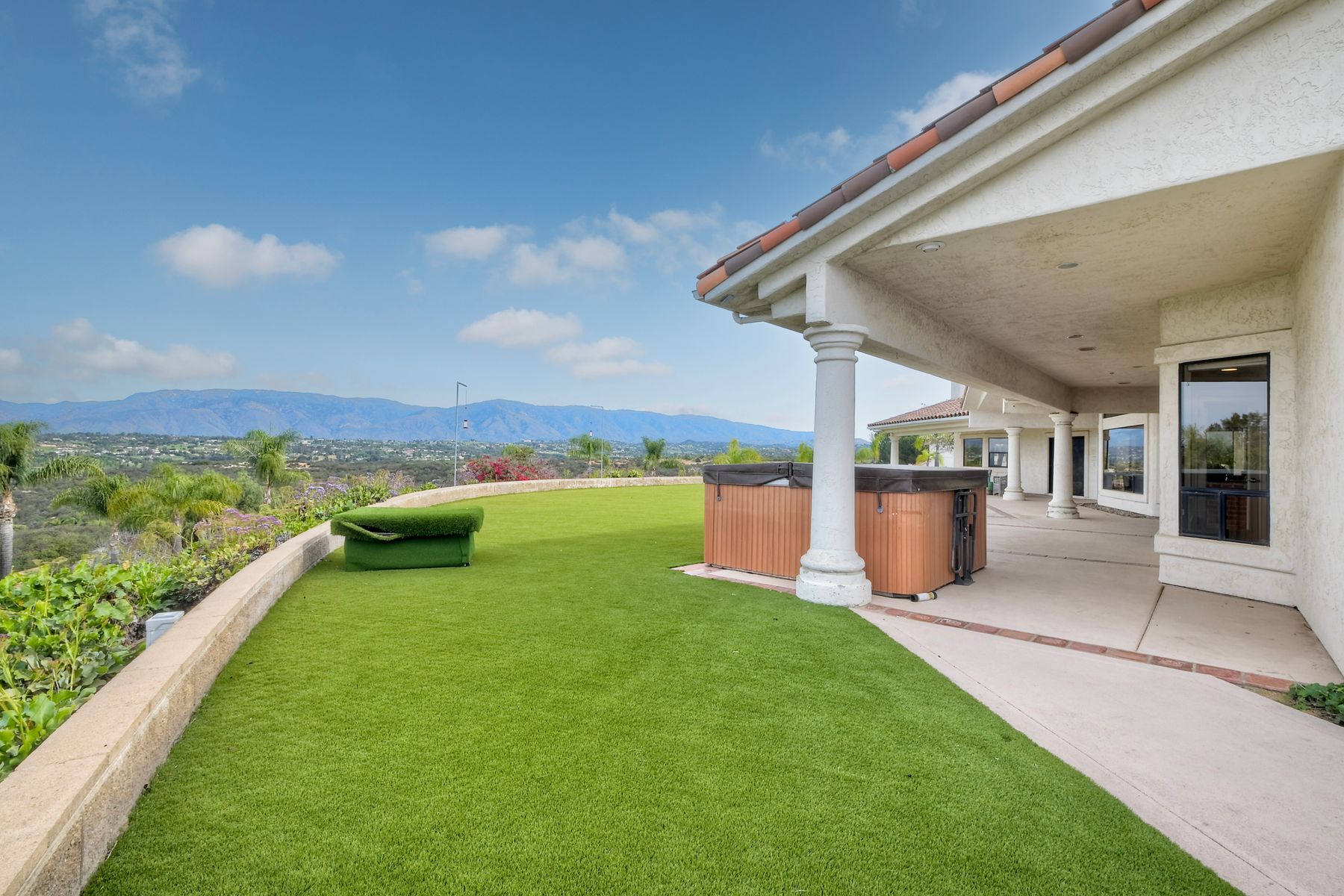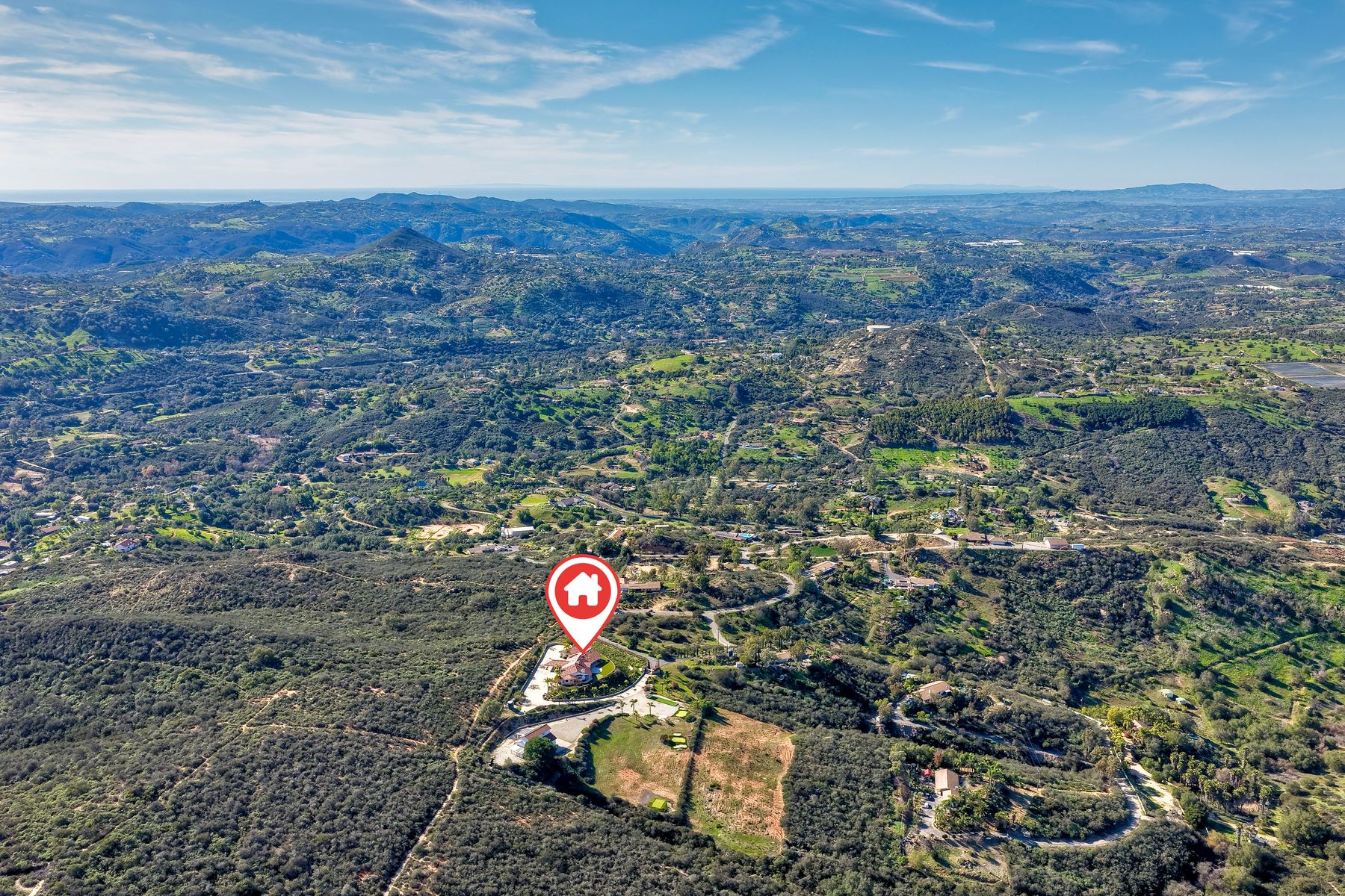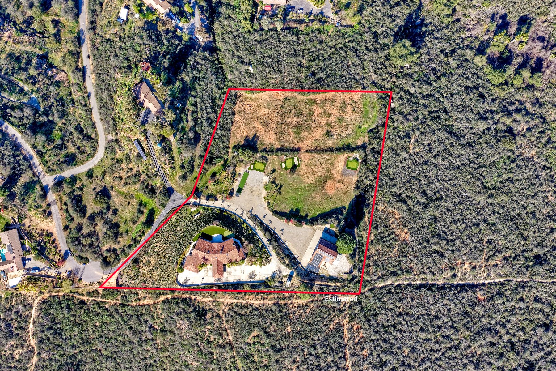 Custom single story Mediterranean estate perched atop your entire neighborhood with forever views! Do you prefer to awe in the beauty of Catalina Island pushing out from the Pacific, snowcapped mountains, or Palomar Mtn, as they're all options. Highly remodeled chef's kitchen with Viking/SubZero opens up to the great room with westerly view. Massive primary bedroom suite, and both secondary bedrooms have en-suite bathrooms. In addition to the powder room, there's a 4th full bathroom with a sauna and access to the outside for when entertaining. Impressive bar just like your favorite pub, and pool table conveys. Below the home, you'll find a 3 stall "barn" that can house a 45' RV in the center, and storage in attic is approx 1000 sqft. Aside the barn, there is a hydraulic car lift. Further below the property, you'll love the 3 golf holes.... bunkers & all....with 3 areas to tee off from, a putting green, as well as horseshoe pits & a bocce ball court. 50+ solar panels are owned/PIF. Lot is 4.04 acres, but below there's another parcel of 1.28 acres is INCLUDED with the sale! Space to grow a small vineyard or organic mini farm, or whatever your heart desires.