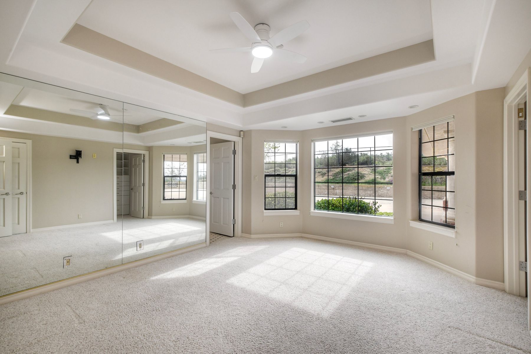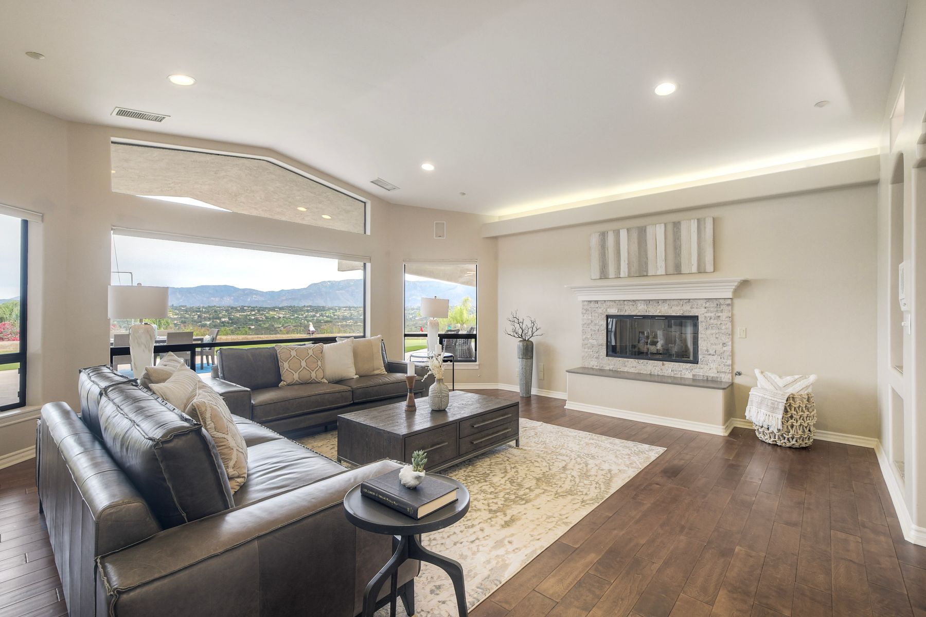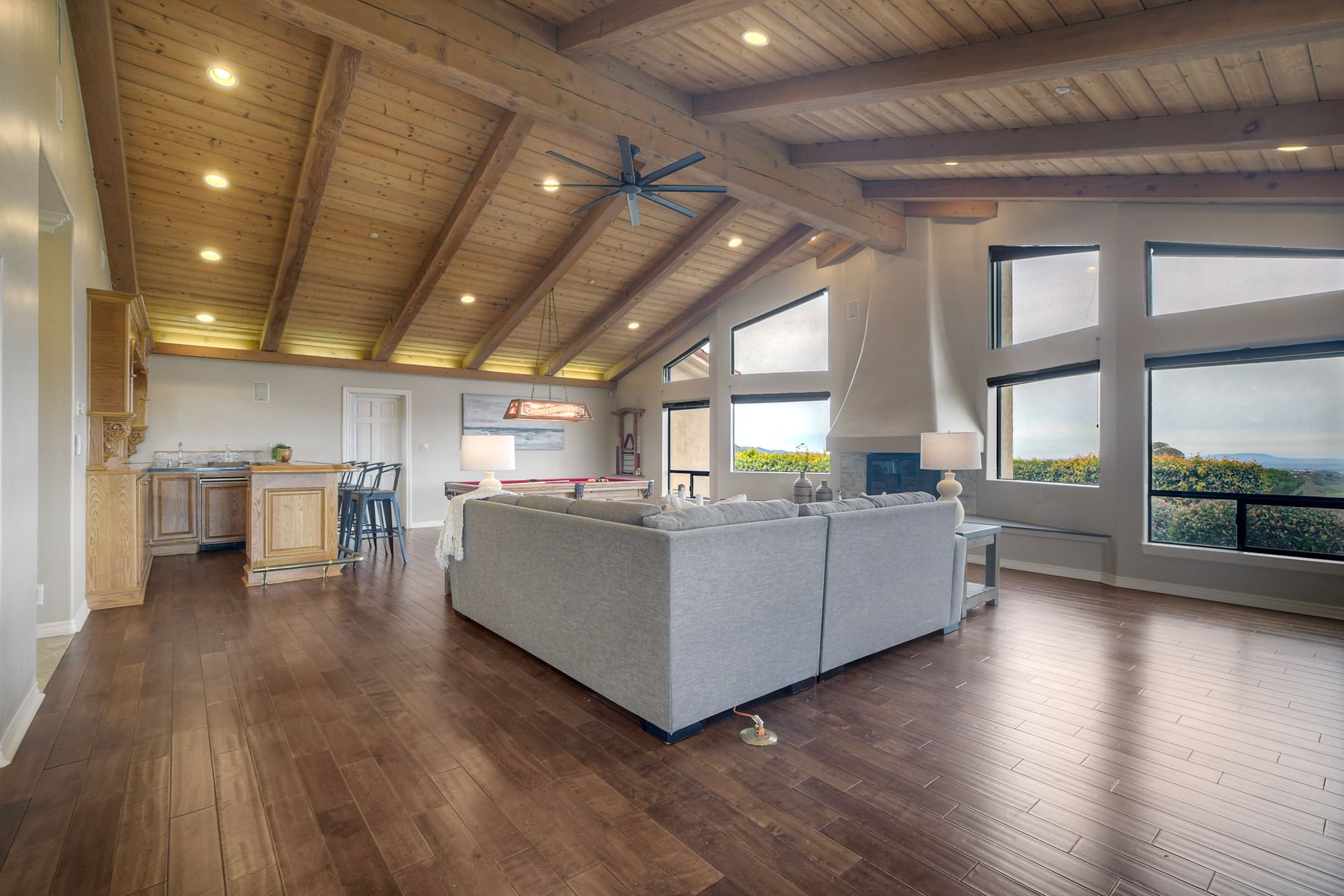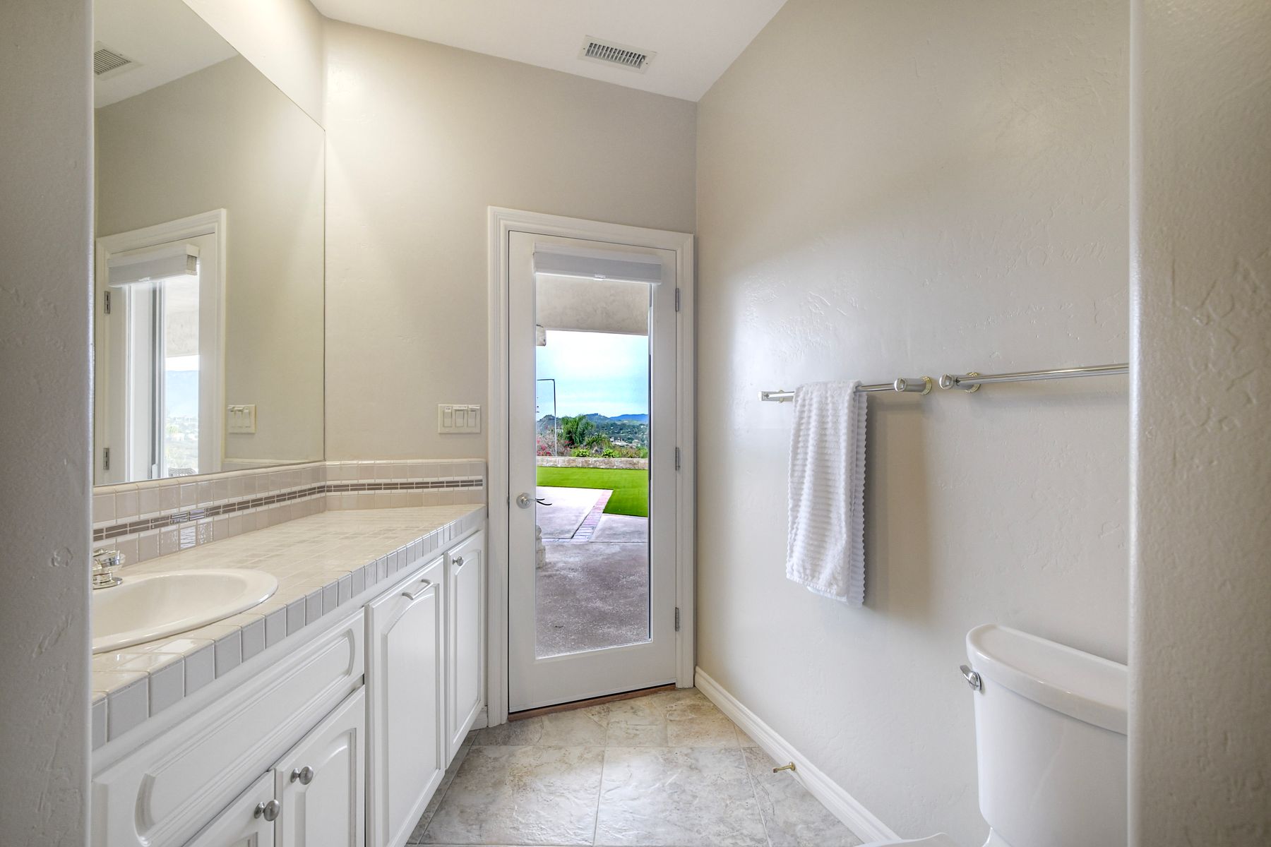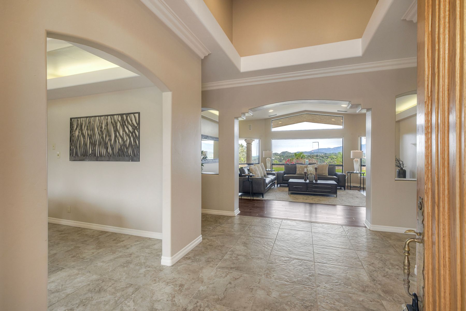 Custom single story Mediterranean estate perched atop your entire neighborhood with forever views! Do you prefer to awe in the beauty of Catalina Island pushing out from the Pacific, snowcapped mountains, or Palomar Mtn, as they're all options. Highly remodeled chef's kitchen with Viking/SubZero opens up to the great room with westerly view. Massive primary bedroom suite, and both secondary bedrooms have en-suite bathrooms. In addition to the powder room, there's a 4th full bathroom with a sauna and access to the outside for when entertaining. Impressive bar just like your favorite pub, and pool table conveys. Below the home, you'll find a 3 stall "barn" that can house a 45' RV in the center, and storage in attic is approx 1000 sqft. Aside the barn, there is a hydraulic car lift. Further below the property, you'll love the 3 golf holes.... bunkers & all....with 3 areas to tee off from, a putting green, as well as horseshoe pits & a bocce ball court. 50+ solar panels are owned/PIF. Lot is 4.04 acres, but below there's another parcel of 1.28 acres is INCLUDED with the sale! Space to grow a small vineyard or organic mini farm, or whatever your heart desires.