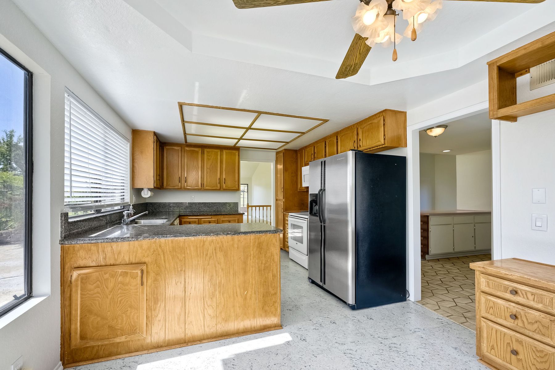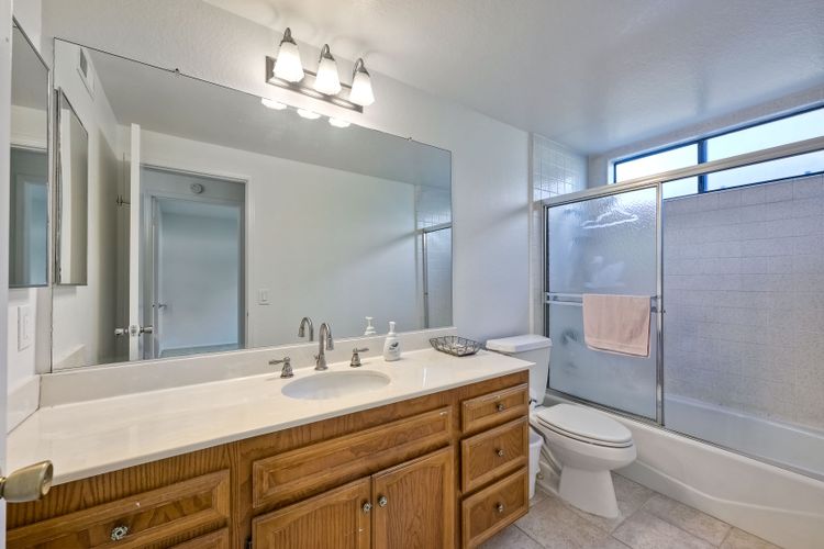 Welcome to golf course living at its finest! Pull up and enjoy the beautiful front yard landscaping. Walk in the front door and you'll see tons of natural light in this 2 bedroom, 2 full bath home! Vaulted ceilings in the living room and dining room. This home is ready for you to make it your own! The kitchen is large in size with beautiful views. The primary bedroom has a vaulted ceiling, tons of closet space, and a primary bathroom that has his and her vanities, walk in shower, and skylight! Theres a large den/office area that others in the neighborhood have converted to a 3rd bedroom. Walk into the backyard and find one of the only homes in Shadowridge that has an amazing view of not just one, but 4 holes worth of Shadowridge Golf Club's finest! The roof was replaced in 2020! This neighborhood has the lowest HOA dues of all of Shadowridge! First time on the market!