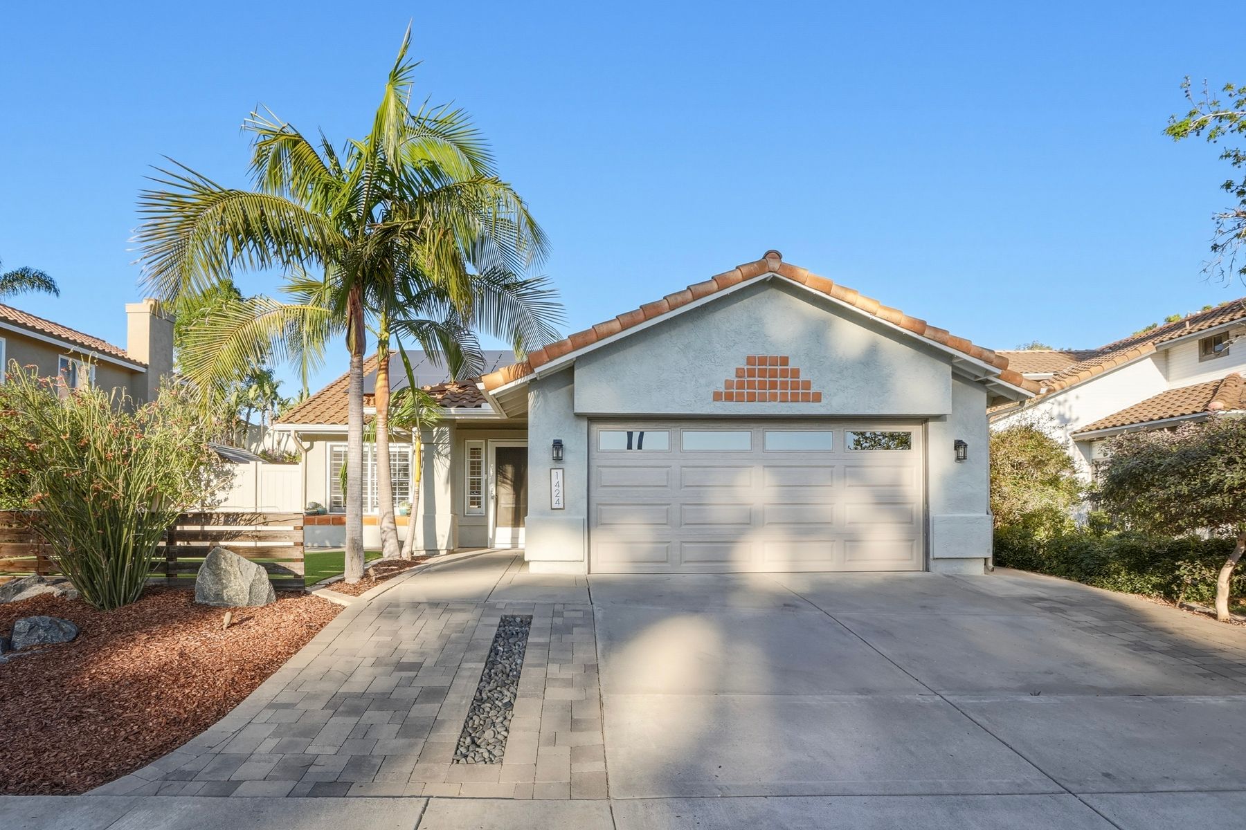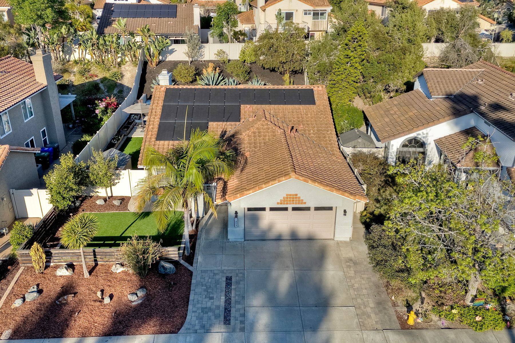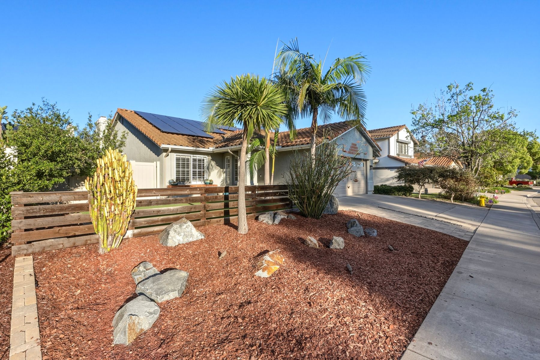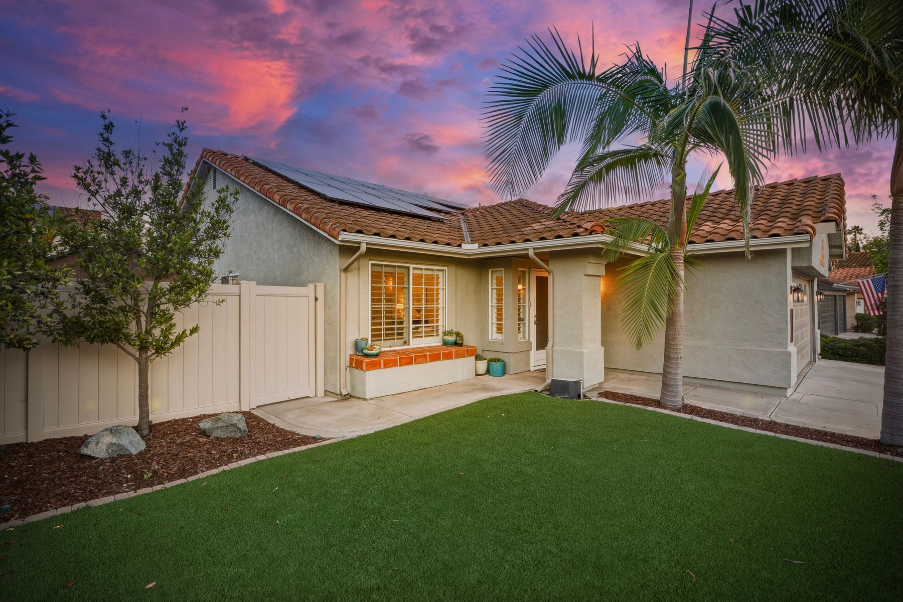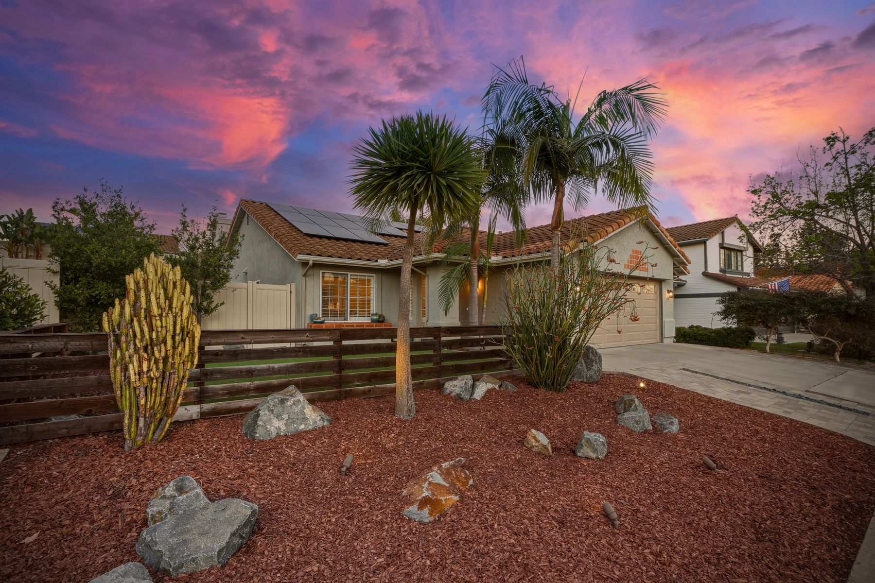 Dazzling single-story home in prime Rancho Del Oro featuring fully paid solar with Powerwall and incredible resort style backyard. This highly upgraded residence showcases vaulted ceilings, recessed lighting, and beautiful wood flooring throughout. The generous, remodeled kitchen features custom cabinetry, pull-out shelves, soft-close drawers, subway tile backsplash, under-cabinet lighting, and stainless appliances. Both bathrooms have been tastefully upgraded. The primary and secondary bedrooms offer walk-in closets. Additional upgrades include newer HVAC system (2021) and vinyl fencing (2021). Step outside to a truly exceptional backyard — featuring a stacked stone island with stainless BBQ and ice box, oversize spa, pergola, custom fire pit, raised garden beds, storage shed, and stacked stone retaining wall. Front and rear yards are low maintenance with artificial turf and attractive LED lighting. Ideally located close to beaches, freeways, top-rated schools, YMCA, shopping, and dining. No Mello-Roos and low HOA! This is Southern California living at its best. Dazzling single-story home in prime Rancho Del Oro featuring fully paid solar with Powerwall and incredible resort style backyard. This highly upgraded residence showcases vaulted ceilings, recessed lighting, and beautiful wood flooring throughout. The generous, remodeled kitchen features custom cabinetry, pull-out shelves, soft-close drawers, granite countertops, subway tile backsplash, under-cabinet lighting, and stainless appliances. Both bathrooms have been tastefully upgraded. The primary and secondary bedrooms offer walk-in closets. Additional upgrades include newer HVAC system (2021) and vinyl fencing (2021). Step outside to a truly exceptional backyard — featuring a stacked stone island with stainless BBQ and ice box, oversize luxury spa, pergola, custom fire pit, raised garden beds, storage shed, and elegant stacked stone retaining wall. Front and rear yards are low maintenance with artificial turf and attractive LED lighting. Ideally located close to beaches, freeways, top-rated schools, YMCA, shopping, and dining. No Mello-Roos and low HOA! This is Southern California living at its best.