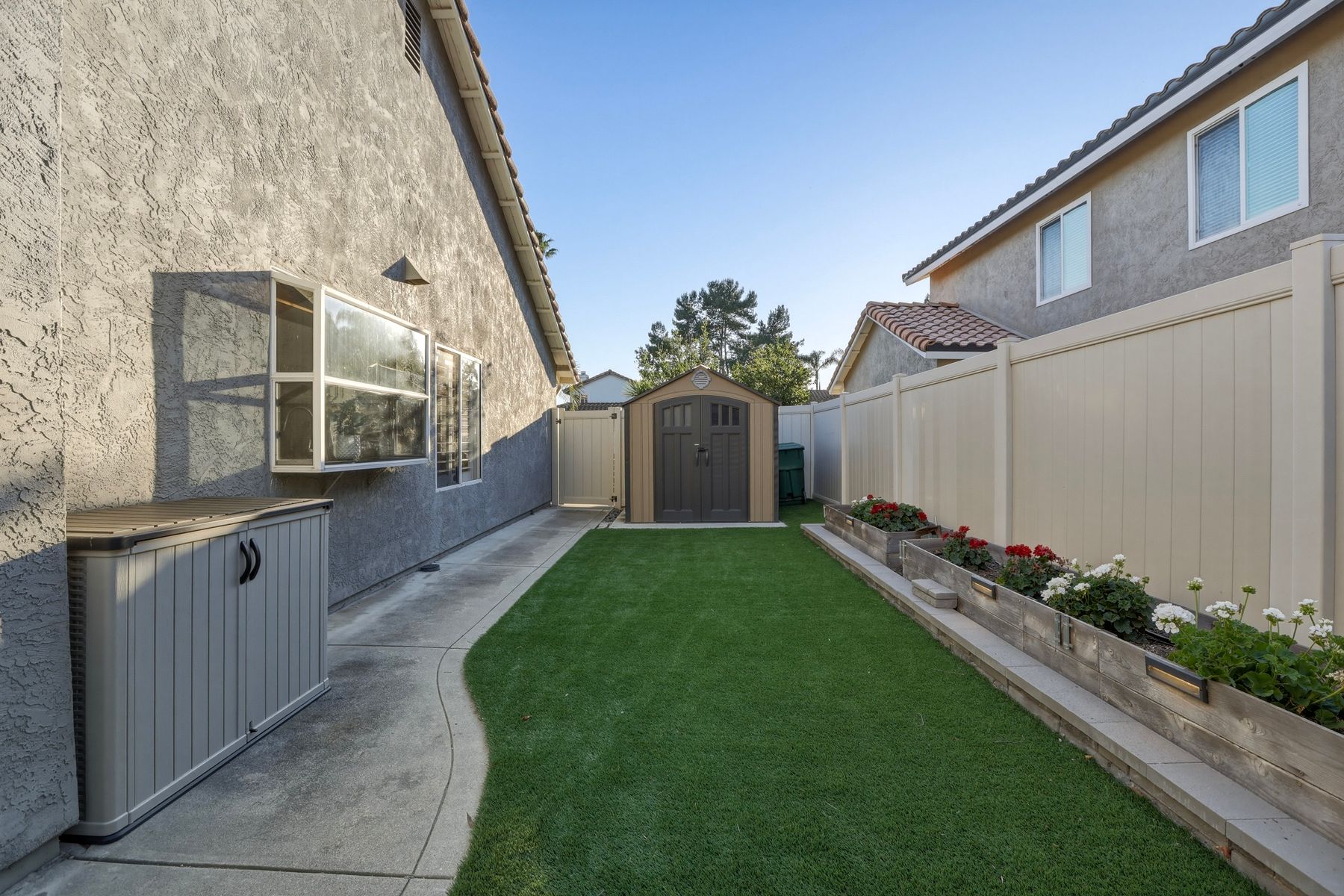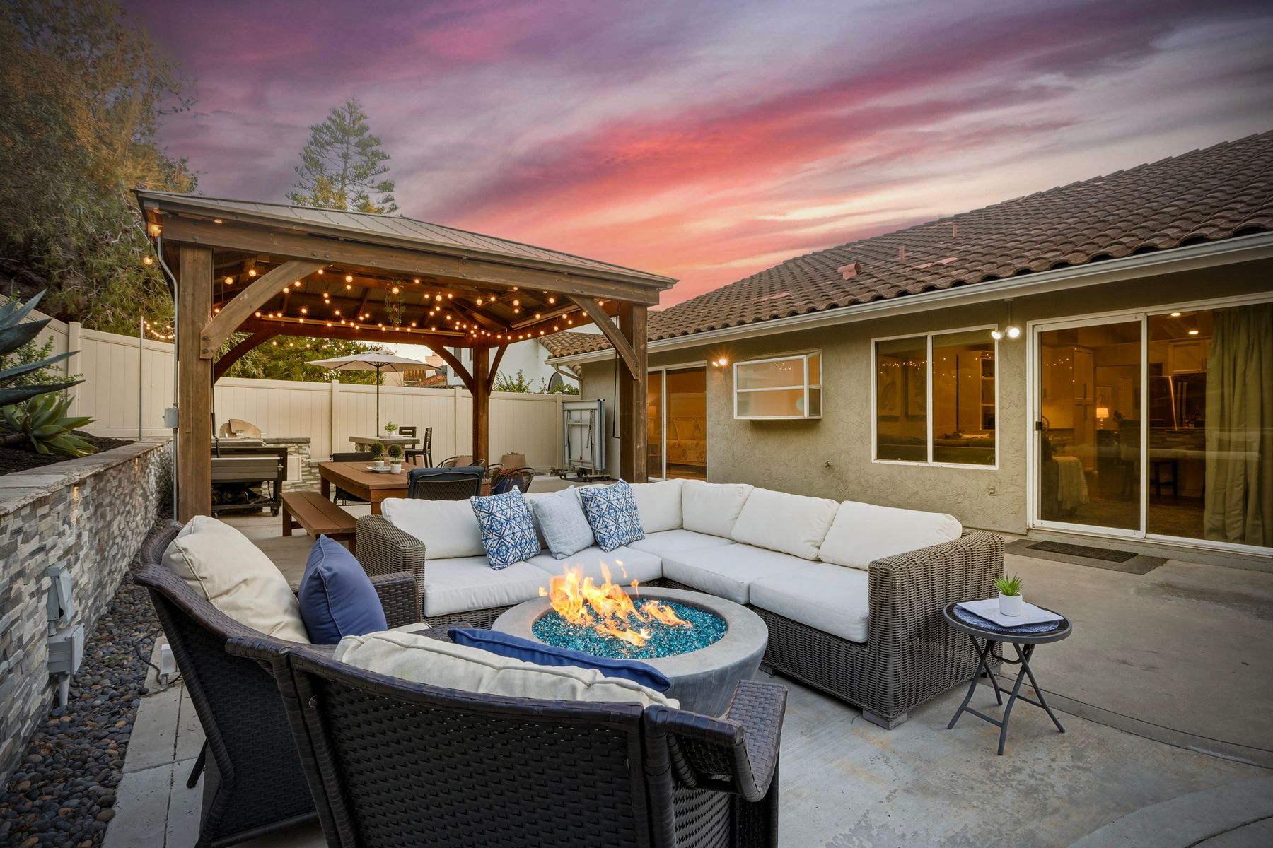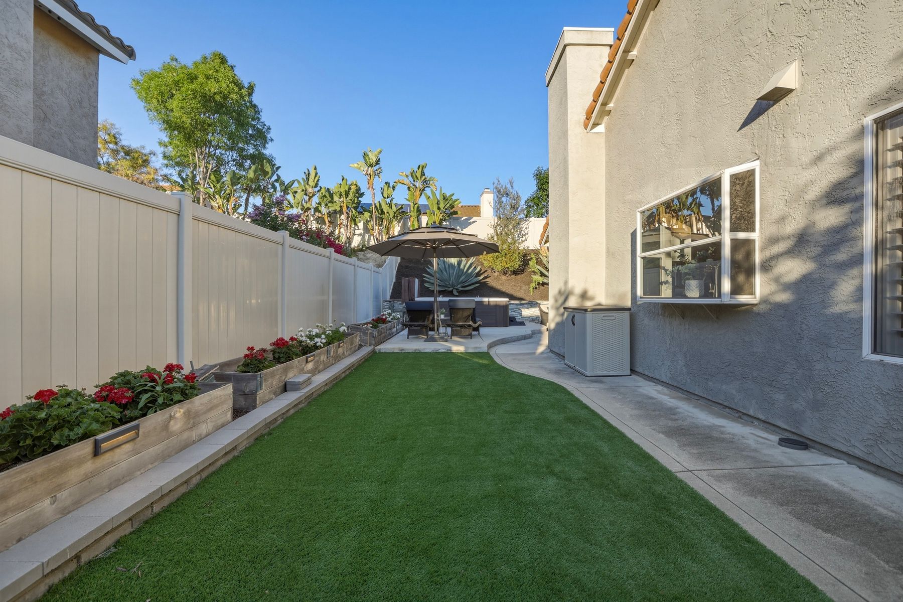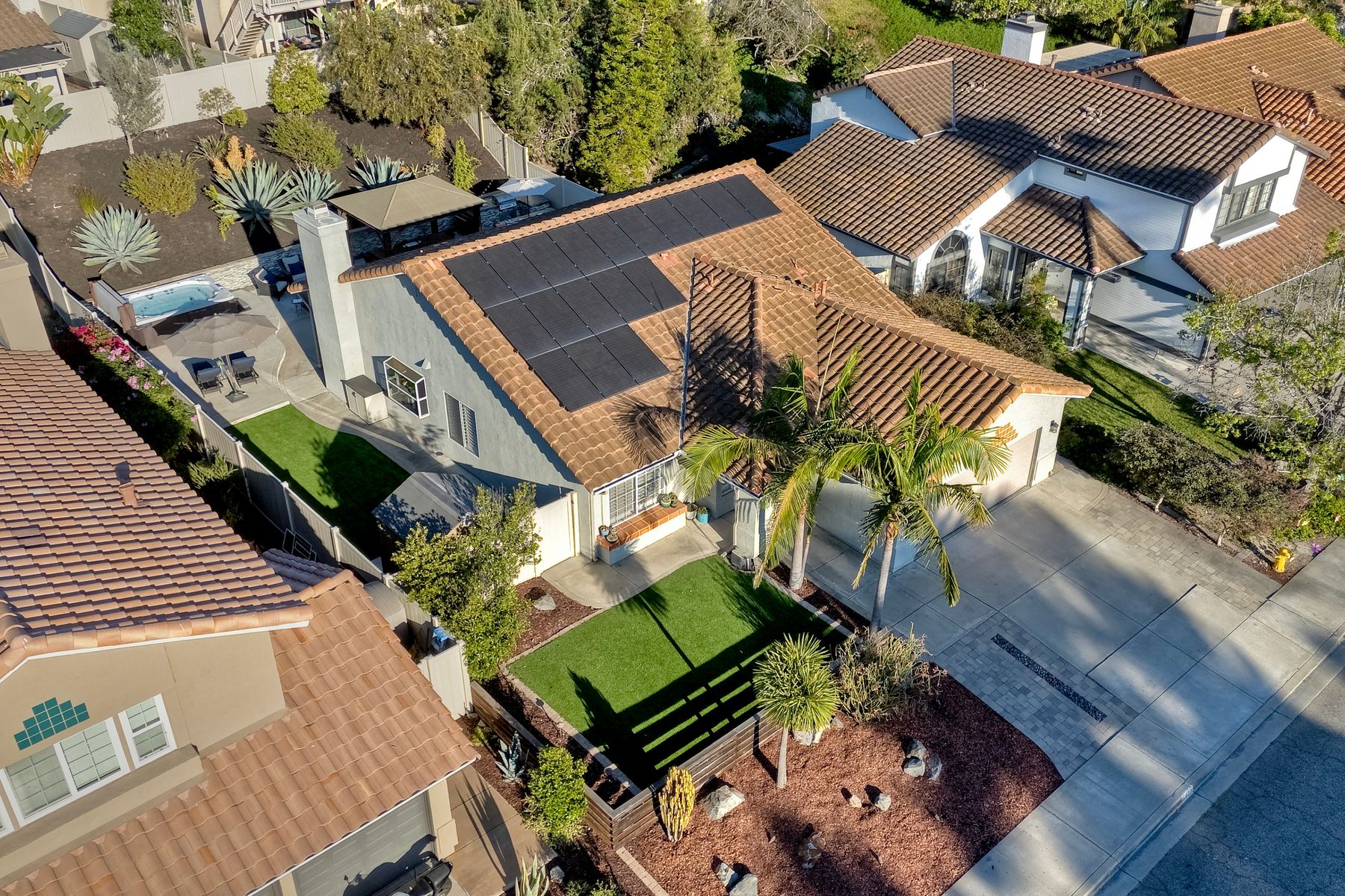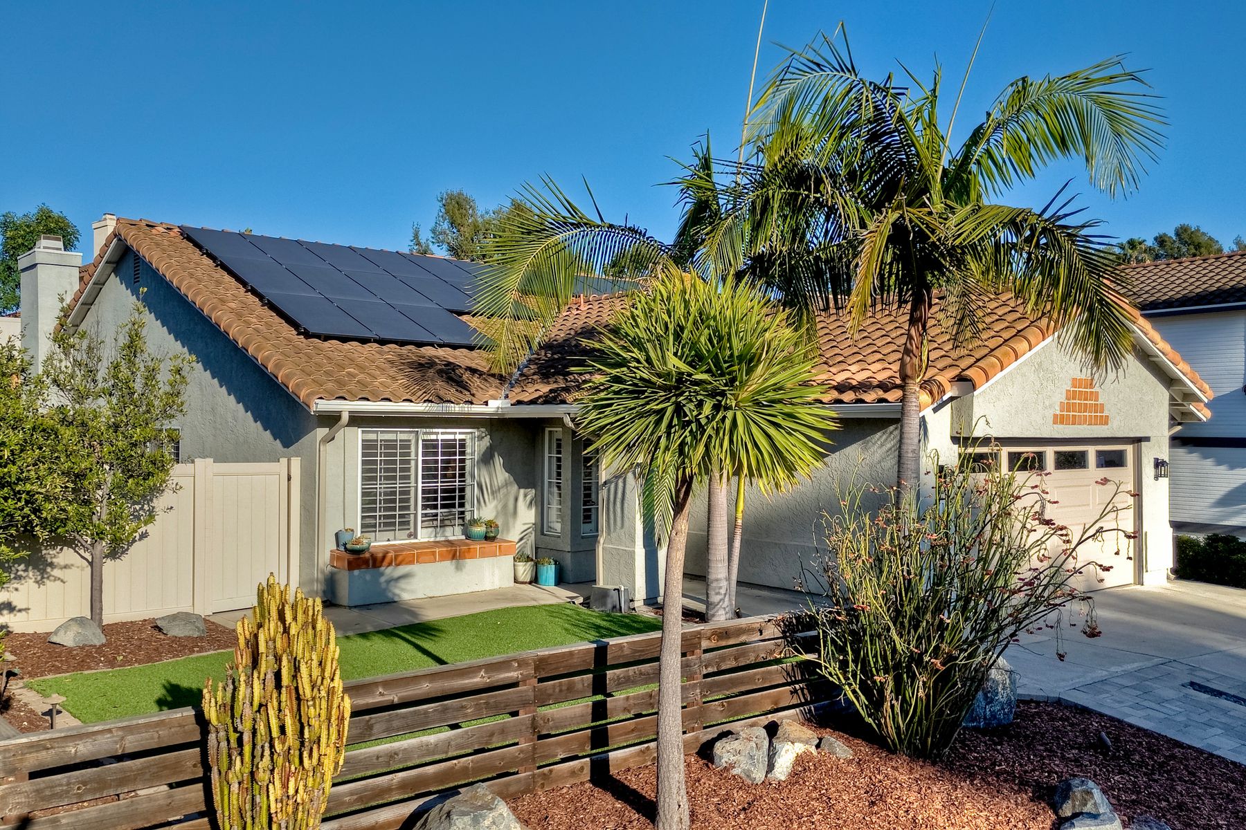 Dazzling single-story home in prime Rancho Del Oro featuring fully paid solar with Powerwall and incredible resort style backyard. This highly upgraded residence showcases vaulted ceilings, recessed lighting, and beautiful wood flooring throughout. The generous, remodeled kitchen features custom cabinetry, pull-out shelves, soft-close drawers, subway tile backsplash, under-cabinet lighting, and stainless appliances. Both bathrooms have been tastefully upgraded. The primary and secondary bedrooms offer walk-in closets. Additional upgrades include newer HVAC system (2021) and vinyl fencing (2021). Step outside to a truly exceptional backyard — featuring a stacked stone island with stainless BBQ and ice box, oversize spa, pergola, custom fire pit, raised garden beds, storage shed, and stacked stone retaining wall. Front and rear yards are low maintenance with artificial turf and attractive LED lighting. Ideally located close to beaches, freeways, top-rated schools, YMCA, shopping, and dining. No Mello-Roos and low HOA! This is Southern California living at its best. Dazzling single-story home in prime Rancho Del Oro featuring fully paid solar with Powerwall and incredible resort style backyard. This highly upgraded residence showcases vaulted ceilings, recessed lighting, and beautiful wood flooring throughout. The generous, remodeled kitchen features custom cabinetry, pull-out shelves, soft-close drawers, granite countertops, subway tile backsplash, under-cabinet lighting, and stainless appliances. Both bathrooms have been tastefully upgraded. The primary and secondary bedrooms offer walk-in closets. Additional upgrades include newer HVAC system (2021) and vinyl fencing (2021). Step outside to a truly exceptional backyard — featuring a stacked stone island with stainless BBQ and ice box, oversize luxury spa, pergola, custom fire pit, raised garden beds, storage shed, and elegant stacked stone retaining wall. Front and rear yards are low maintenance with artificial turf and attractive LED lighting. Ideally located close to beaches, freeways, top-rated schools, YMCA, shopping, and dining. No Mello-Roos and low HOA! This is Southern California living at its best.