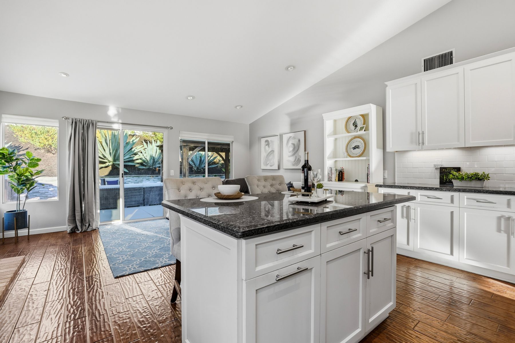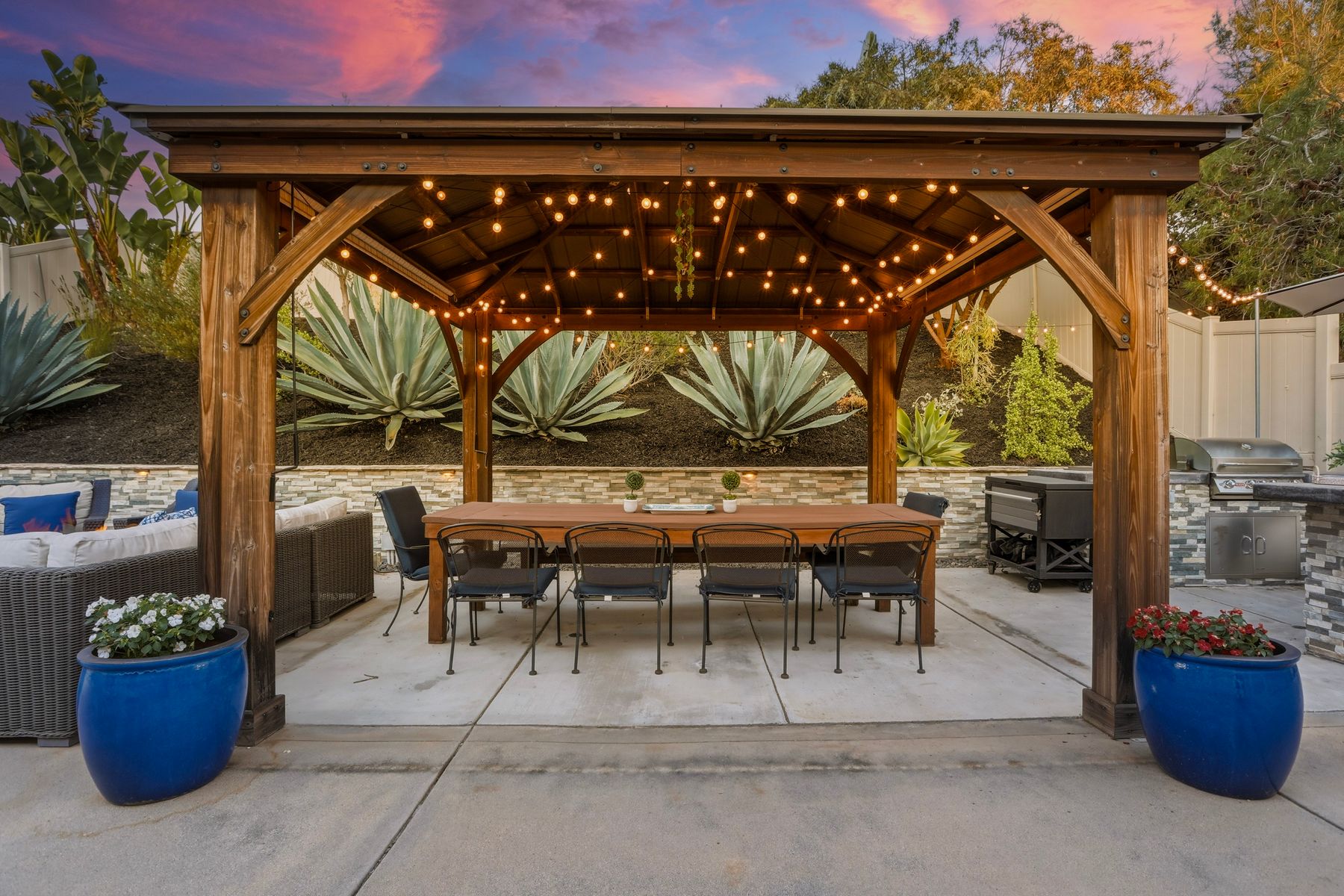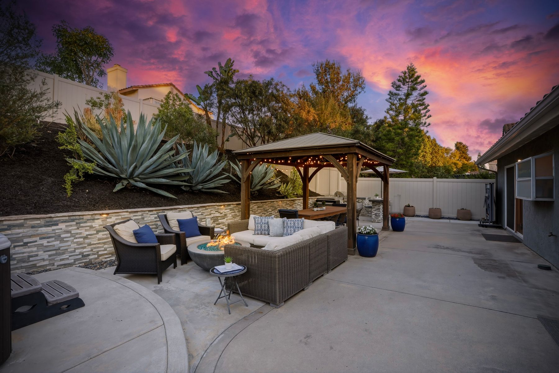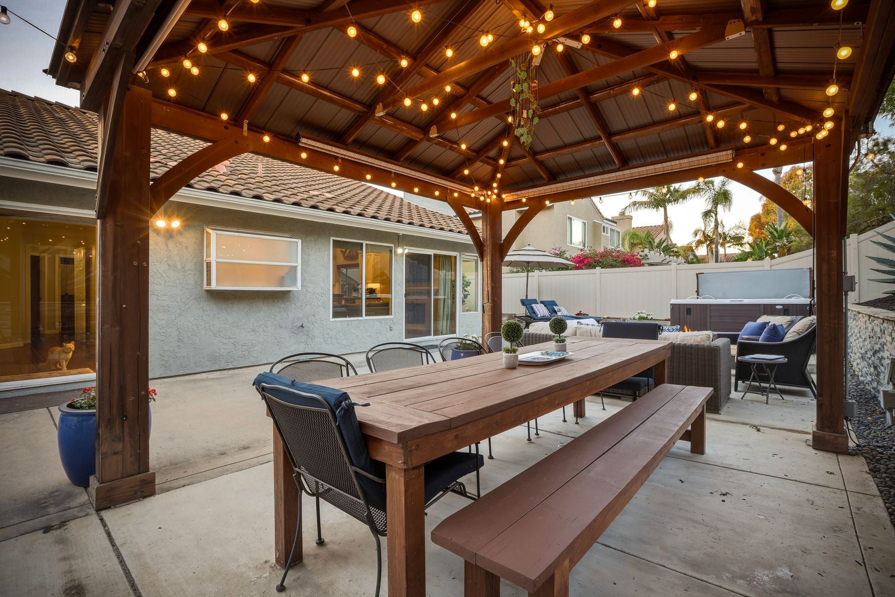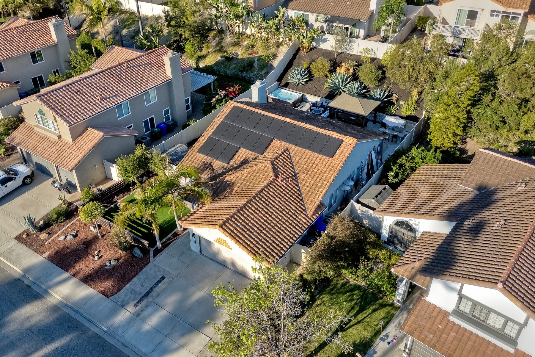 Dazzling single-story home in prime Rancho Del Oro featuring fully paid solar with Powerwall and incredible resort style backyard. This highly upgraded residence showcases vaulted ceilings, recessed lighting, and beautiful wood flooring throughout. The generous, remodeled kitchen features custom cabinetry, pull-out shelves, soft-close drawers, subway tile backsplash, under-cabinet lighting, and stainless appliances. Both bathrooms have been tastefully upgraded. The primary and secondary bedrooms offer walk-in closets. Additional upgrades include newer HVAC system (2021) and vinyl fencing (2021). Step outside to a truly exceptional backyard — featuring a stacked stone island with stainless BBQ and ice box, oversize spa, pergola, custom fire pit, raised garden beds, storage shed, and stacked stone retaining wall. Front and rear yards are low maintenance with artificial turf and attractive LED lighting. Ideally located close to beaches, freeways, top-rated schools, YMCA, shopping, and dining. No Mello-Roos and low HOA! This is Southern California living at its best. Dazzling single-story home in prime Rancho Del Oro featuring fully paid solar with Powerwall and incredible resort style backyard. This highly upgraded residence showcases vaulted ceilings, recessed lighting, and beautiful wood flooring throughout. The generous, remodeled kitchen features custom cabinetry, pull-out shelves, soft-close drawers, granite countertops, subway tile backsplash, under-cabinet lighting, and stainless appliances. Both bathrooms have been tastefully upgraded. The primary and secondary bedrooms offer walk-in closets. Additional upgrades include newer HVAC system (2021) and vinyl fencing (2021). Step outside to a truly exceptional backyard — featuring a stacked stone island with stainless BBQ and ice box, oversize luxury spa, pergola, custom fire pit, raised garden beds, storage shed, and elegant stacked stone retaining wall. Front and rear yards are low maintenance with artificial turf and attractive LED lighting. Ideally located close to beaches, freeways, top-rated schools, YMCA, shopping, and dining. No Mello-Roos and low HOA! This is Southern California living at its best.