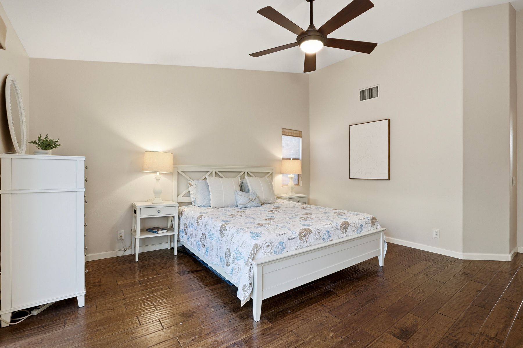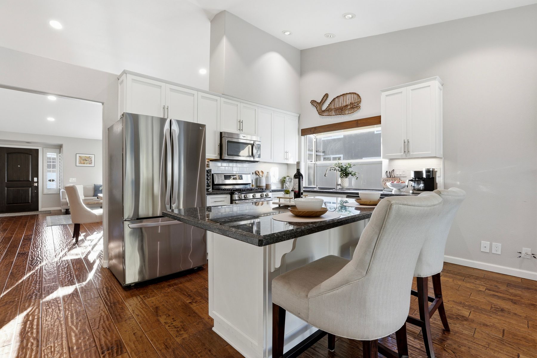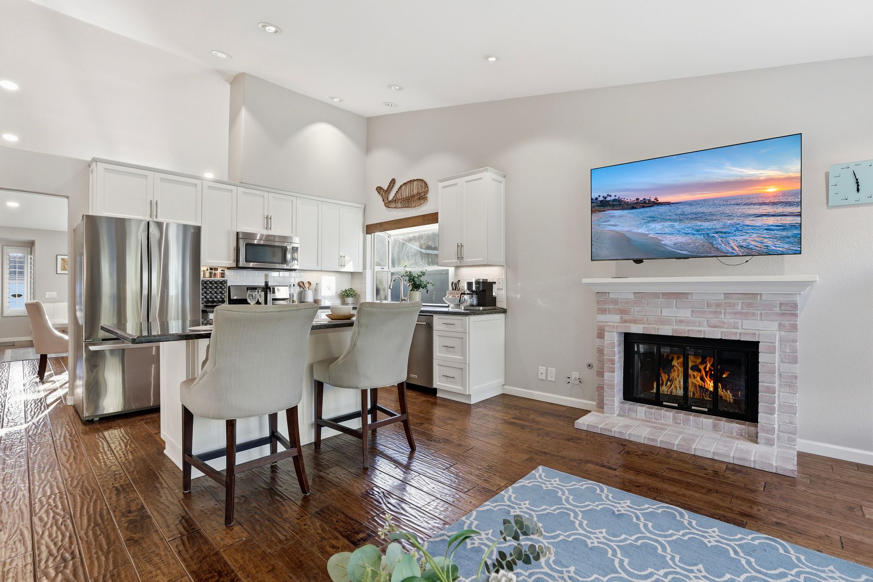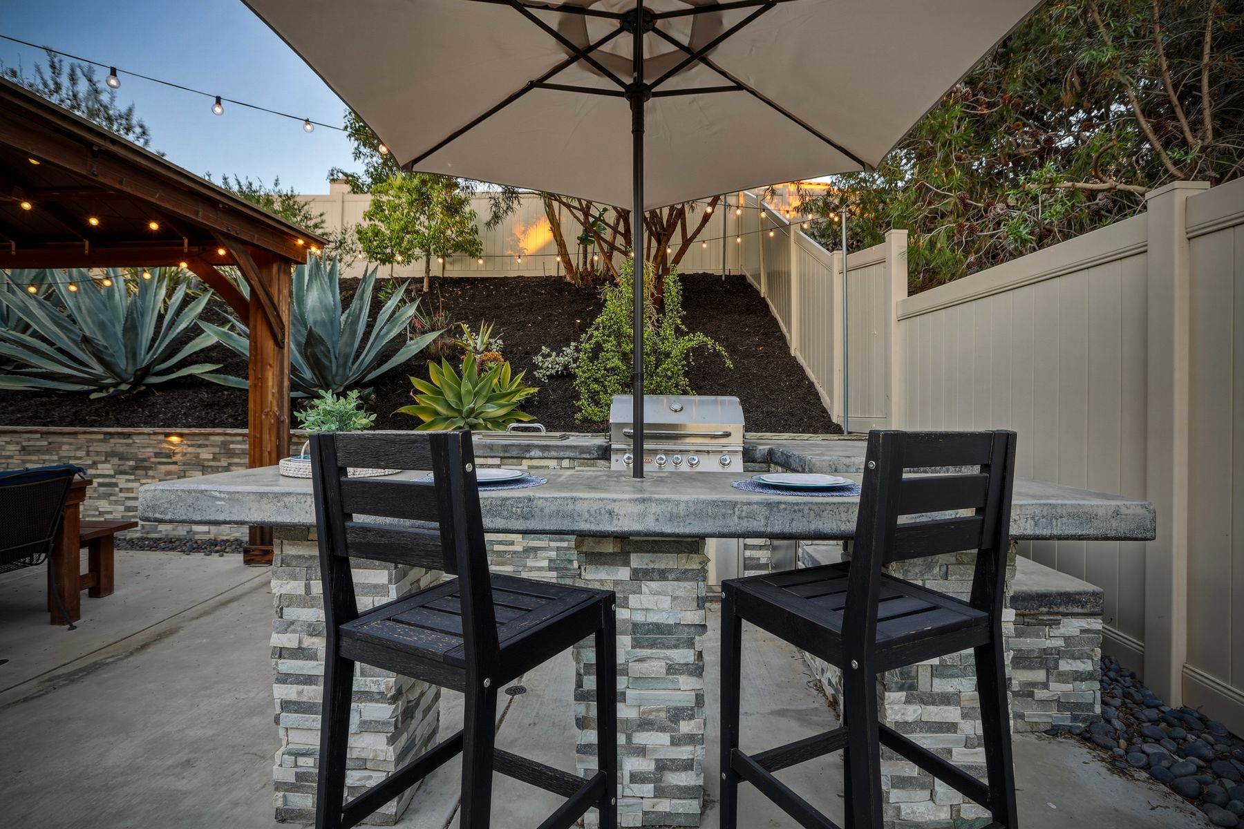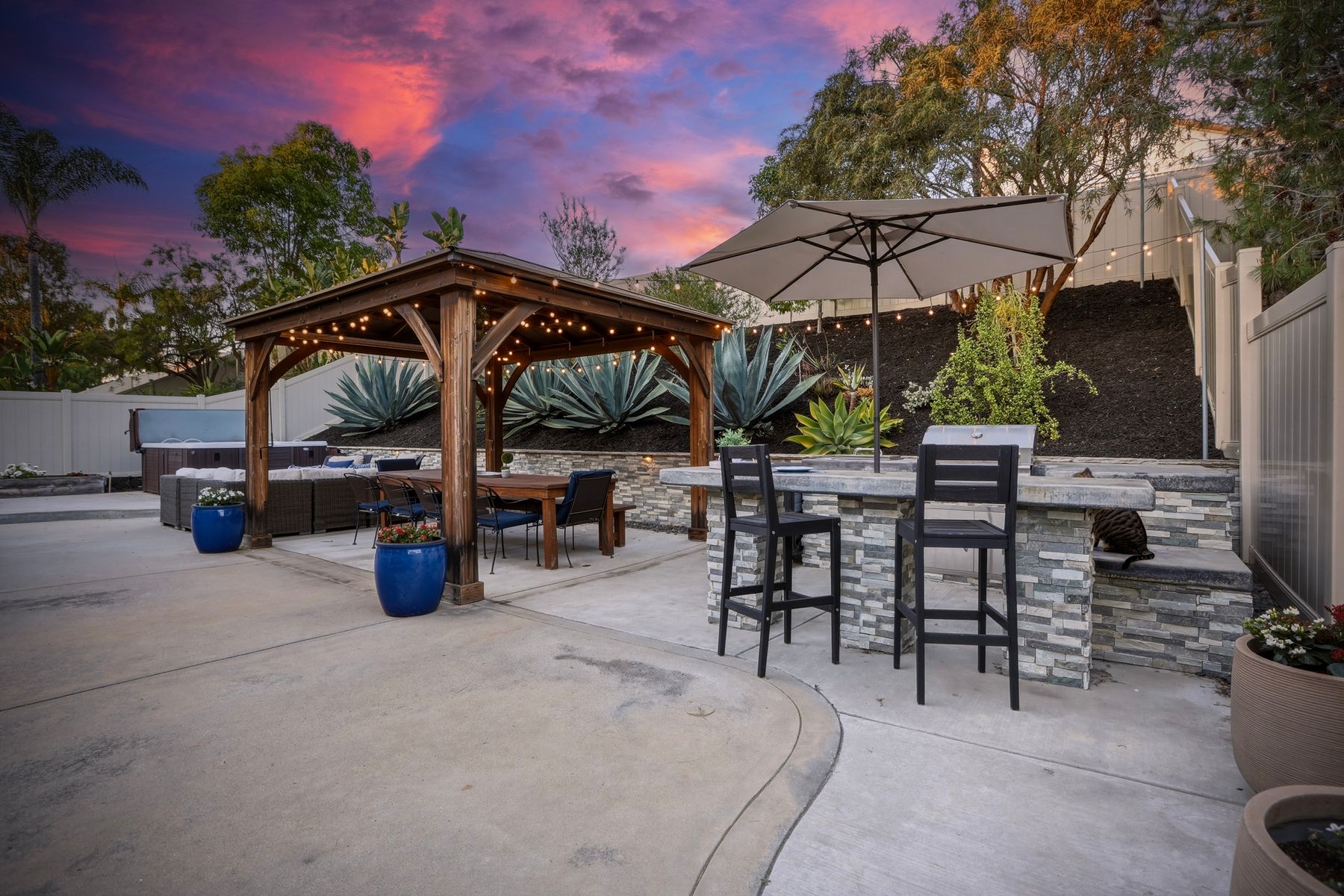 Dazzling single-story home in prime Rancho Del Oro featuring fully paid solar with Powerwall and incredible resort style backyard. This highly upgraded residence showcases vaulted ceilings, recessed lighting, and beautiful wood flooring throughout. The generous, remodeled kitchen features custom cabinetry, pull-out shelves, soft-close drawers, subway tile backsplash, under-cabinet lighting, and stainless appliances. Both bathrooms have been tastefully upgraded. The primary and secondary bedrooms offer walk-in closets. Additional upgrades include newer HVAC system (2021) and vinyl fencing (2021). Step outside to a truly exceptional backyard — featuring a stacked stone island with stainless BBQ and ice box, oversize spa, pergola, custom fire pit, raised garden beds, storage shed, and stacked stone retaining wall. Front and rear yards are low maintenance with artificial turf and attractive LED lighting. Ideally located close to beaches, freeways, top-rated schools, YMCA, shopping, and dining. No Mello-Roos and low HOA! This is Southern California living at its best. Dazzling single-story home in prime Rancho Del Oro featuring fully paid solar with Powerwall and incredible resort style backyard. This highly upgraded residence showcases vaulted ceilings, recessed lighting, and beautiful wood flooring throughout. The generous, remodeled kitchen features custom cabinetry, pull-out shelves, soft-close drawers, granite countertops, subway tile backsplash, under-cabinet lighting, and stainless appliances. Both bathrooms have been tastefully upgraded. The primary and secondary bedrooms offer walk-in closets. Additional upgrades include newer HVAC system (2021) and vinyl fencing (2021). Step outside to a truly exceptional backyard — featuring a stacked stone island with stainless BBQ and ice box, oversize luxury spa, pergola, custom fire pit, raised garden beds, storage shed, and elegant stacked stone retaining wall. Front and rear yards are low maintenance with artificial turf and attractive LED lighting. Ideally located close to beaches, freeways, top-rated schools, YMCA, shopping, and dining. No Mello-Roos and low HOA! This is Southern California living at its best.