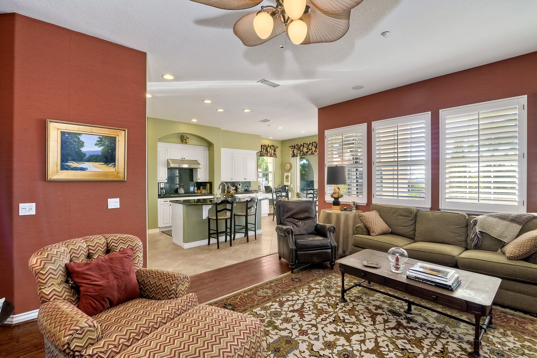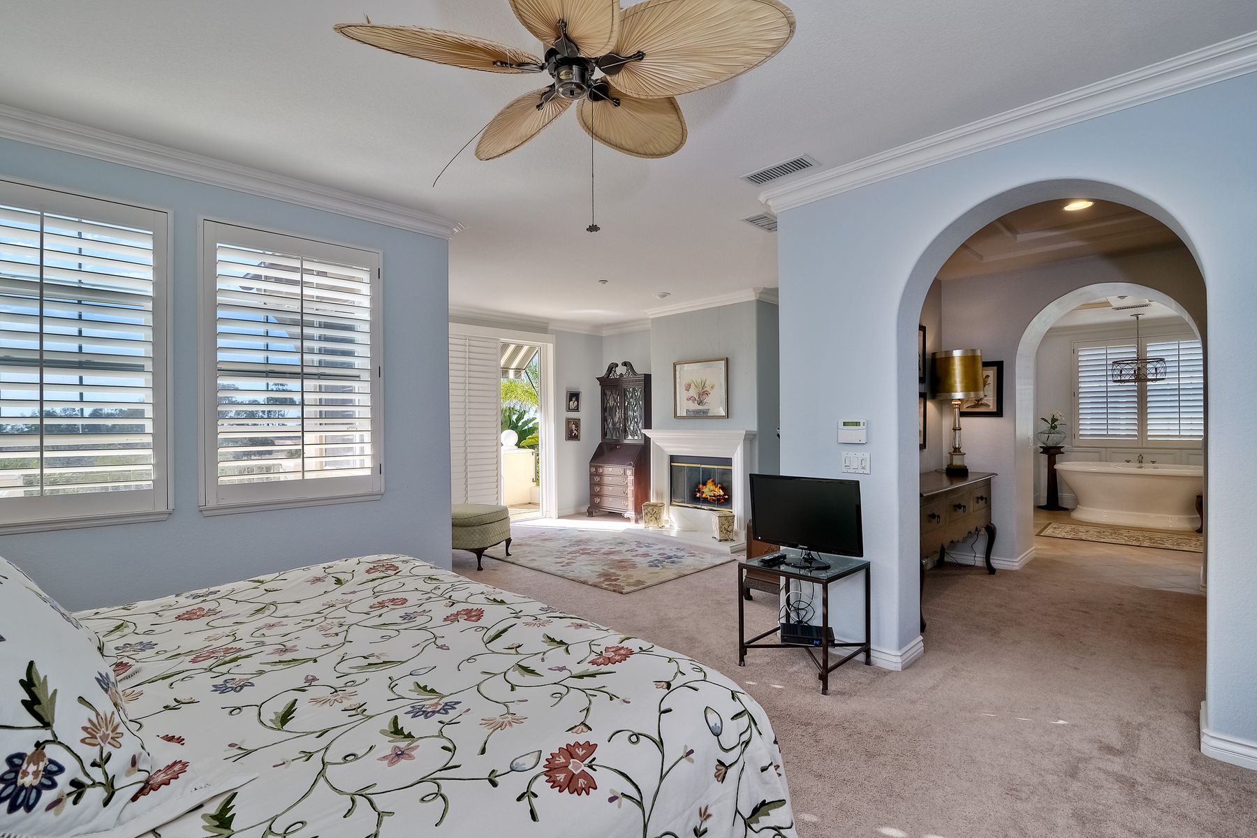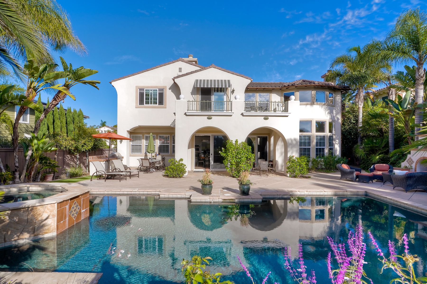 Ocean & Ecke Preserve views! Just steps to the Golf Course! Private outdoor entertainment area includes pool, spa, fireplace, BBQ center! Large loft/office & Ocean View Hobby room! Stunning Kitchen features white cabinetry, slab granite, & SS appliances and opens to FR with fireplace & built-ins! New vanities in all baths, Powder room features a hand-painted sink! Spacious master suite offers sitting room w/fireplace, a remodeled bath w/brand new Hydro Systems air jet freestanding tub, & walk-in closet. Beautiful home located on the North side of Encinitas Ranch across the street from the Encinitas Ranch Golf Course! Minutes to the Beach! Close to shopping at the Forum and Encinitas Town Center! Encinitas Union and San Dieguito Union High School boundaries! A gated courtyard welcomes you to a lovely, well maintained home with dramatic feel...high ceilings, lots of windows, and open spaces! Plantation shutters and custom window coverings! Gleaming wood floors in the LR, DR. FR. Porcelain Saltillo influenced tile in kitchen and bath. Carpet in bedrooms and hallways. Three car garage space split with a two vehicle garage and a single car garage...check out the storage in the one car garage!! Large aundry room offers lots of storage and room for folding and sorting!! An "Entertainers Delight" home with large central kitchen that opens to the generous family room. Outdoors the party begins with a private pool and spa overlooking the Ecke preserve and ocean beyond! Enjoy cool evenings by the outdoor fireplace, grill dinner on the built-in BBQ and dine al Fresco on the lanai! Lush landscaping creates a relaxing and inviting outdoor space. Sunsets from the pool area or the upstairs balcony off the master retreat are spectacular! All the baths have been updated very recently!! The Spa-like master bath offers dual vanities and a freestanding air-jet tub!! The owner's "Happy Place" is the ocean view hobby room that is part of the master suite. A giant walk-in closet awaits you! The retreat is cozy with fireplace and opens to an Ocean View balcony! One bedroom and bath suite with own private bath is located downstairs and the two secondary bedrooms upstairs share their own wing and tandem bath! The loft is a large open space currently being used as an office and retreat! It could be a game room, teen room or ???? This home MUST be seen to appreciate all it has to offer!!