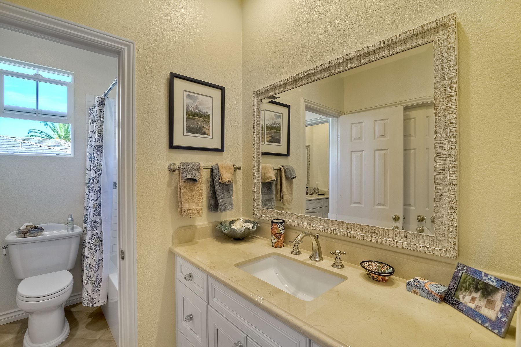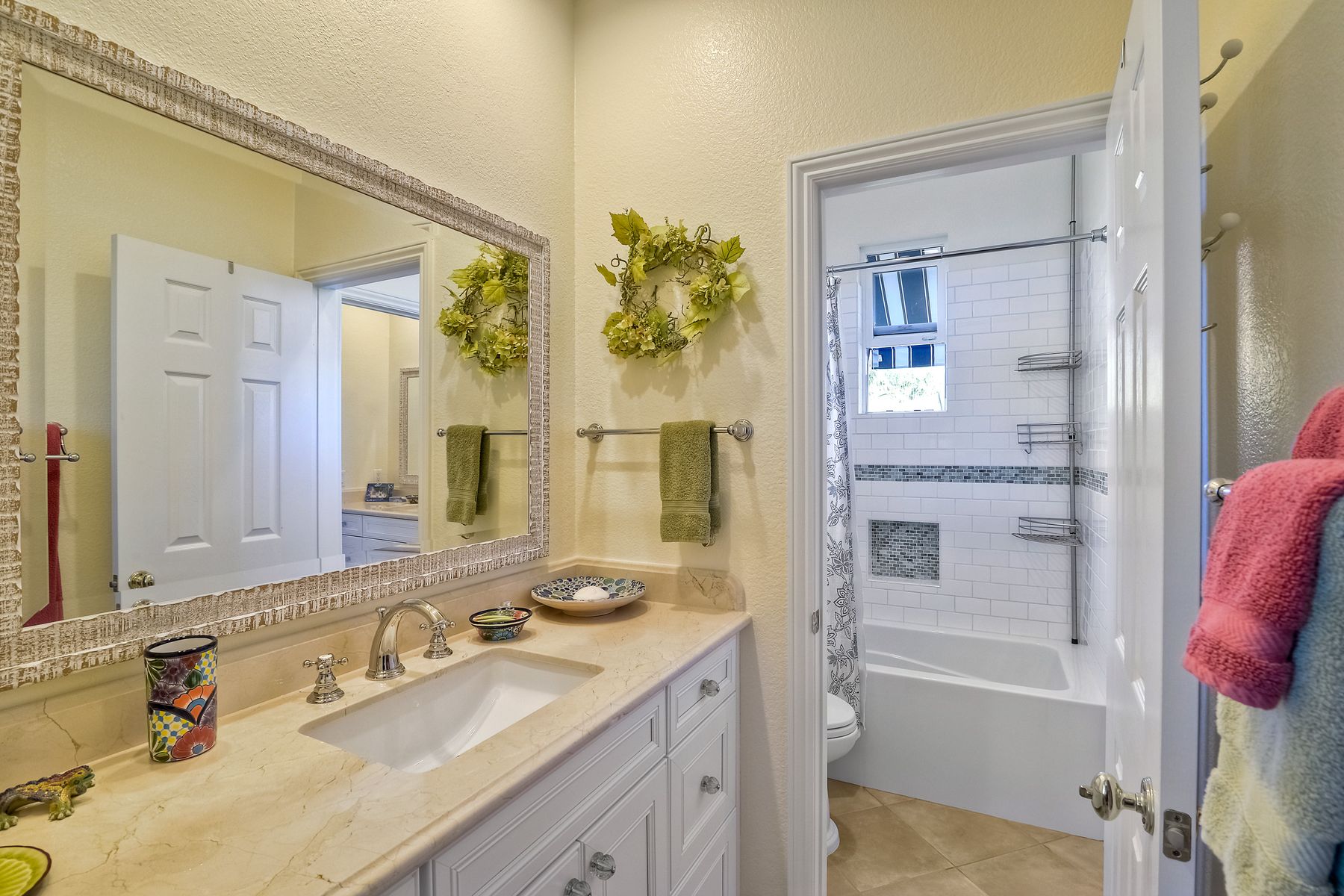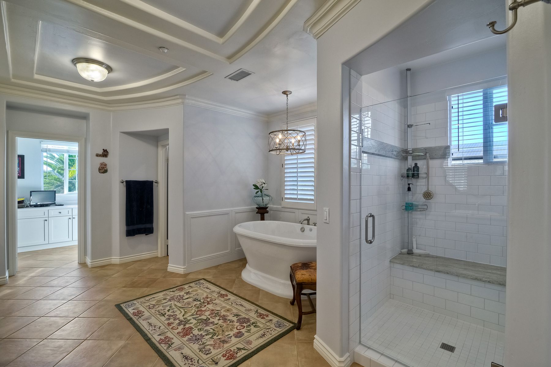 Ocean & Ecke Preserve views! Just steps to the Golf Course! Private outdoor entertainment area includes pool, spa, fireplace, BBQ center! Large loft/office & Ocean View Hobby room! Stunning Kitchen features white cabinetry, slab granite, & SS appliances and opens to FR with fireplace & built-ins! New vanities in all baths, Powder room features a hand-painted sink! Spacious master suite offers sitting room w/fireplace, a remodeled bath w/brand new Hydro Systems air jet freestanding tub, & walk-in closet. Beautiful home located on the North side of Encinitas Ranch across the street from the Encinitas Ranch Golf Course! Minutes to the Beach! Close to shopping at the Forum and Encinitas Town Center! Encinitas Union and San Dieguito Union High School boundaries! A gated courtyard welcomes you to a lovely, well maintained home with dramatic feel...high ceilings, lots of windows, and open spaces! Plantation shutters and custom window coverings! Gleaming wood floors in the LR, DR. FR. Porcelain Saltillo influenced tile in kitchen and bath. Carpet in bedrooms and hallways. Three car garage space split with a two vehicle garage and a single car garage...check out the storage in the one car garage!! Large aundry room offers lots of storage and room for folding and sorting!! An "Entertainers Delight" home with large central kitchen that opens to the generous family room. Outdoors the party begins with a private pool and spa overlooking the Ecke preserve and ocean beyond! Enjoy cool evenings by the outdoor fireplace, grill dinner on the built-in BBQ and dine al Fresco on the lanai! Lush landscaping creates a relaxing and inviting outdoor space. Sunsets from the pool area or the upstairs balcony off the master retreat are spectacular! All the baths have been updated very recently!! The Spa-like master bath offers dual vanities and a freestanding air-jet tub!! The owner's "Happy Place" is the ocean view hobby room that is part of the master suite. A giant walk-in closet awaits you! The retreat is cozy with fireplace and opens to an Ocean View balcony! One bedroom and bath suite with own private bath is located downstairs and the two secondary bedrooms upstairs share their own wing and tandem bath! The loft is a large open space currently being used as an office and retreat! It could be a game room, teen room or ???? This home MUST be seen to appreciate all it has to offer!!