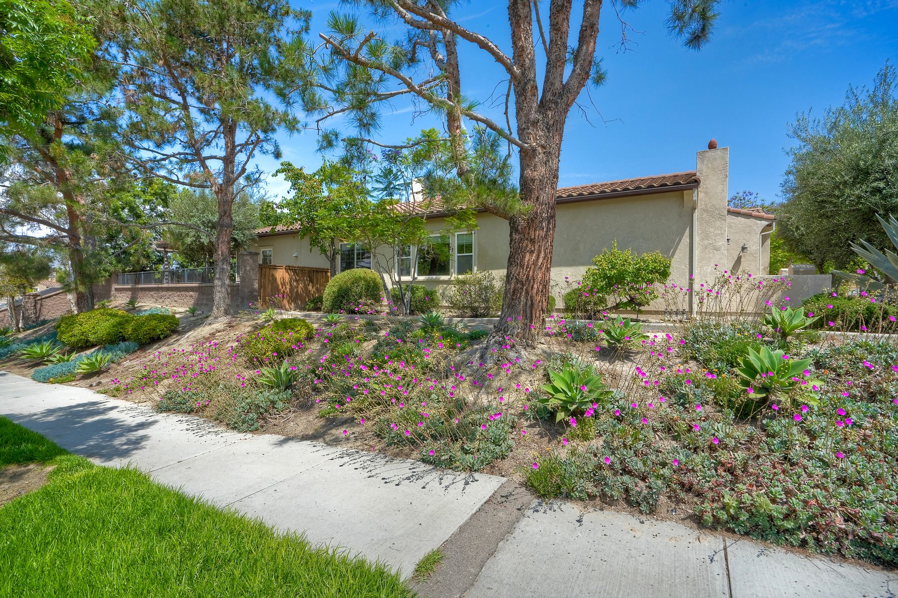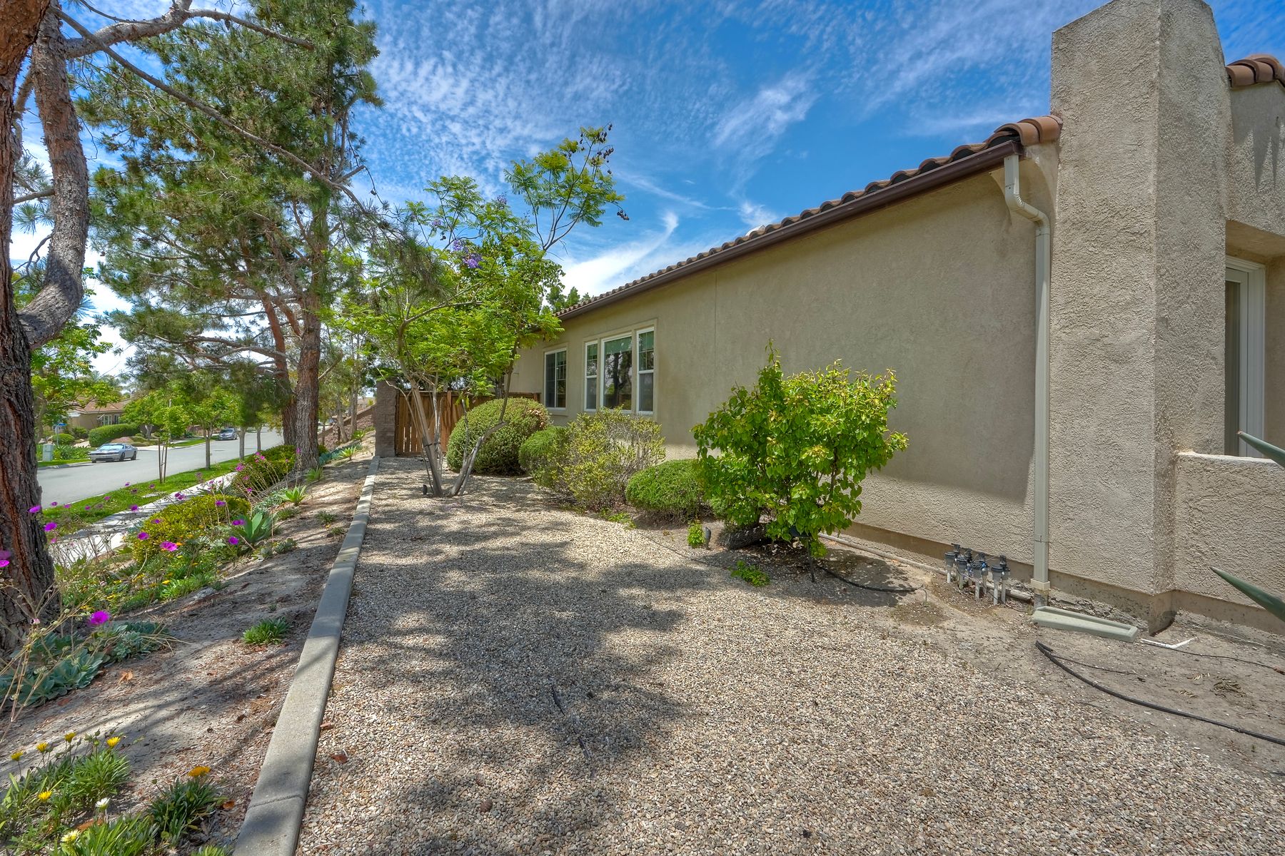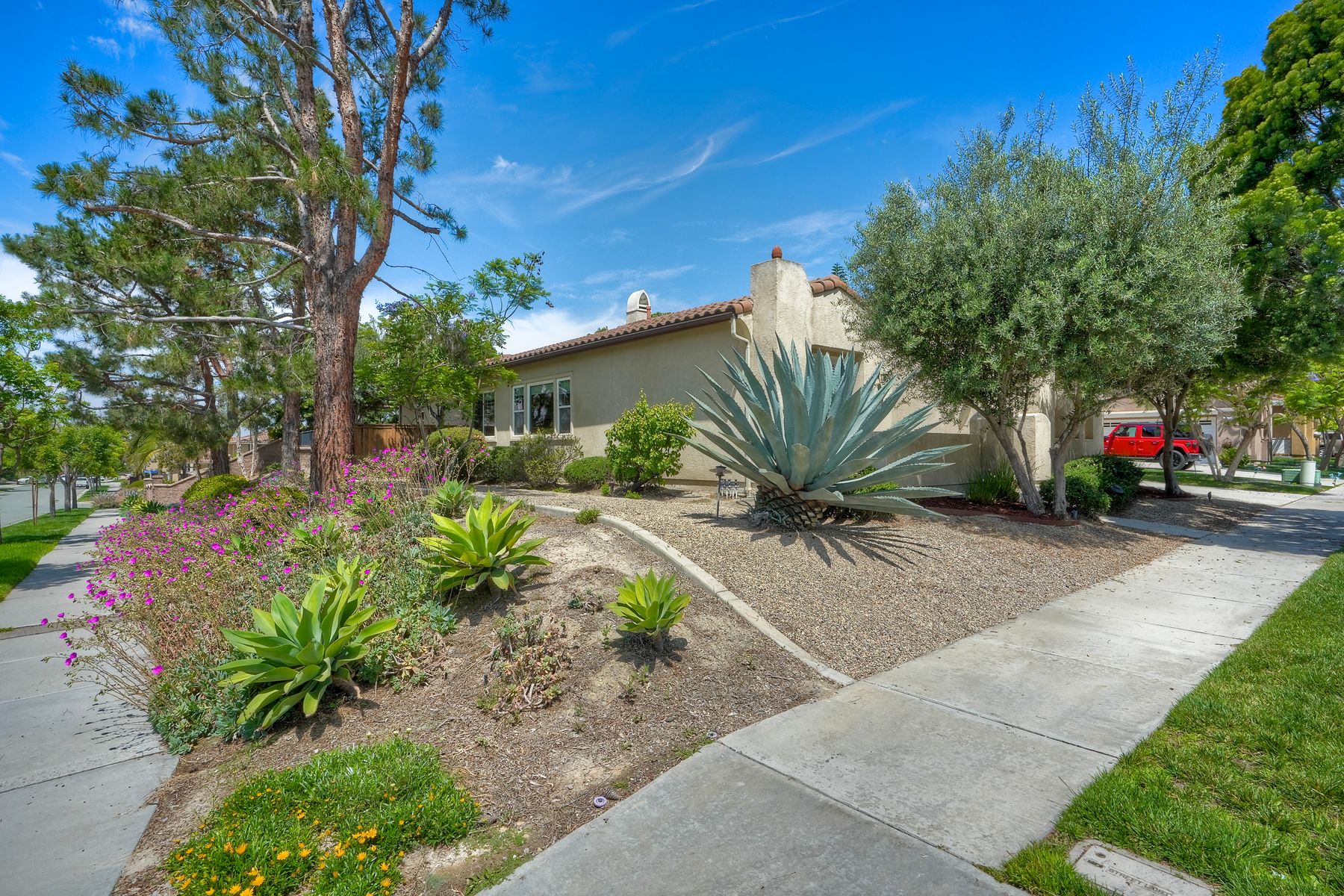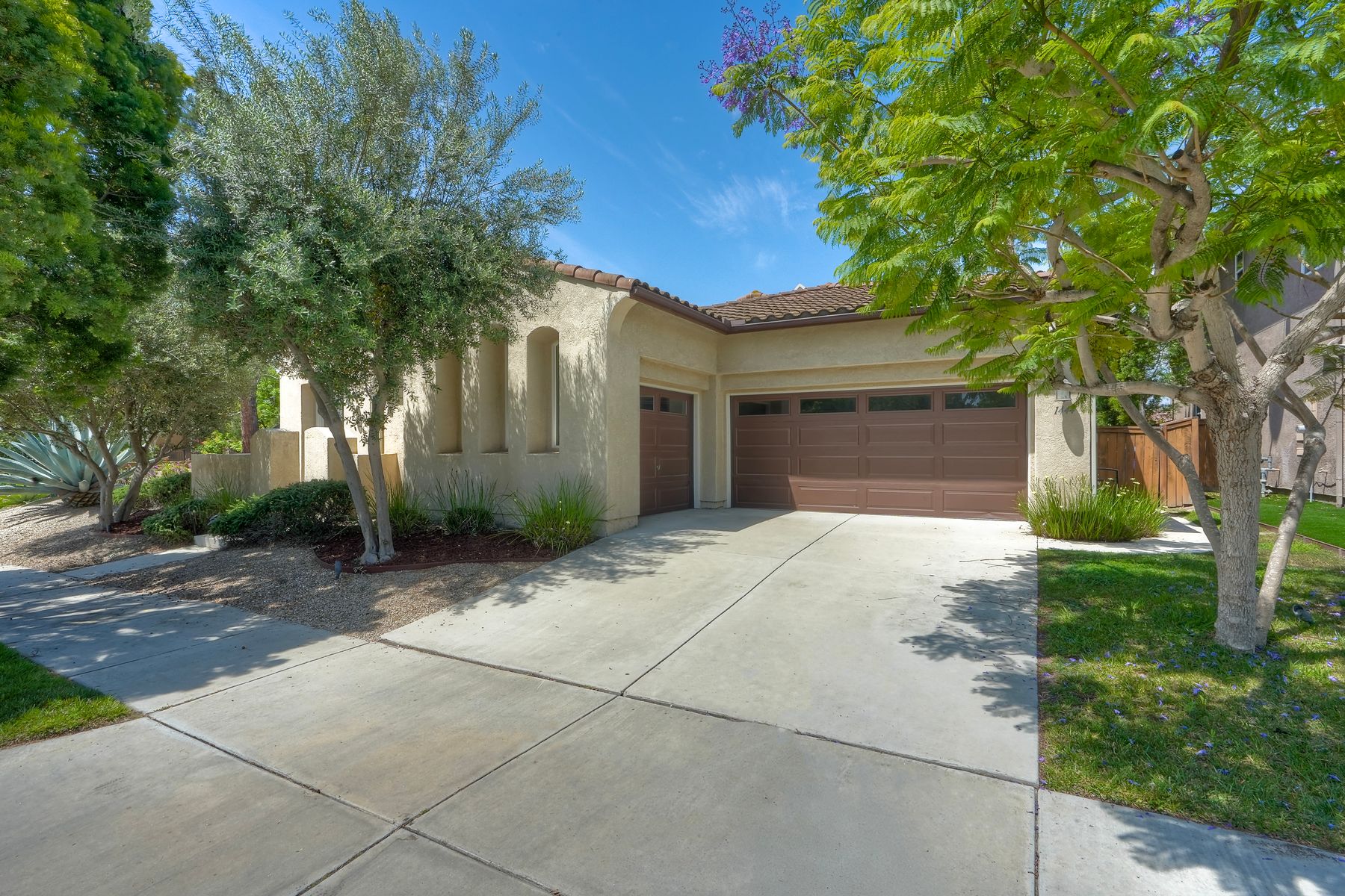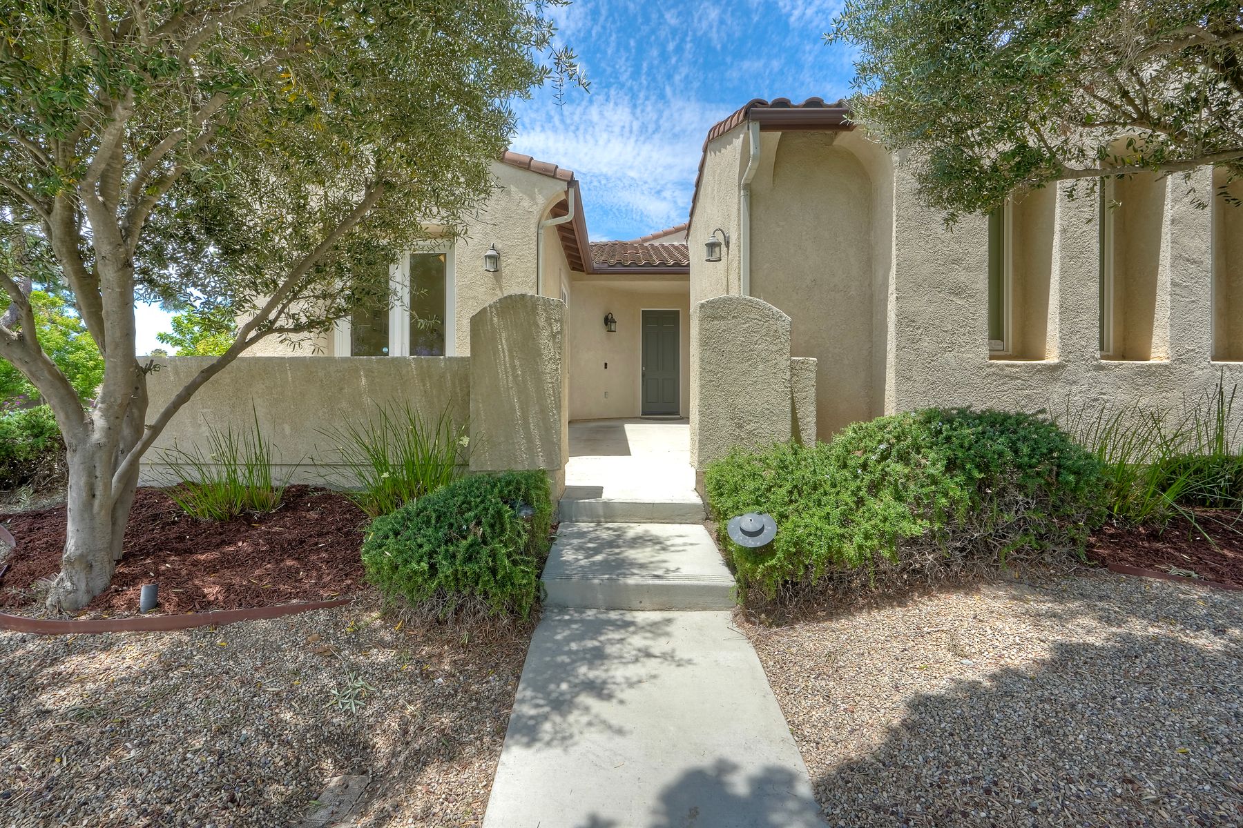 Welcome to this rarely available single-level hacienda-style home, ideally situated on a premium corner lot in the prestigious McMillin Lomas Verdes. Offering 4 generously sized bedrooms and 3 full bathrooms across 2,717 square feet, this residence blends timeless elegance with modern comfort. The inviting entryway—framed by striking agave plants—leads to a charming courtyard-style patio with French doors opening to a versatile secondary room, ideal for guests or a home office. With an open floor plan with soaring ceilings and abundant natural light throughout. Formal living and dining areas, along with a cozy family room complete with fireplace, provide ideal spaces for both entertaining and everyday living. The home is adorned with high-end wood plank and natural stone flooring, creating a seamless and sophisticated aesthetic. The gourmet kitchen showcases premium stainless steel appliances, custom cabinetry, and elegant countertops. Retreat to the luxurious primary suite, featuring an oversized walk-in closet and a spa-inspired bathroom with a soaking tub and spacious walk-in shower. Three additional guest bedrooms offer comfort, privacy, and ample storage.