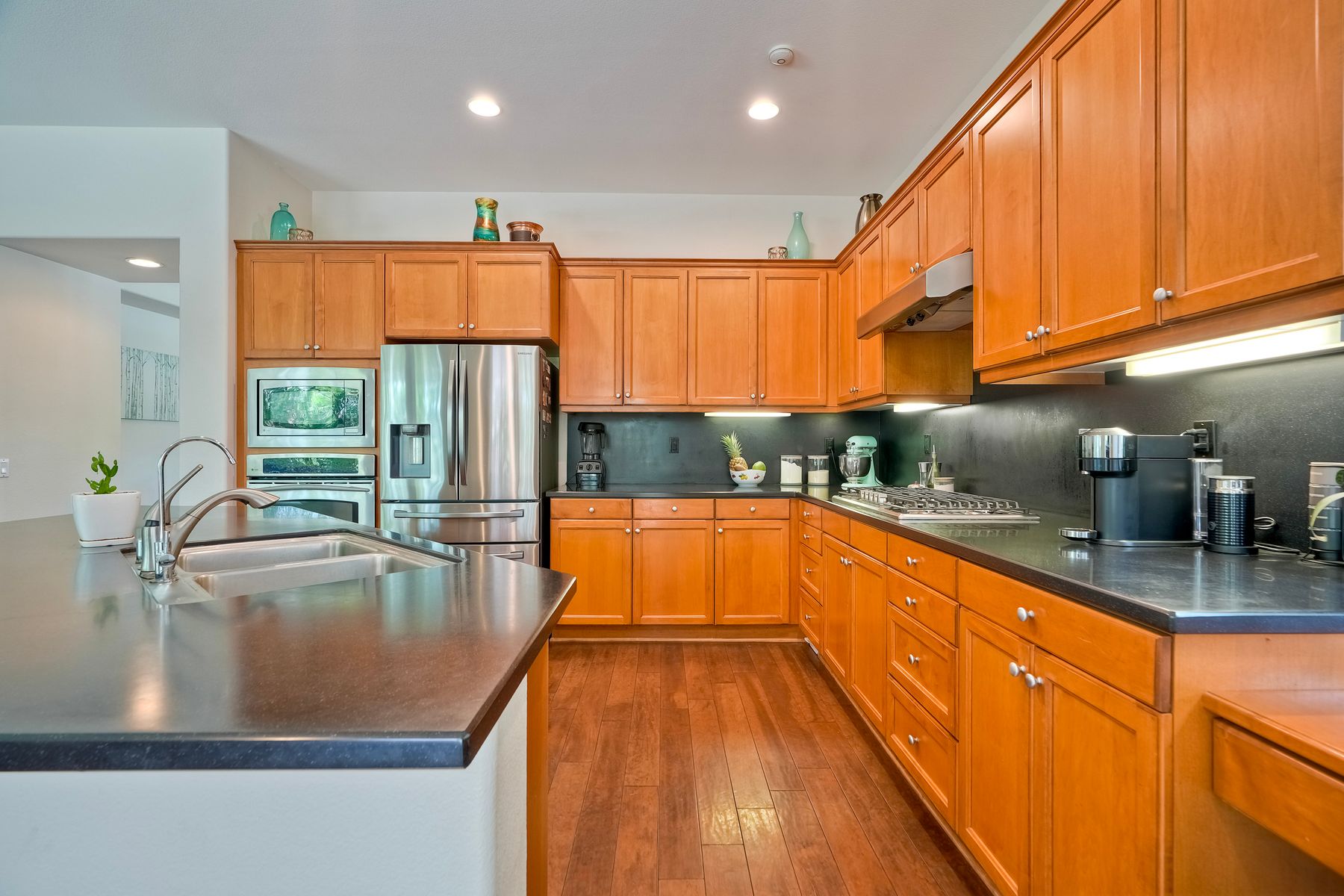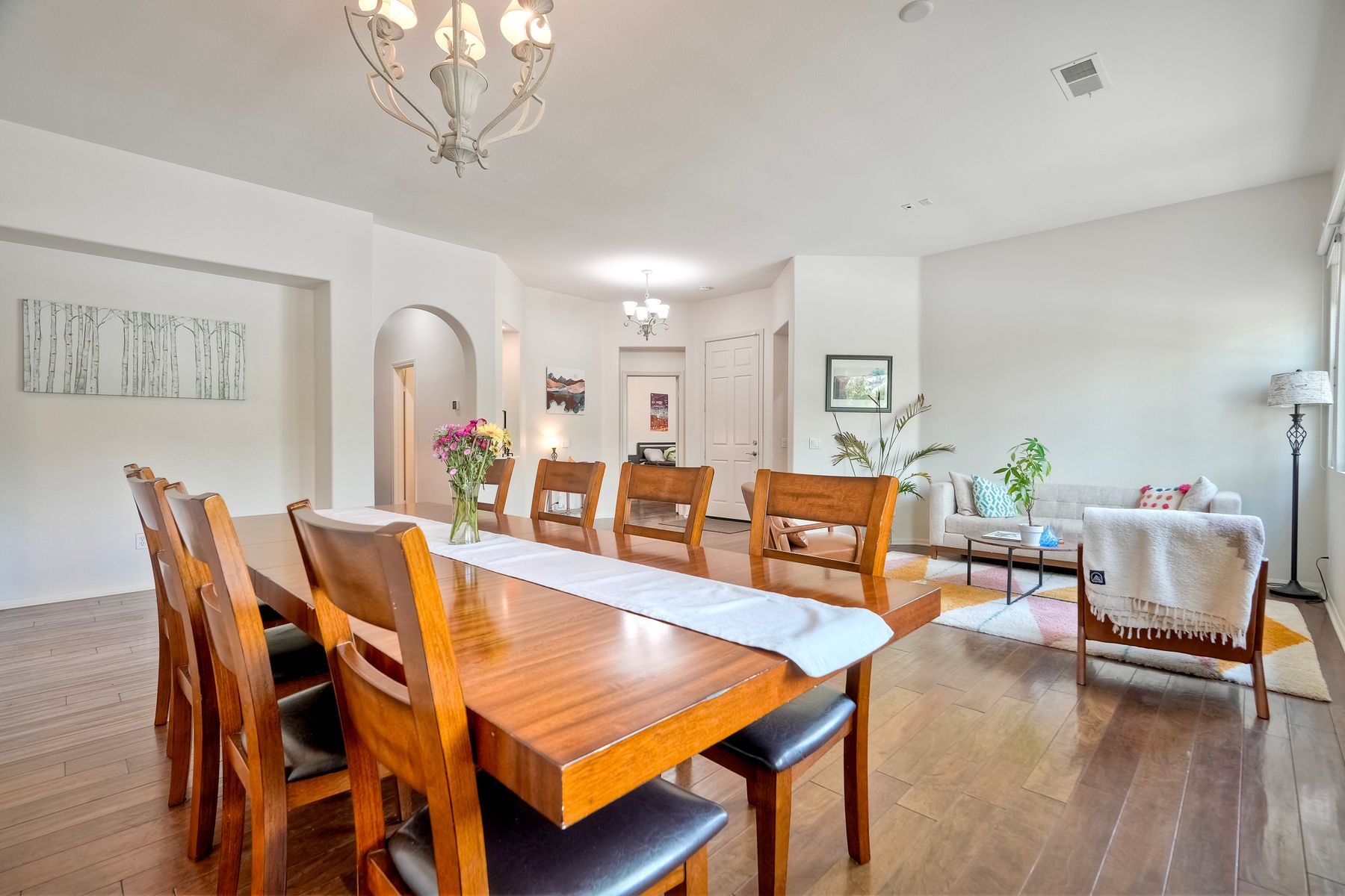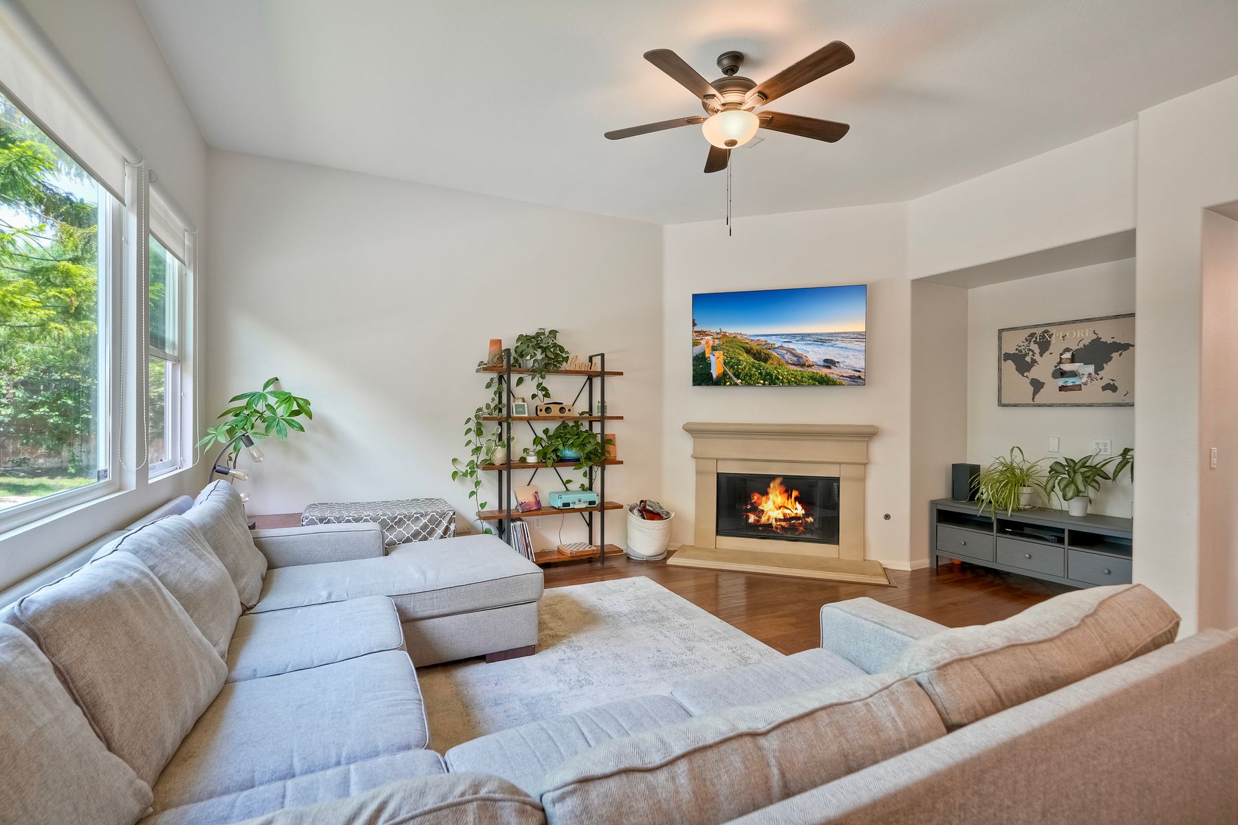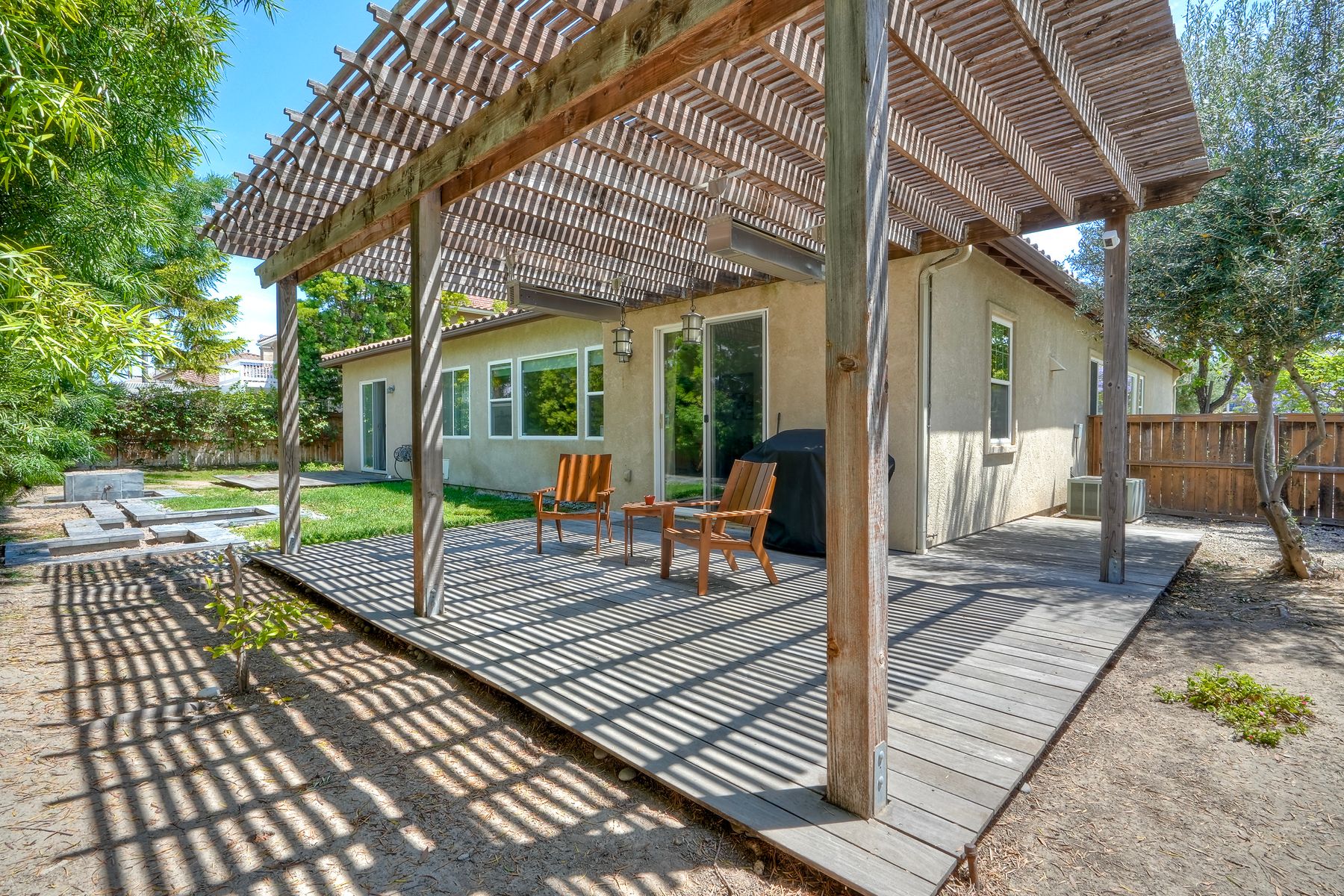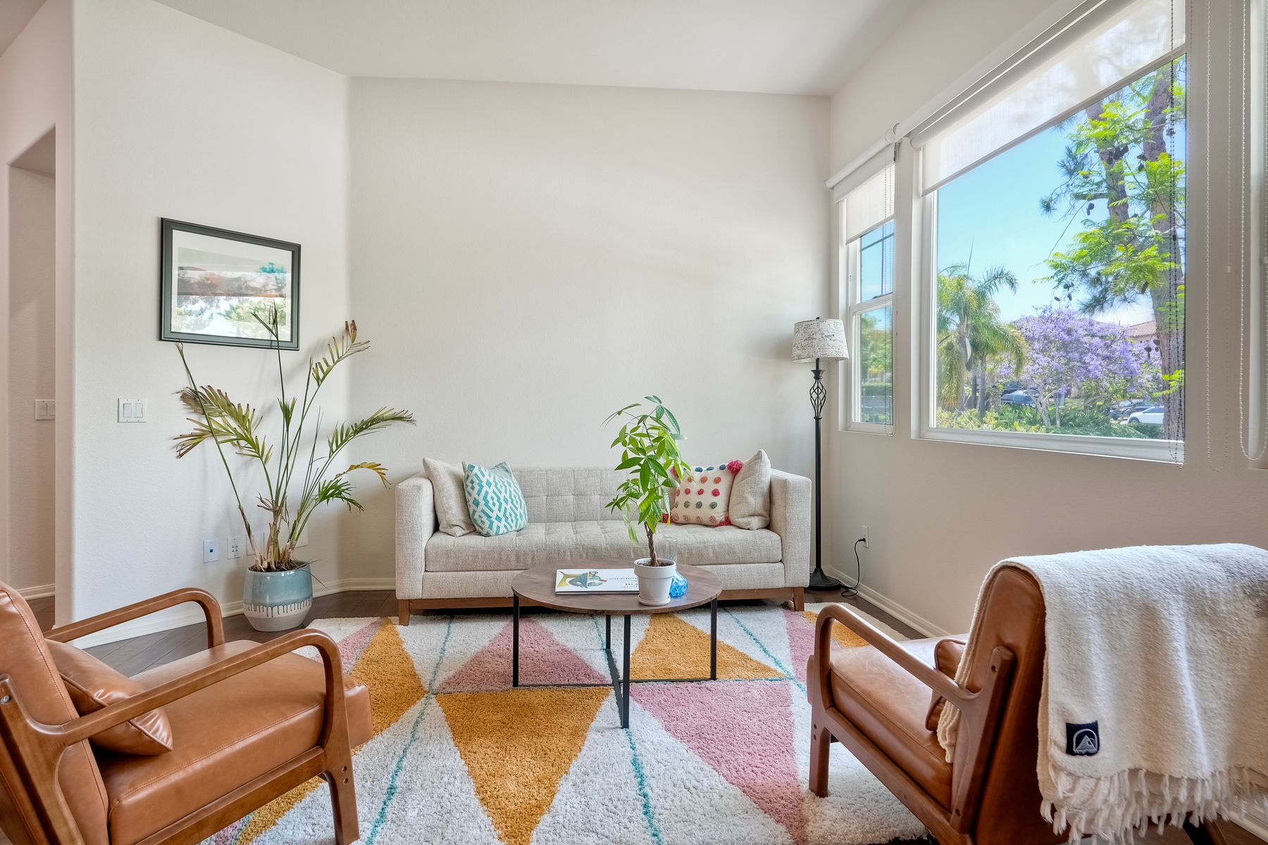 Welcome to this rarely available single-level hacienda-style home, ideally situated on a premium corner lot in the prestigious McMillin Lomas Verdes. Offering 4 generously sized bedrooms and 3 full bathrooms across 2,717 square feet, this residence blends timeless elegance with modern comfort. The inviting entryway—framed by striking agave plants—leads to a charming courtyard-style patio with French doors opening to a versatile secondary room, ideal for guests or a home office. With an open floor plan with soaring ceilings and abundant natural light throughout. Formal living and dining areas, along with a cozy family room complete with fireplace, provide ideal spaces for both entertaining and everyday living. The home is adorned with high-end wood plank and natural stone flooring, creating a seamless and sophisticated aesthetic. The gourmet kitchen showcases premium stainless steel appliances, custom cabinetry, and elegant countertops. Retreat to the luxurious primary suite, featuring an oversized walk-in closet and a spa-inspired bathroom with a soaking tub and spacious walk-in shower. Three additional guest bedrooms offer comfort, privacy, and ample storage.