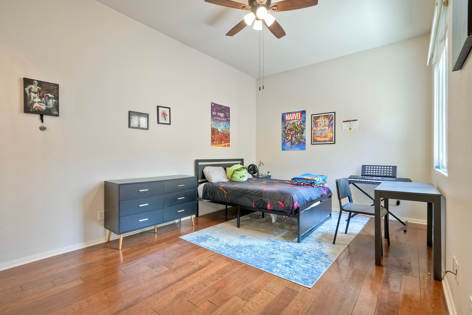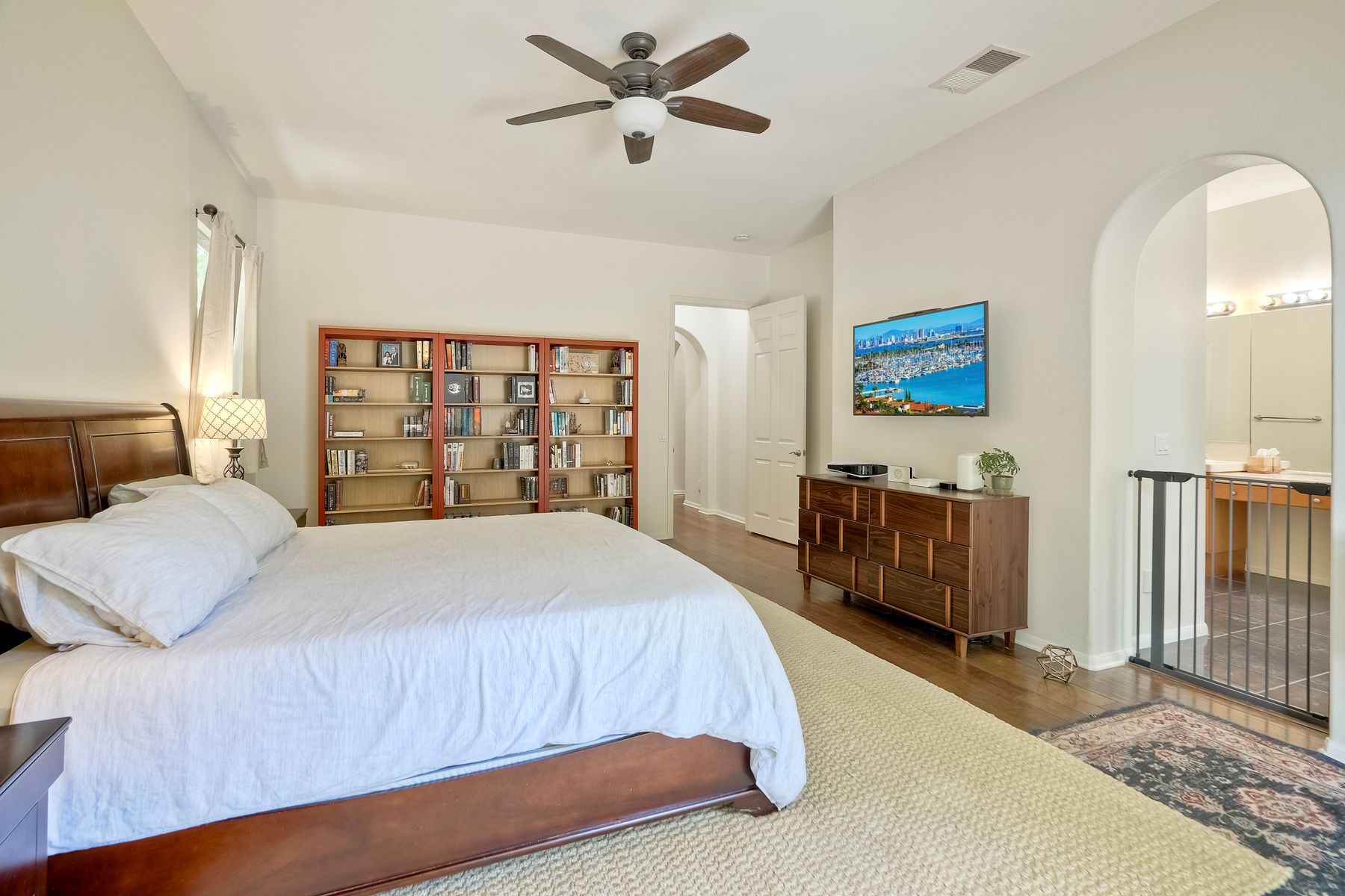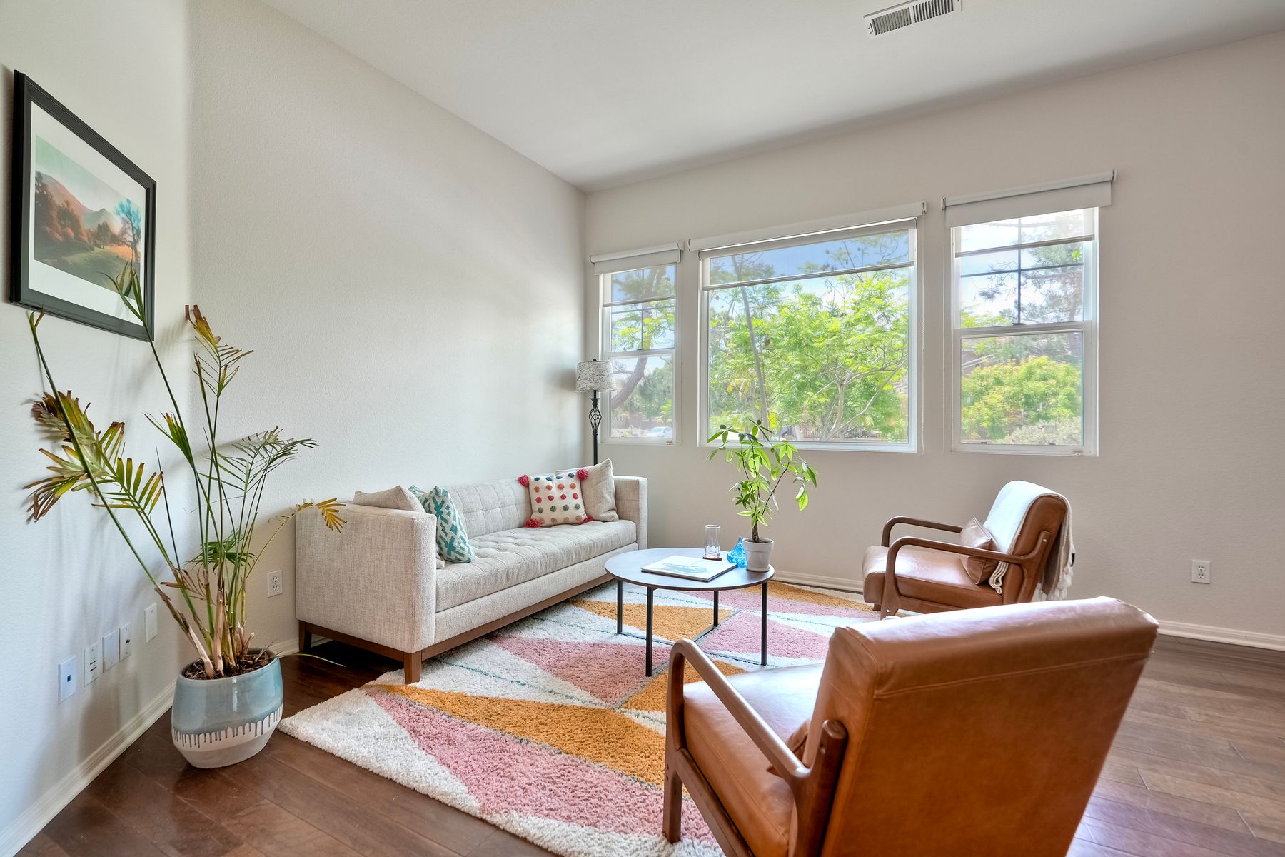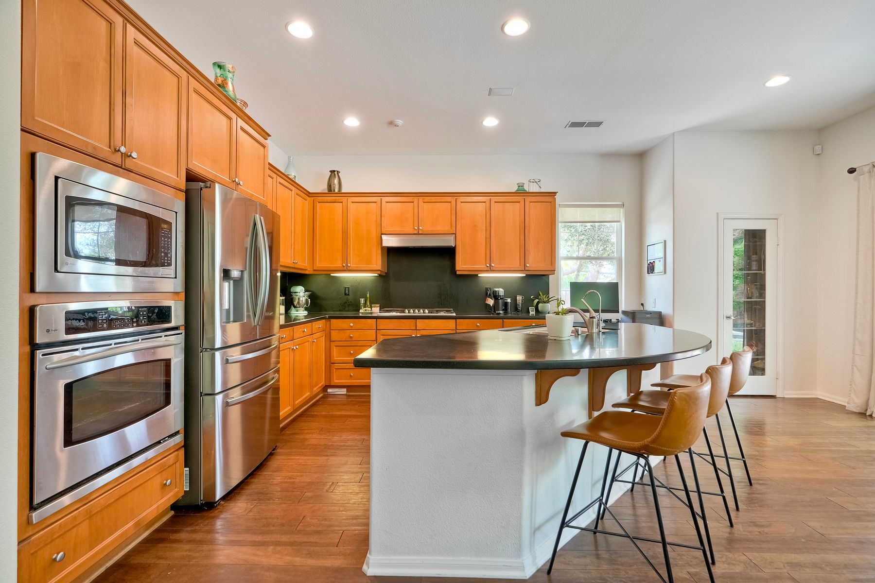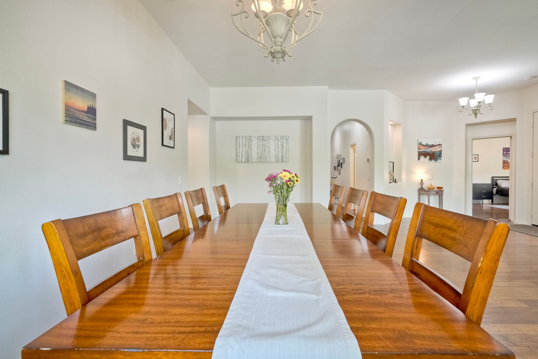 Welcome to this rarely available single-level hacienda-style home, ideally situated on a premium corner lot in the prestigious McMillin Lomas Verdes. Offering 4 generously sized bedrooms and 3 full bathrooms across 2,717 square feet, this residence blends timeless elegance with modern comfort. The inviting entryway—framed by striking agave plants—leads to a charming courtyard-style patio with French doors opening to a versatile secondary room, ideal for guests or a home office. With an open floor plan with soaring ceilings and abundant natural light throughout. Formal living and dining areas, along with a cozy family room complete with fireplace, provide ideal spaces for both entertaining and everyday living. The home is adorned with high-end wood plank and natural stone flooring, creating a seamless and sophisticated aesthetic. The gourmet kitchen showcases premium stainless steel appliances, custom cabinetry, and elegant countertops. Retreat to the luxurious primary suite, featuring an oversized walk-in closet and a spa-inspired bathroom with a soaking tub and spacious walk-in shower. Three additional guest bedrooms offer comfort, privacy, and ample storage.