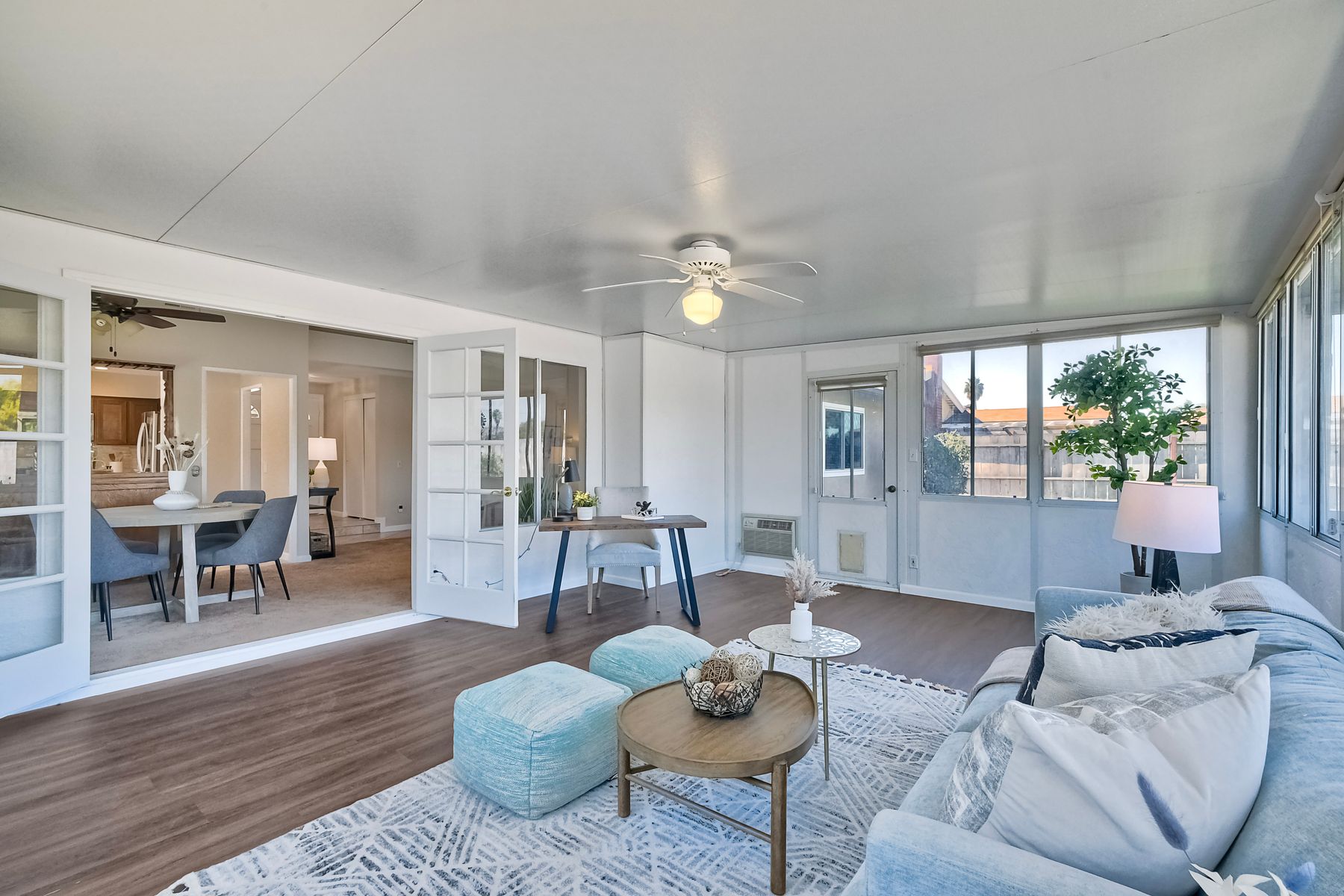 You will love this opportunity to own a detached home within the award-winning Poway Unified School District. A new roof was installed in 2023, and the home has fresh paint and stucco. The pride of ownership shows throughout this charming two-bedroom, two-bath home, which offers a spacious sunroom, updated kitchen, two-car garage, wonderful views, and low-maintenance backyard!
