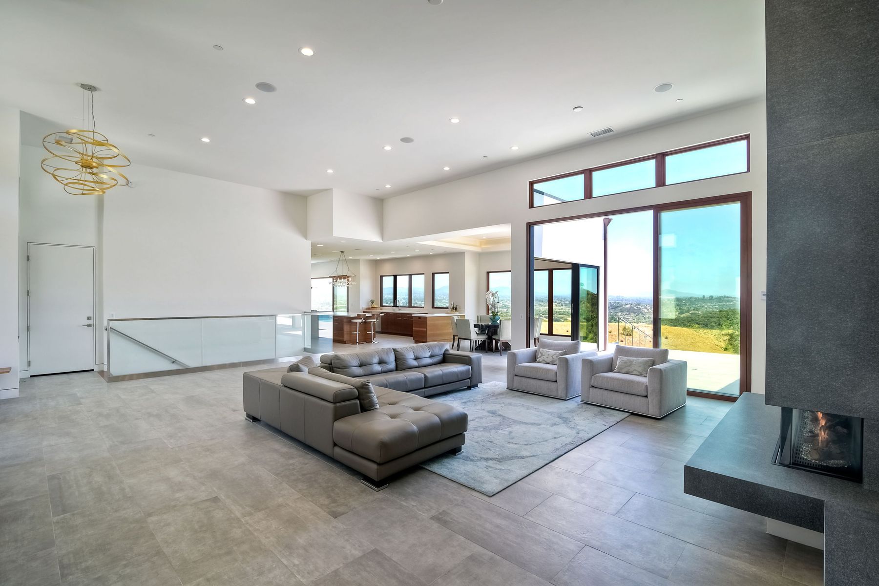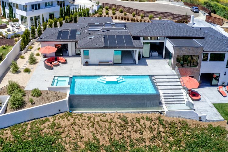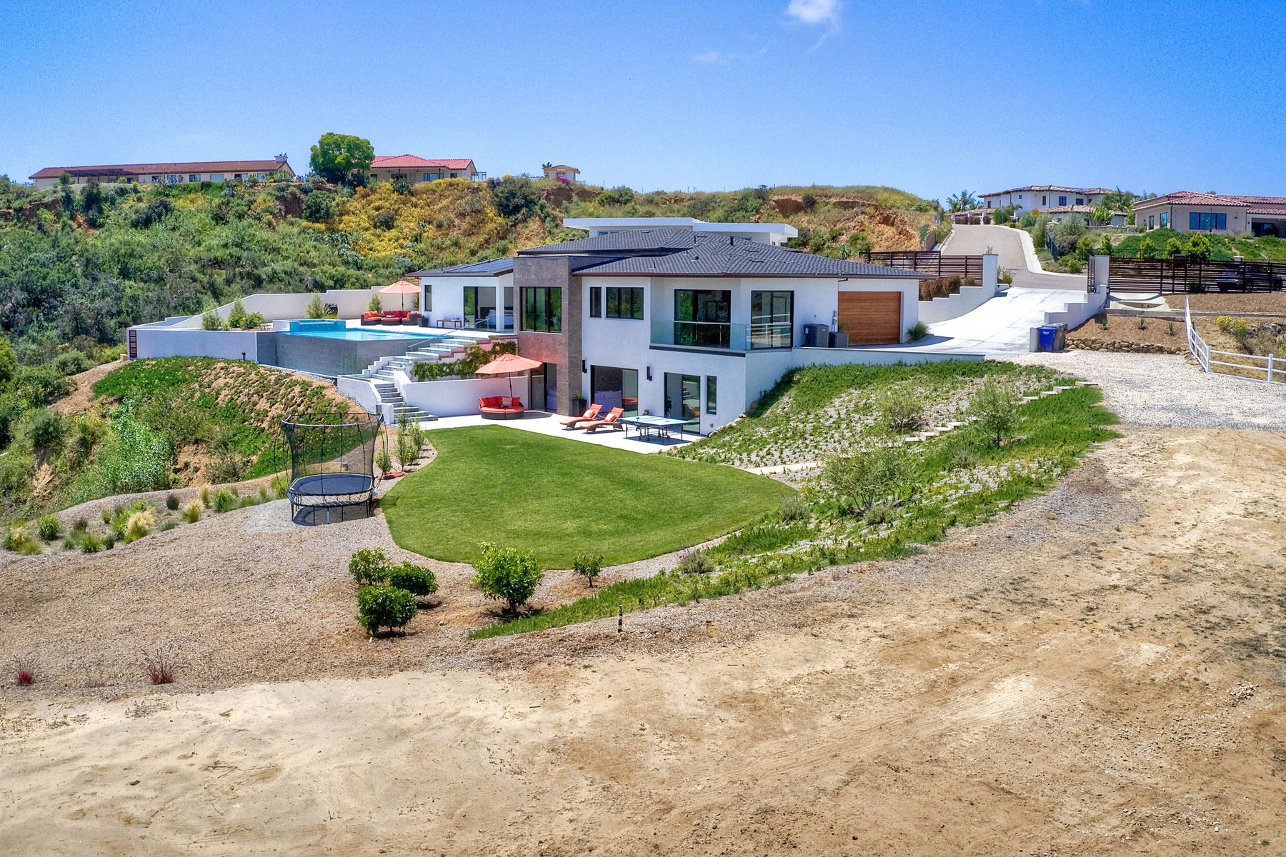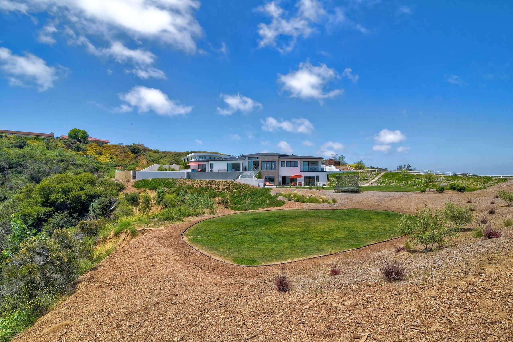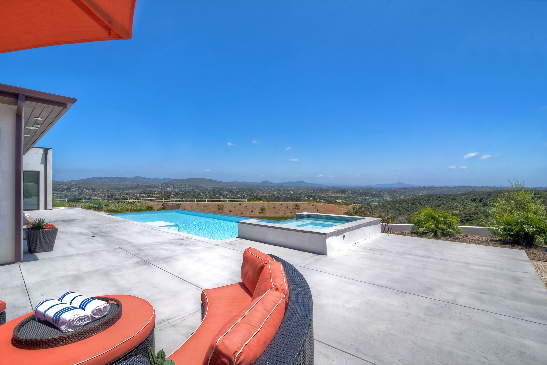 **** TOP OF THE HILL NEW MODERN HOME WITH COMPLETE PRIVACY*** Located on 6.39 acres with Panoramic canyon, mountain, golf course and city lights view in this "One of a Kind" newly constructed custom home! Best location in Encinitas with close proximity to beach, shopping, restaurants and Fwy. On a private street at the end of the cul-de-sac! Stunning modern design home with all main living rooms on one level with most rooms accessing the outside expansive patio and infinity pool! Video on YouTube!